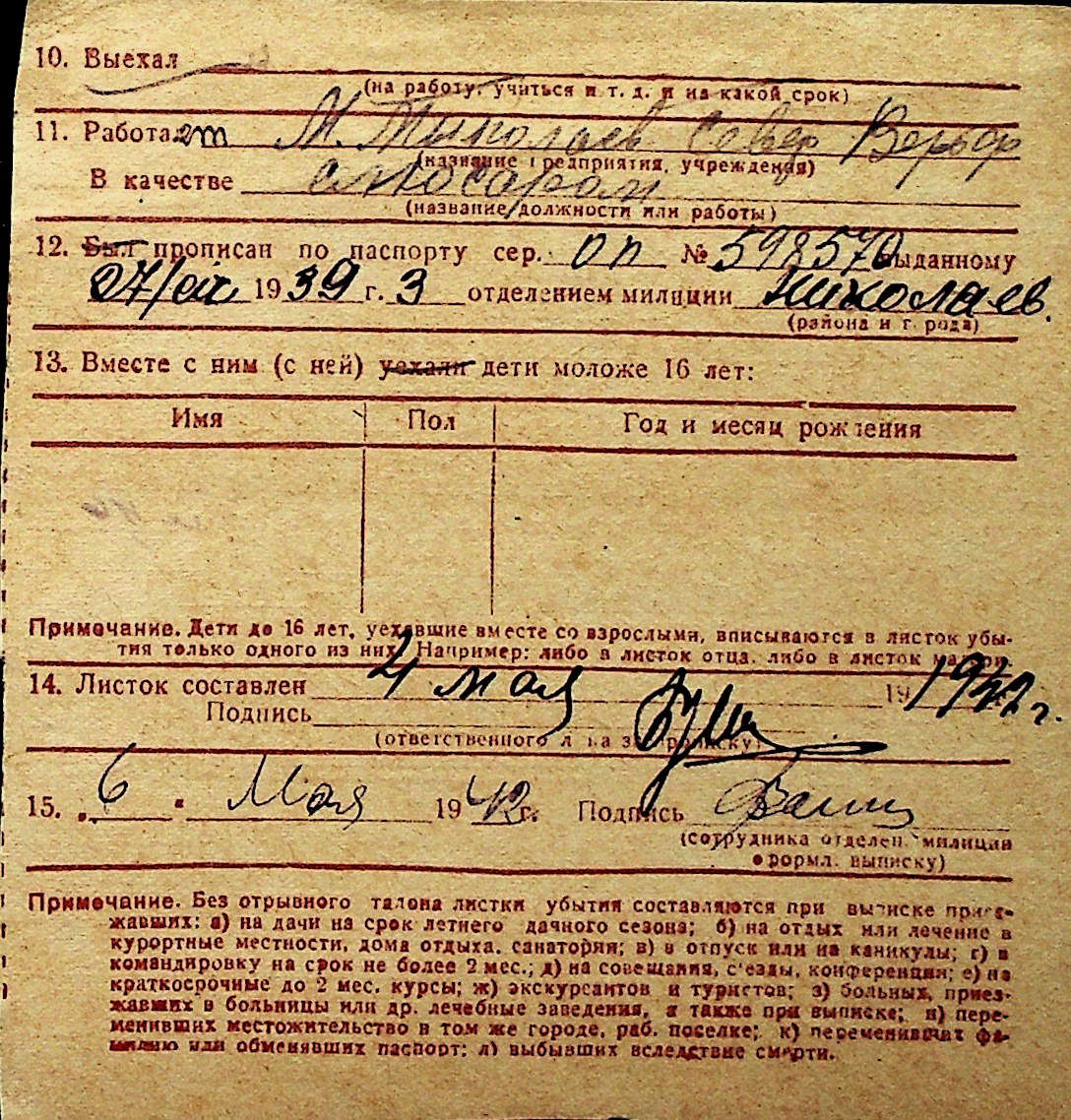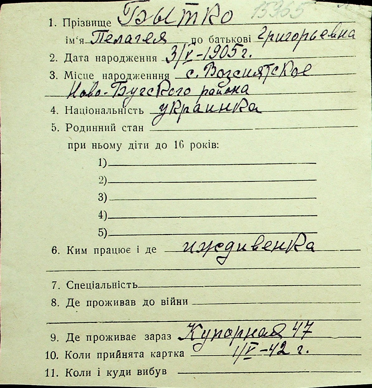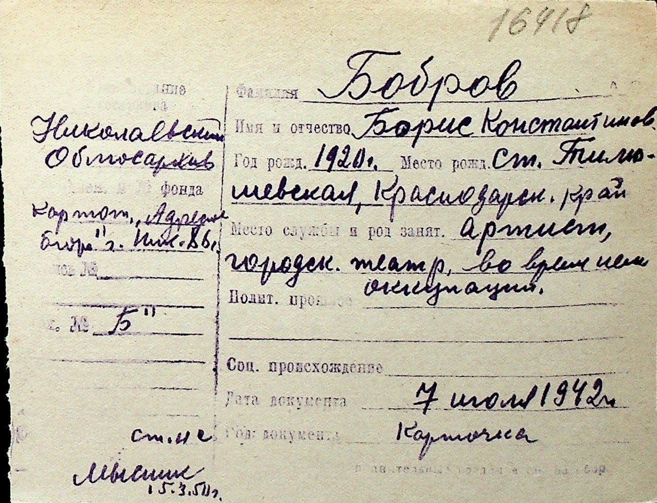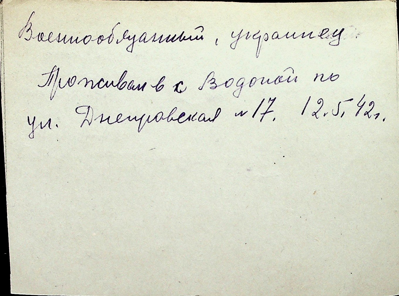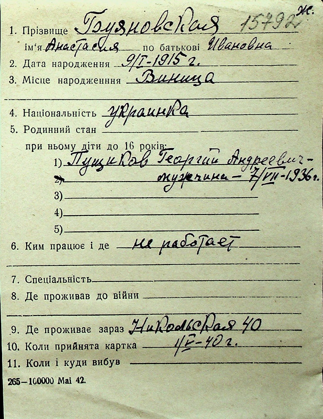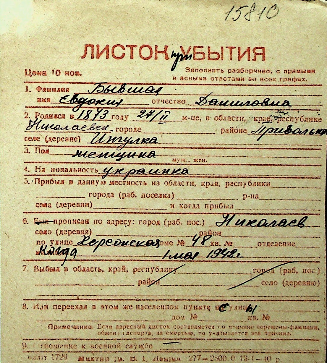 ◦ ◦ Перелік карток на осіб, які мешкали у м. Миколаїв у період окупації 1941–1944 років