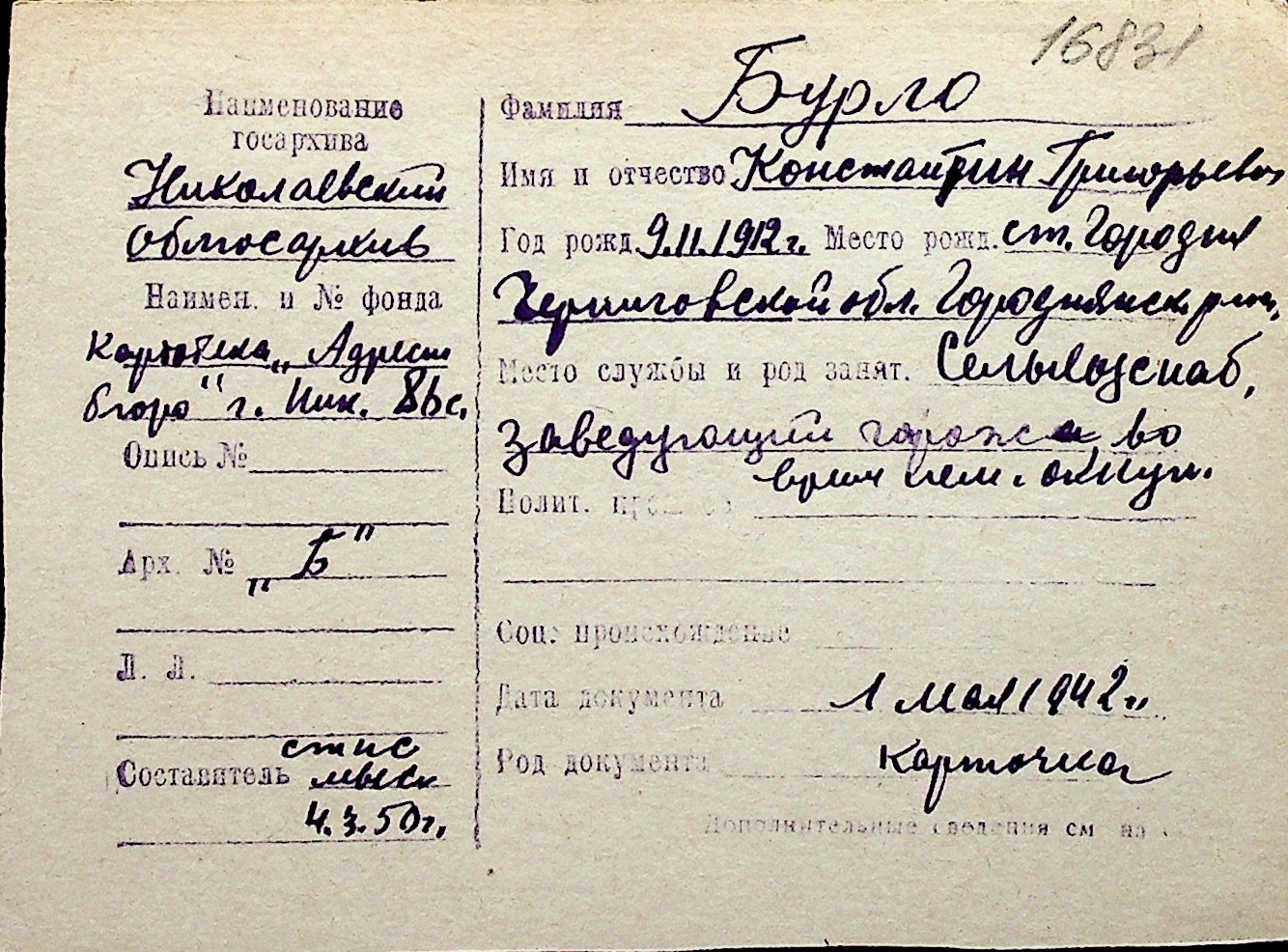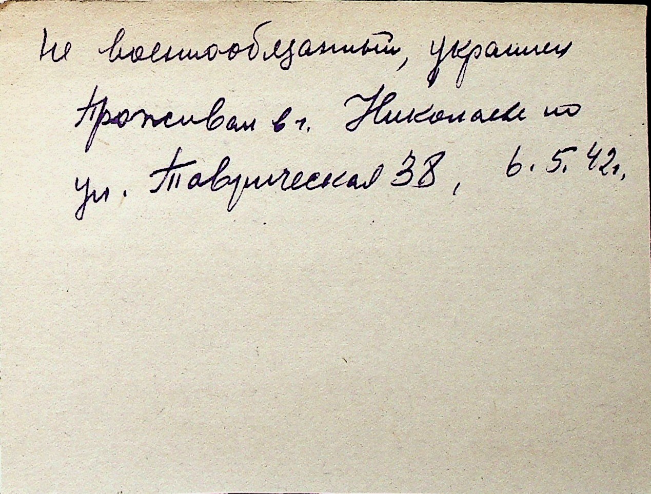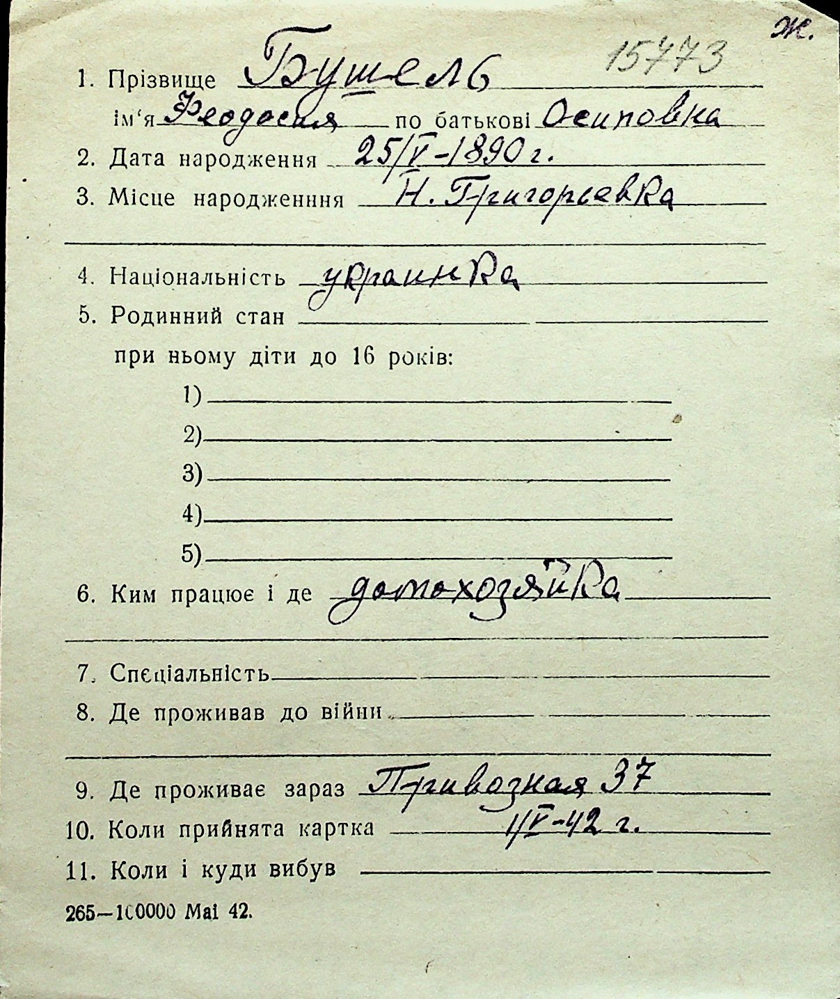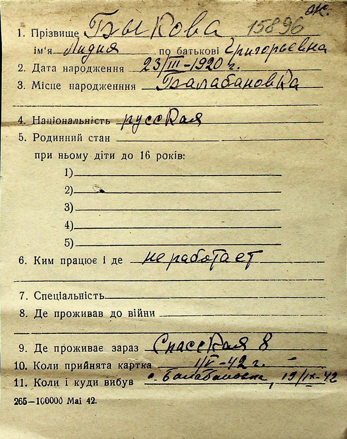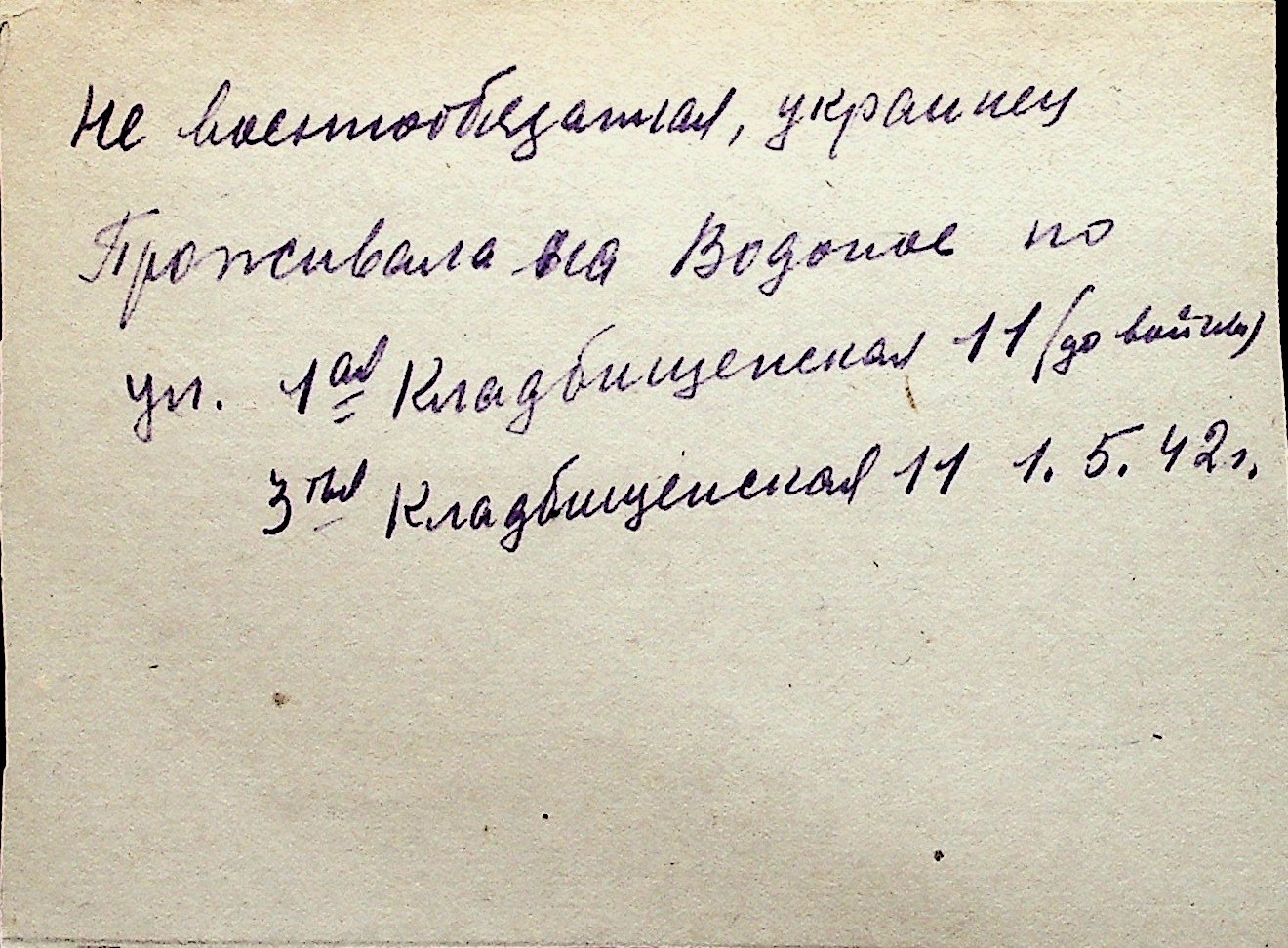 ◦ ◦ Перелік карток на осіб, які мешкали у м. Миколаїв у період окупації 1941–1944 років