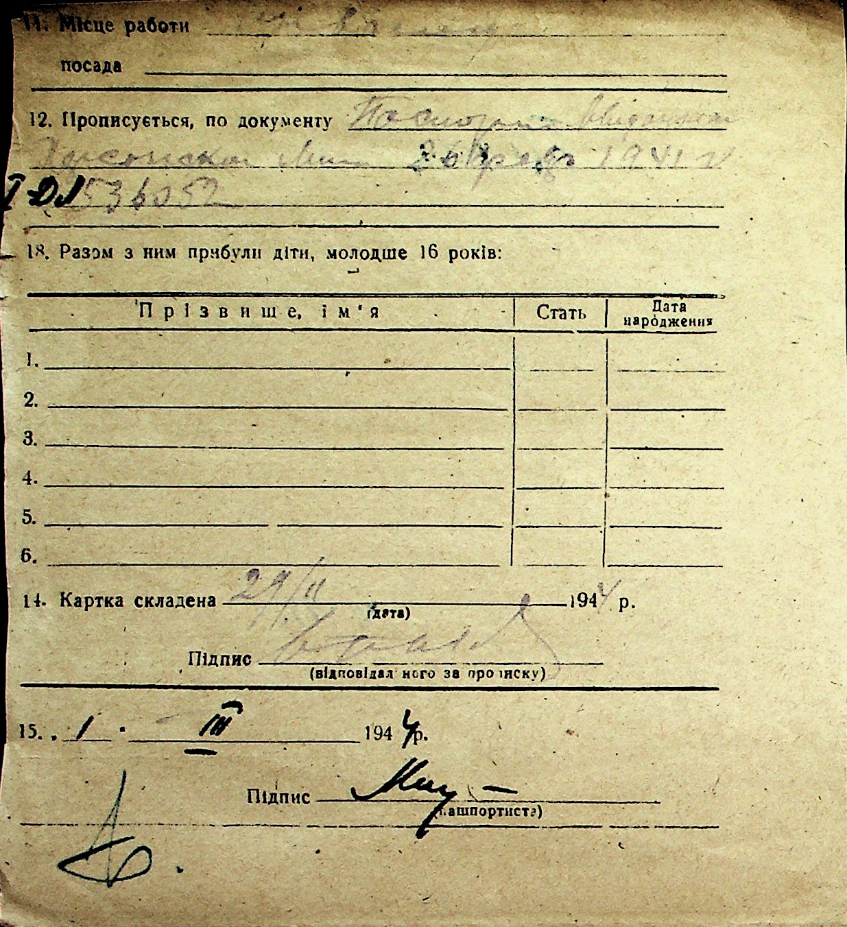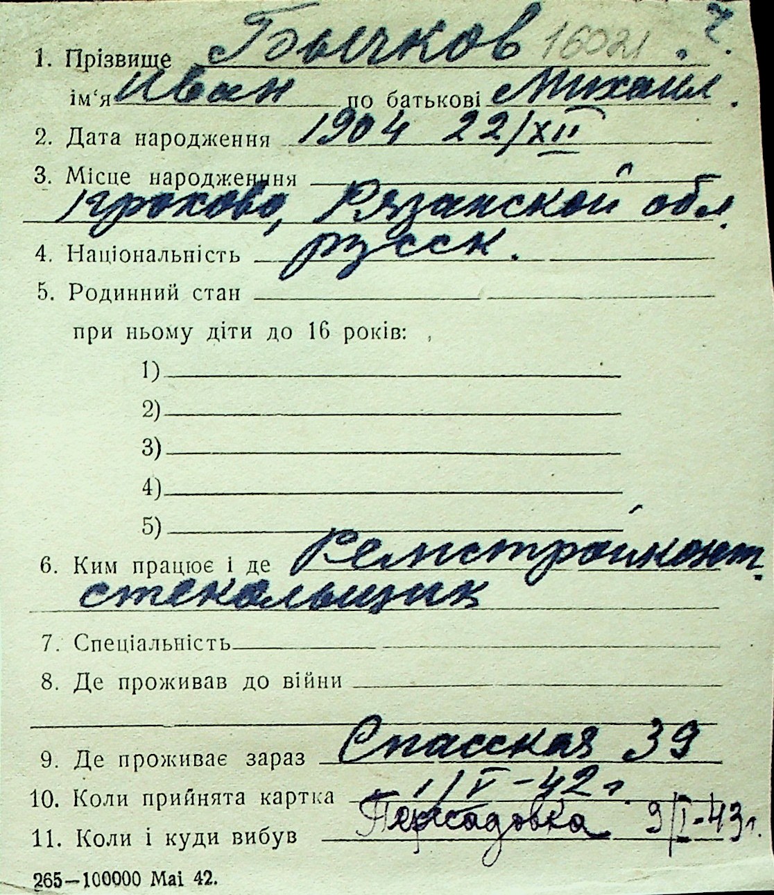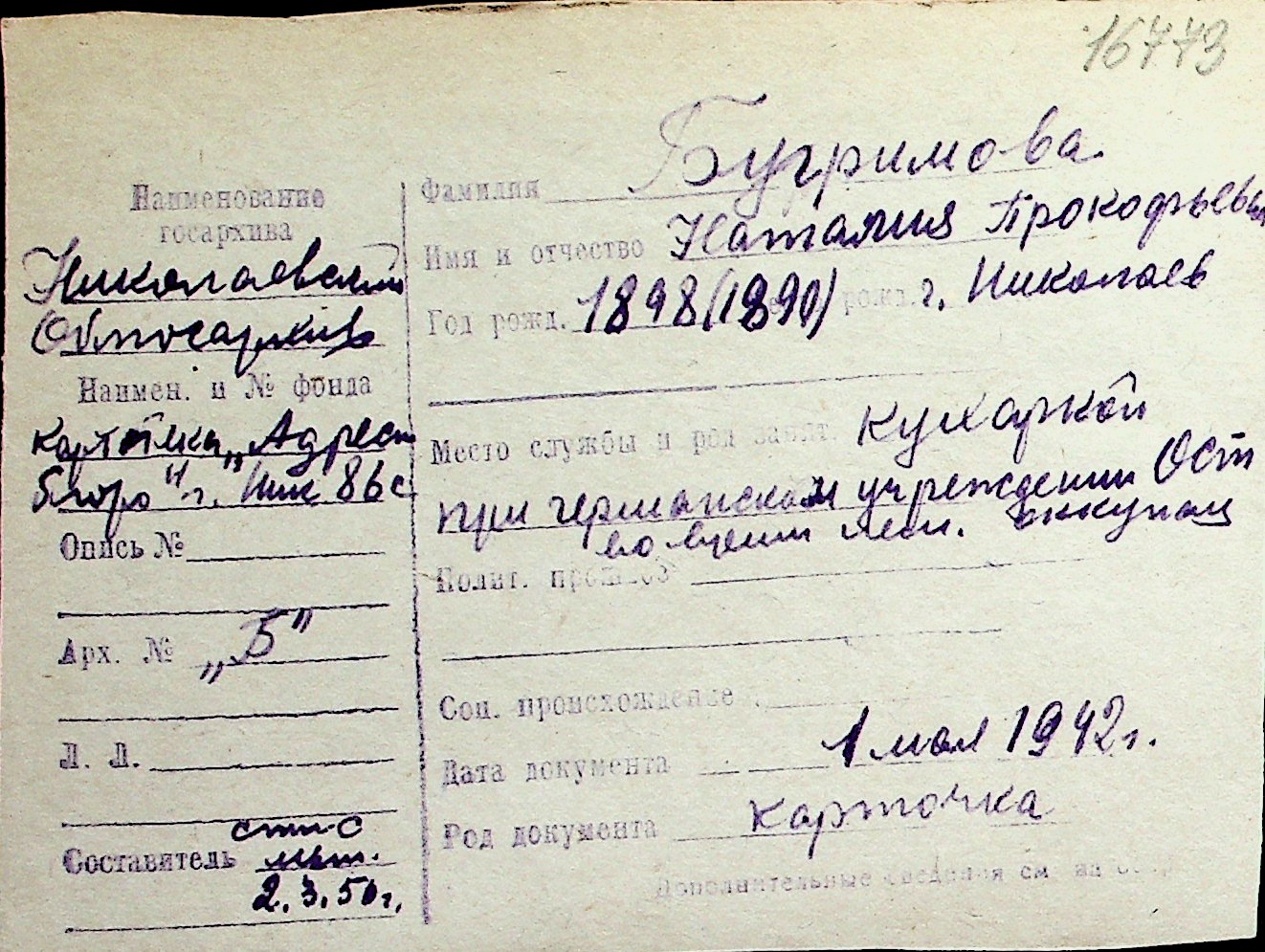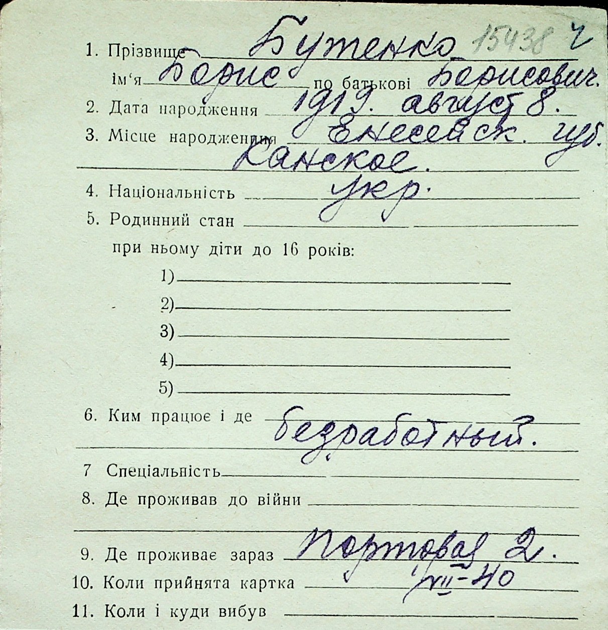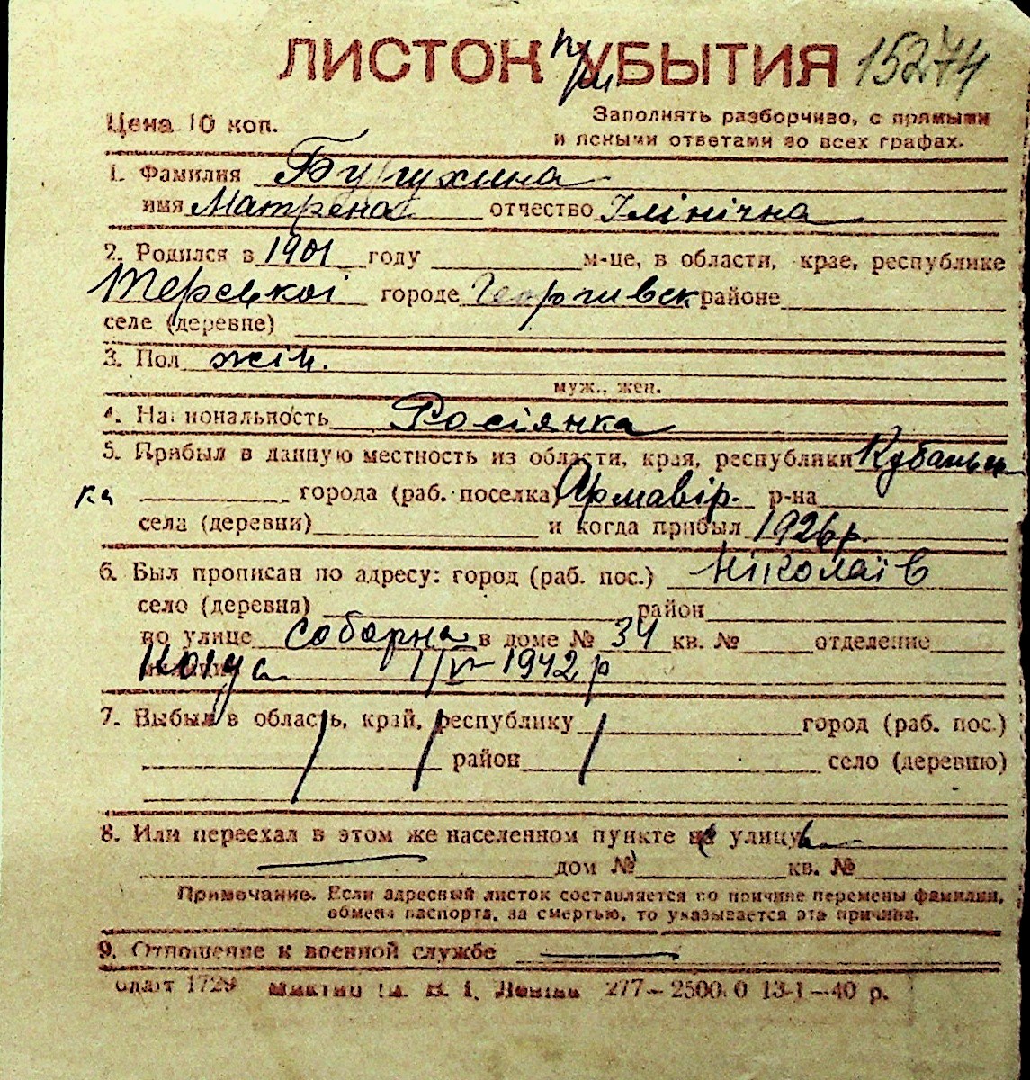 ◦ ◦ Перелік карток на осіб, які мешкали у м. Миколаїв у період окупації 1941–1944 років