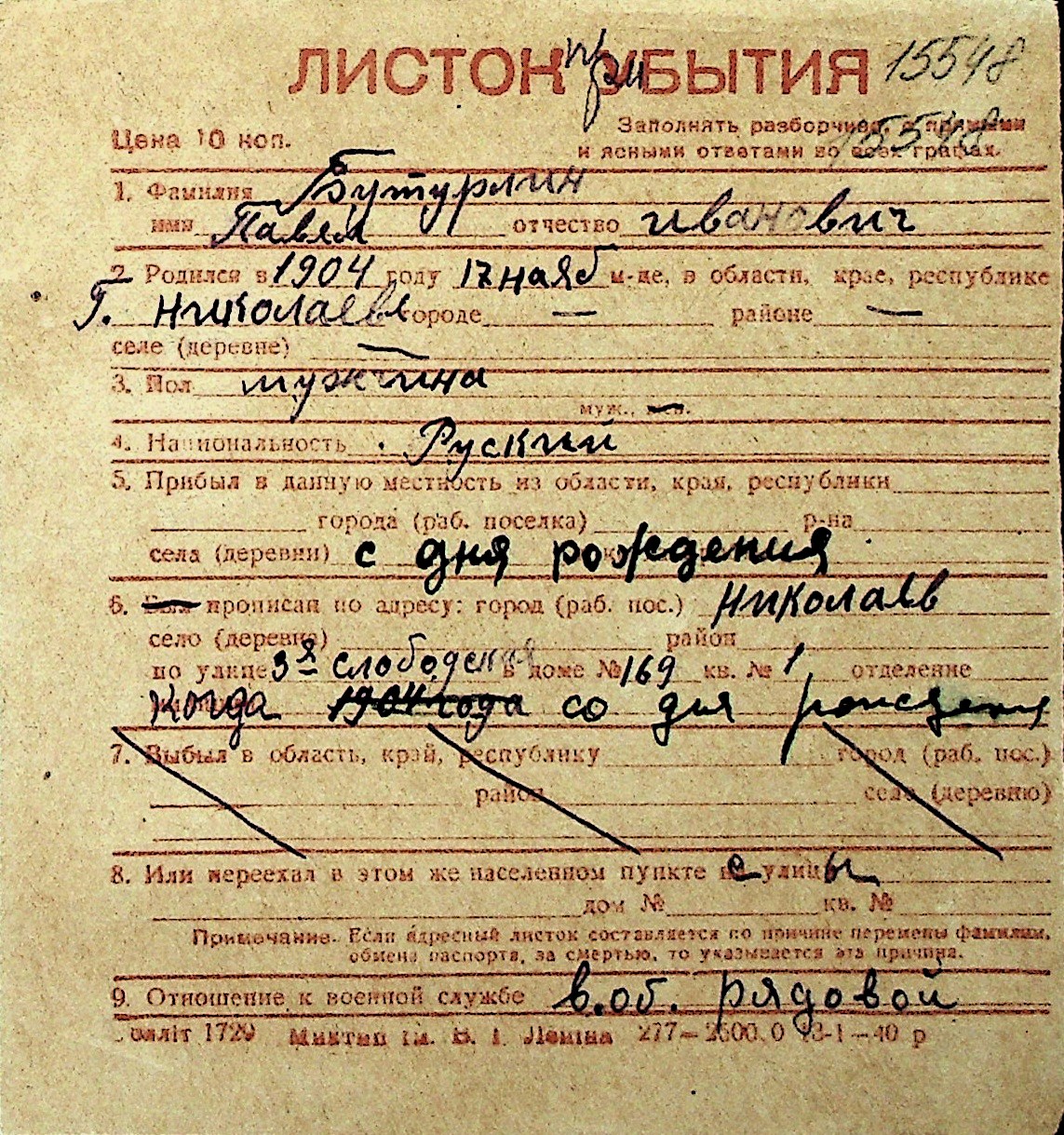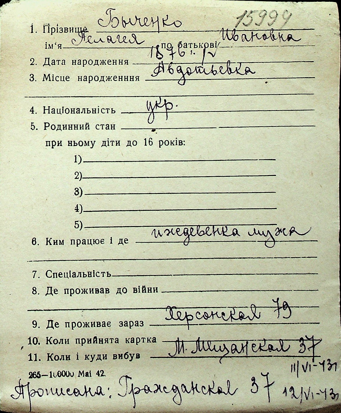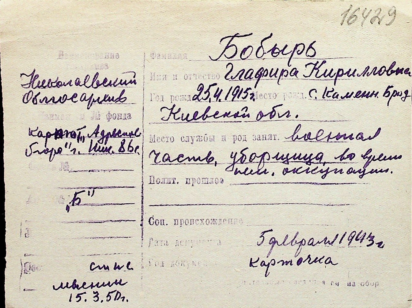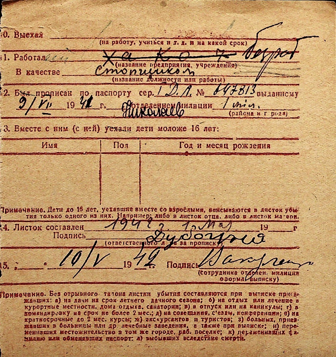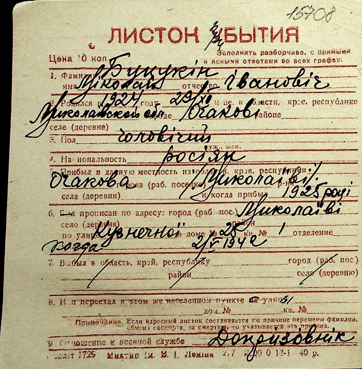 ◦ ◦ Перелік карток на осіб, які мешкали у м. Миколаїв у період окупації 1941–1944 років