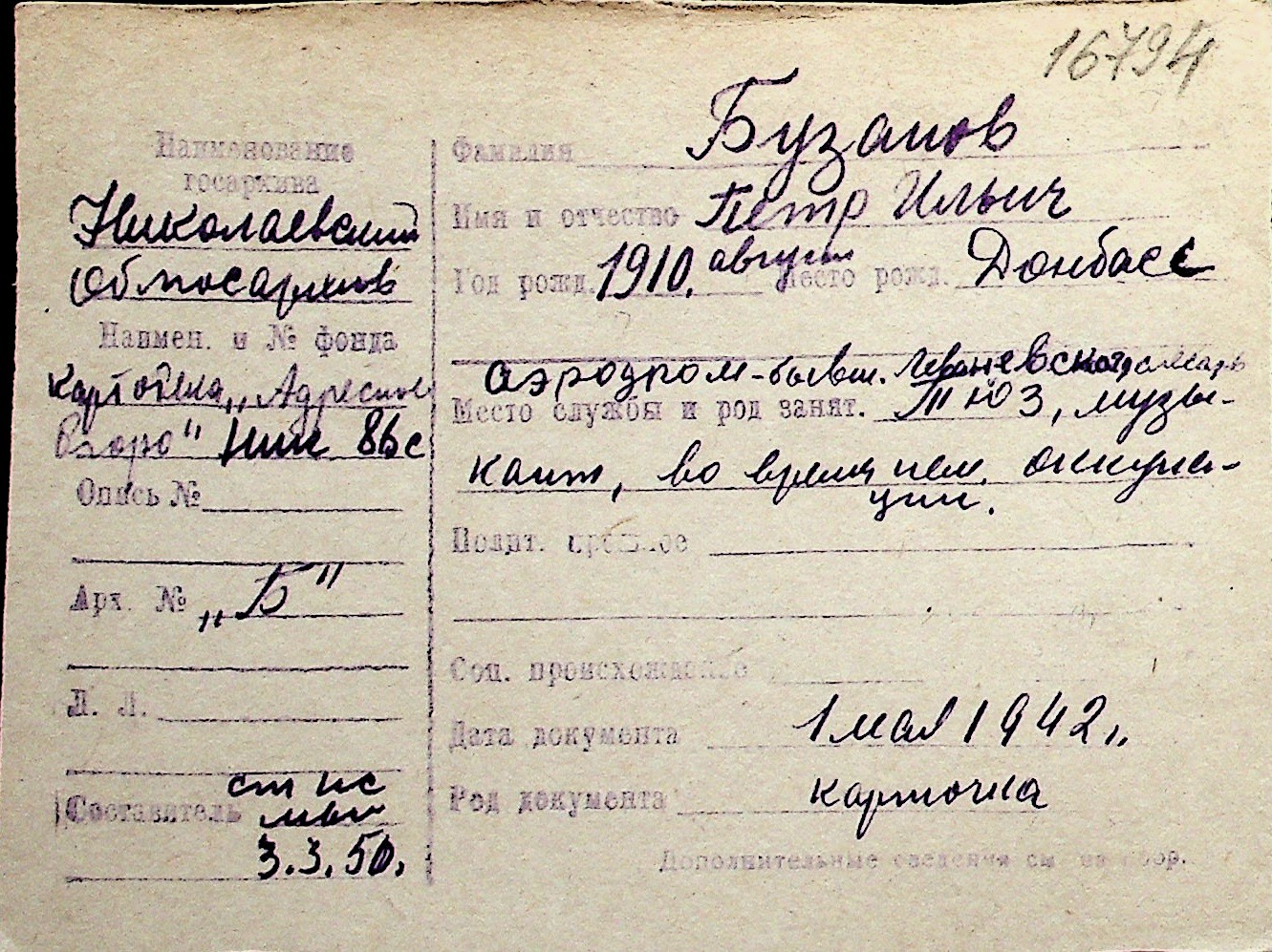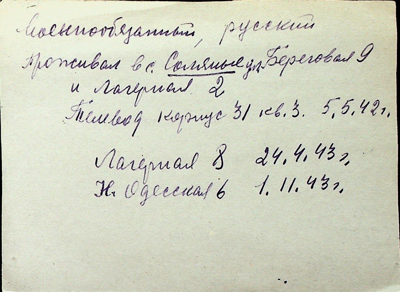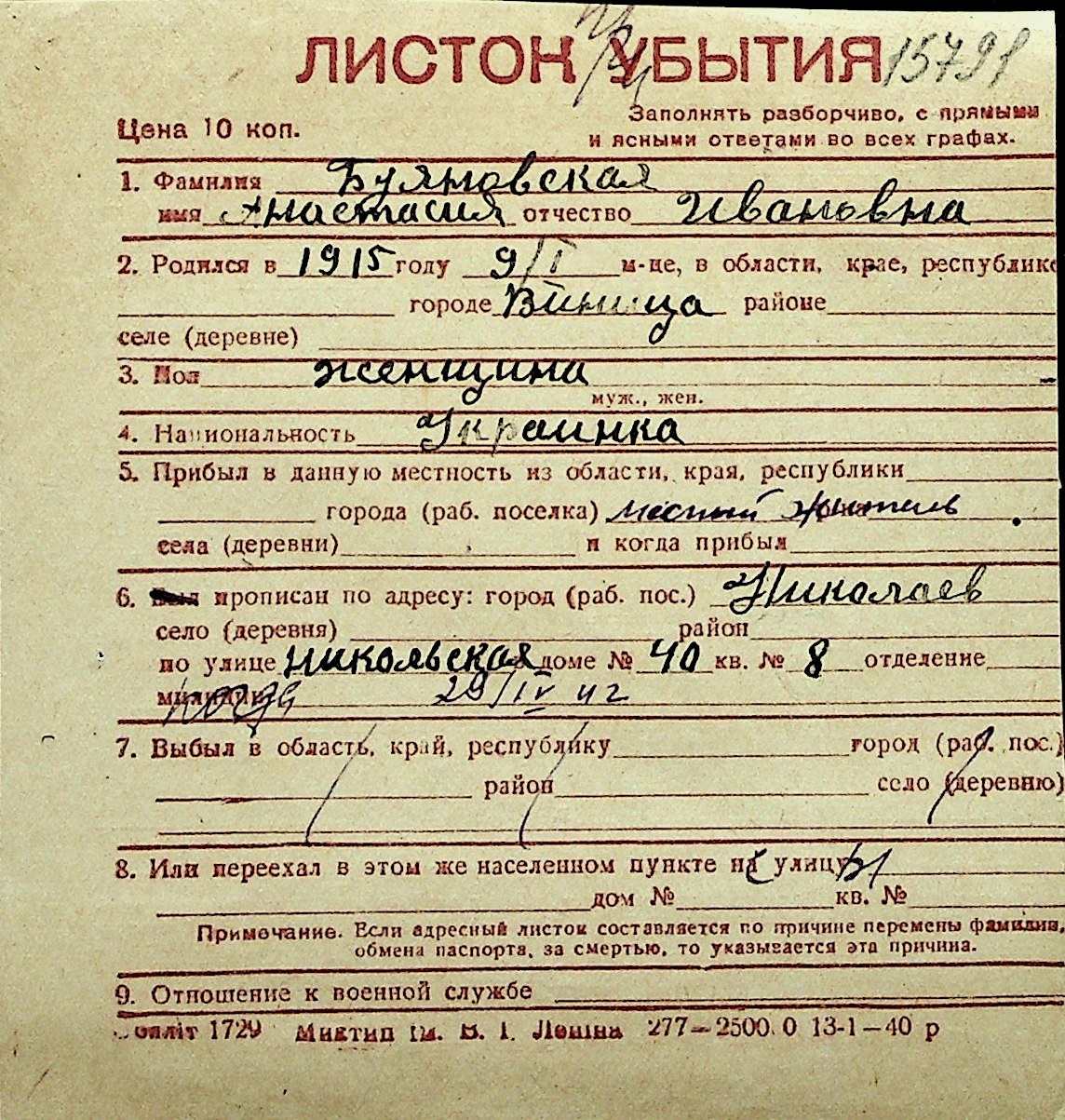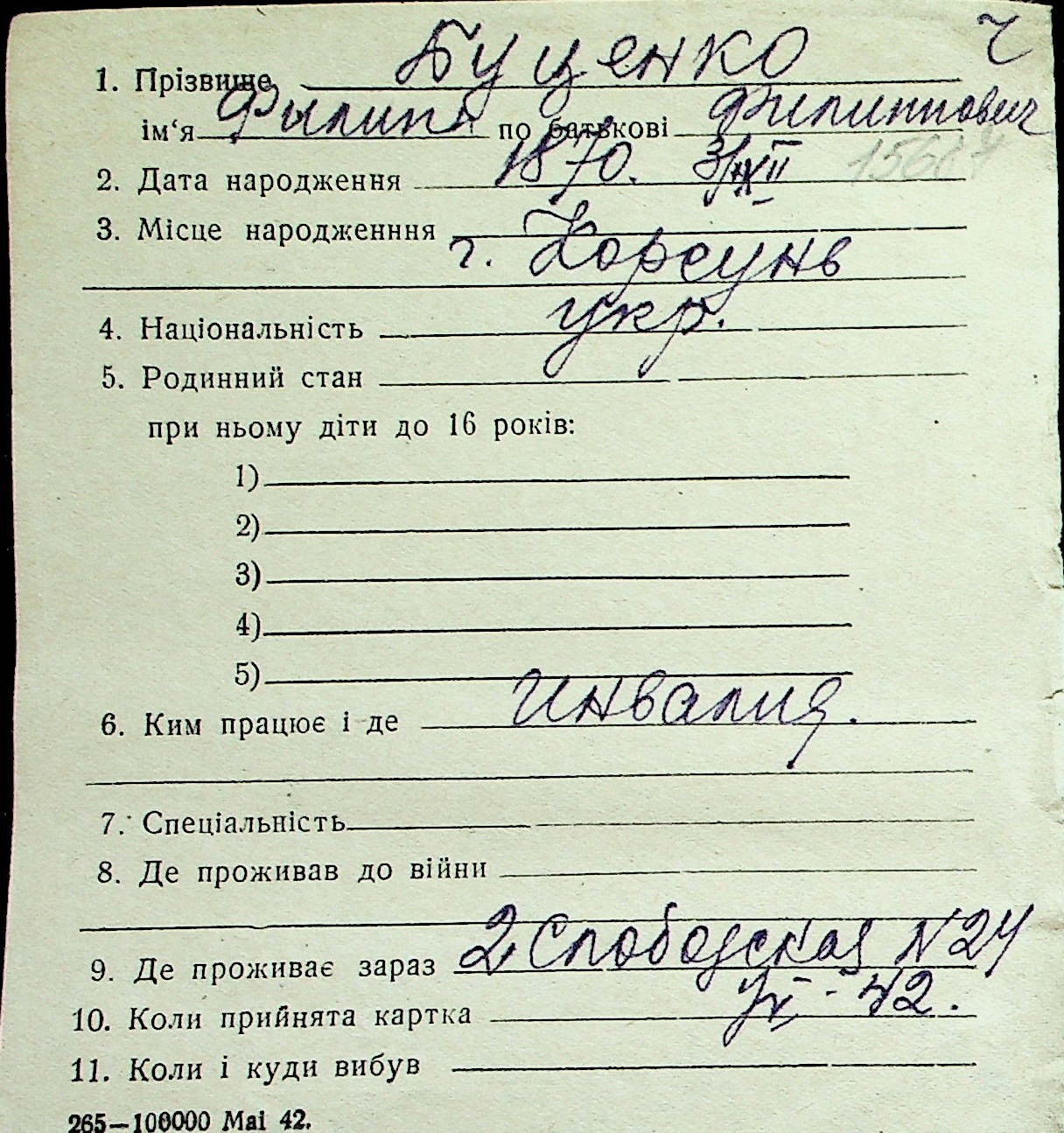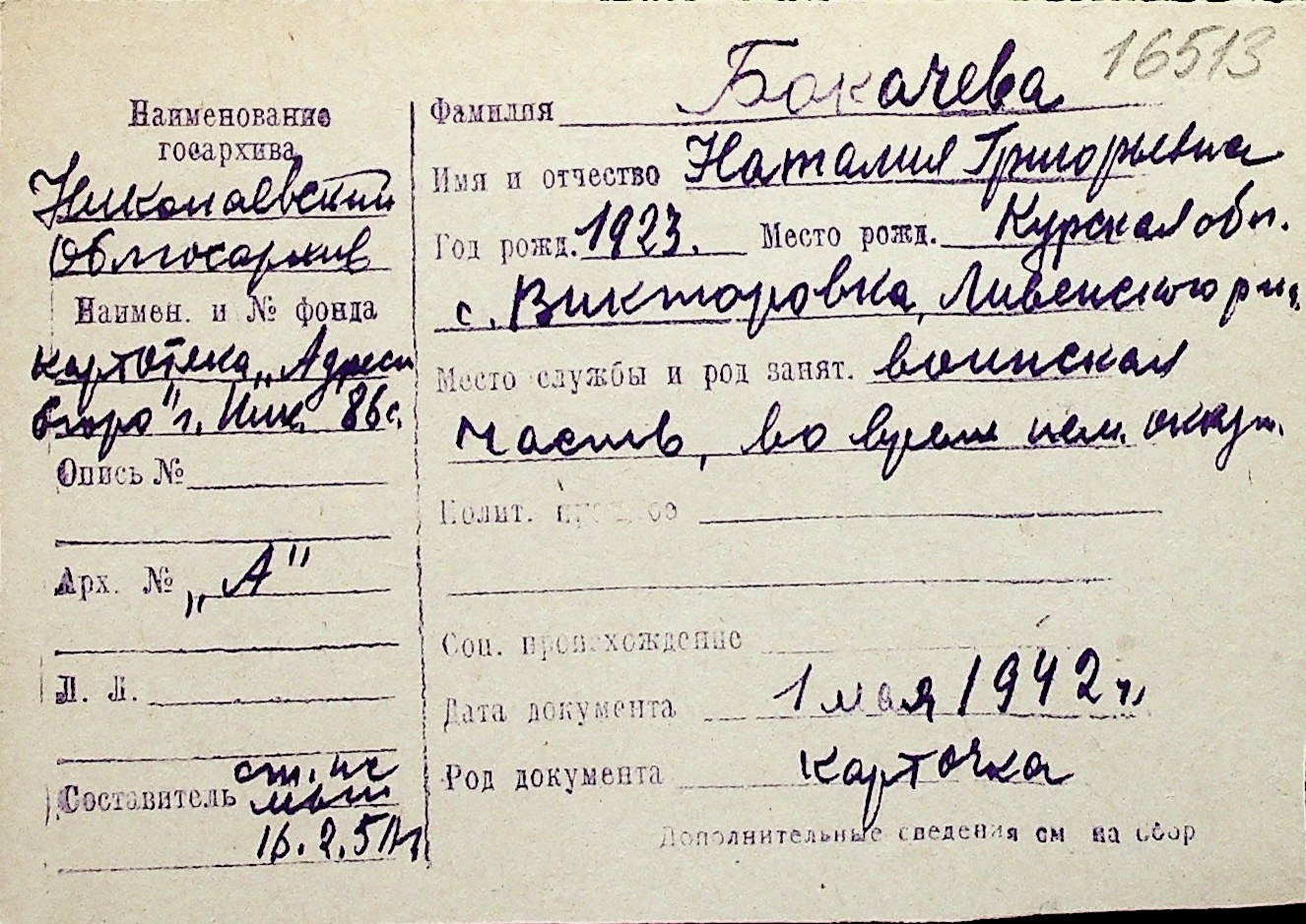 ◦ ◦ Перелік карток на осіб, які мешкали у м. Миколаїв у період окупації 1941–1944 років