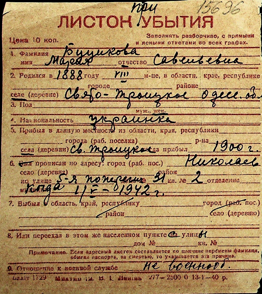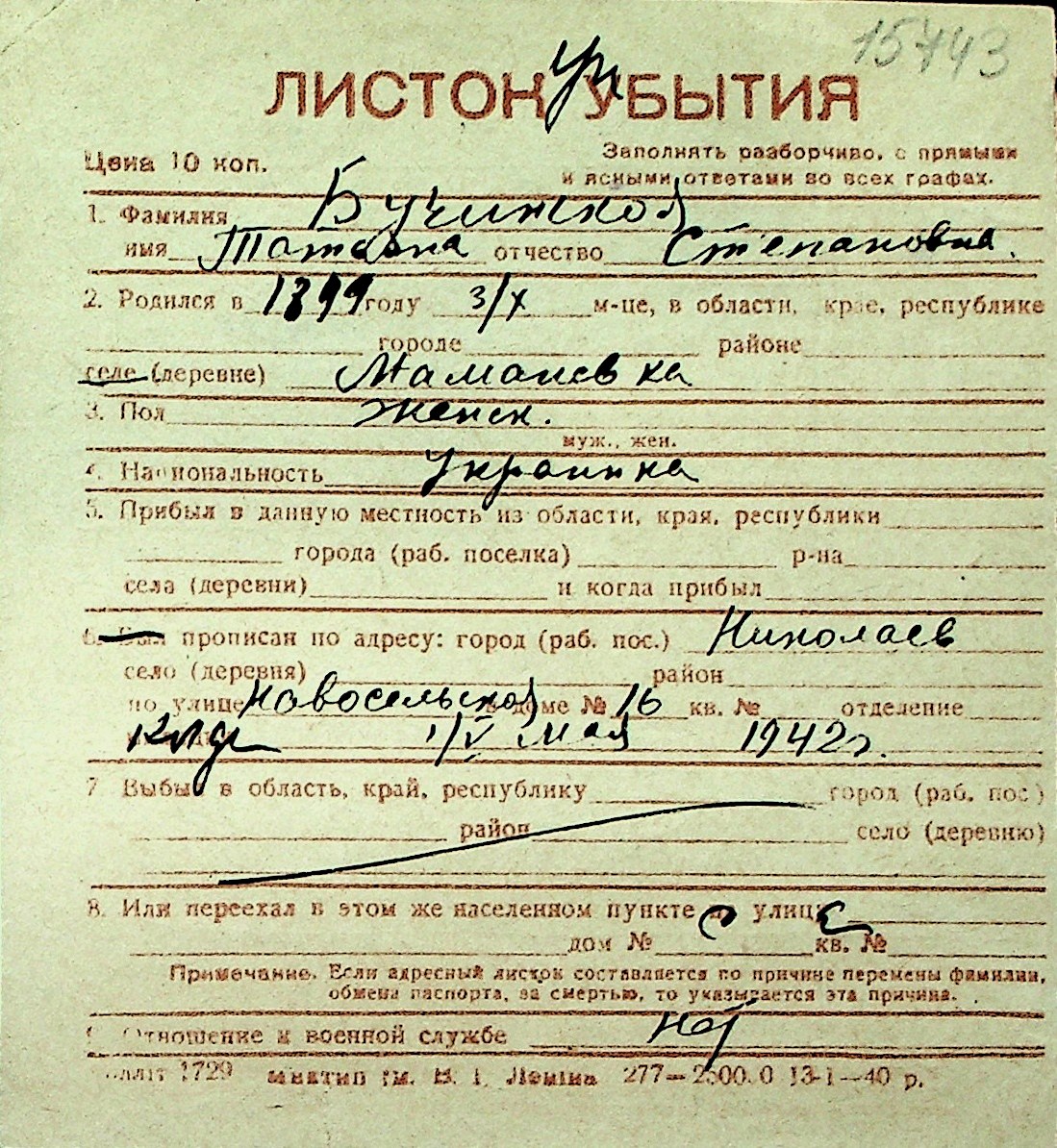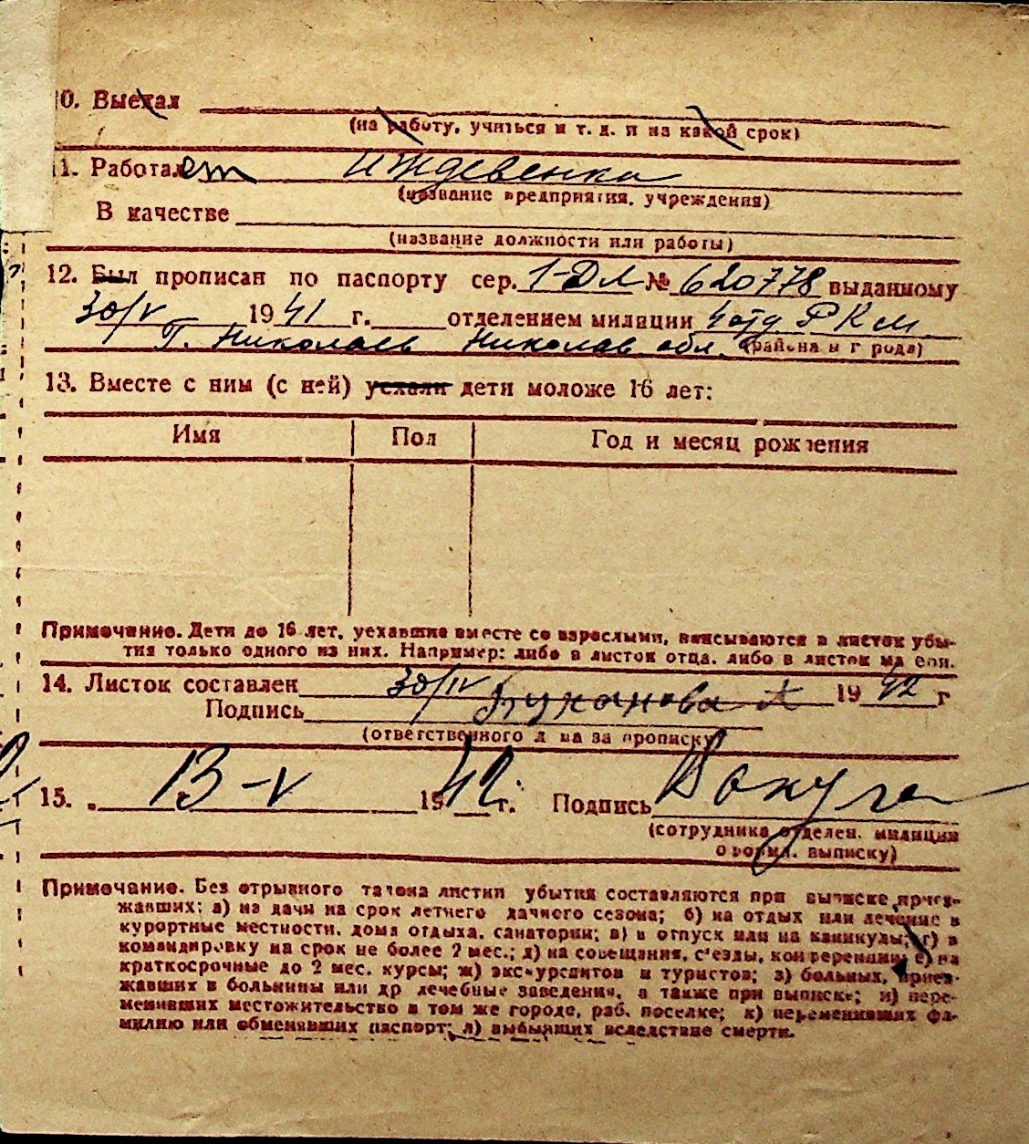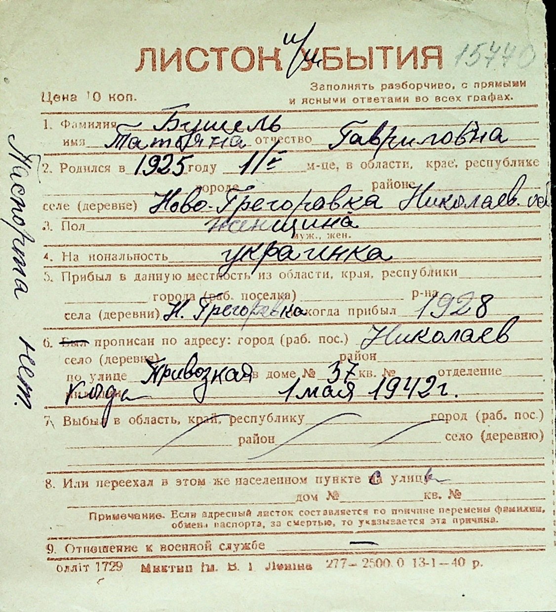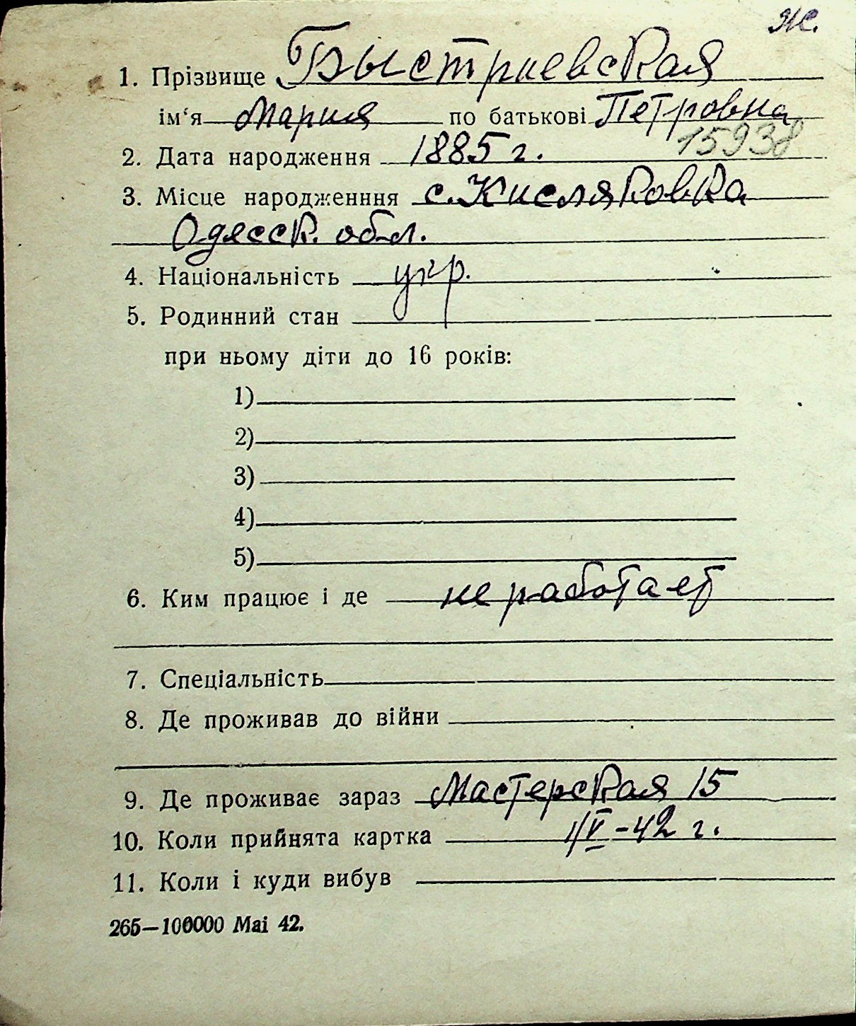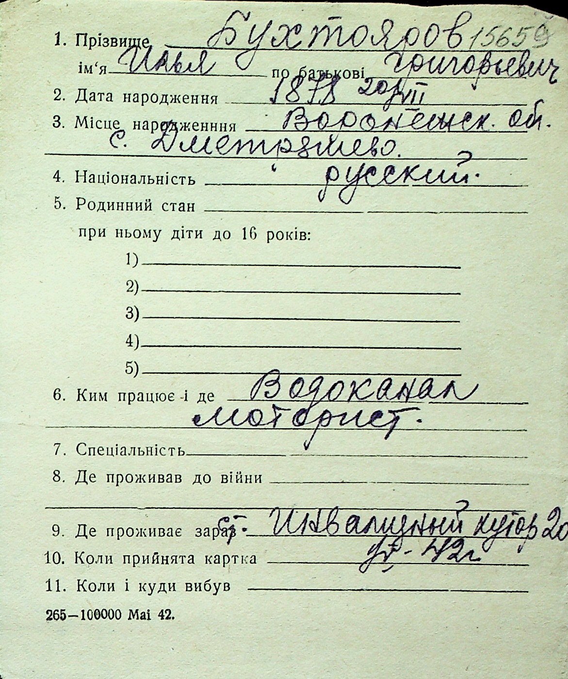 ◦ ◦ Перелік карток на осіб, які мешкали у м. Миколаїв у період окупації 1941–1944 років
