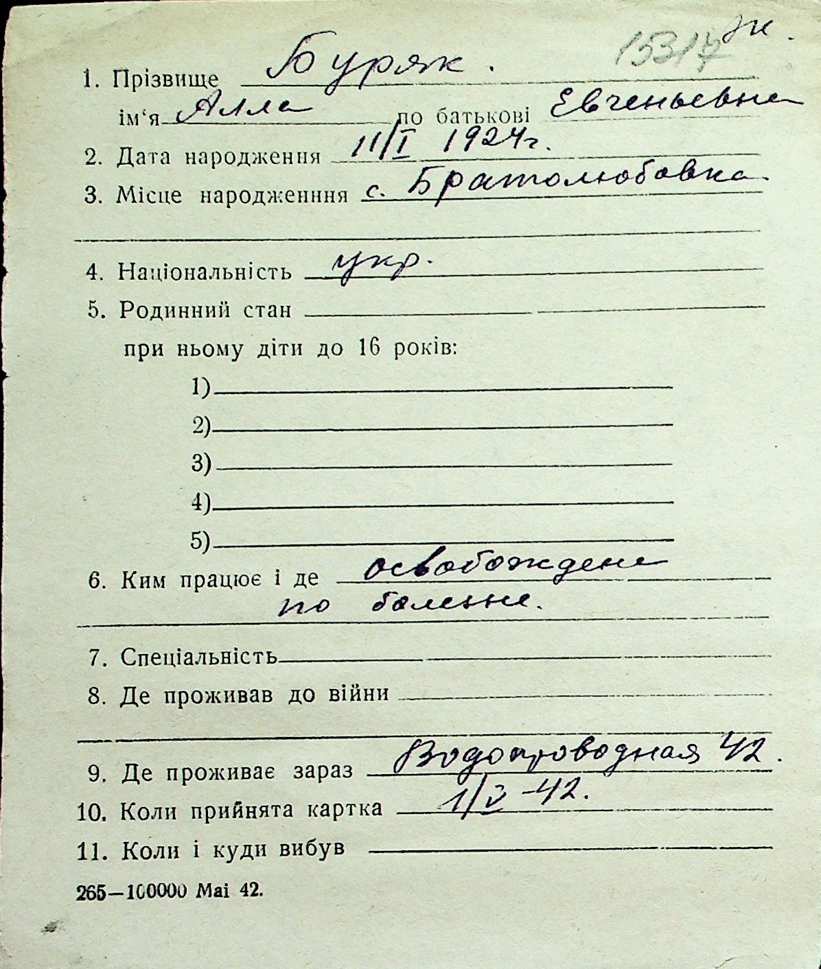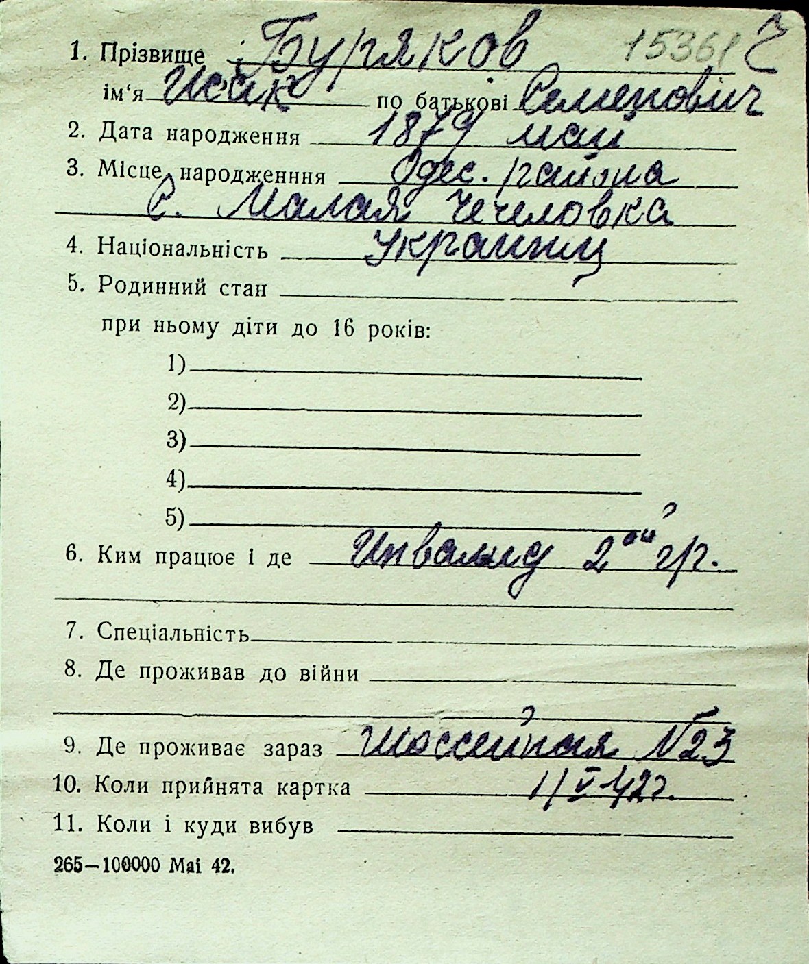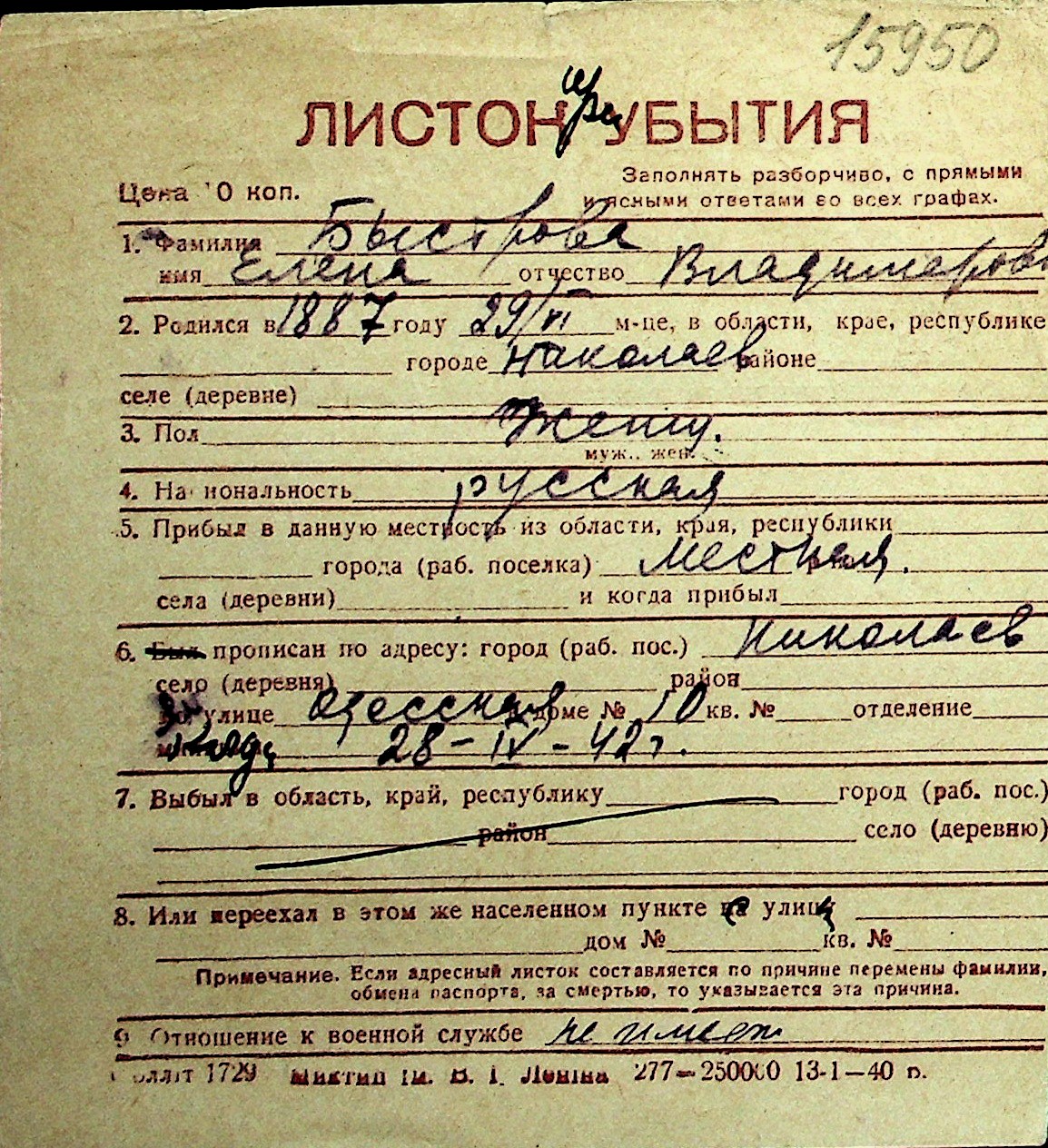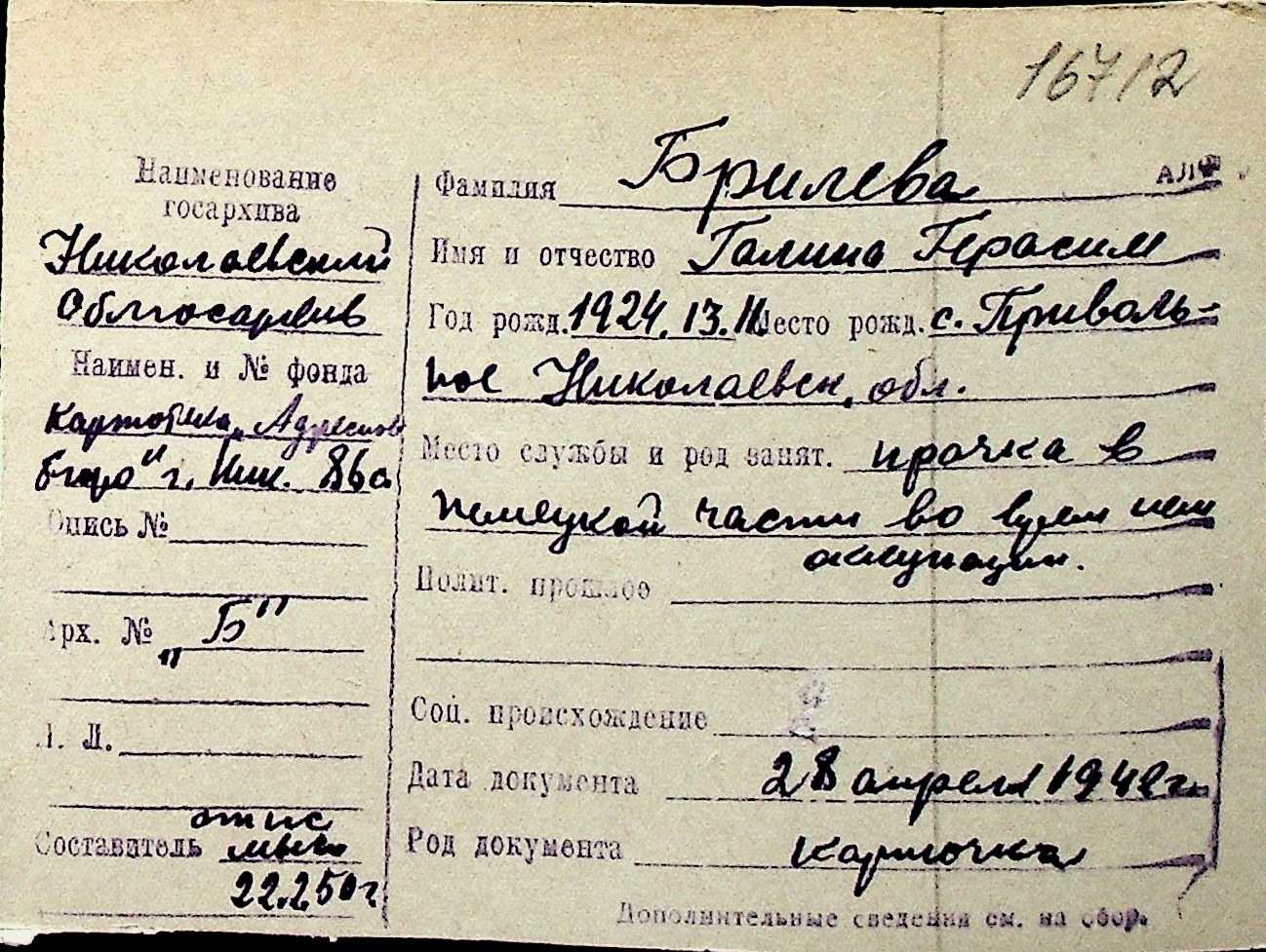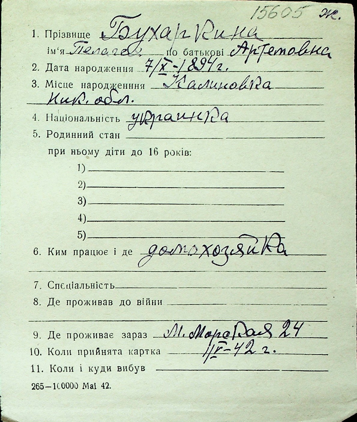 ◦ ◦ Перелік карток на осіб, які мешкали у м. Миколаїв у період окупації 1941–1944 років