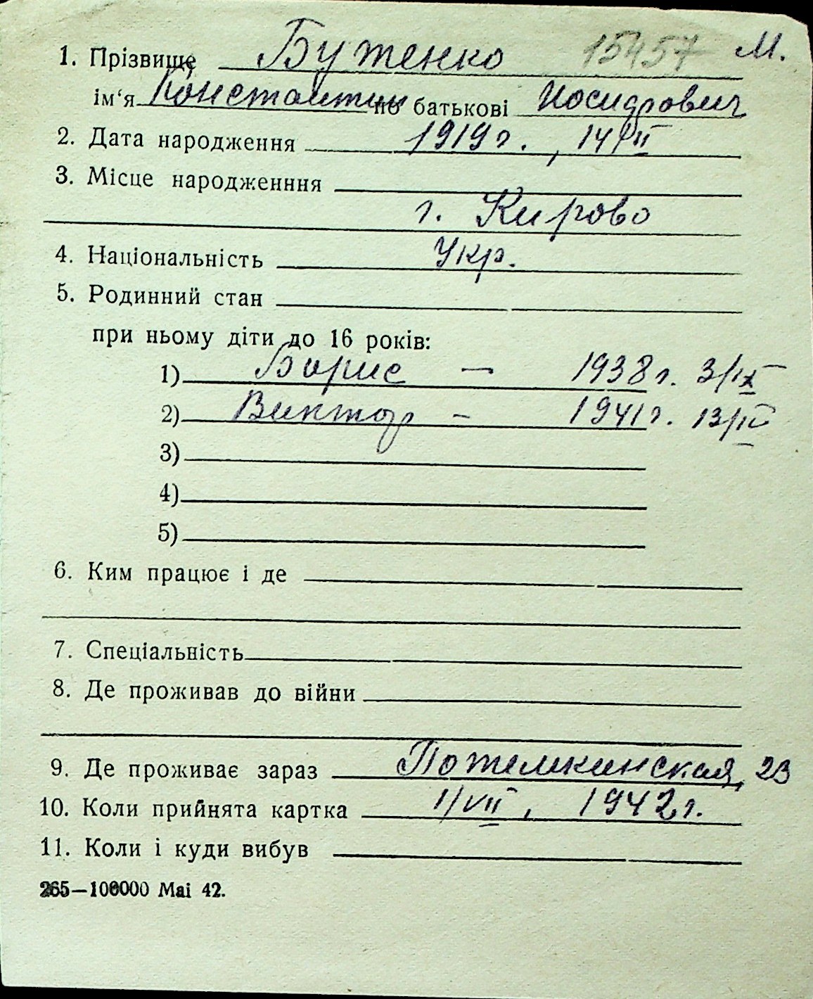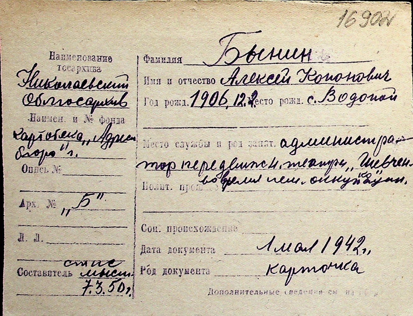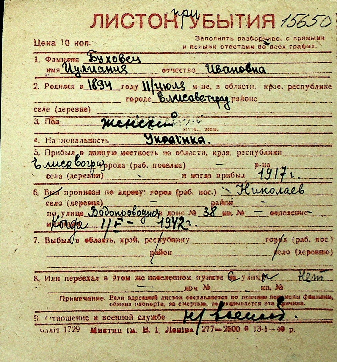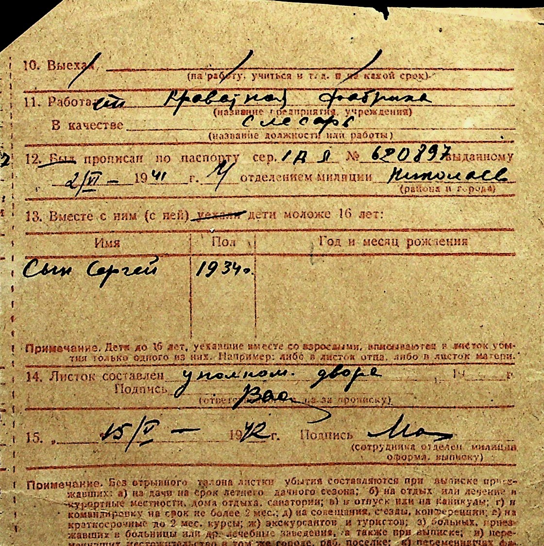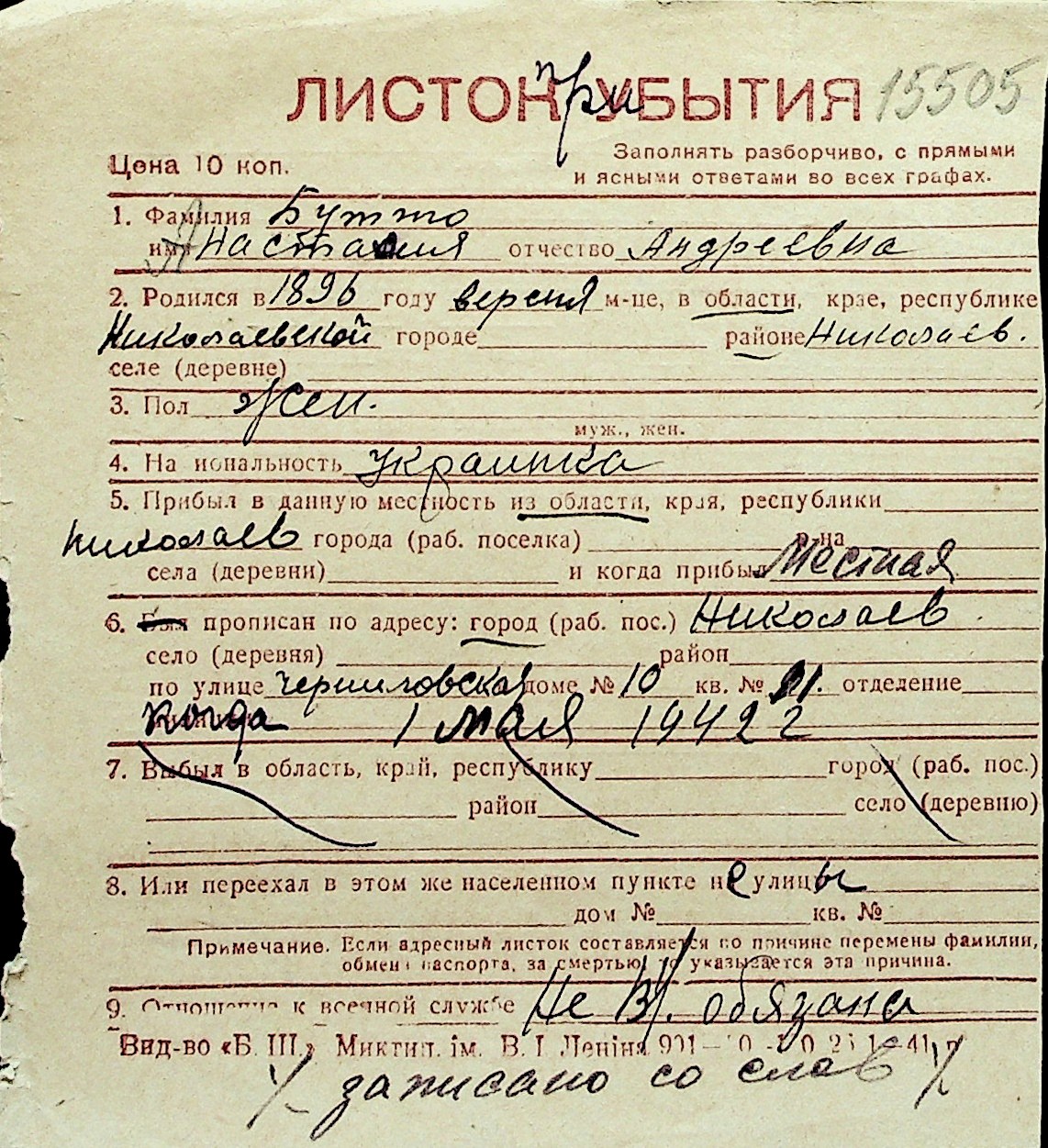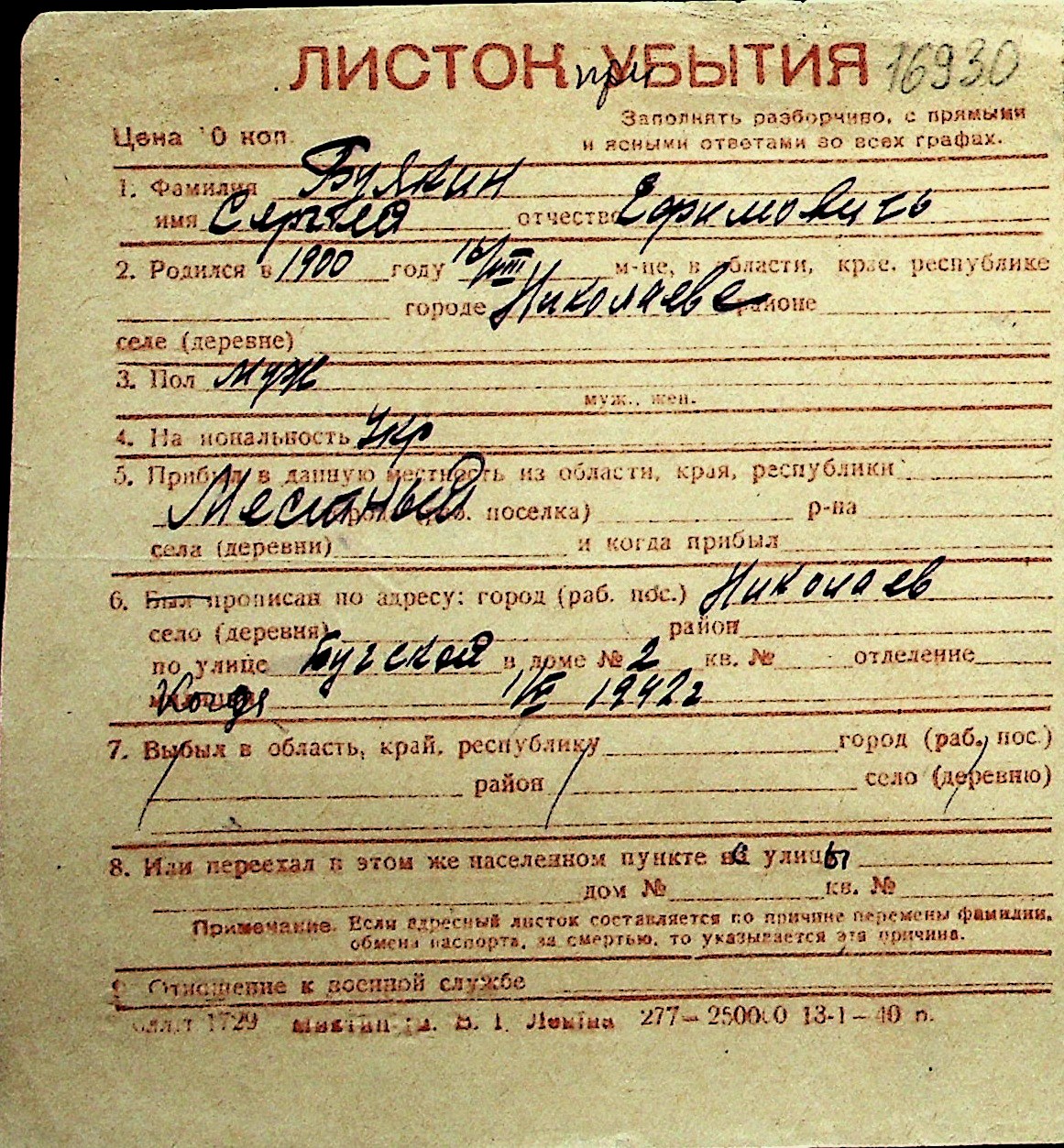 ◦ ◦ Перелік карток на осіб, які мешкали у м. Миколаїв у період окупації 1941–1944 років
