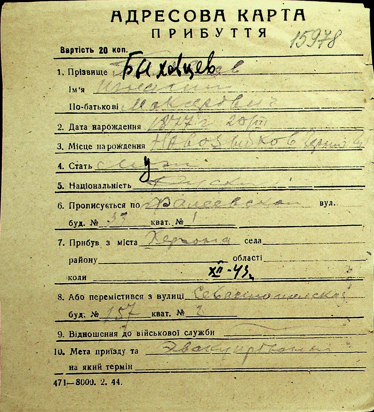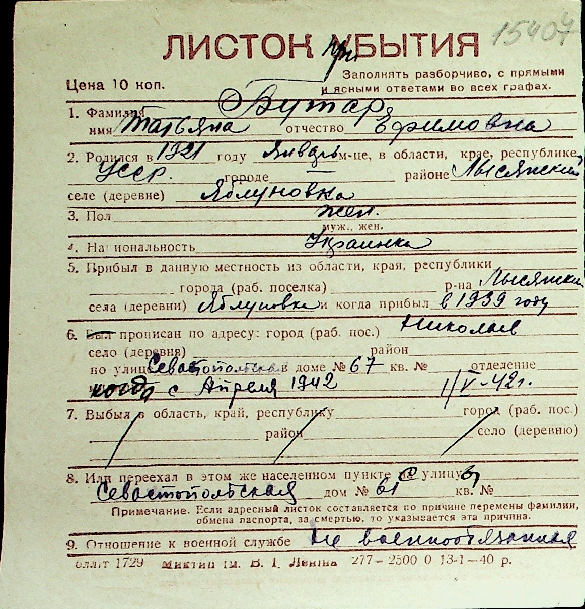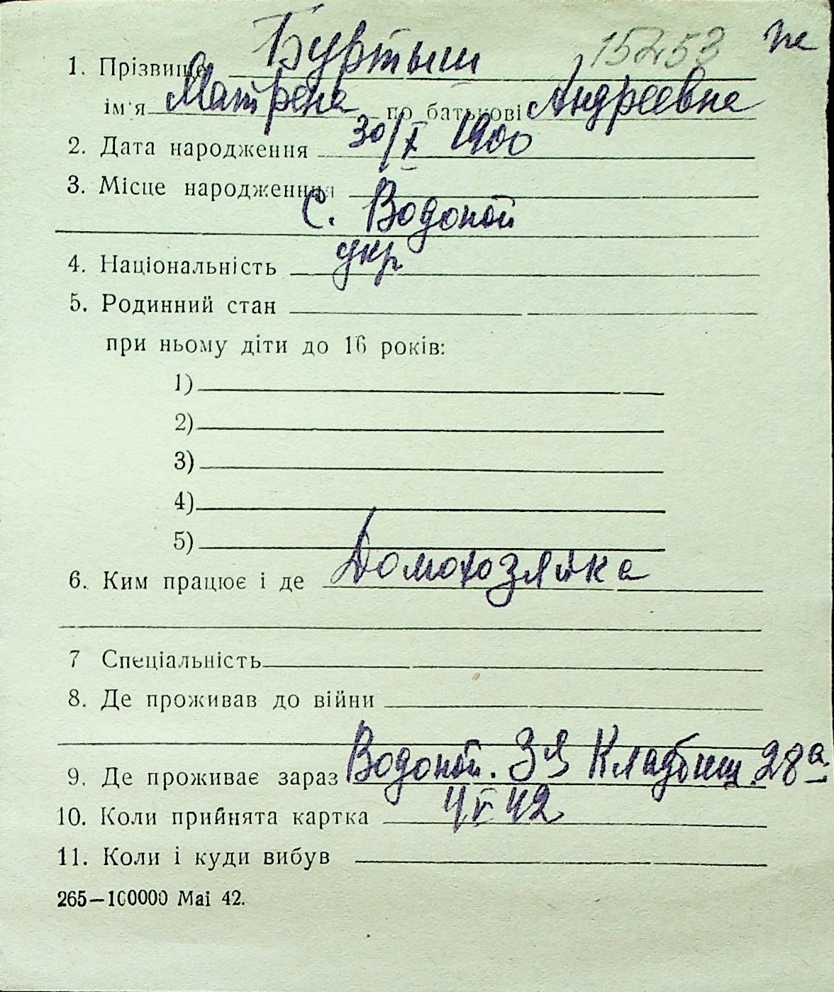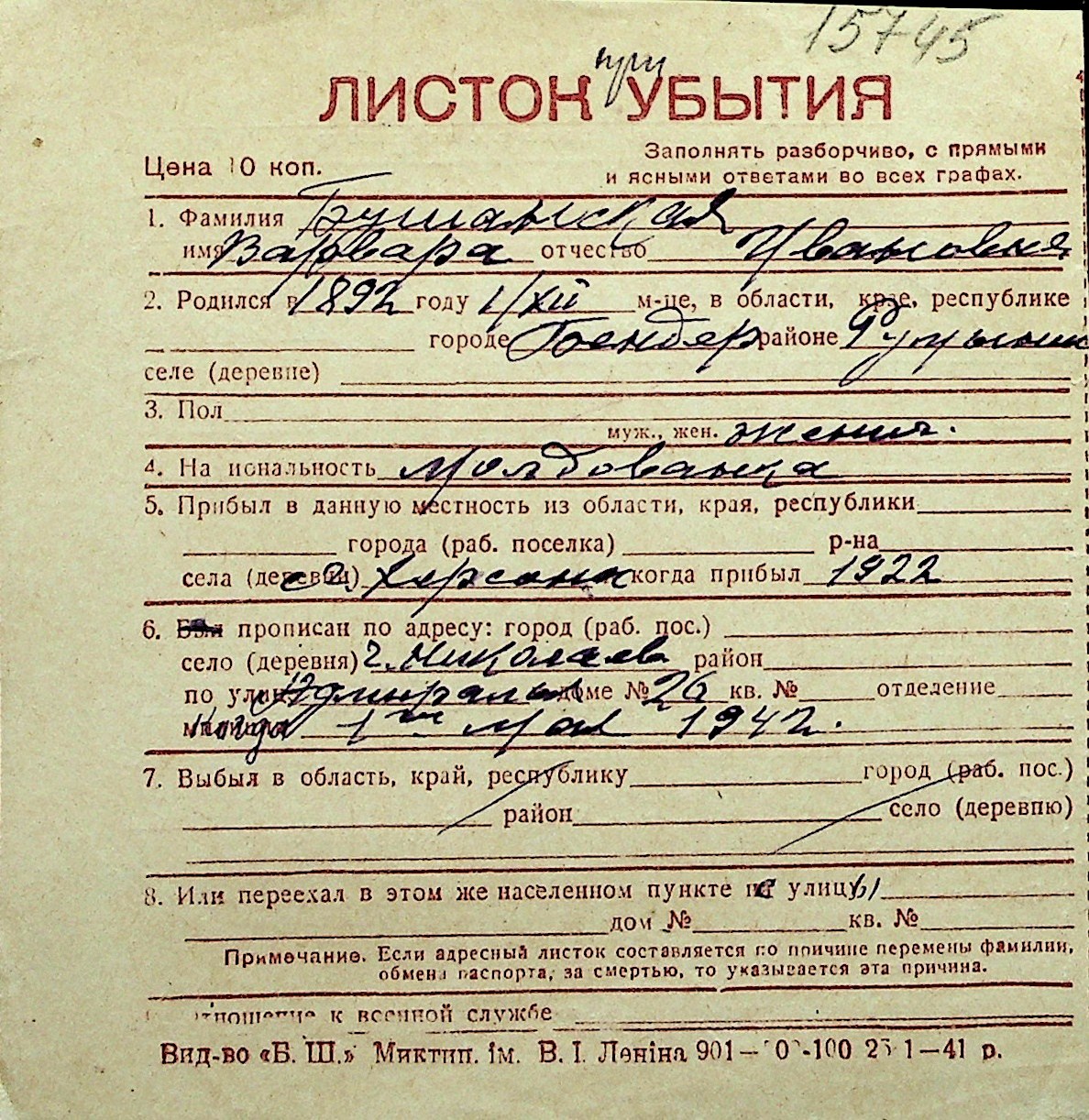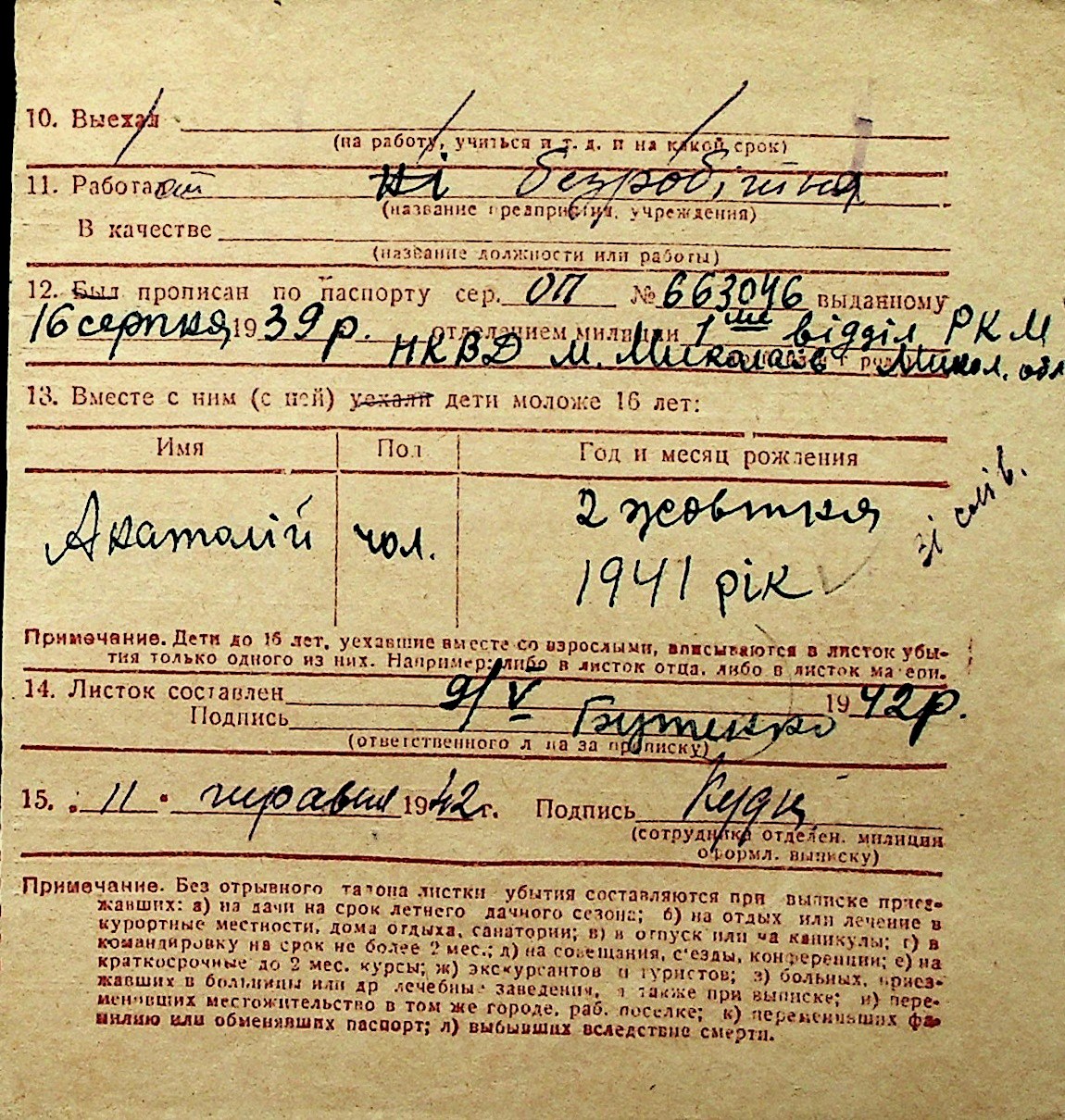 ◦ ◦ Перелік карток на осіб, які мешкали у м. Миколаїв у період окупації 1941–1944 років