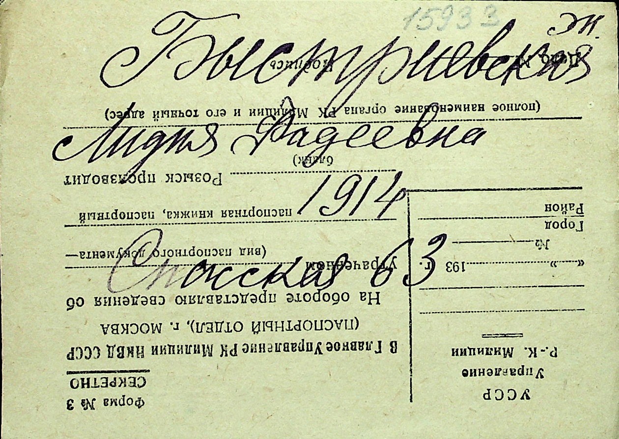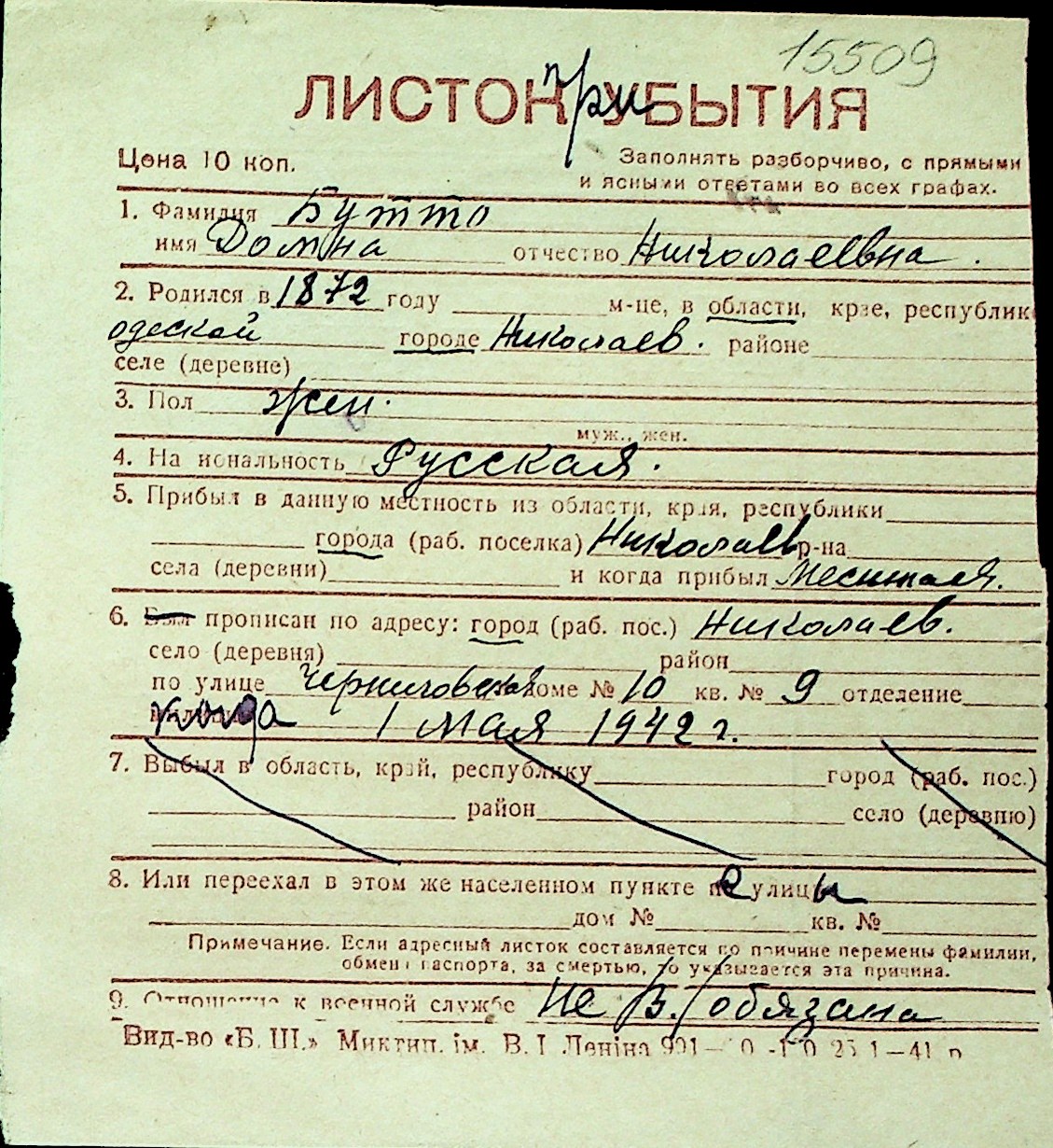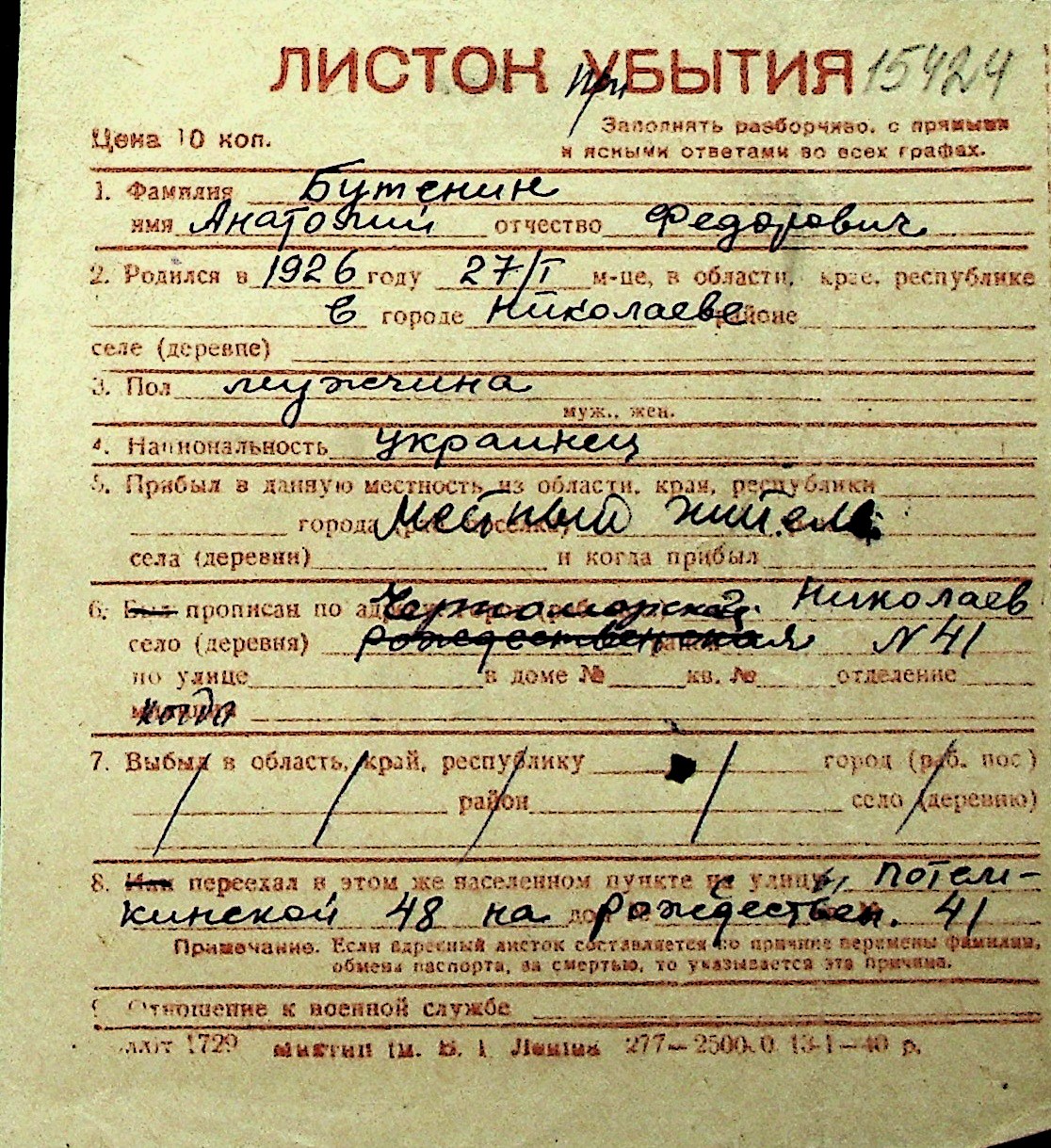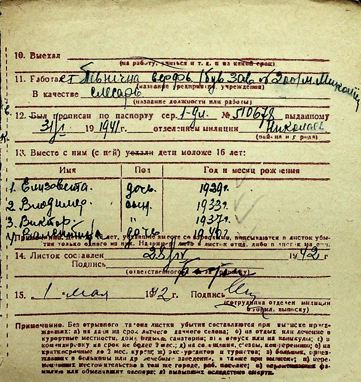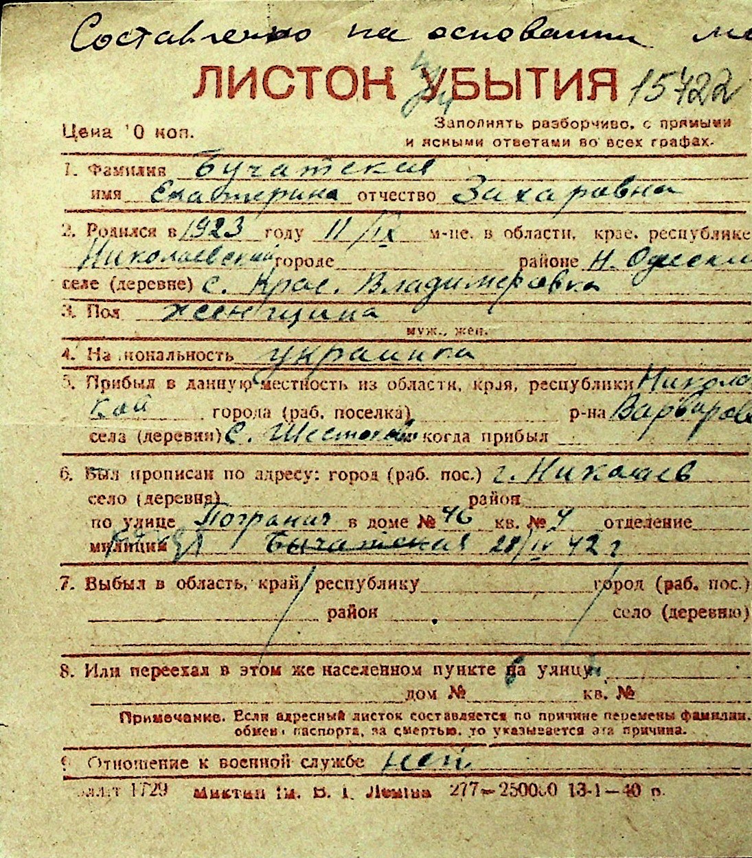 ◦ ◦ Перелік карток на осіб, які мешкали у м. Миколаїв у період окупації 1941–1944 років