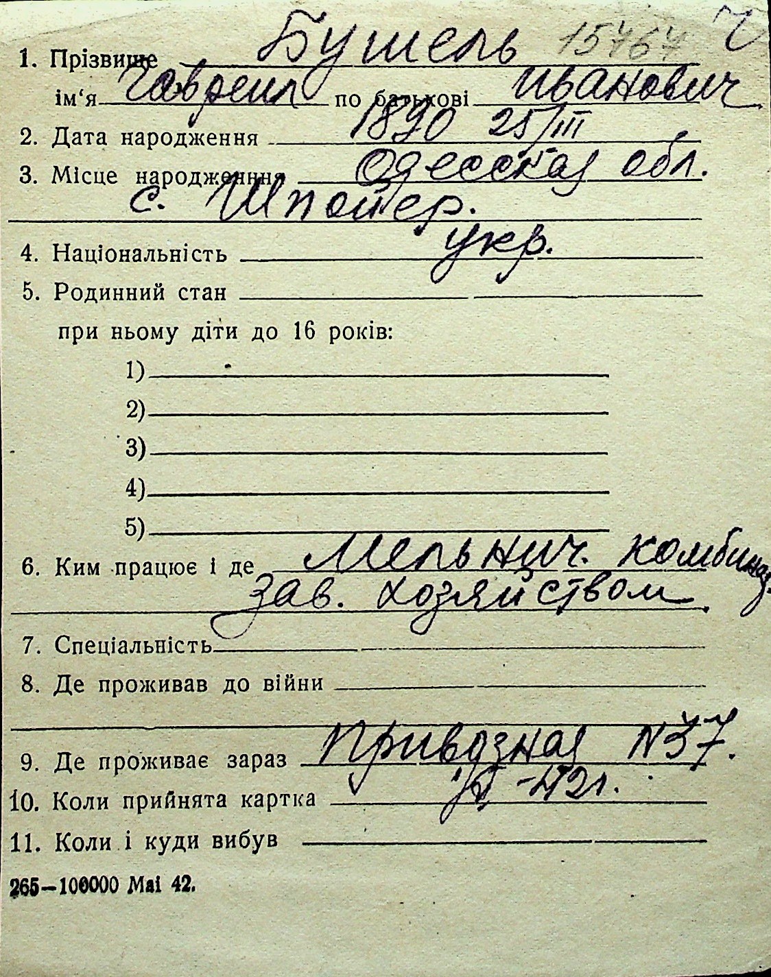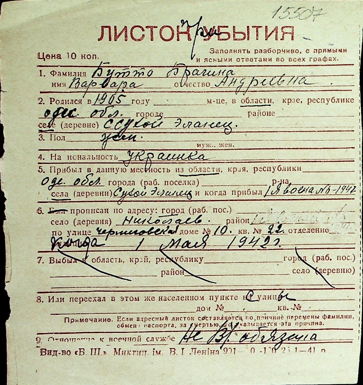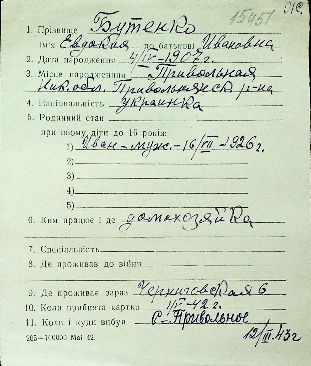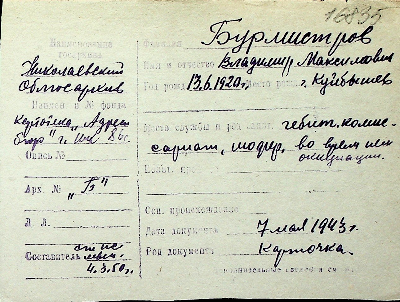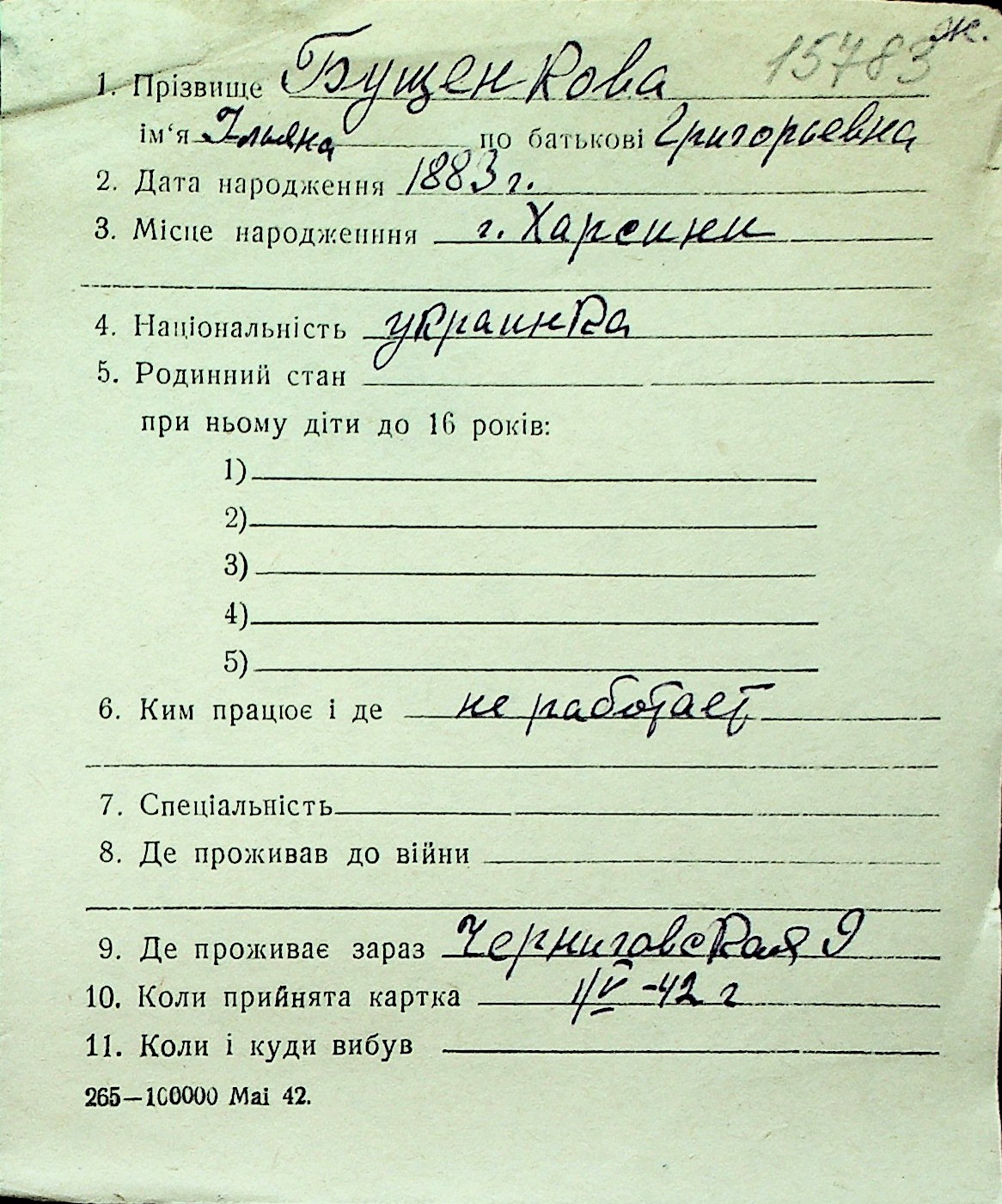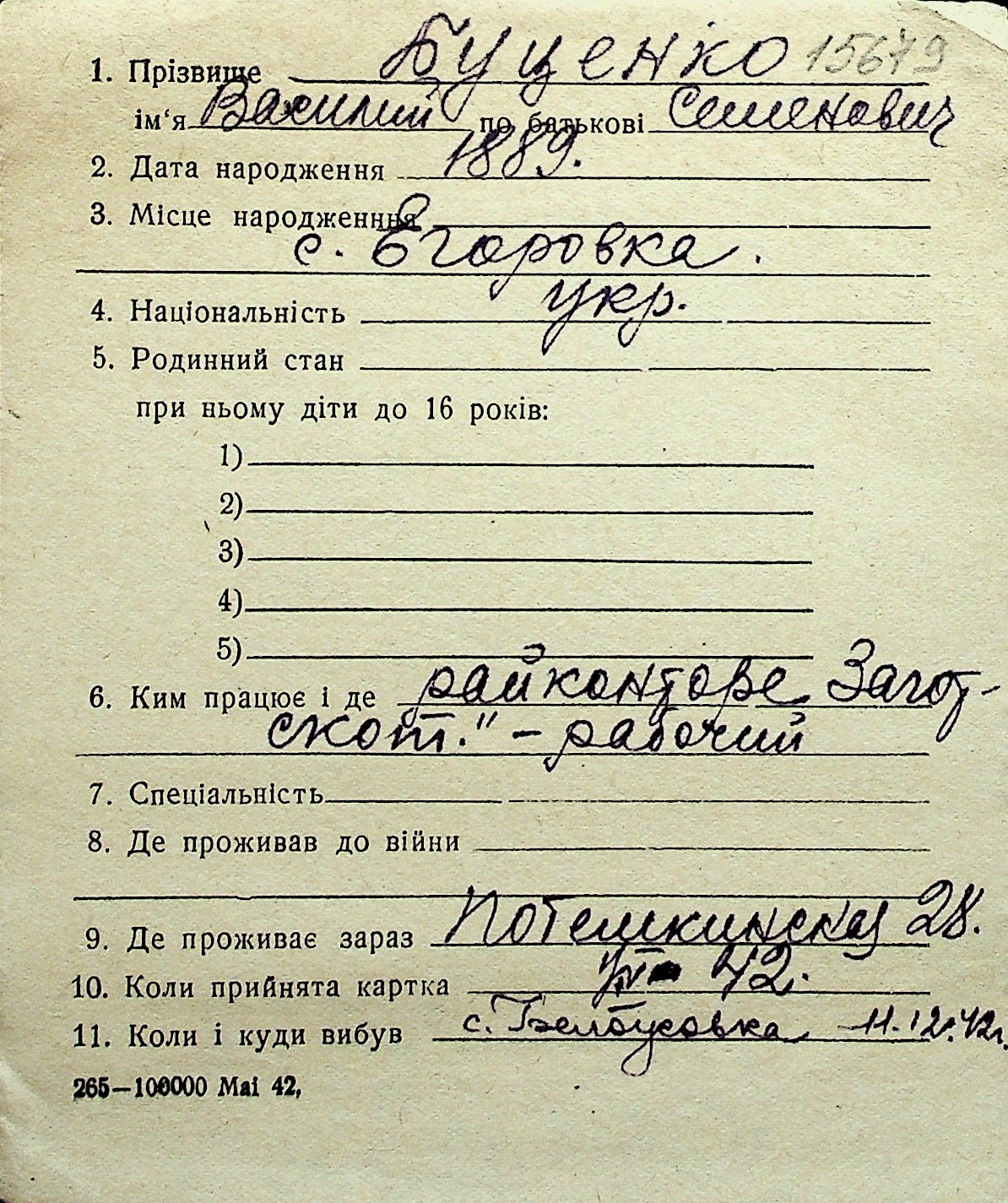 ◦ ◦ Перелік карток на осіб, які мешкали у м. Миколаїв у період окупації 1941–1944 років