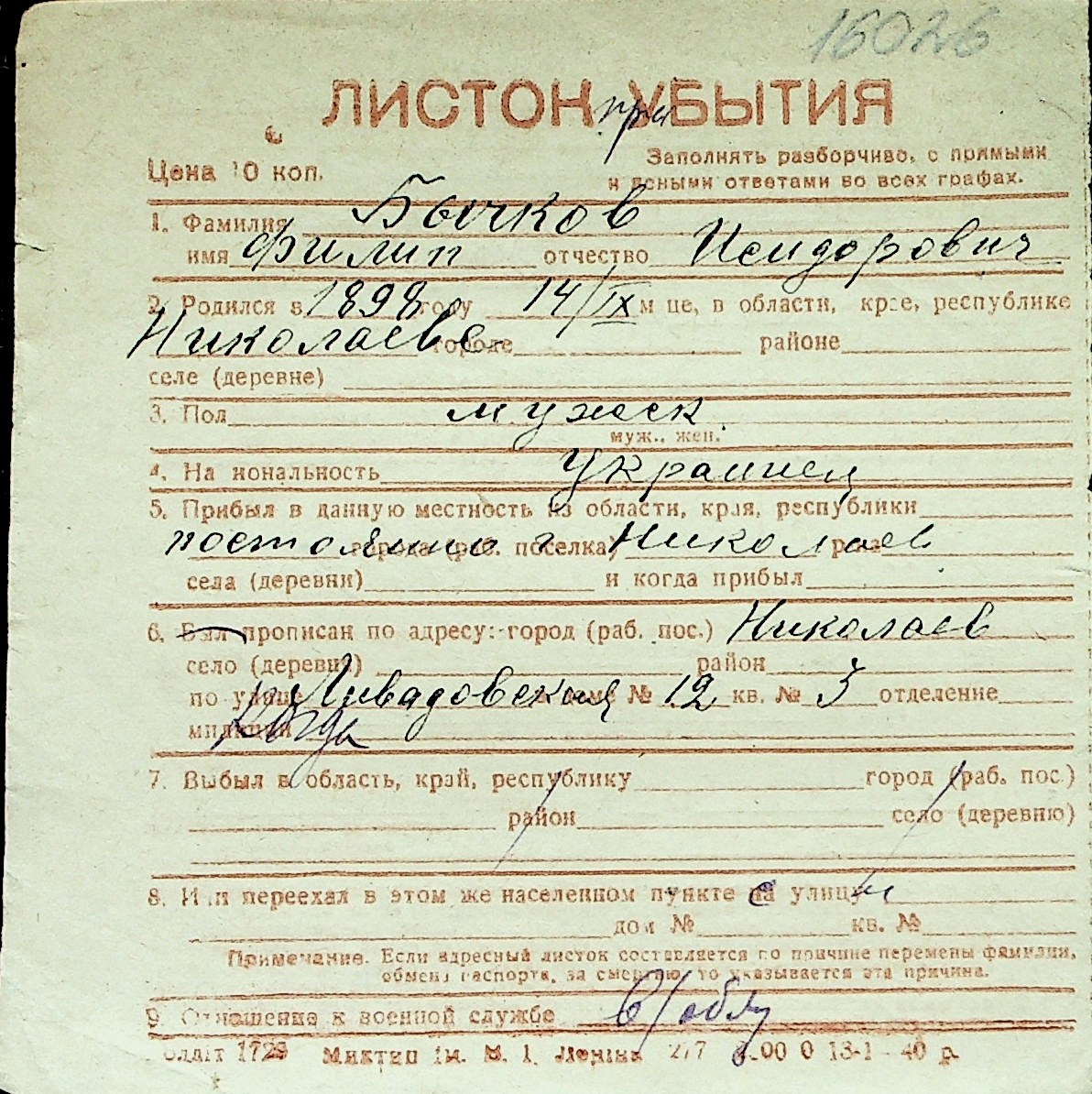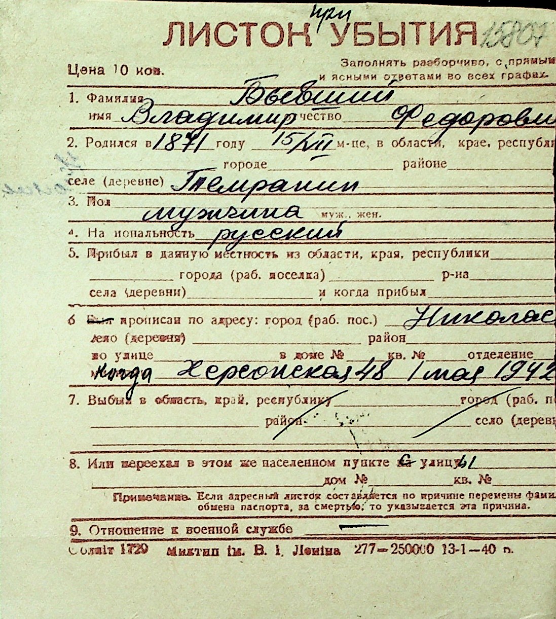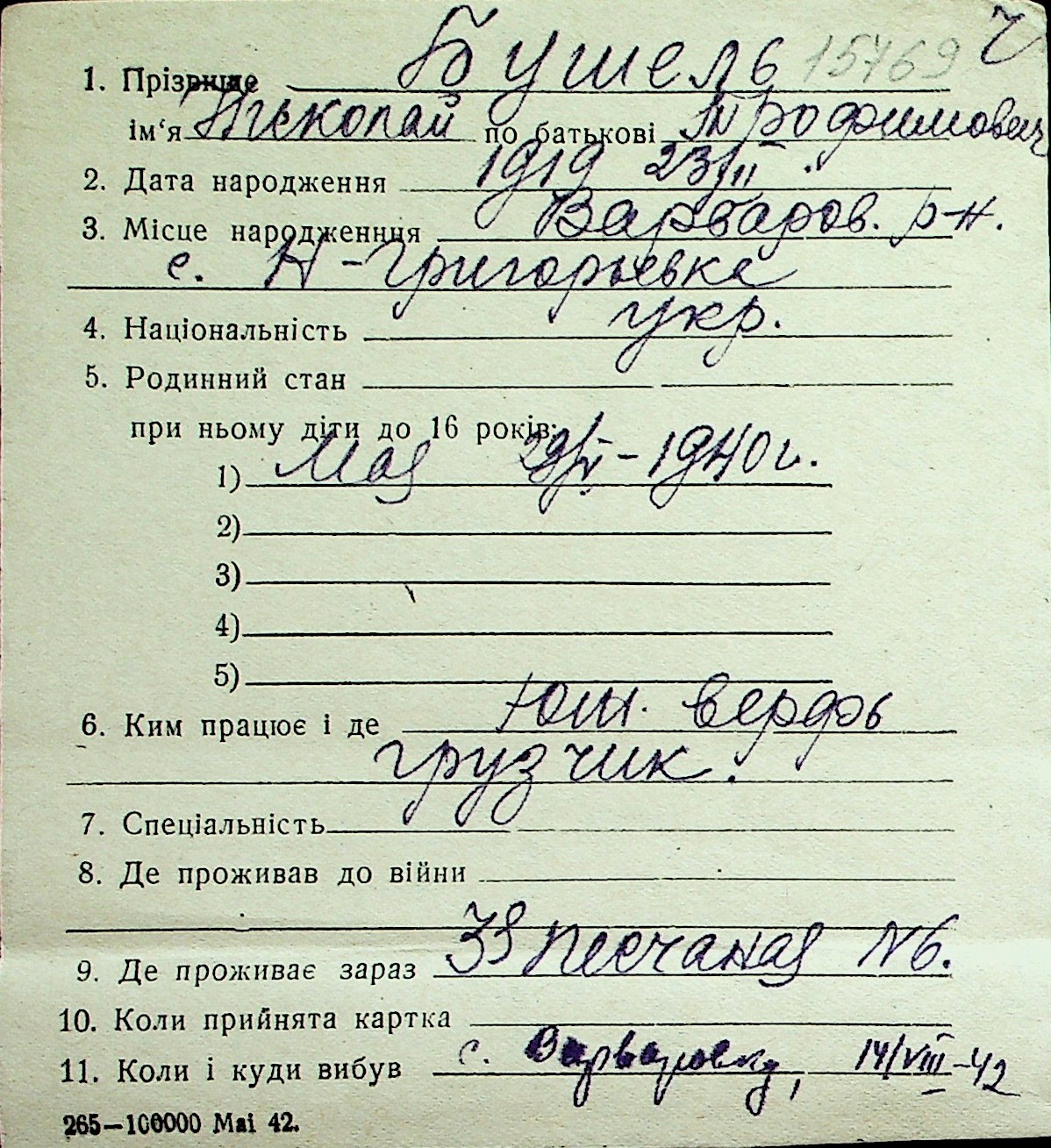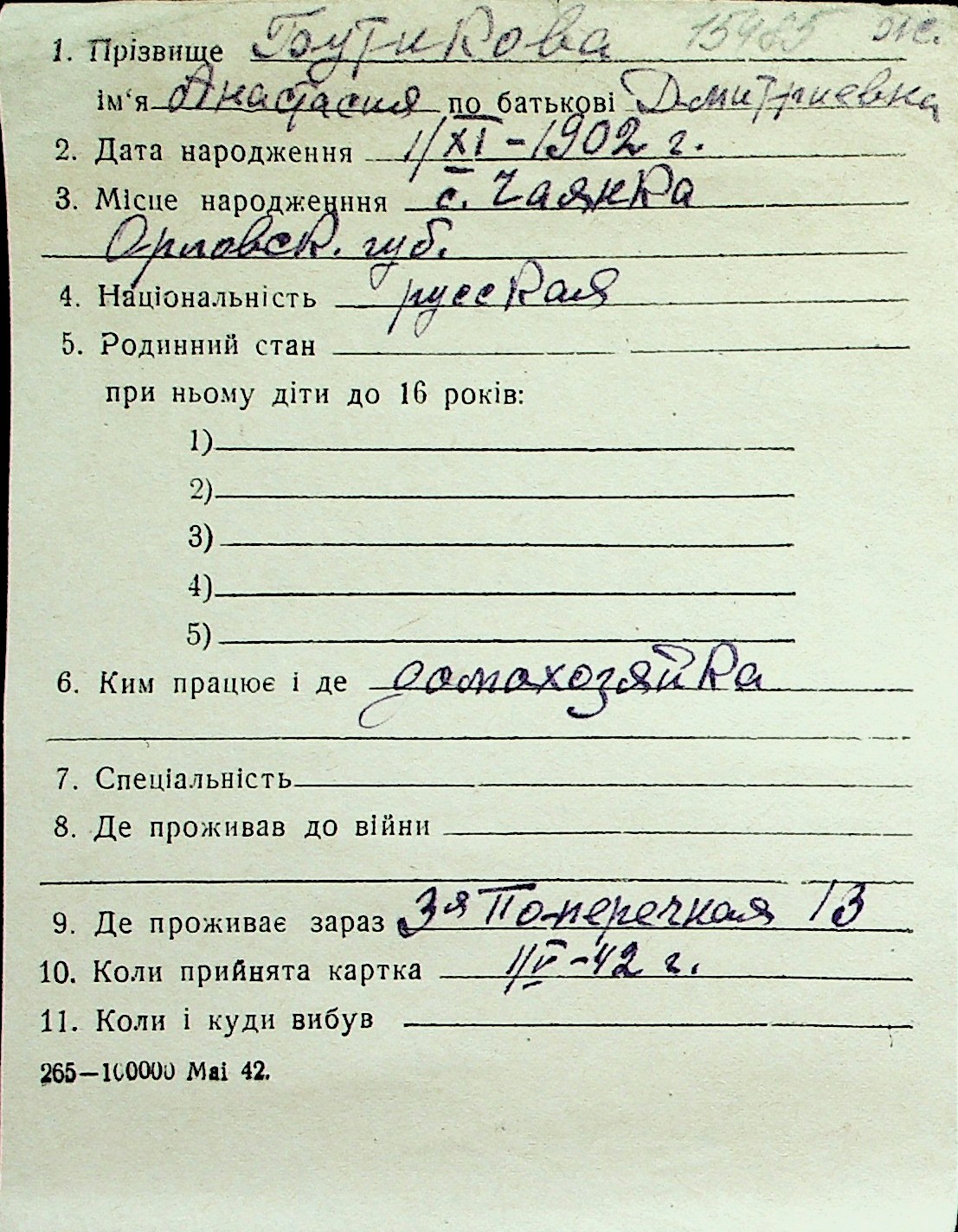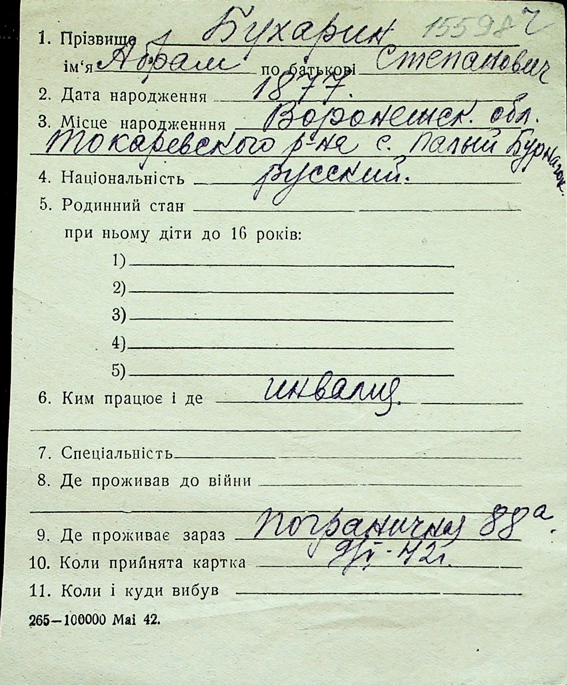 ◦ ◦ Перелік карток на осіб, які мешкали у м. Миколаїв у період окупації 1941–1944 років