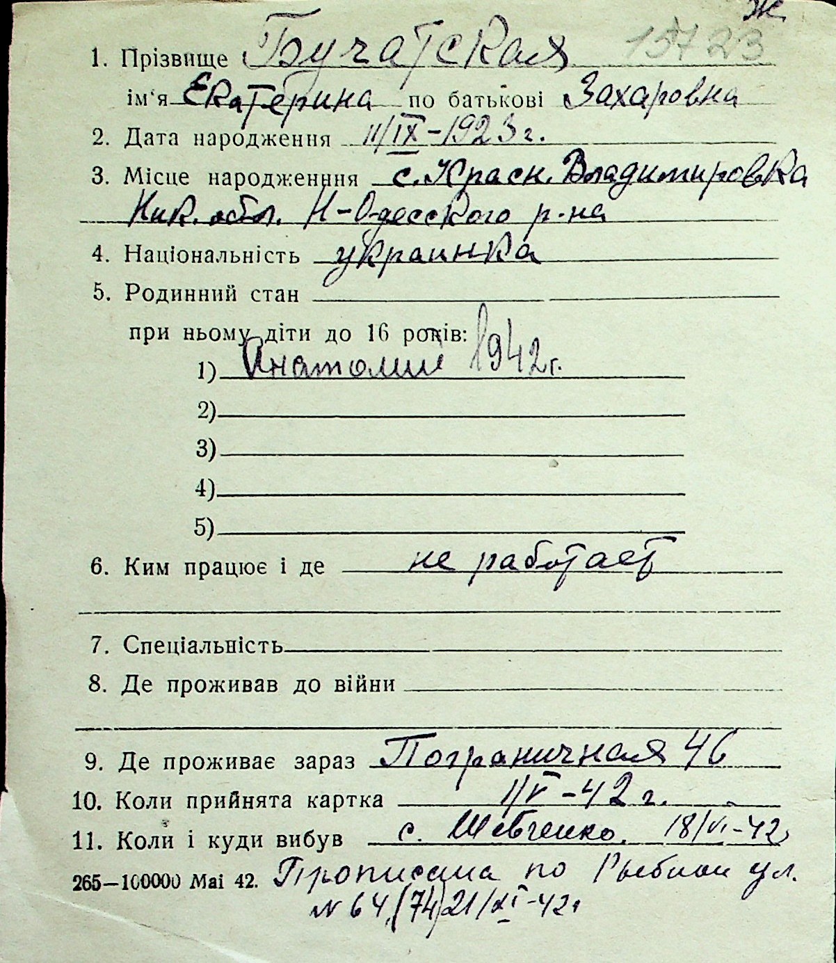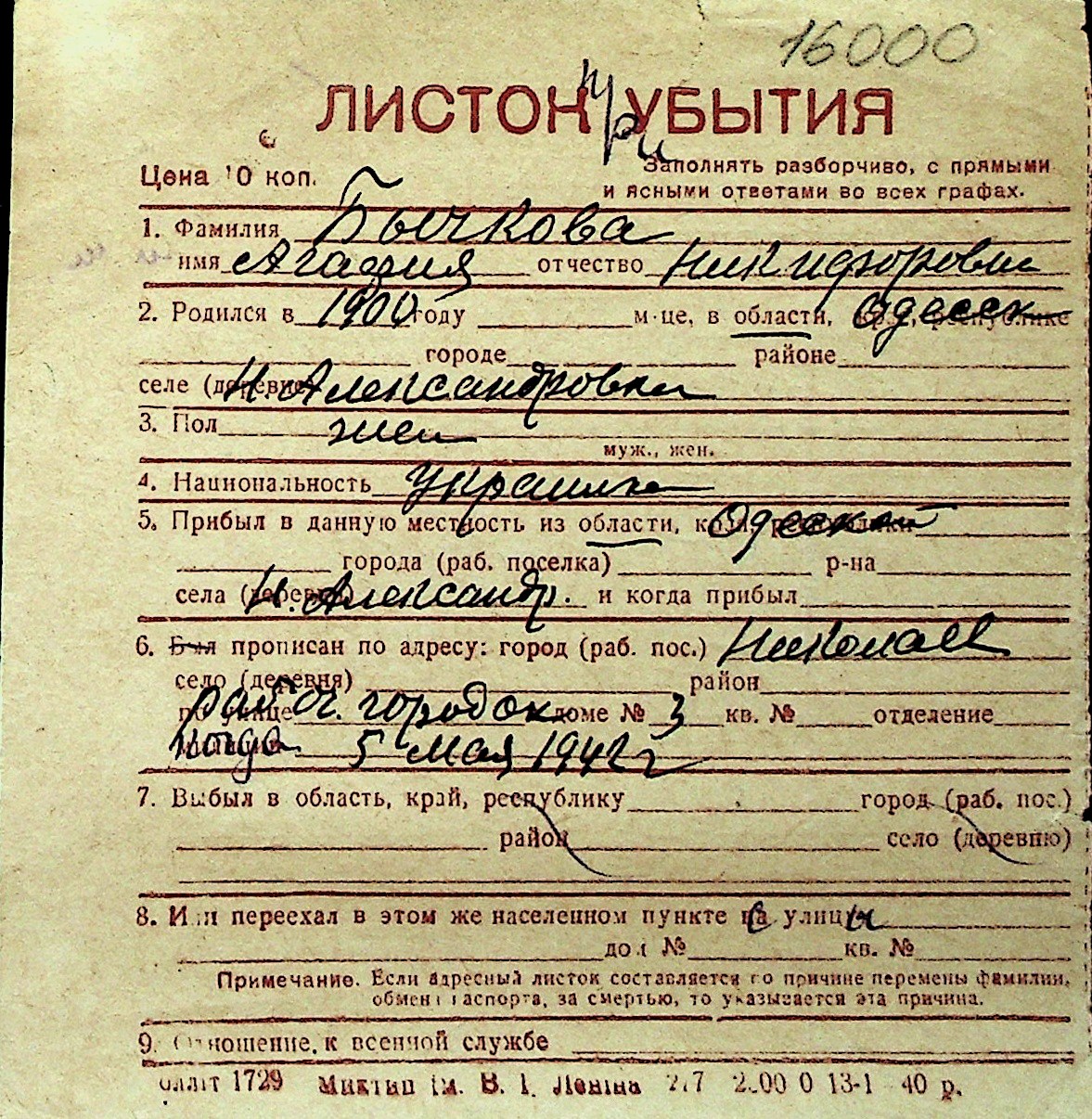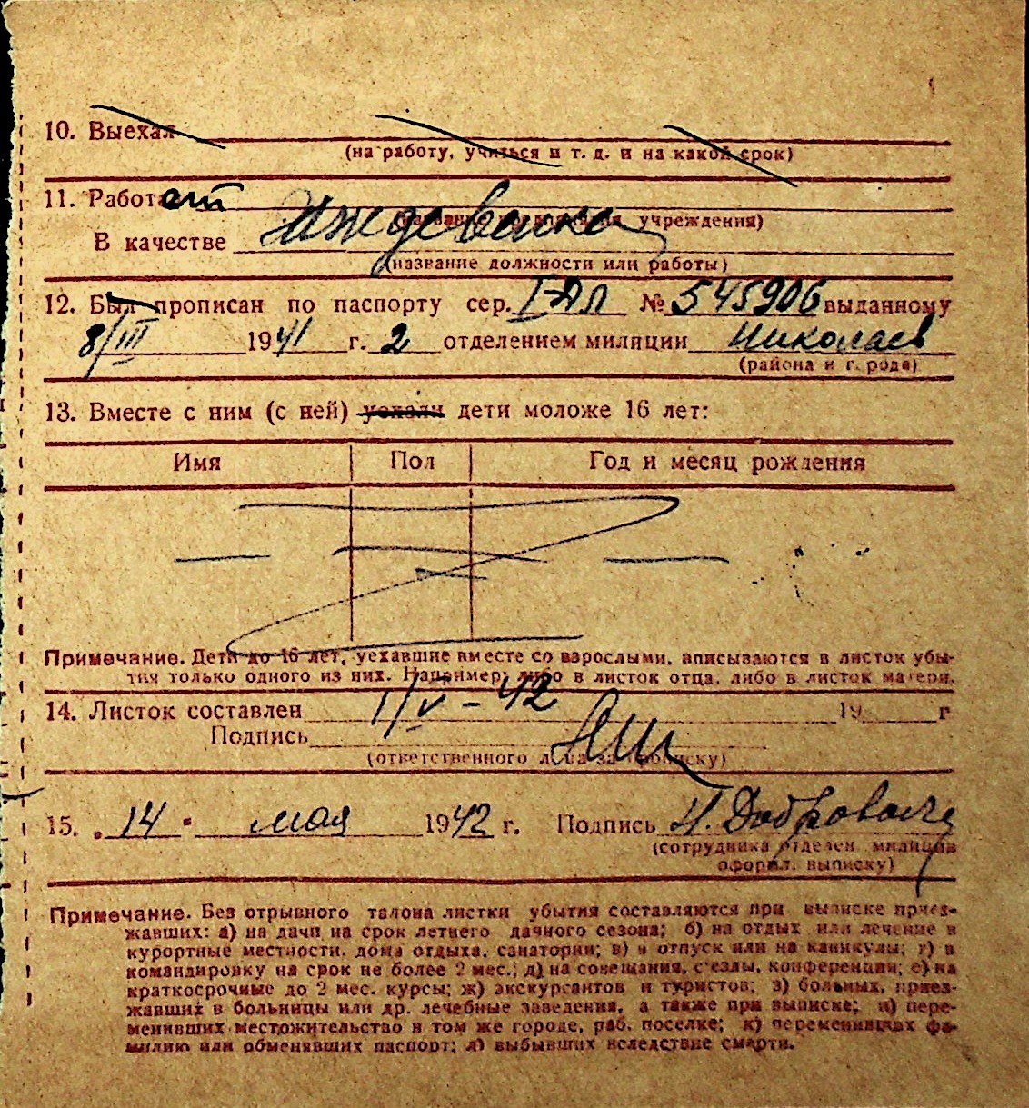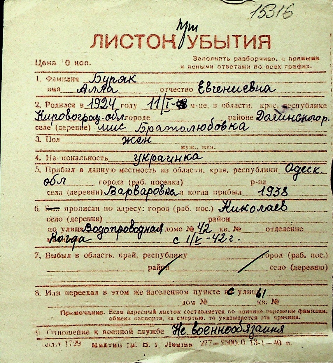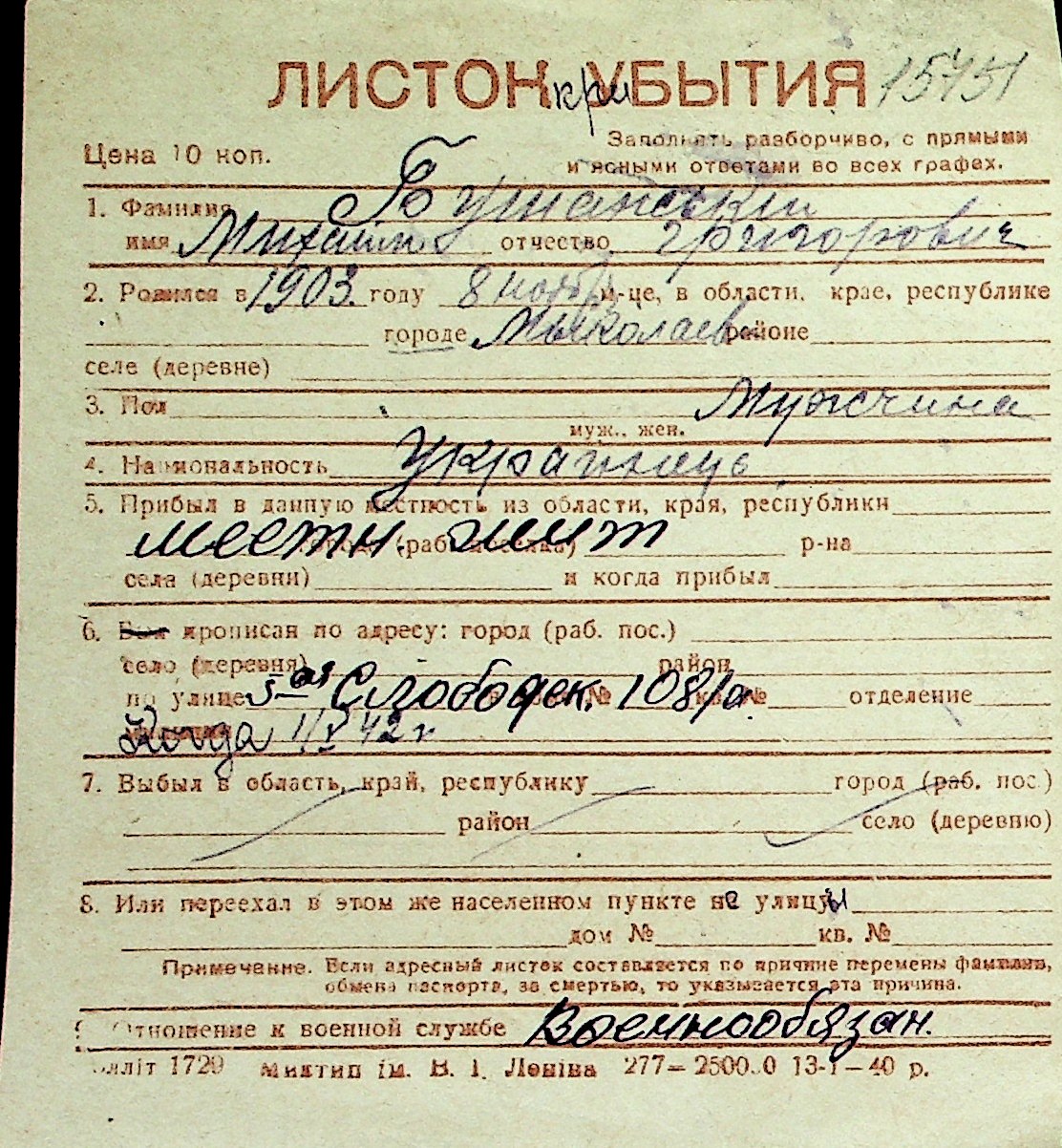 ◦ ◦ Перелік карток на осіб, які мешкали у м. Миколаїв у період окупації 1941–1944 років
