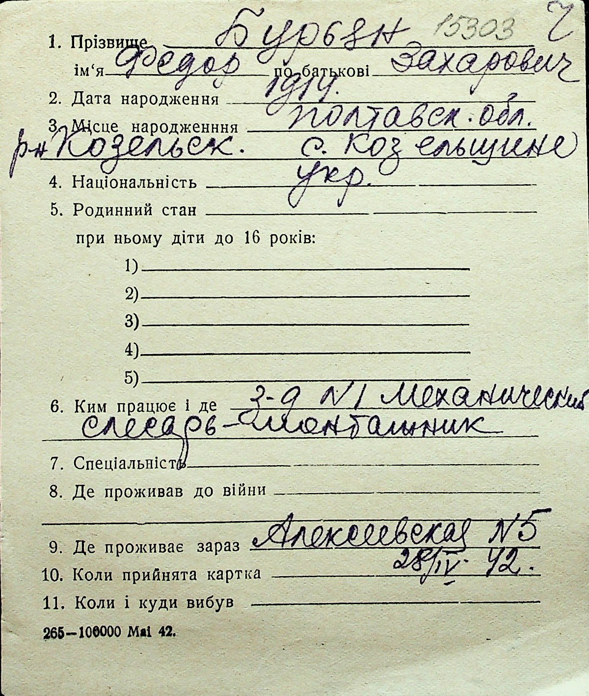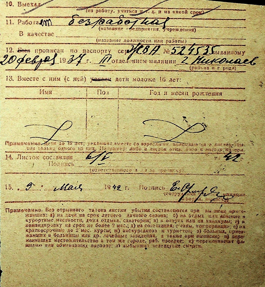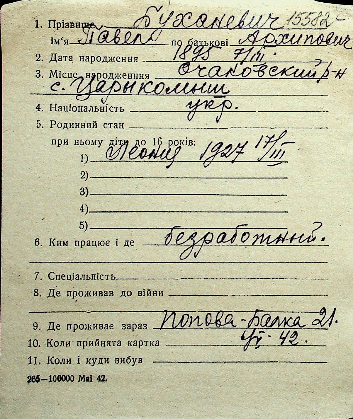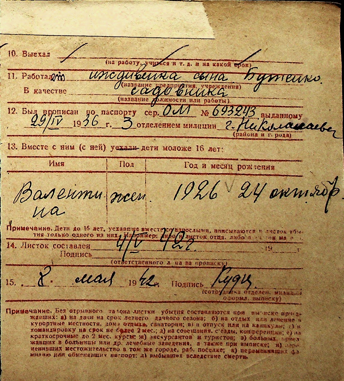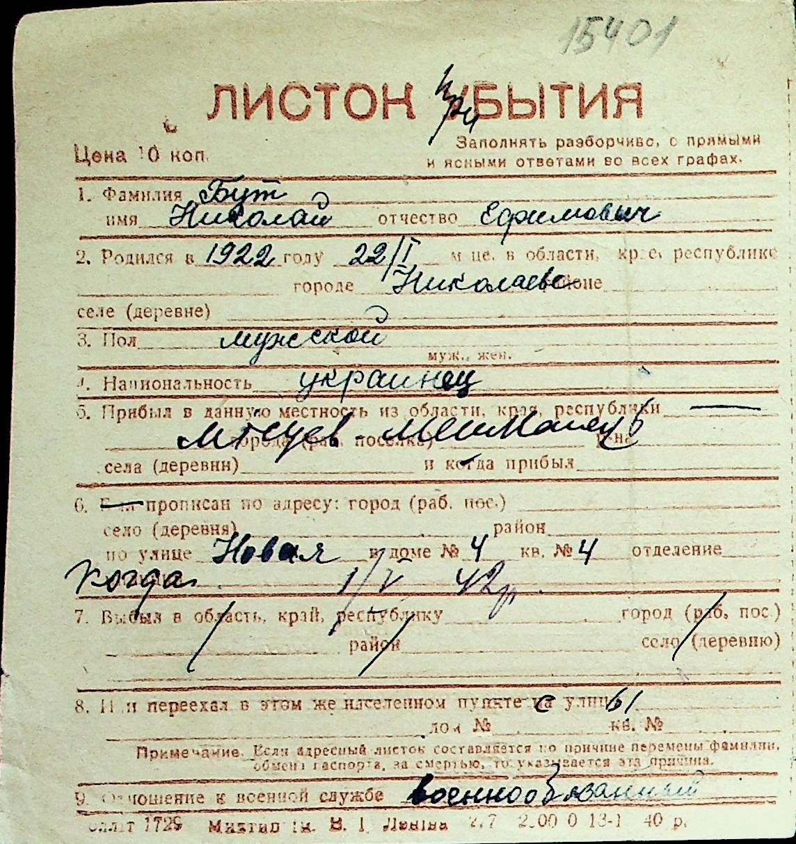 ◦ ◦ Перелік карток на осіб, які мешкали у м. Миколаїв у період окупації 1941–1944 років