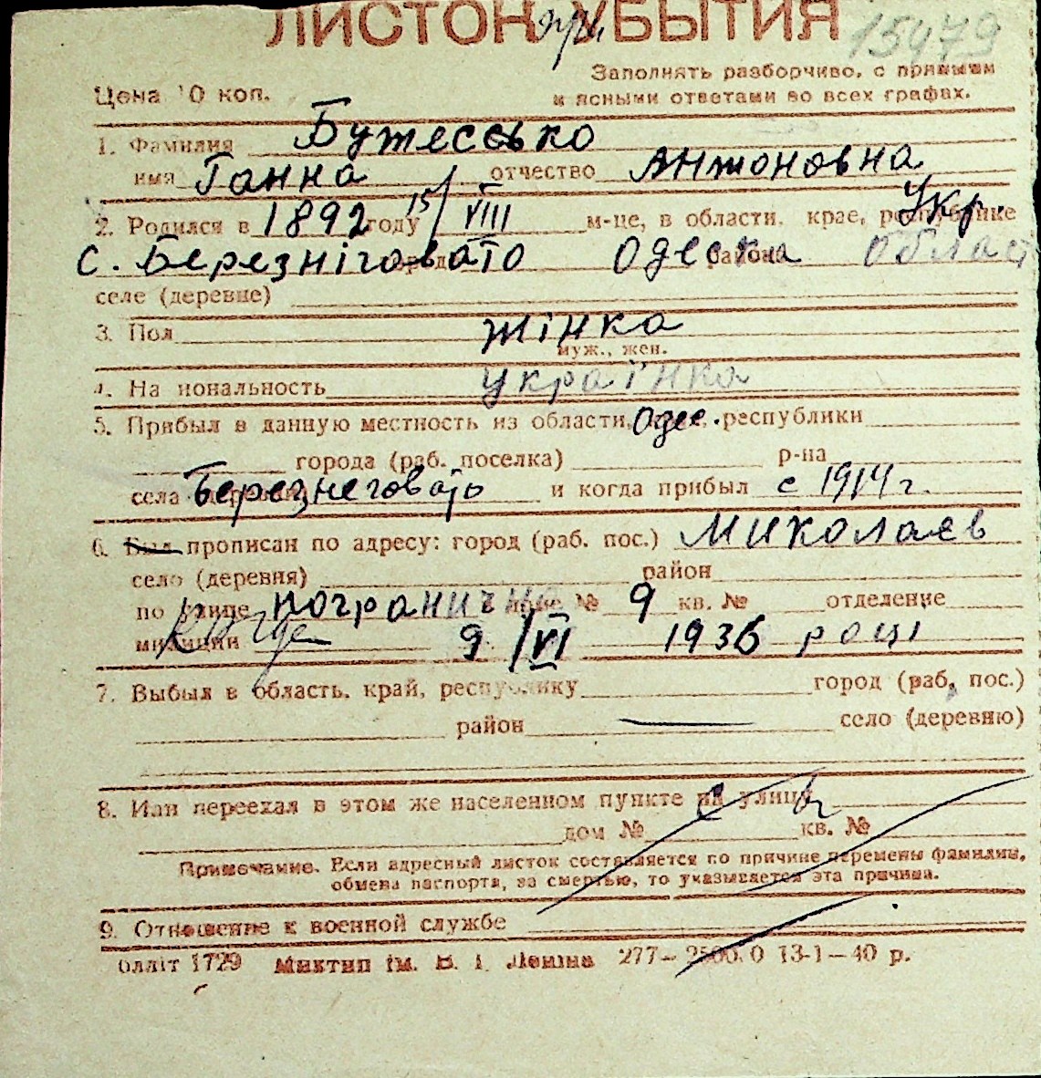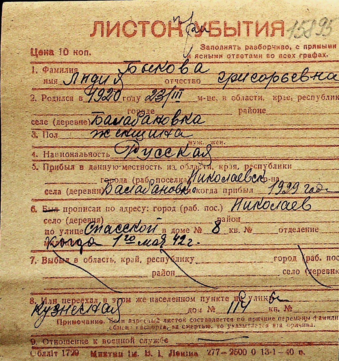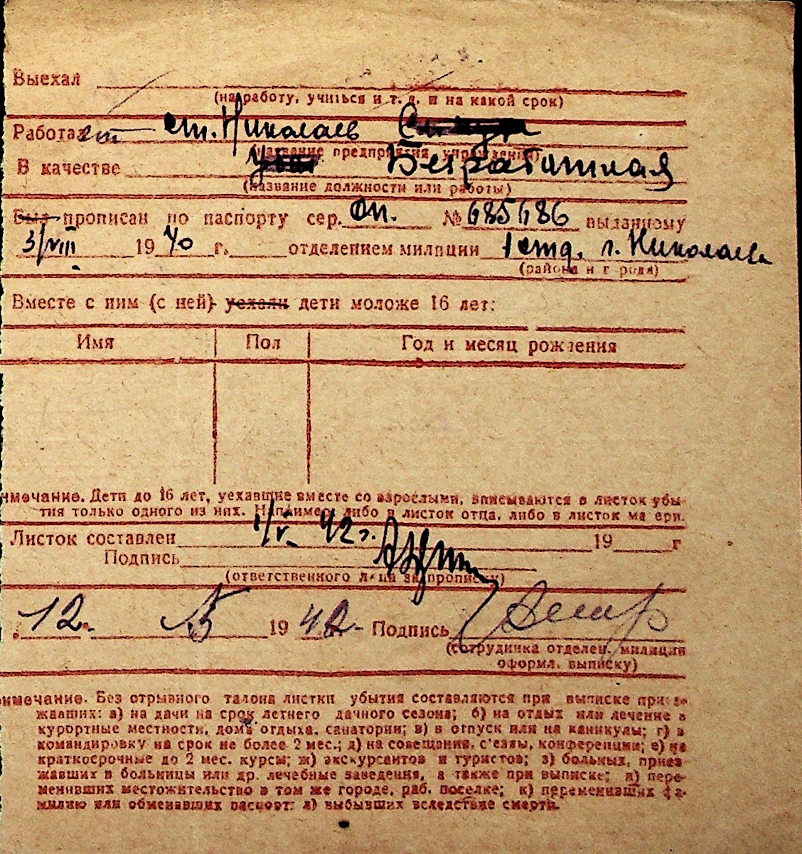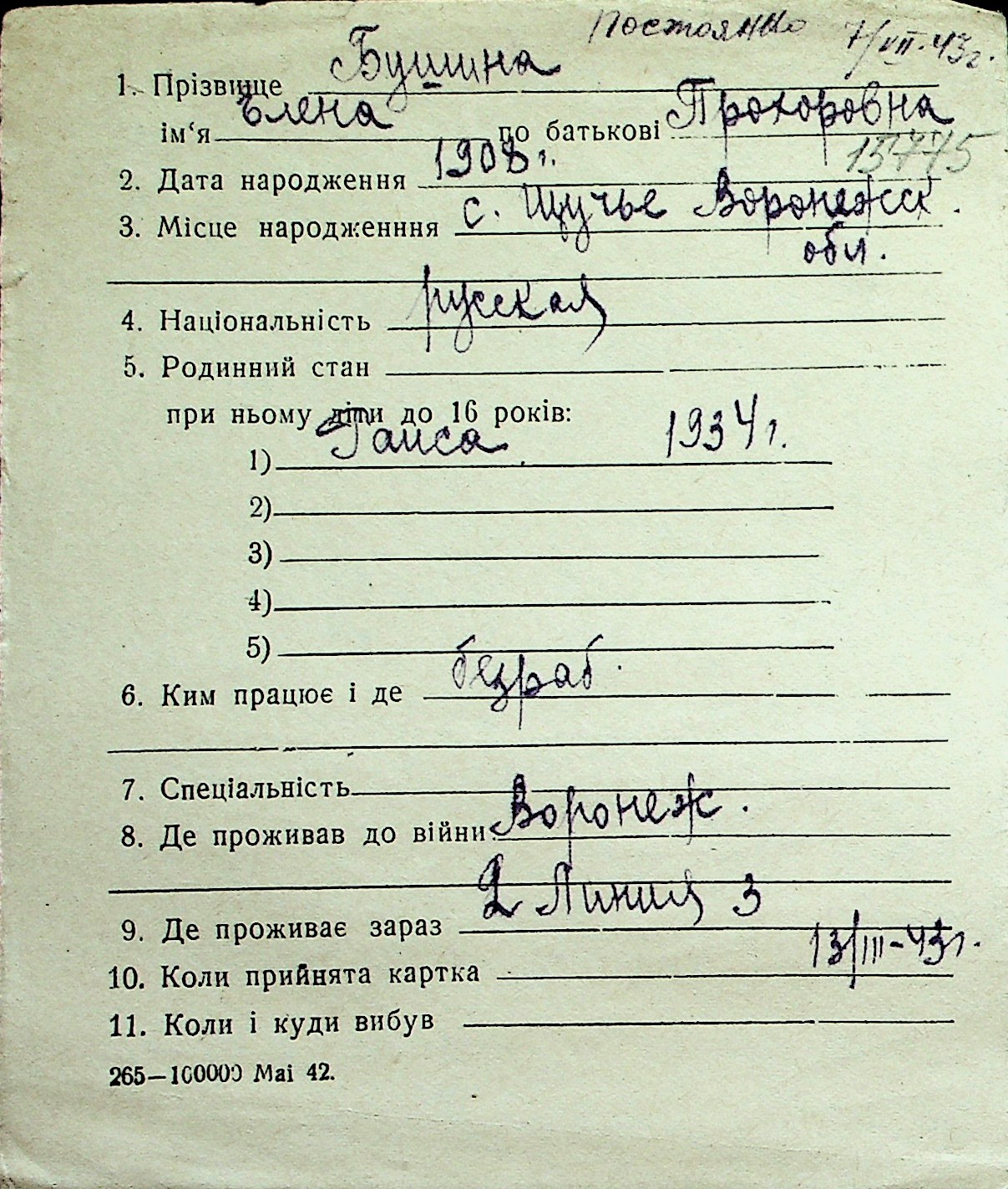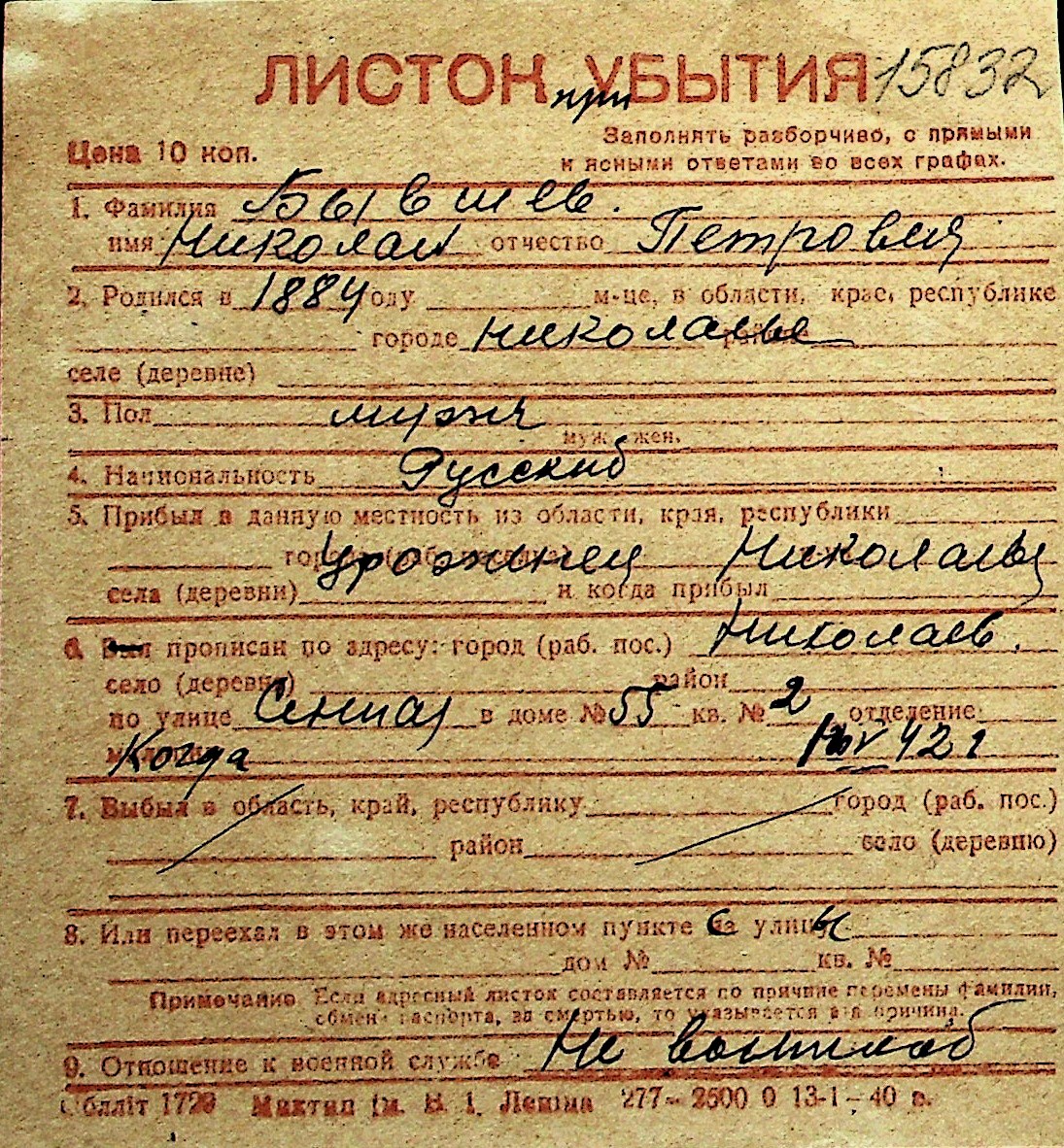 ◦ ◦ Перелік карток на осіб, які мешкали у м. Миколаїв у період окупації 1941–1944 років