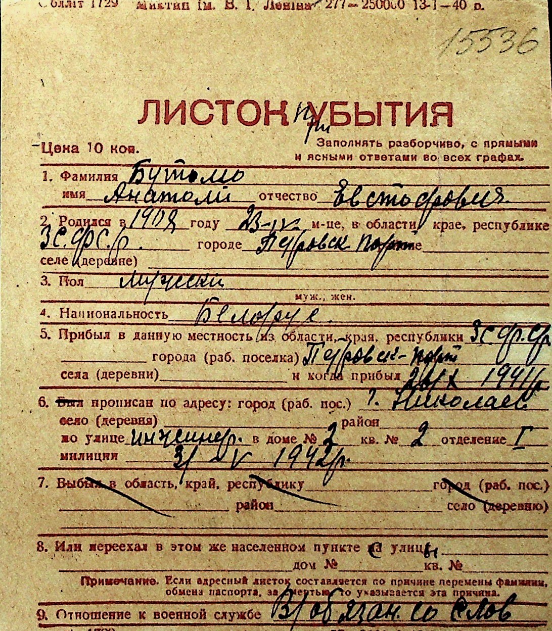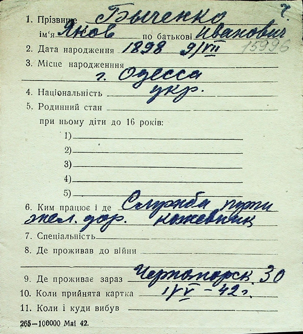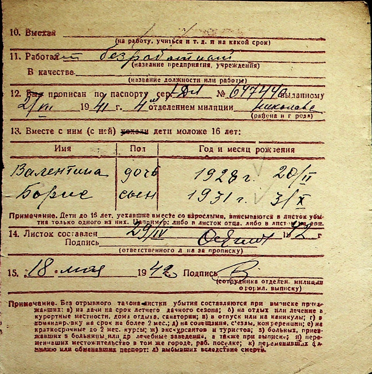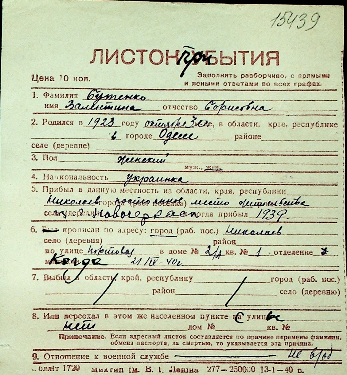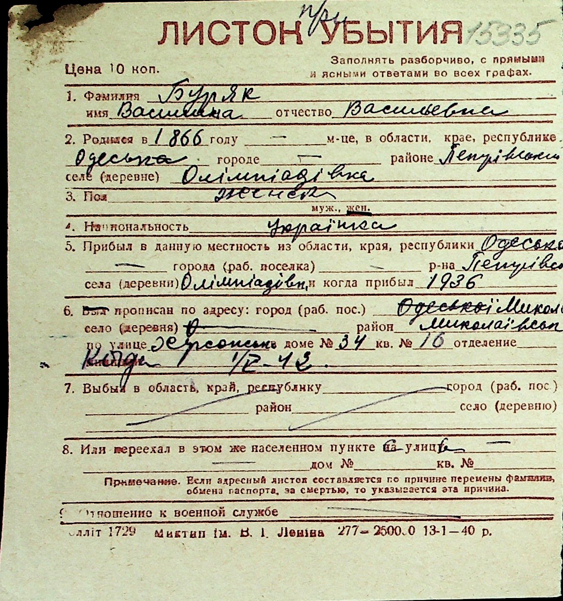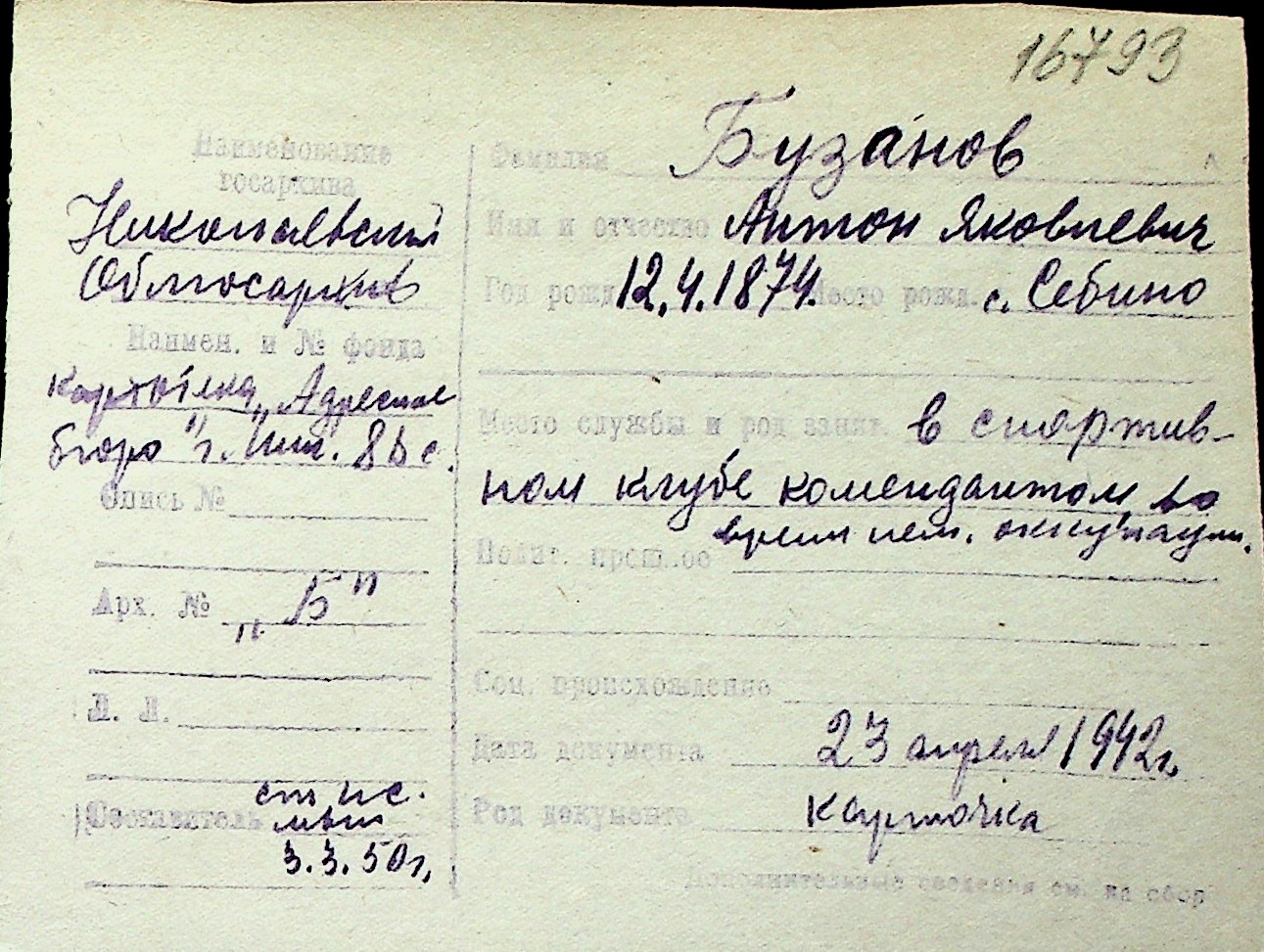 ◦ ◦ Перелік карток на осіб, які мешкали у м. Миколаїв у період окупації 1941–1944 років