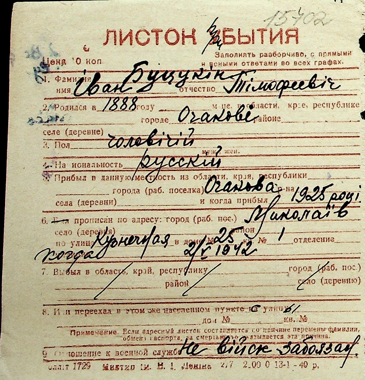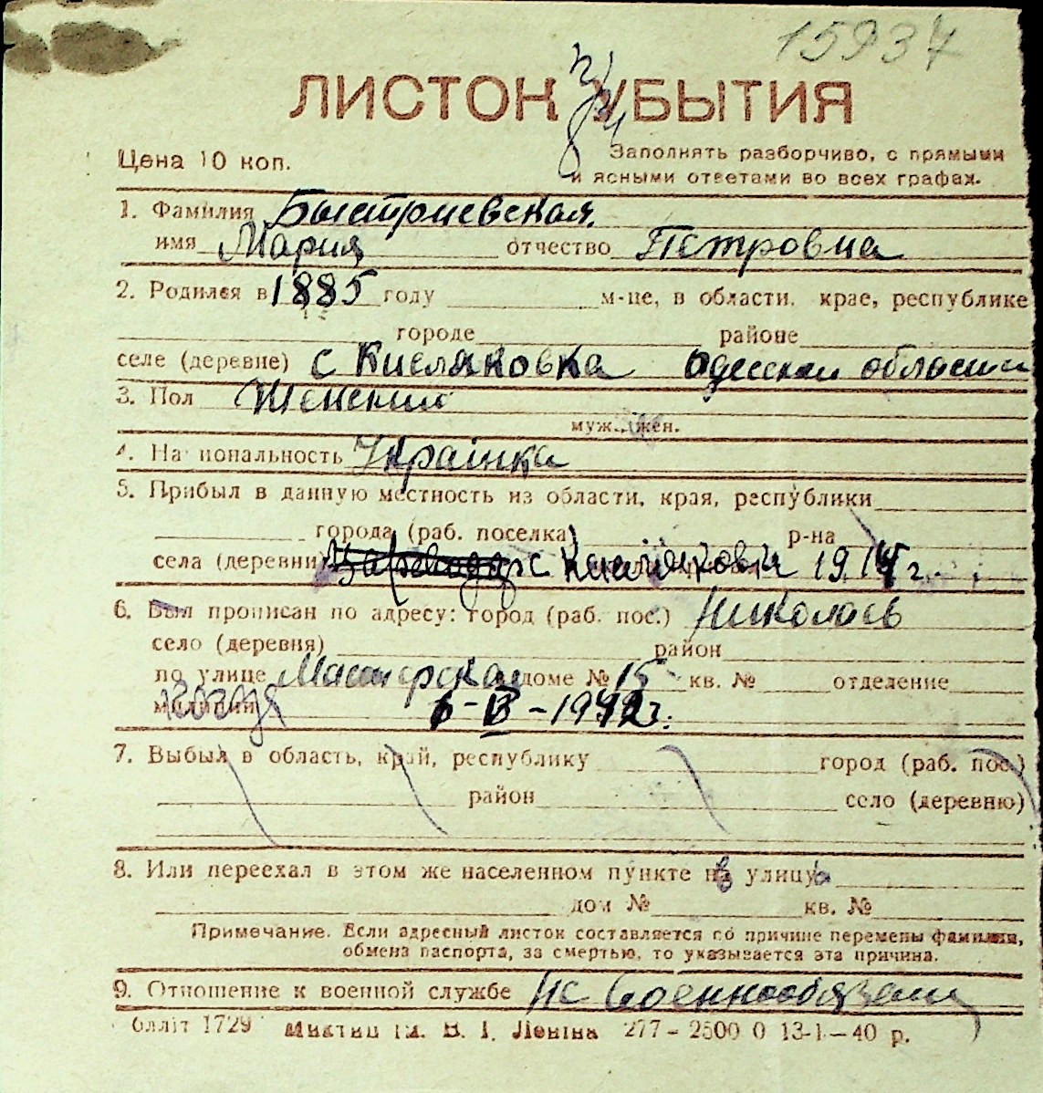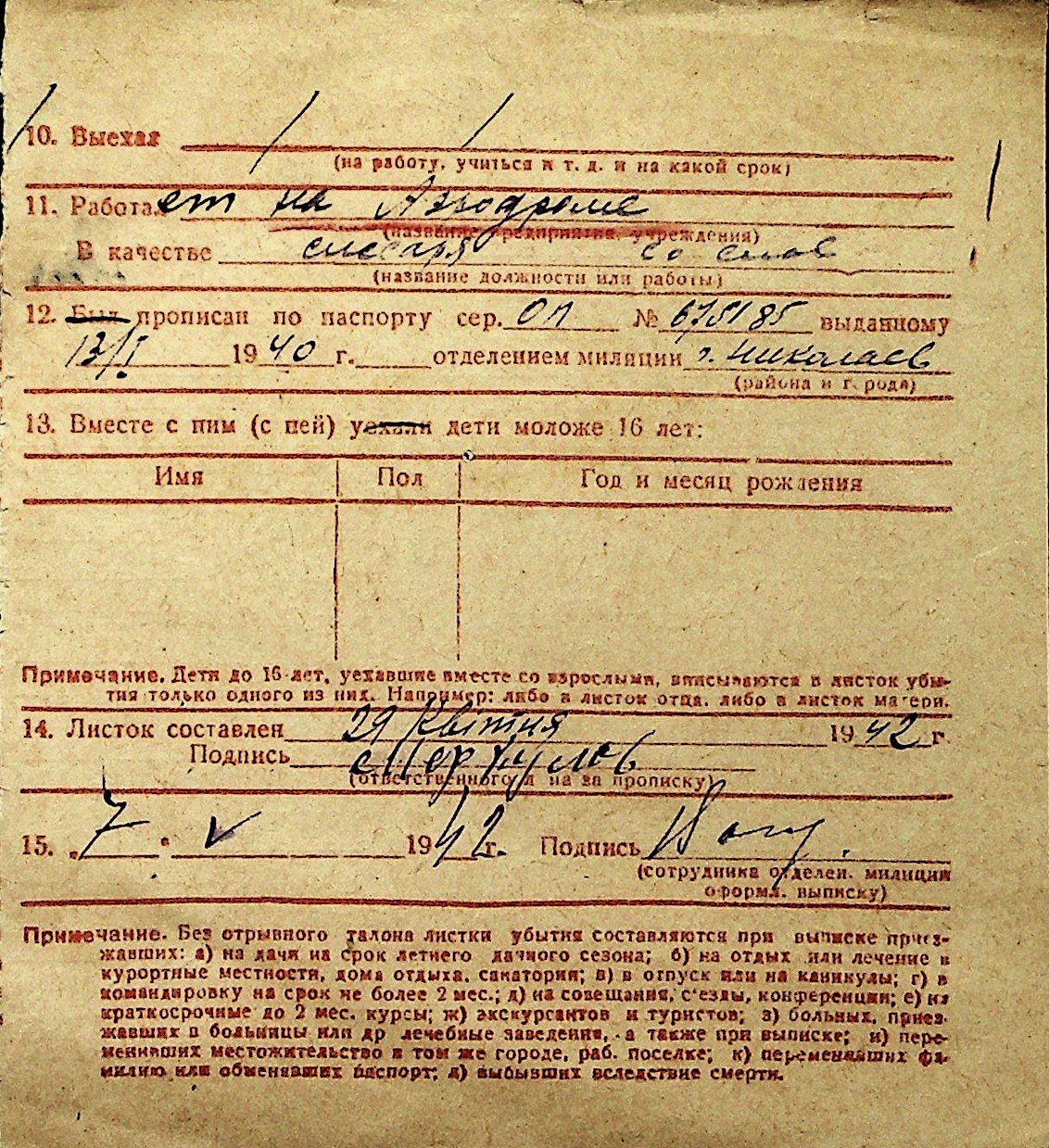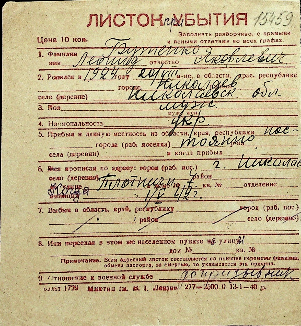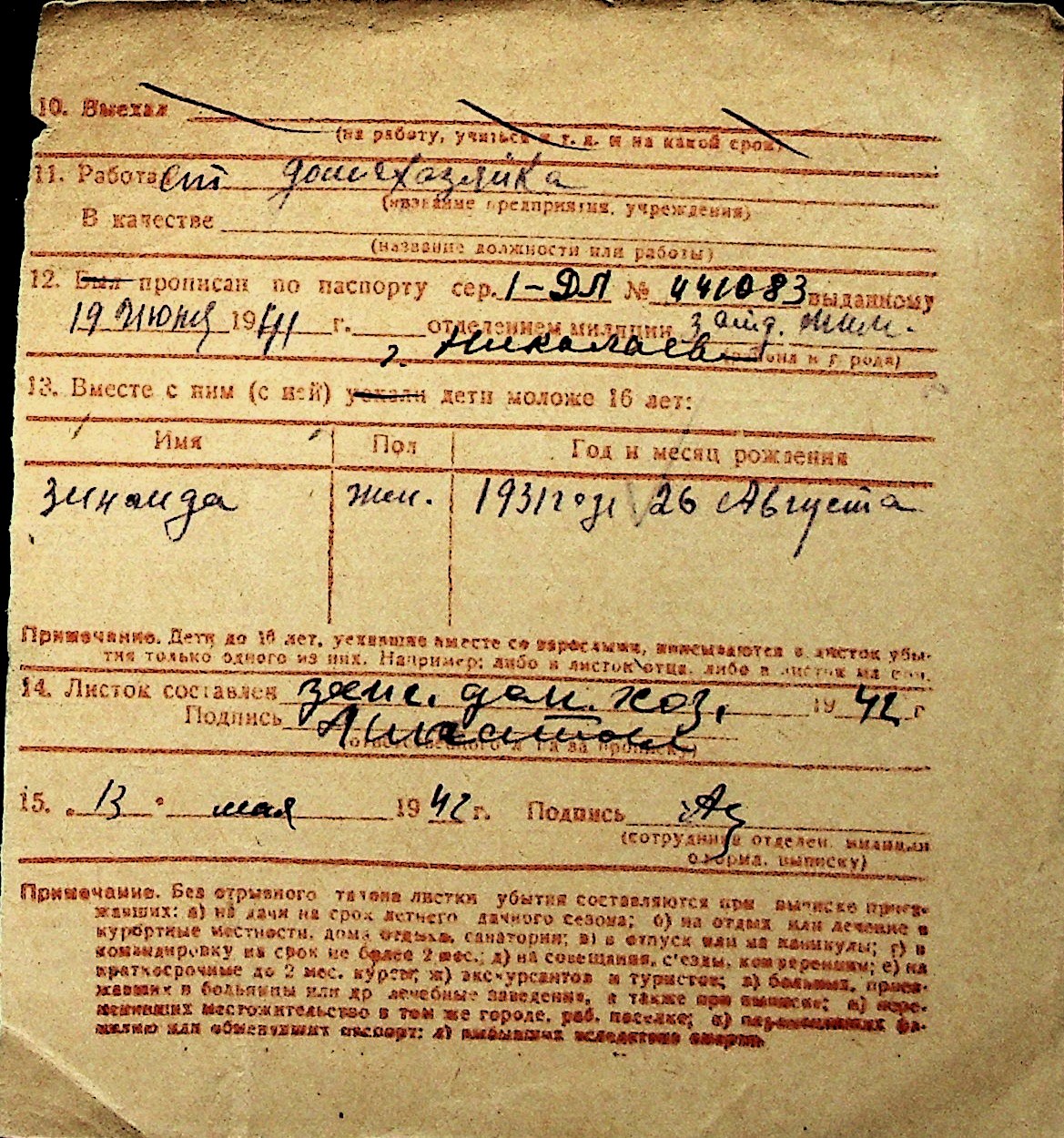 ◦ ◦ Перелік карток на осіб, які мешкали у м. Миколаїв у період окупації 1941–1944 років