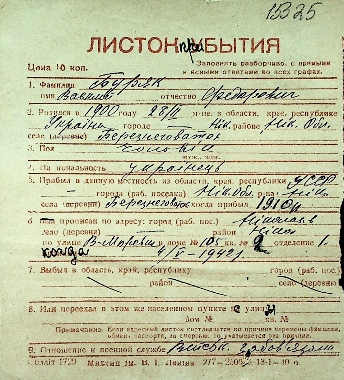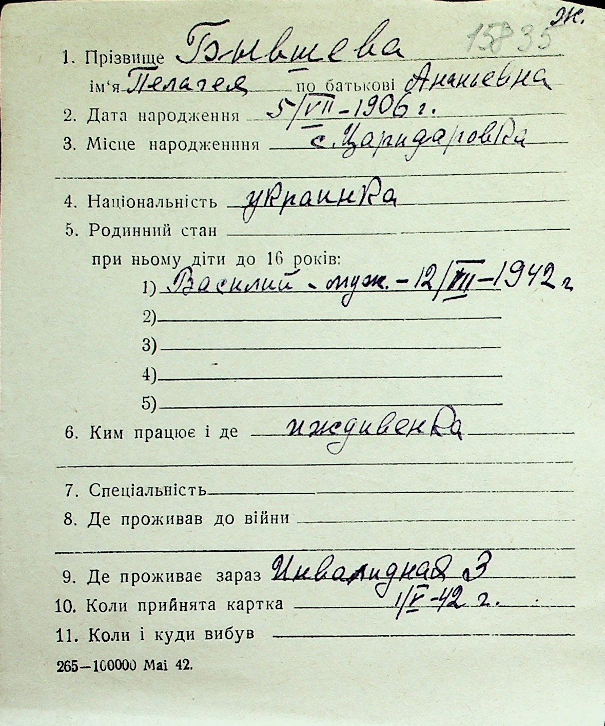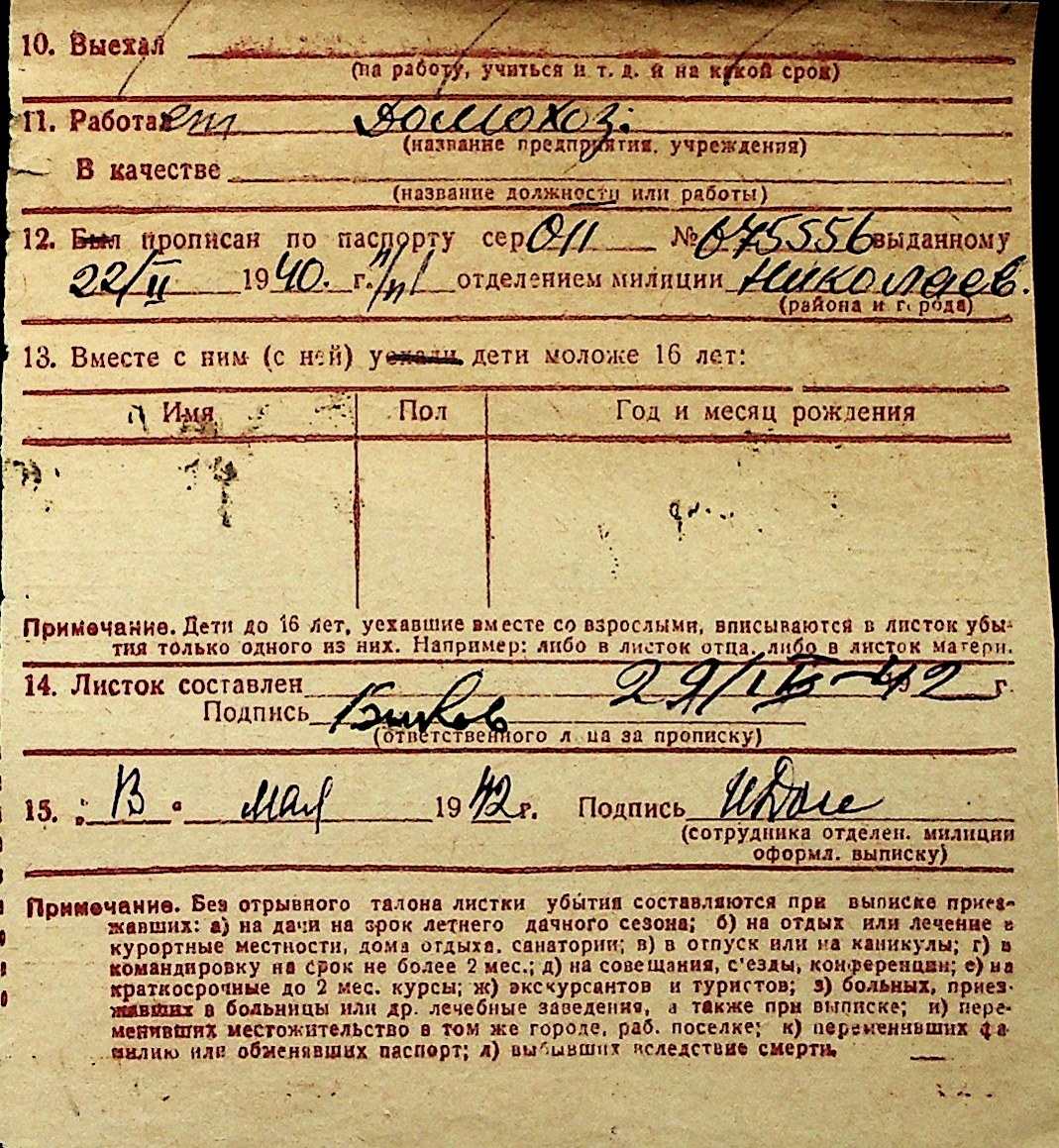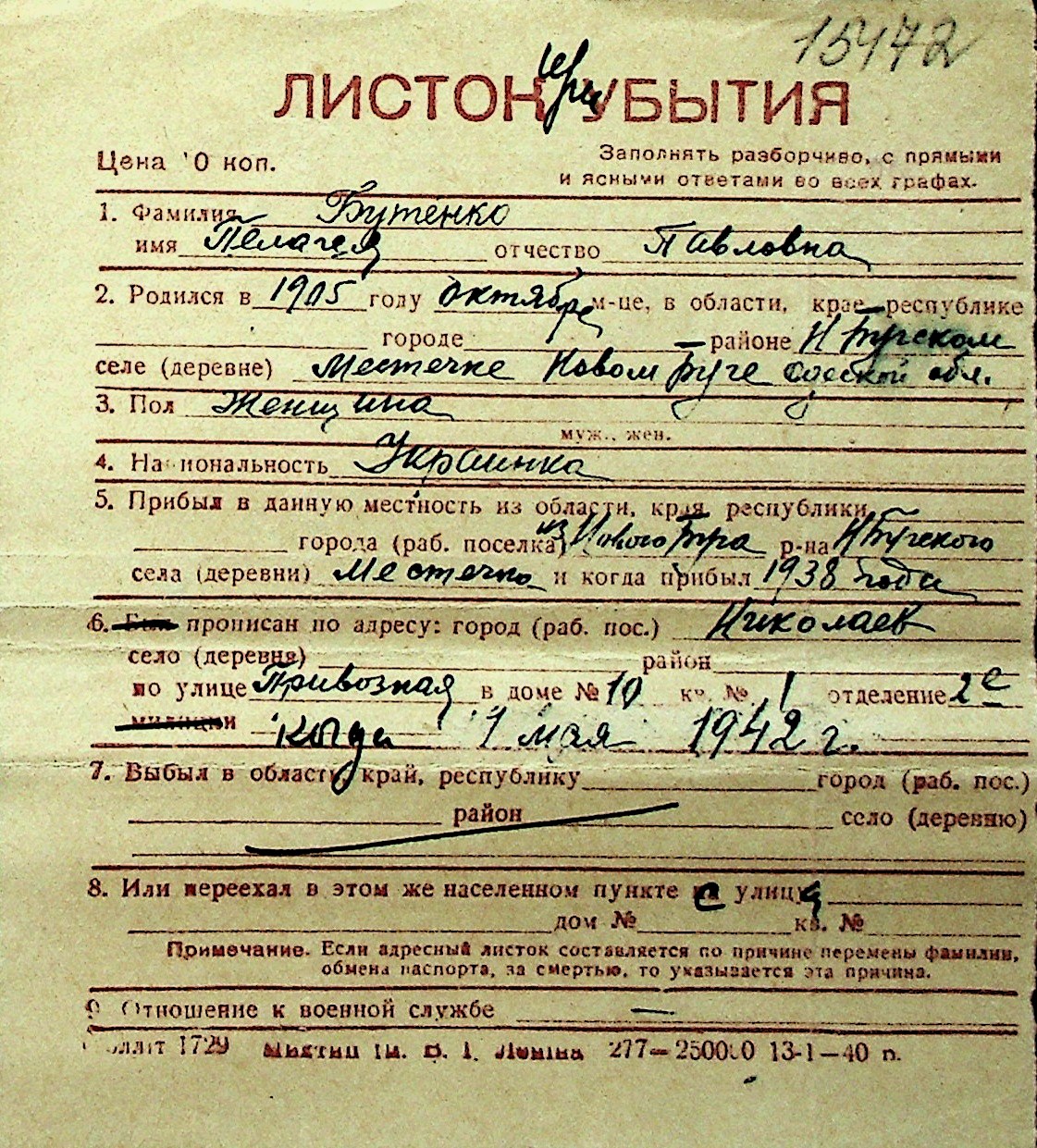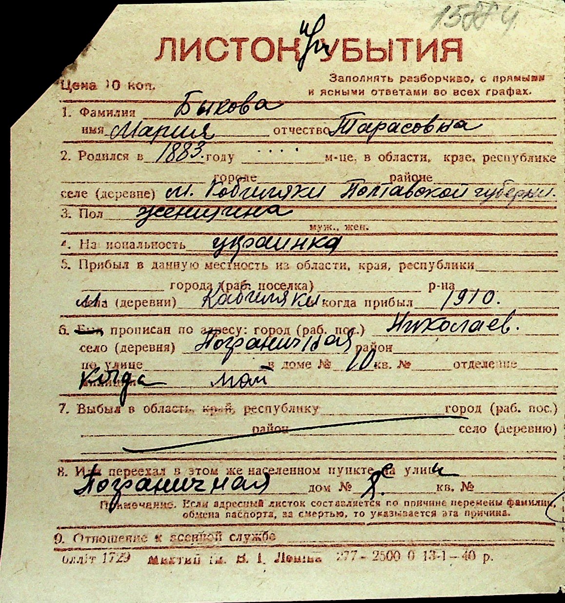 ◦ ◦ Перелік карток на осіб, які мешкали у м. Миколаїв у період окупації 1941–1944 років
