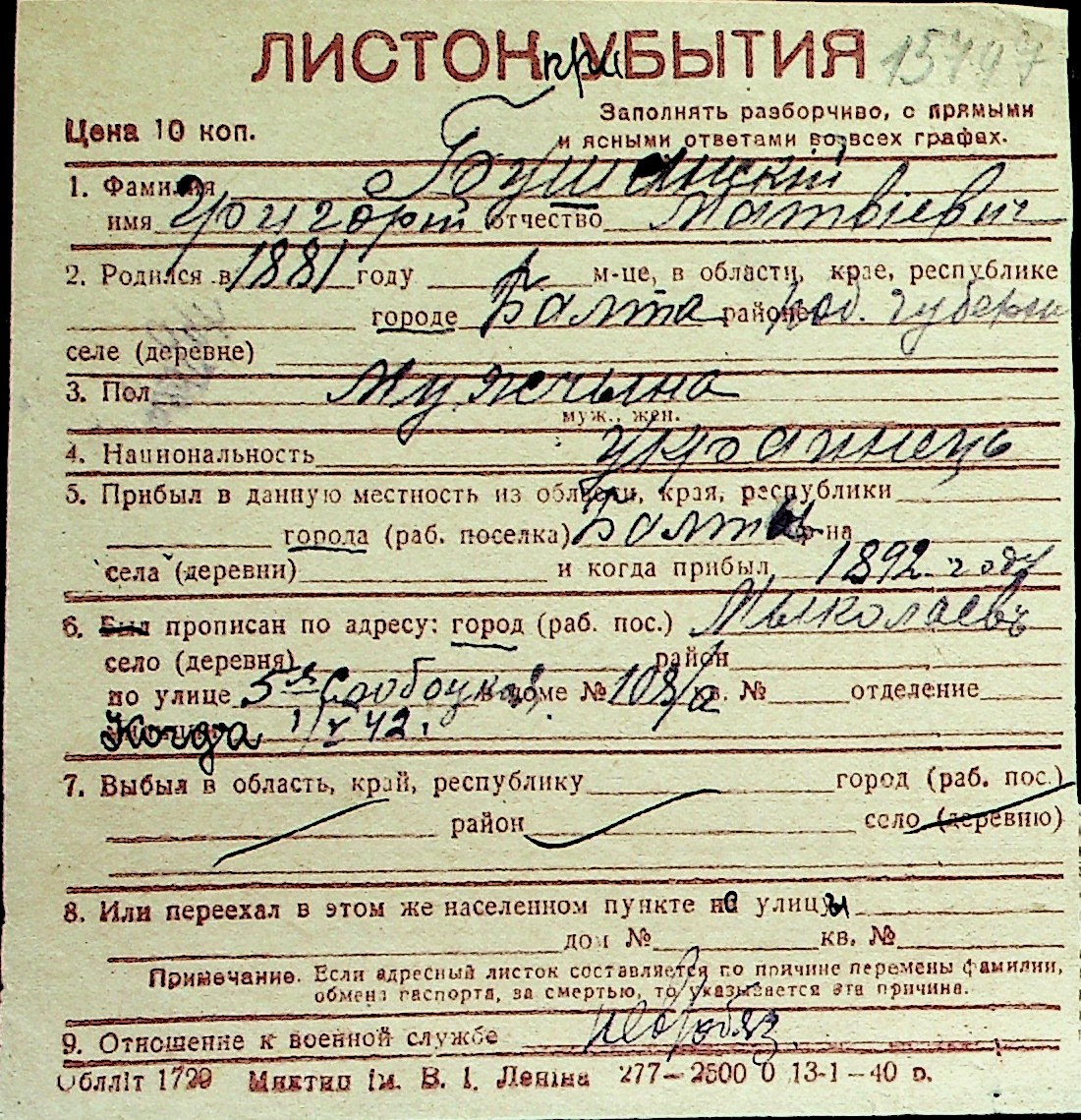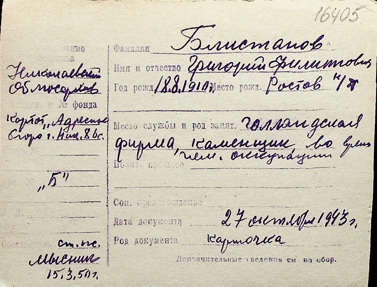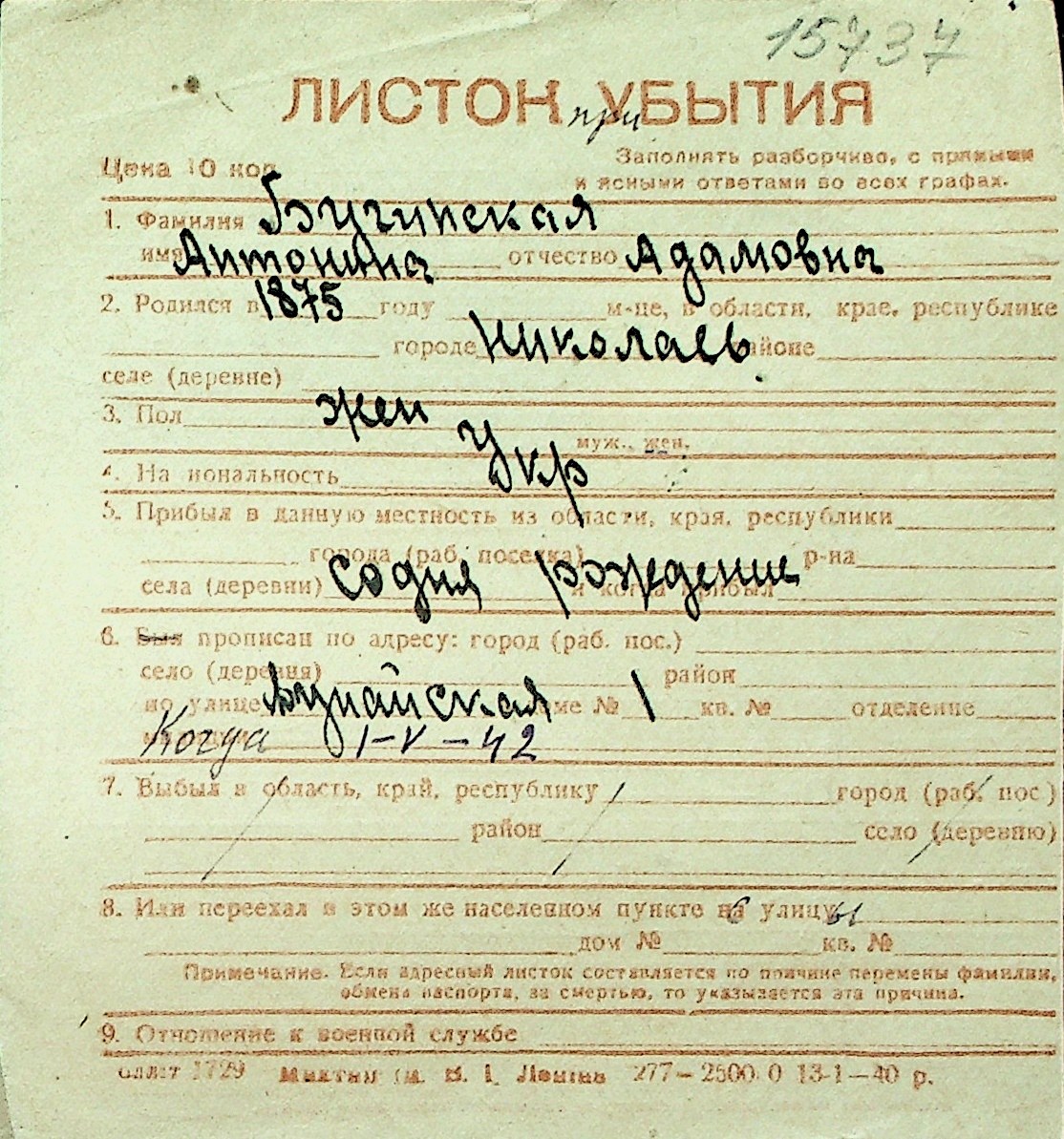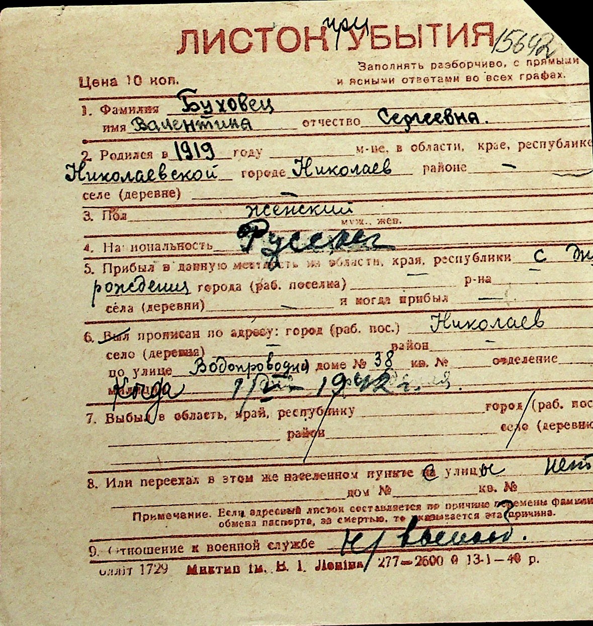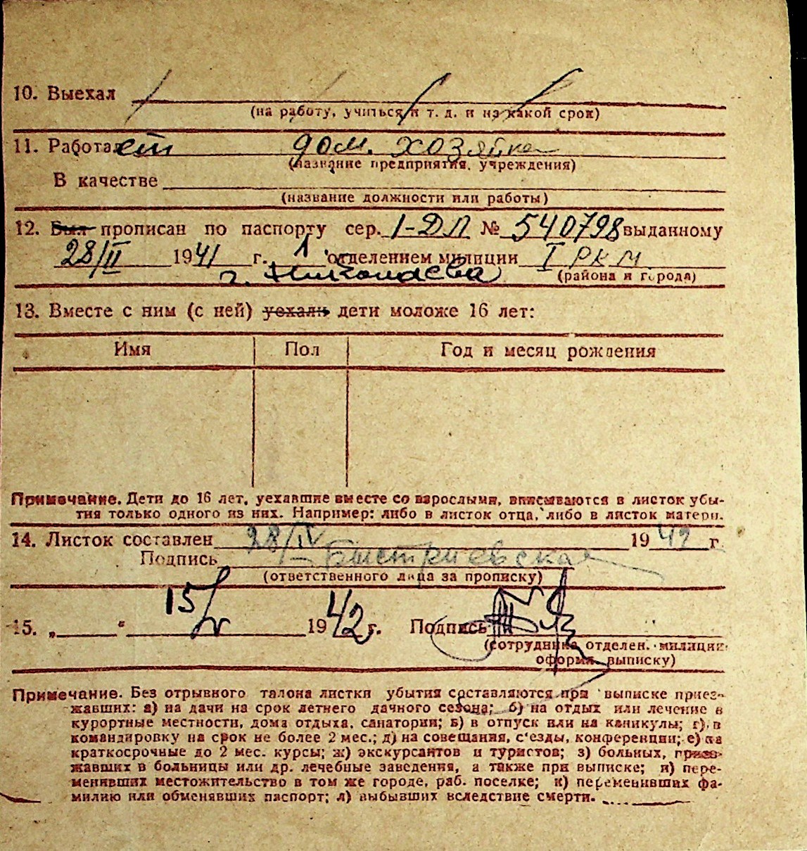 ◦ ◦ Перелік карток на осіб, які мешкали у м. Миколаїв у період окупації 1941–1944 років