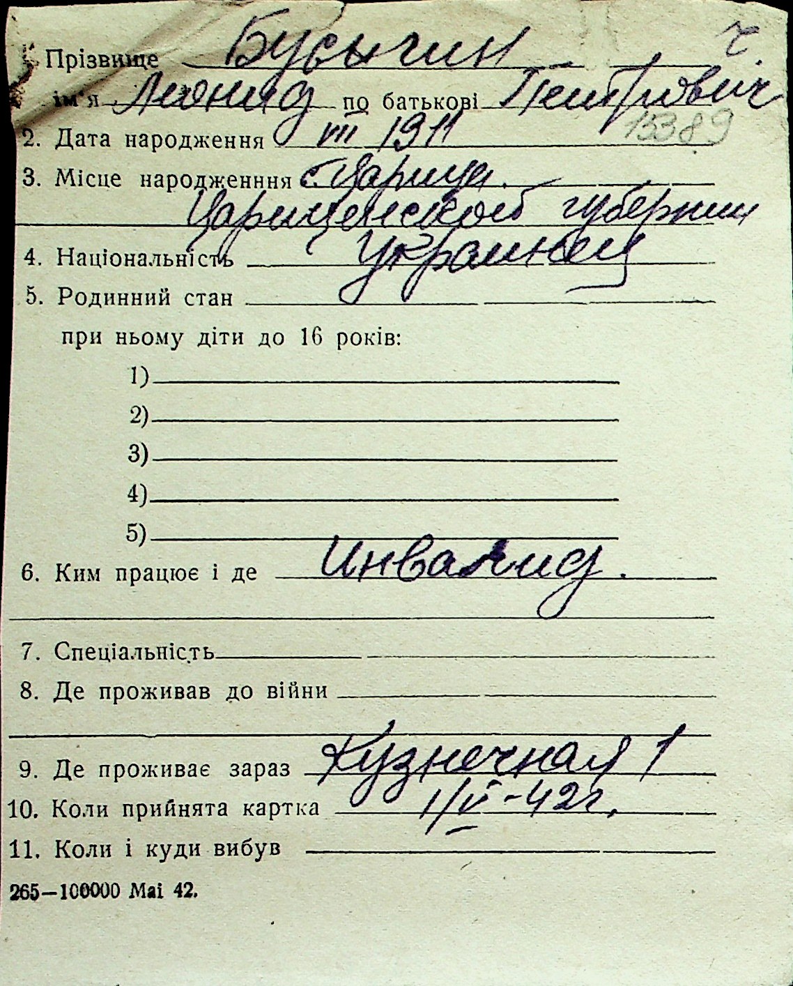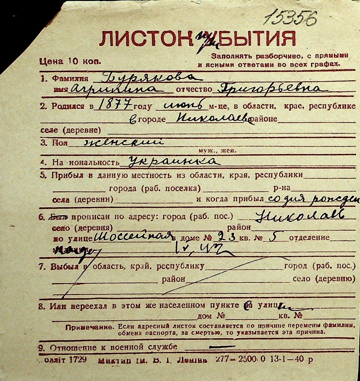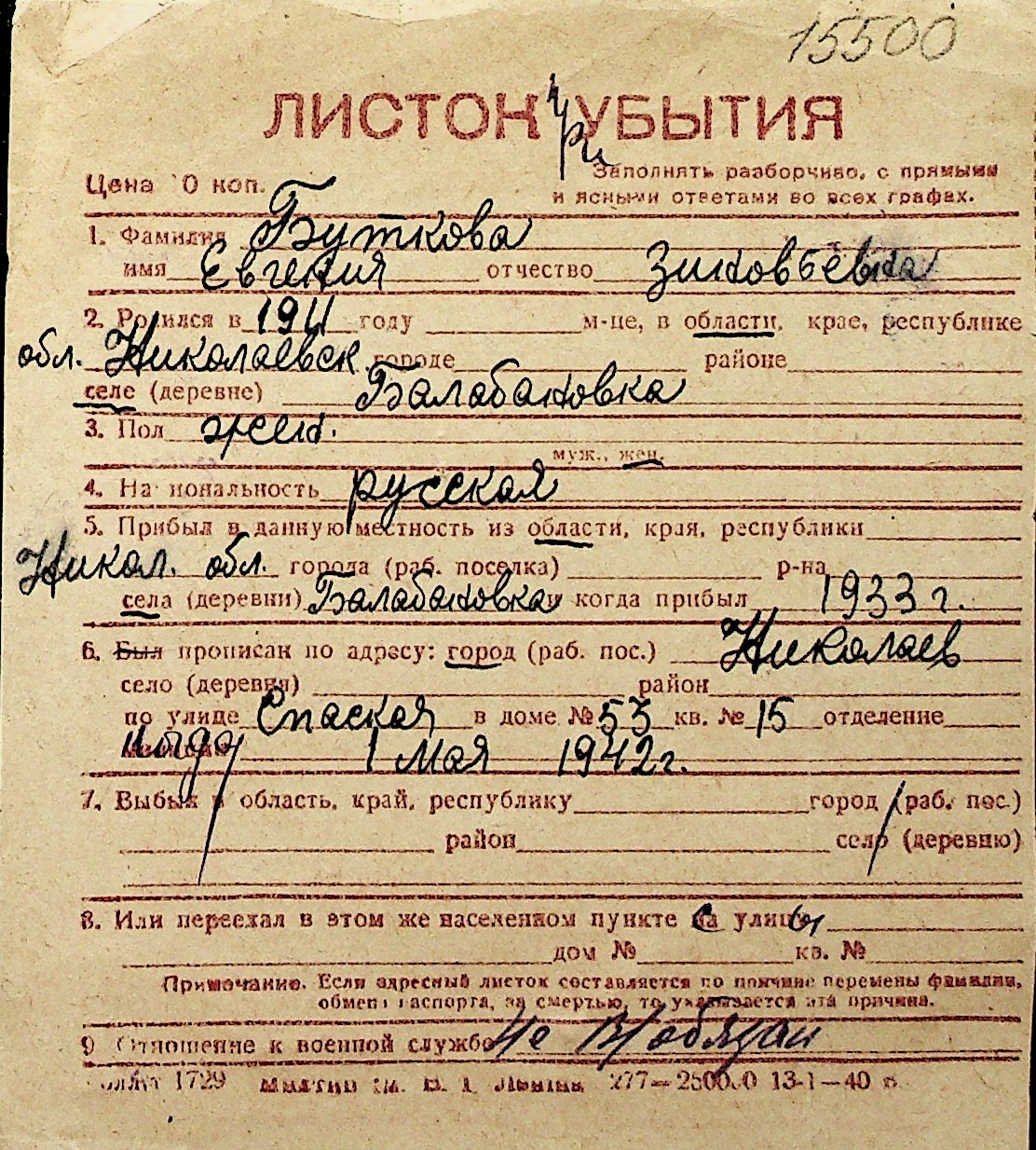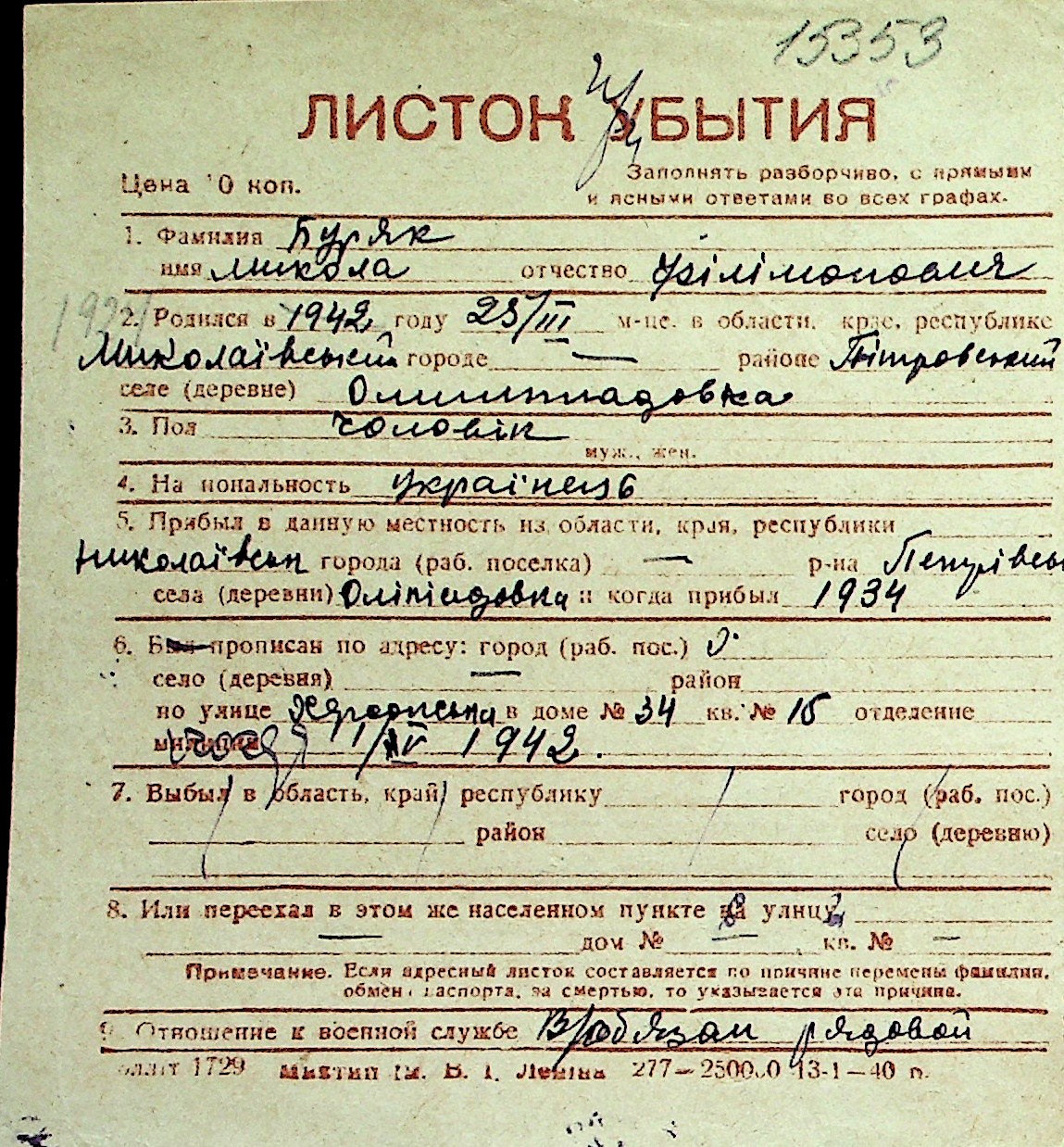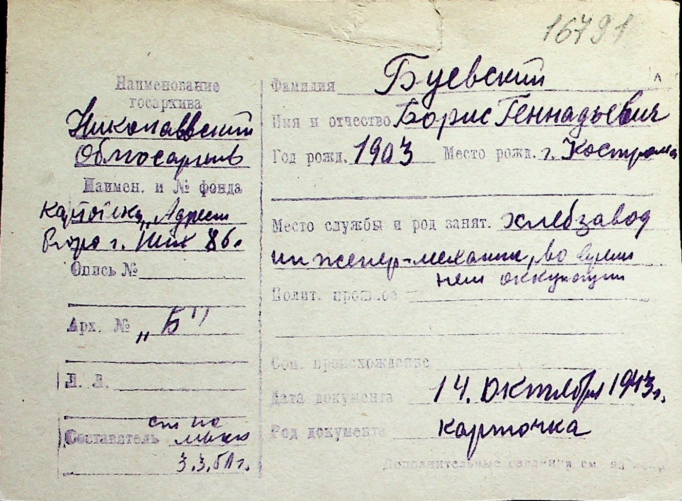 ◦ ◦ Перелік карток на осіб, які мешкали у м. Миколаїв у період окупації 1941–1944 років