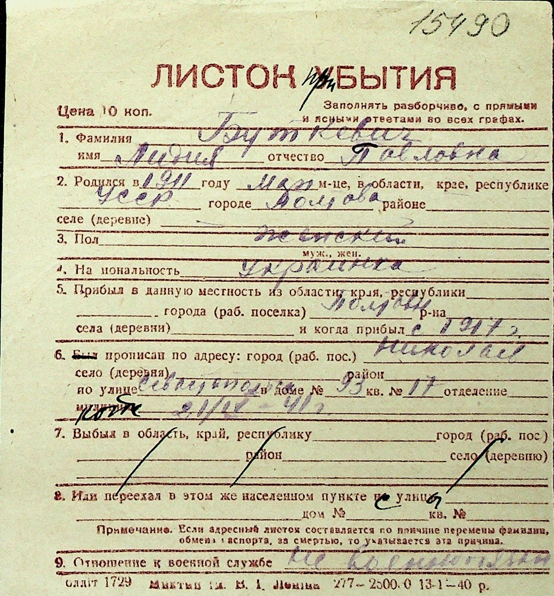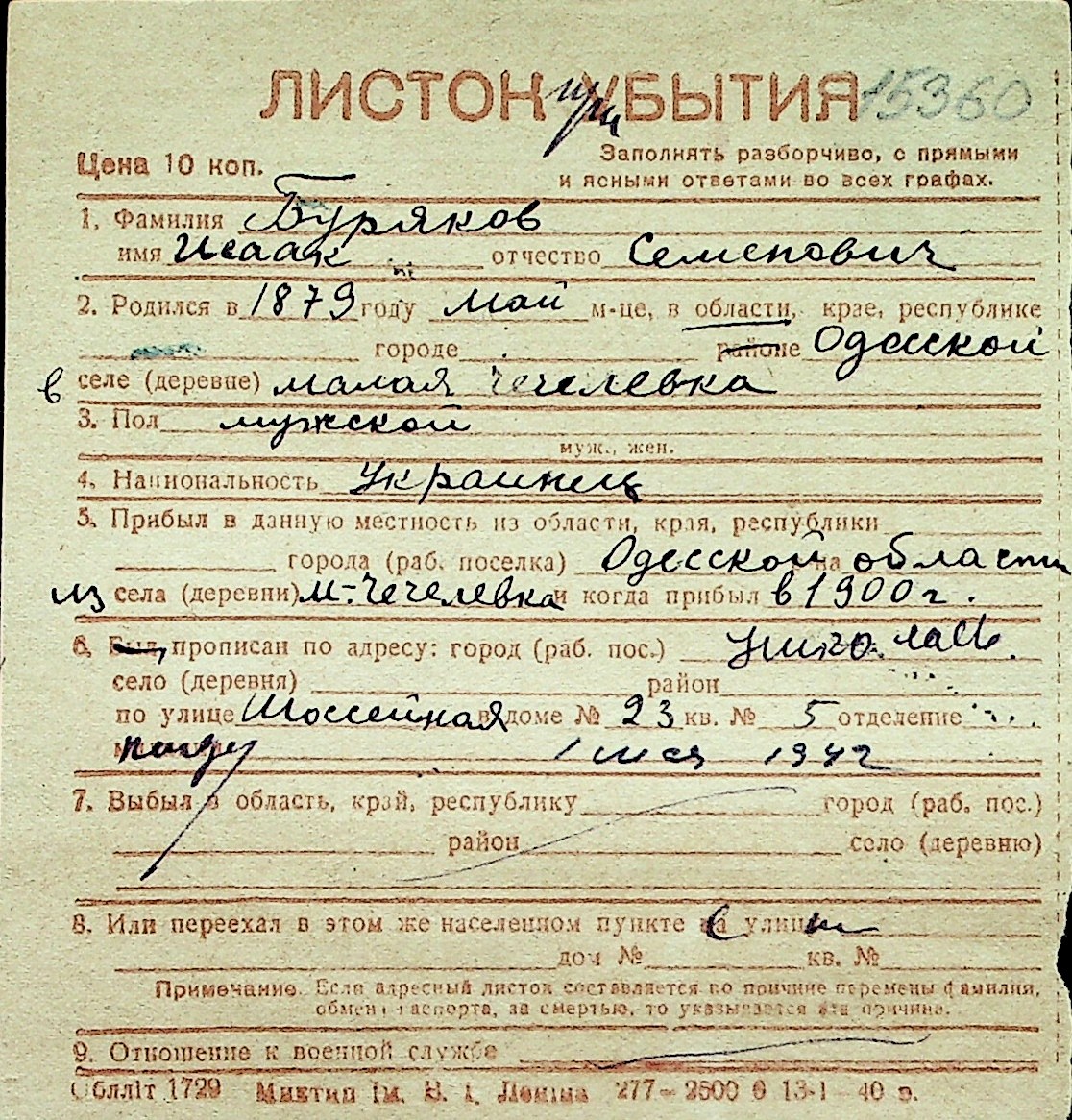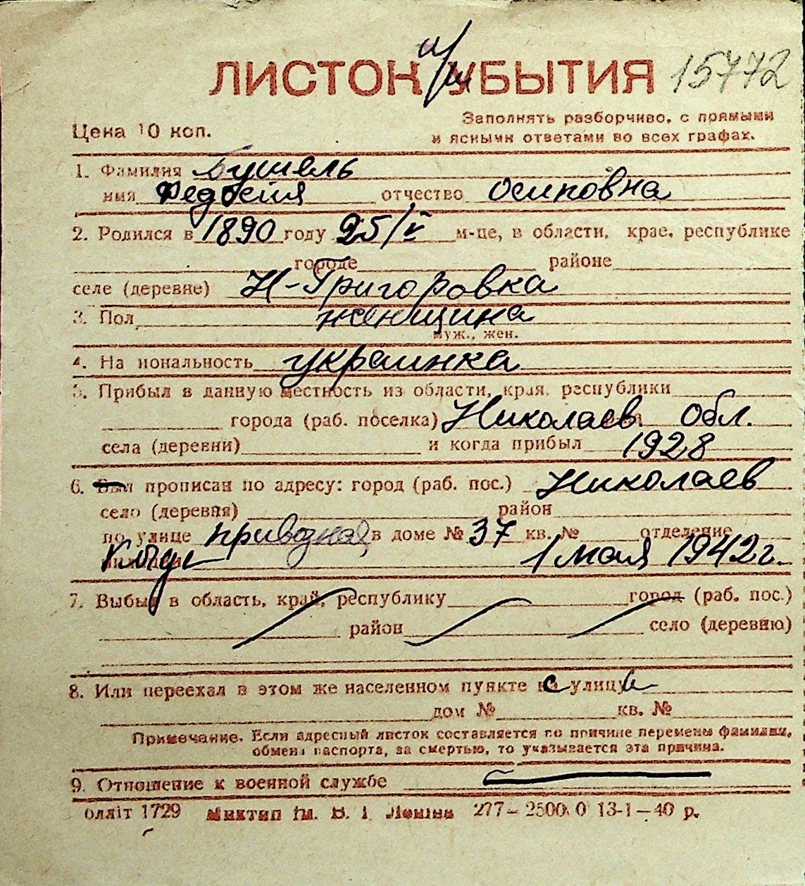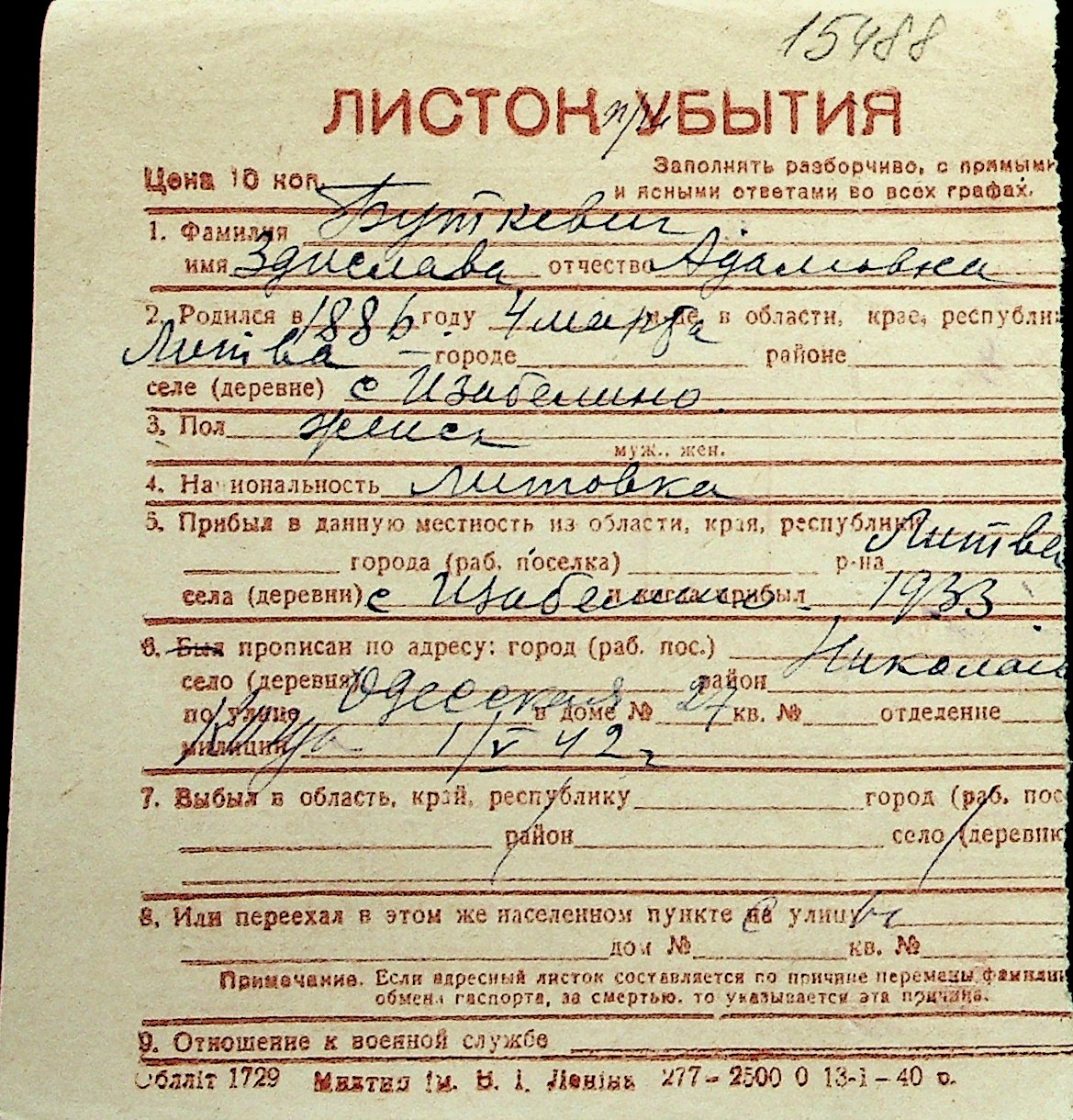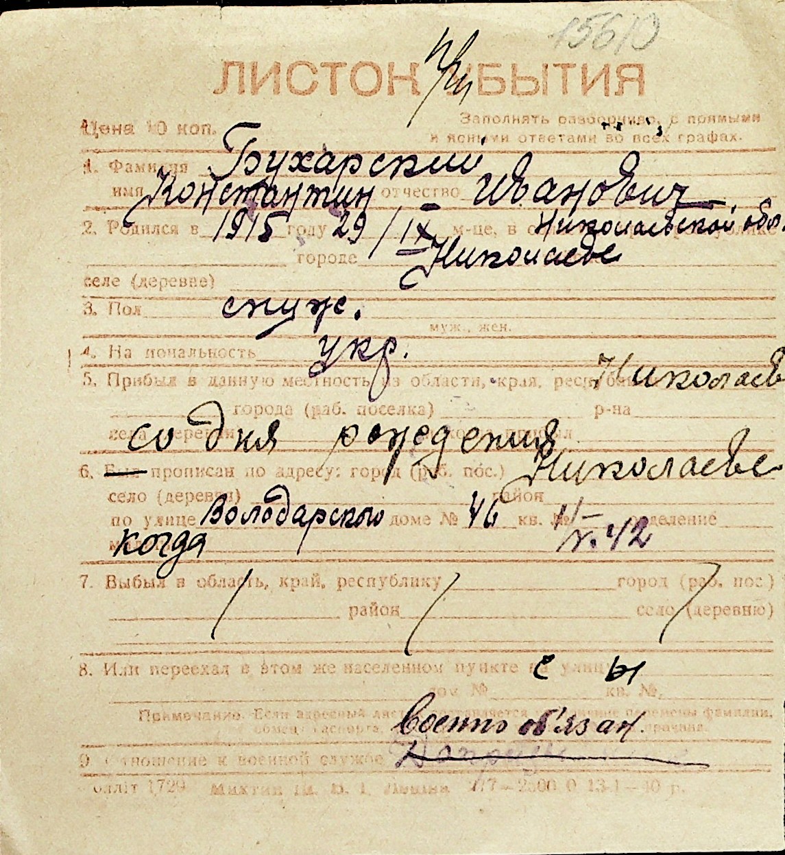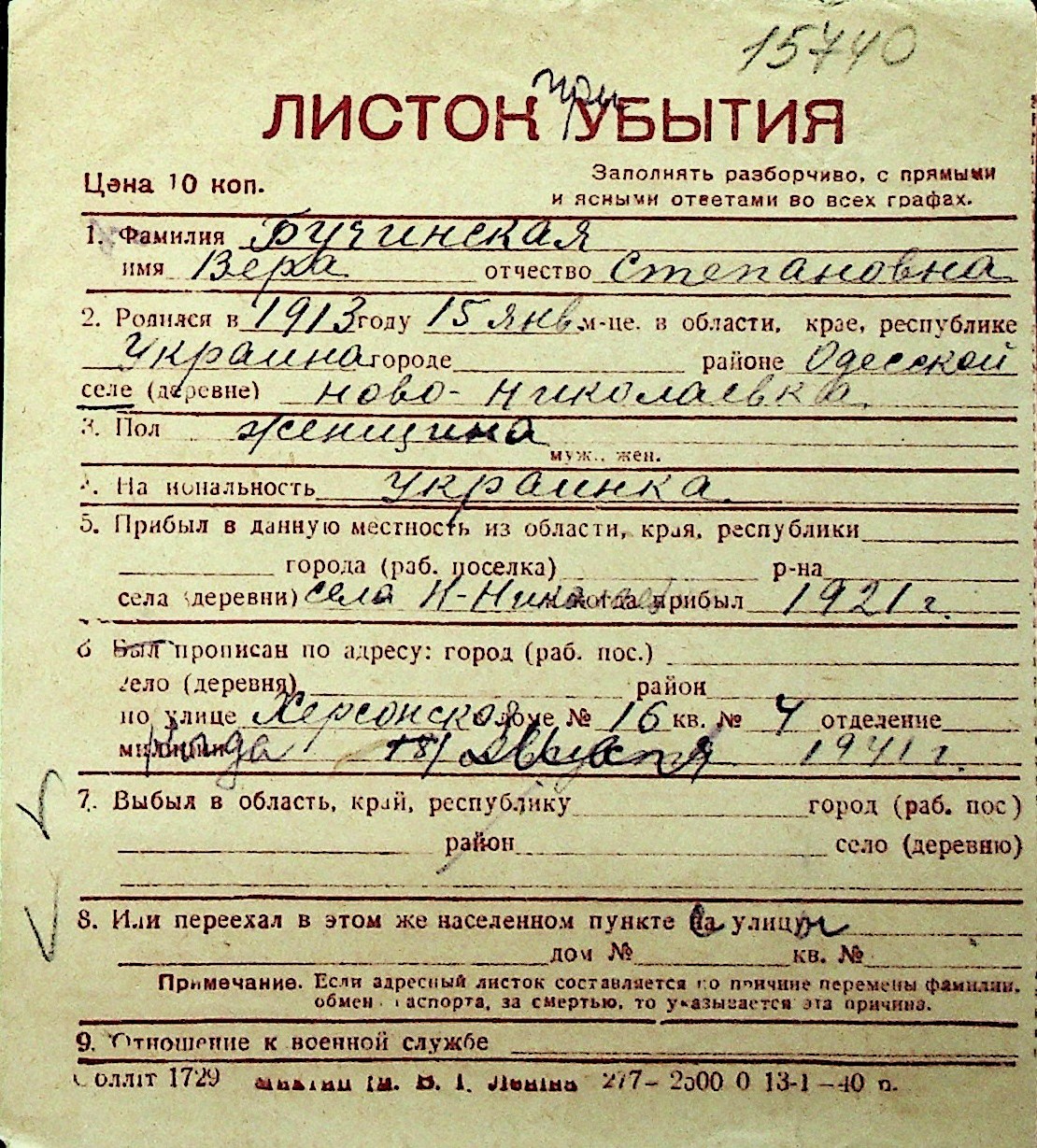 ◦ ◦ Перелік карток на осіб, які мешкали у м. Миколаїв у період окупації 1941–1944 років
