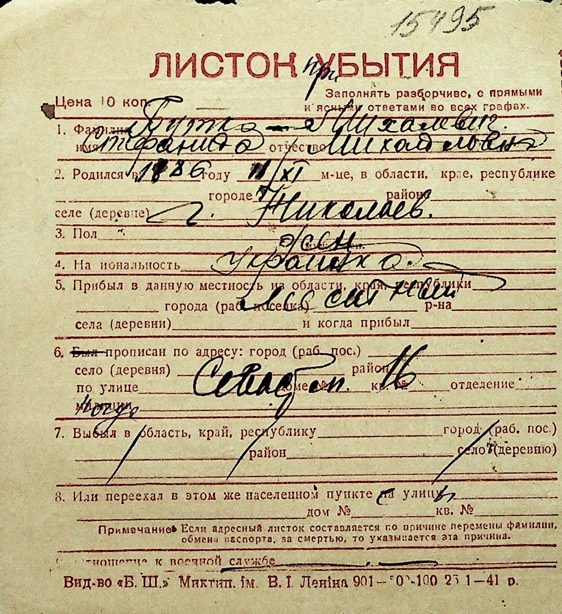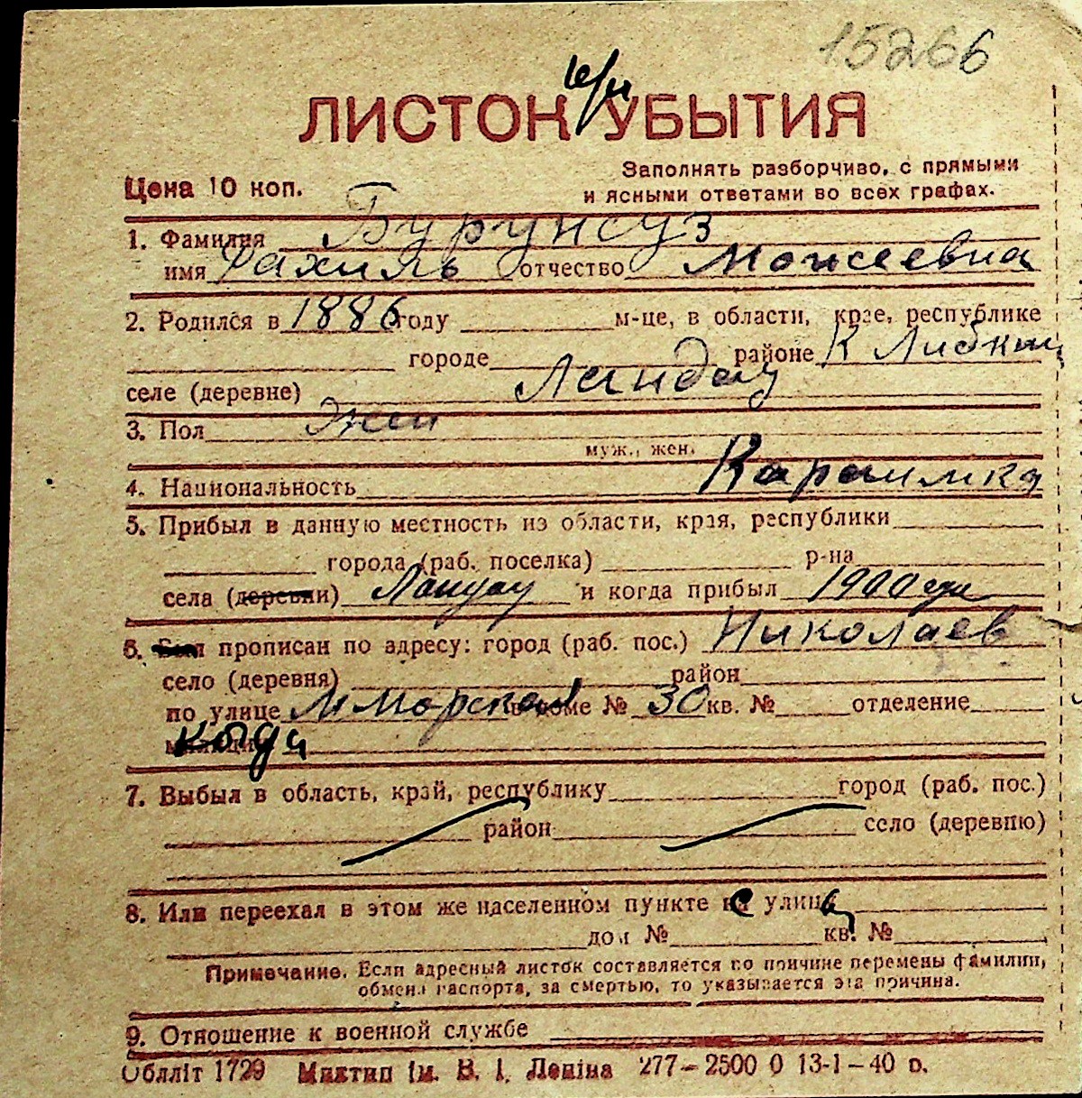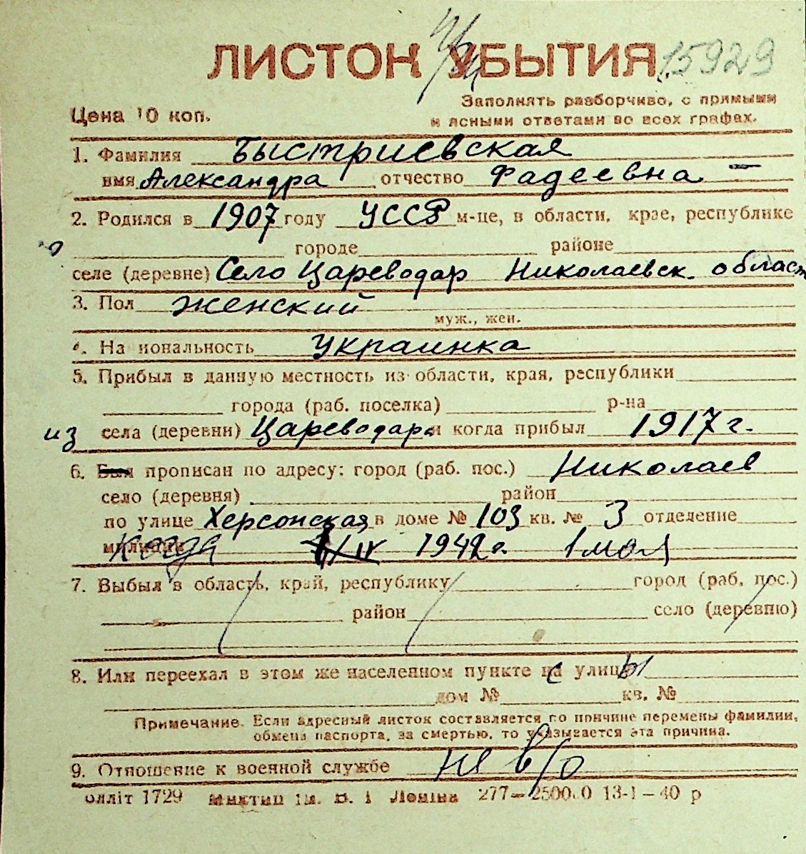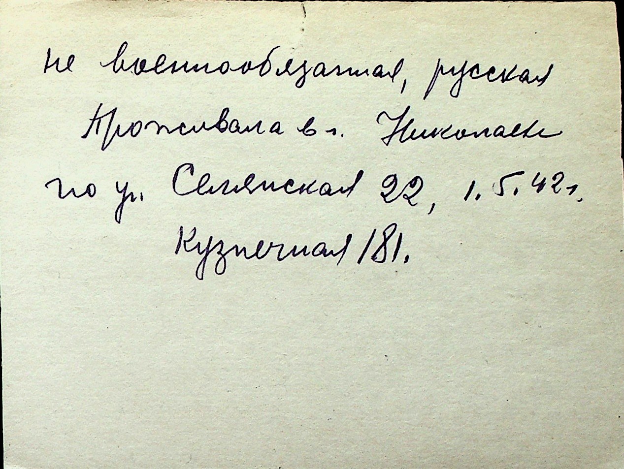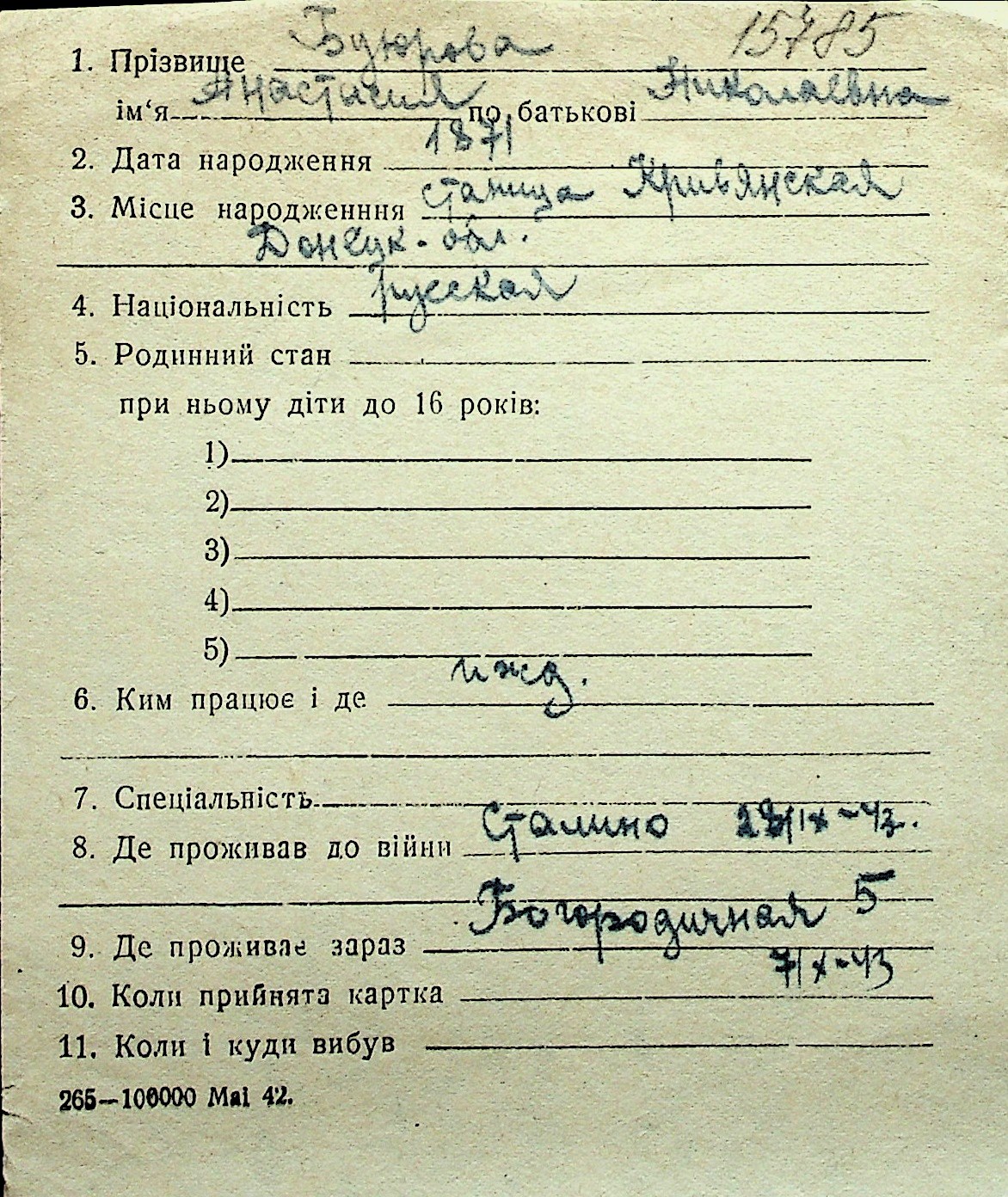 ◦ ◦ Перелік карток на осіб, які мешкали у м. Миколаїв у період окупації 1941–1944 років