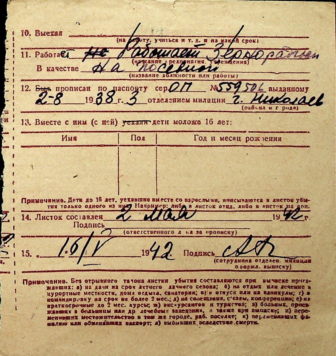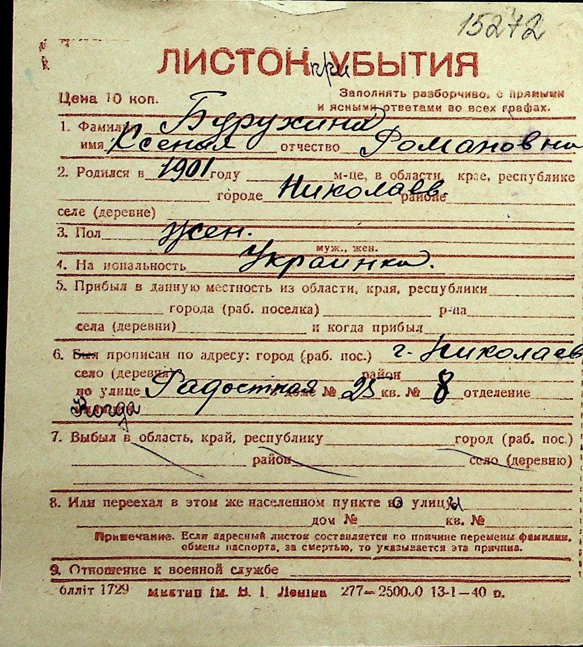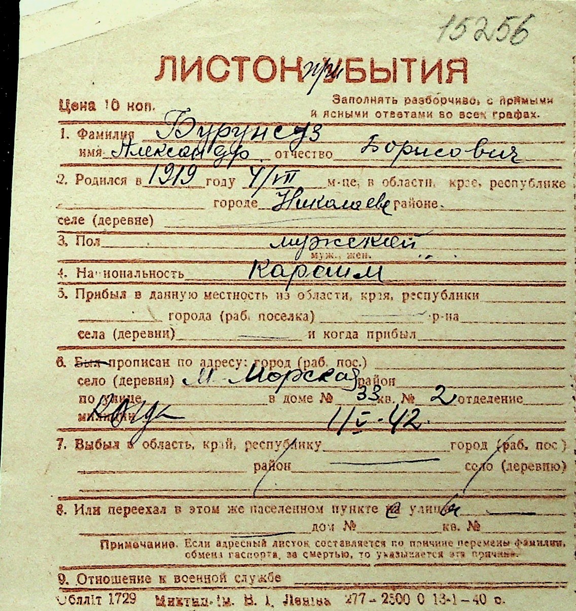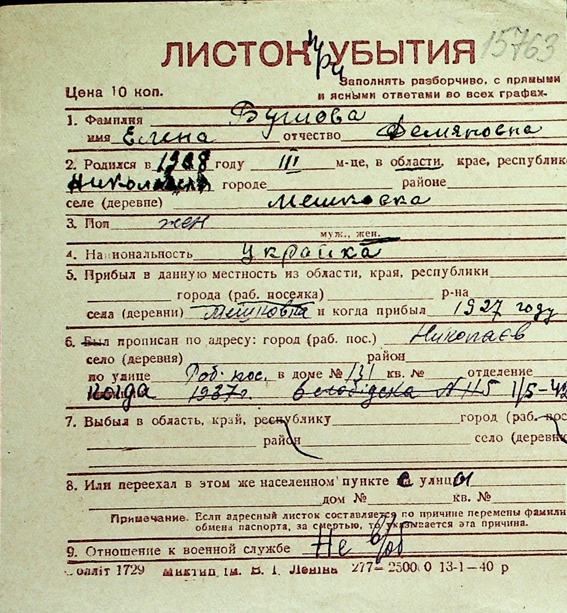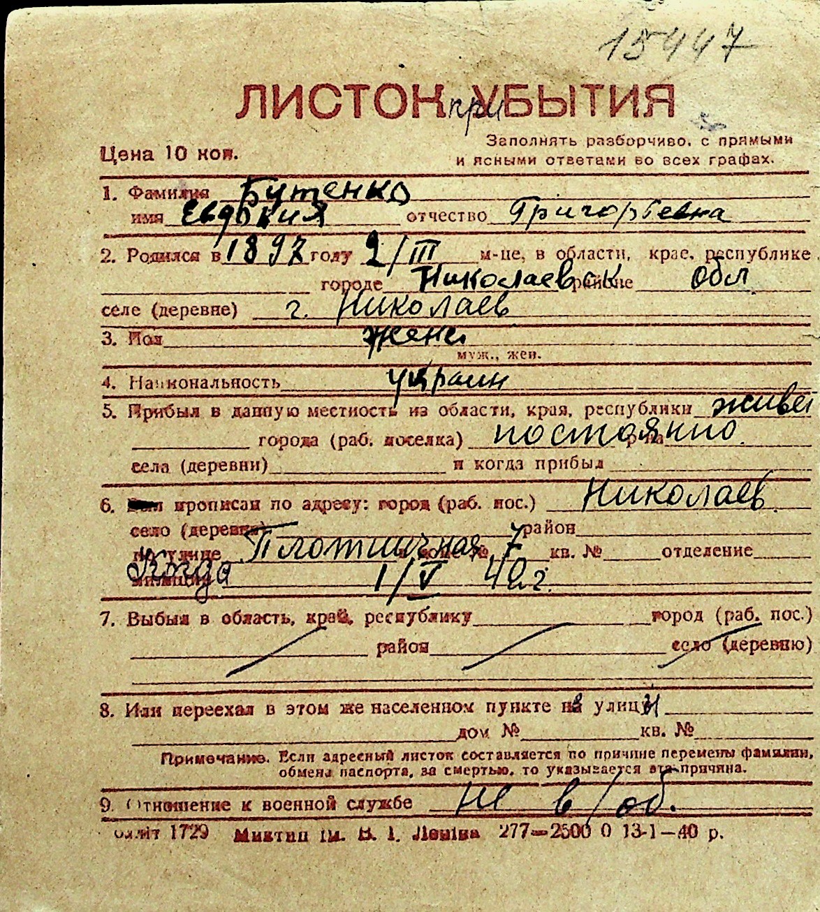◦ ◦ Перелік карток на осіб, які мешкали у м. Миколаїв у період окупації 1941–1944 років