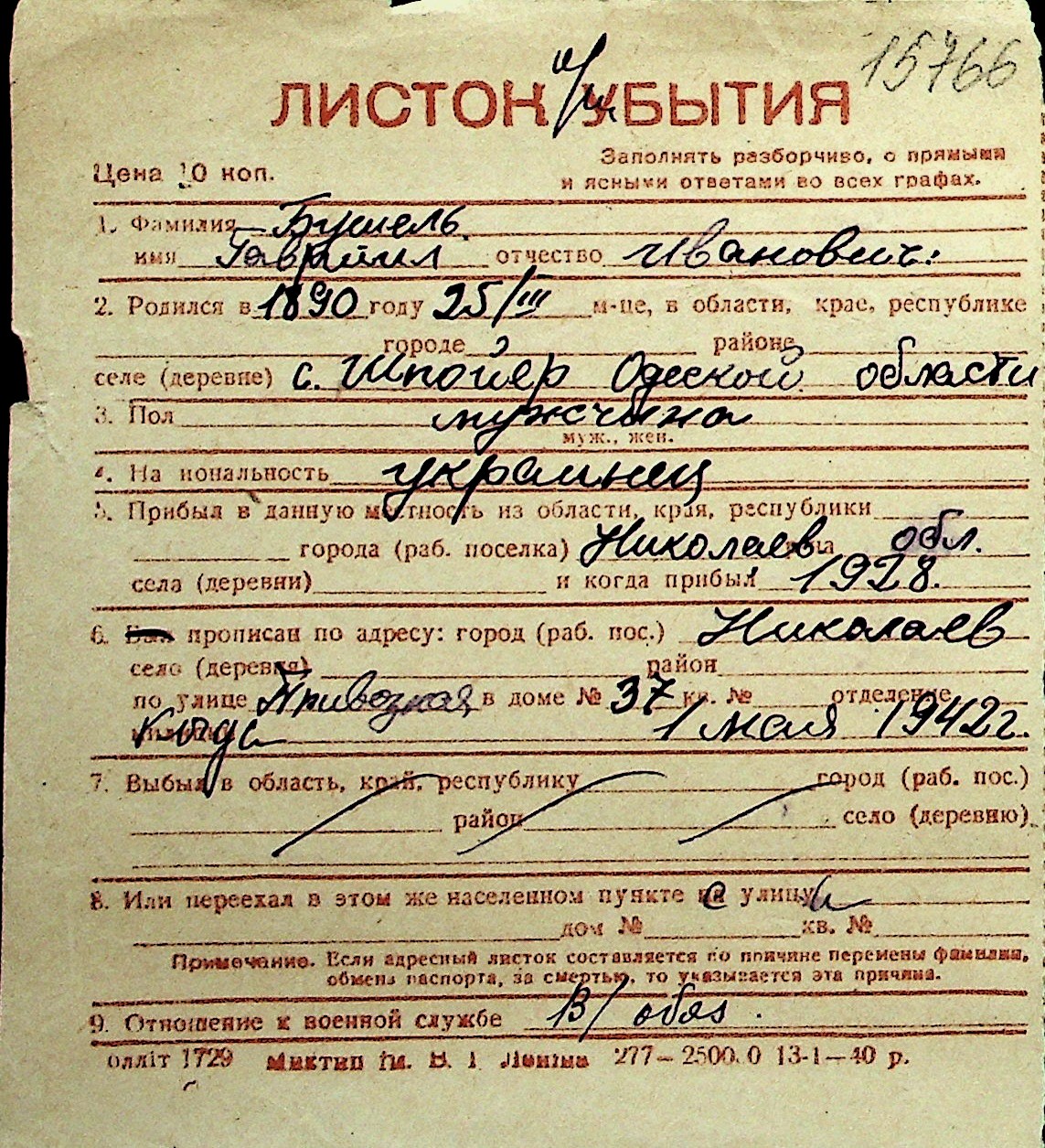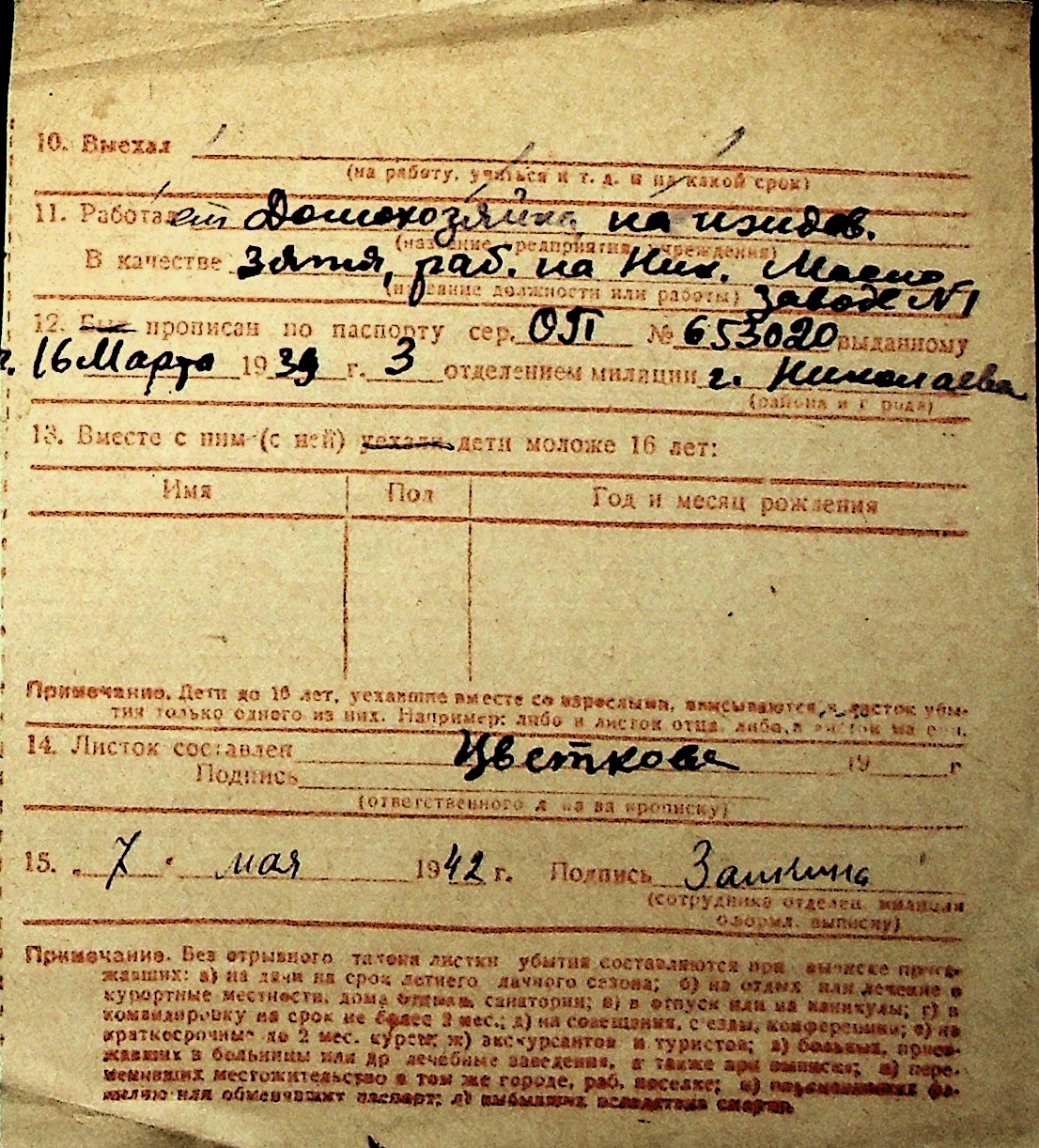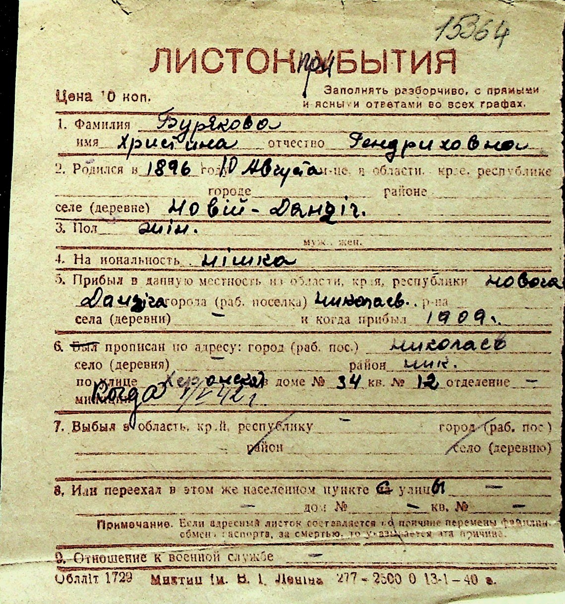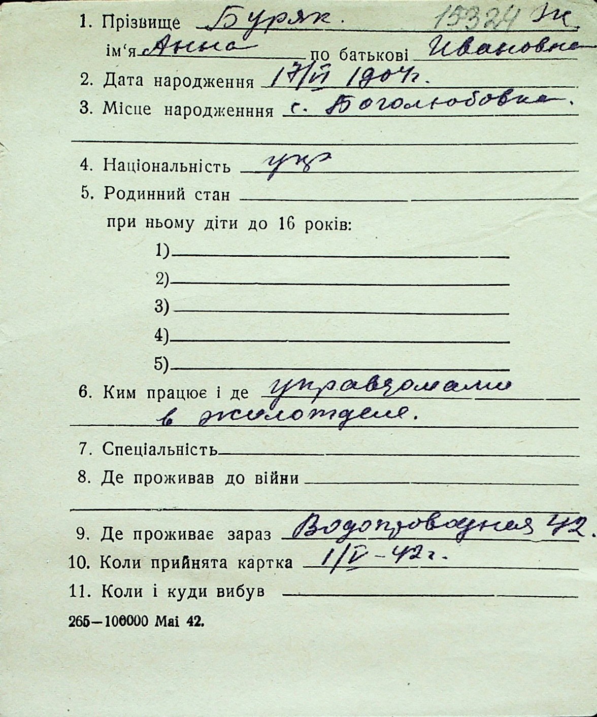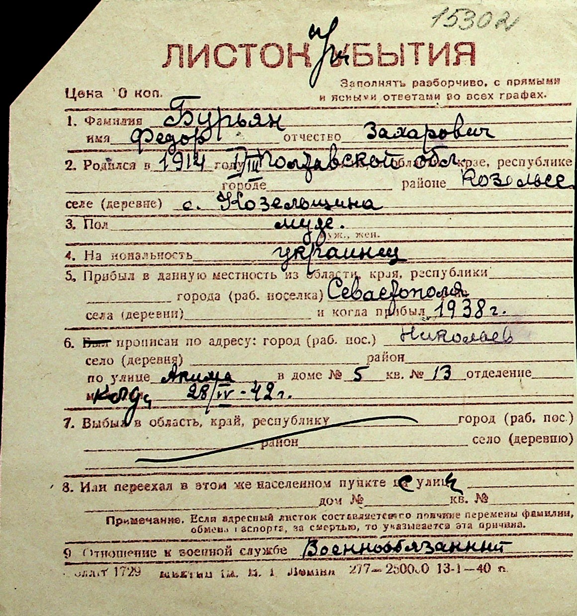 ◦ ◦ Перелік карток на осіб, які мешкали у м. Миколаїв у період окупації 1941–1944 років