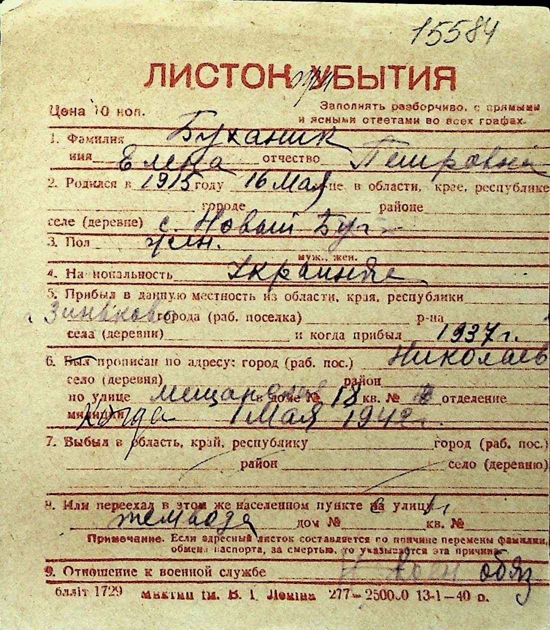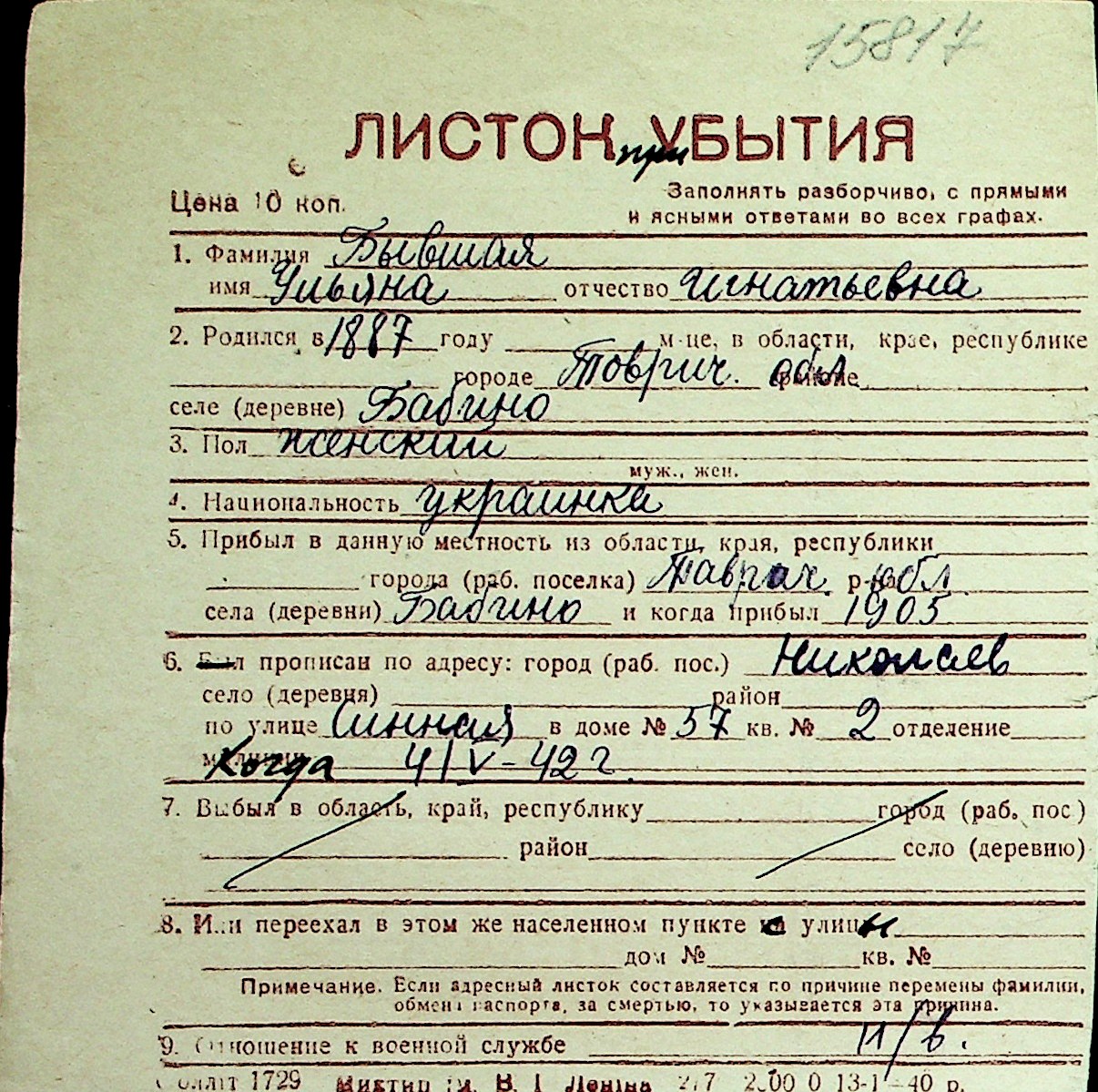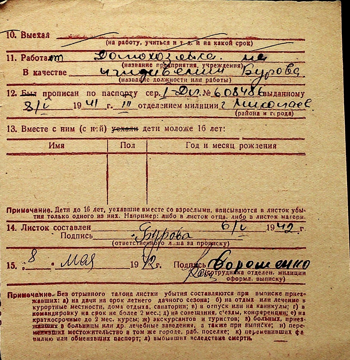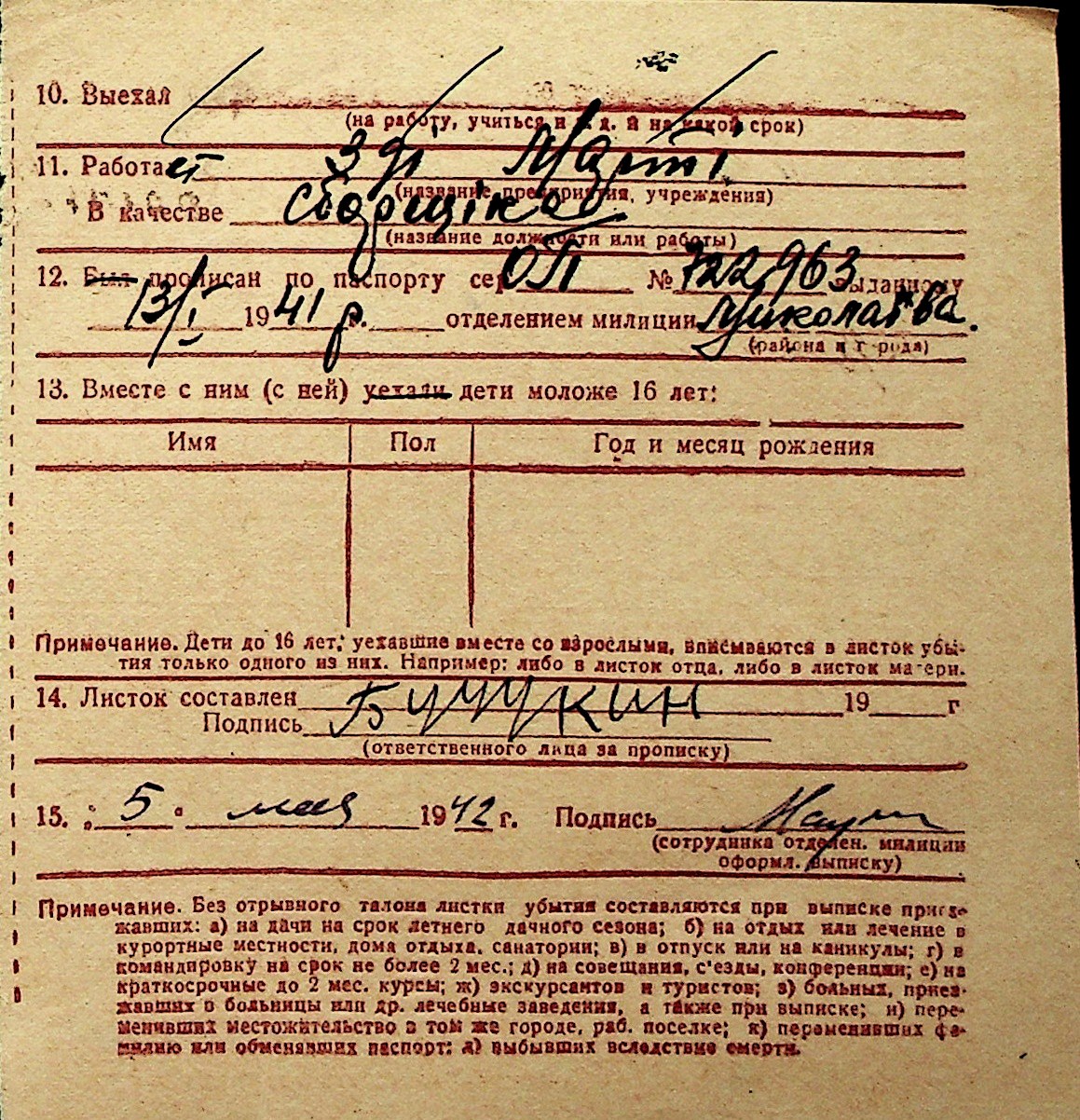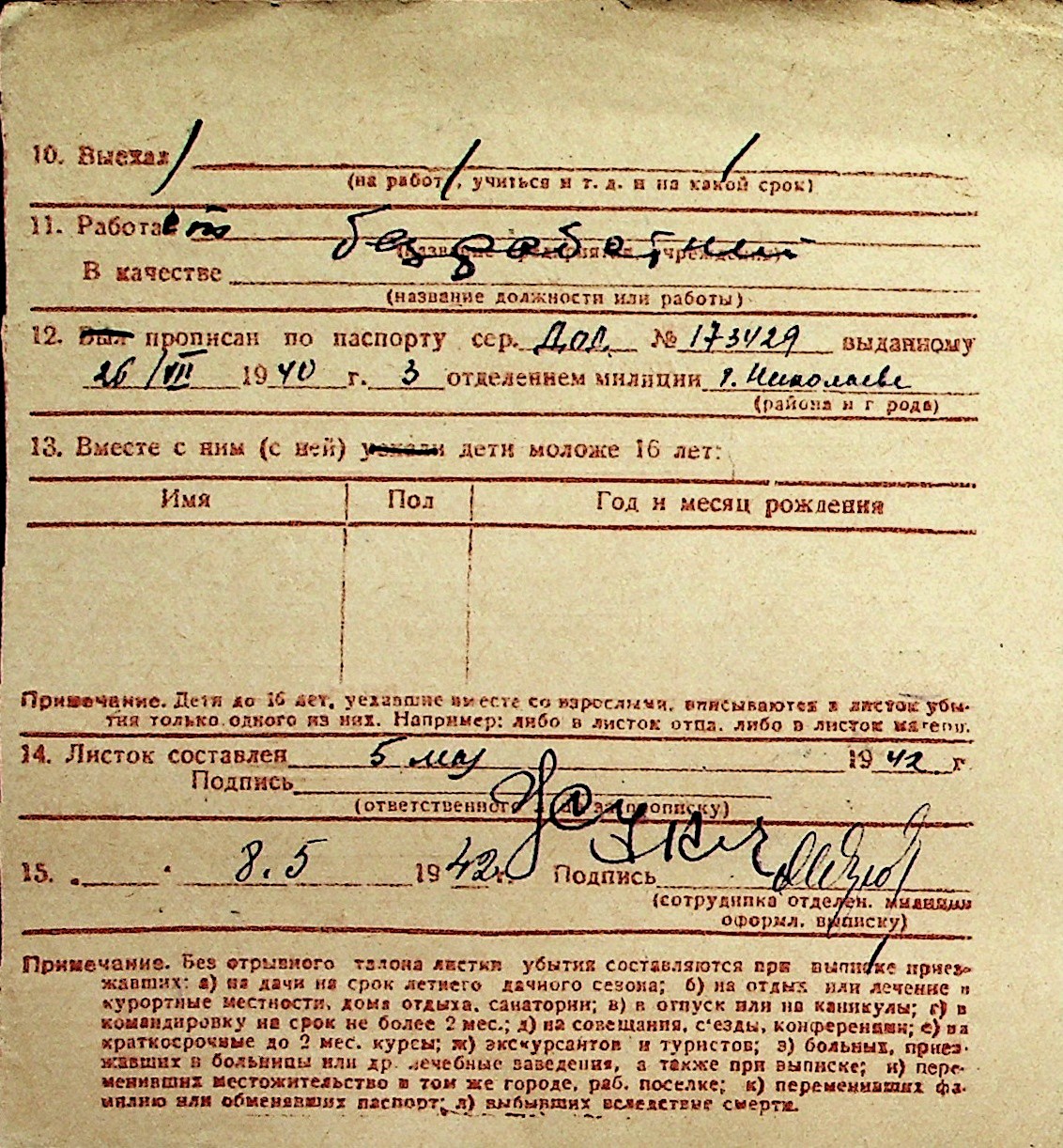 ◦ ◦ Перелік карток на осіб, які мешкали у м. Миколаїв у період окупації 1941–1944 років