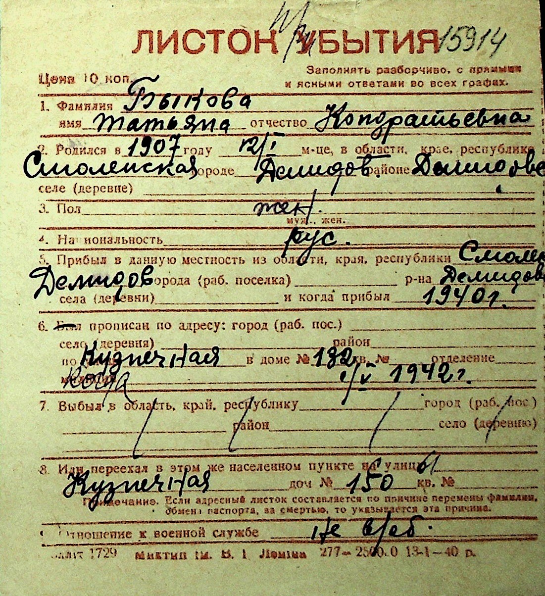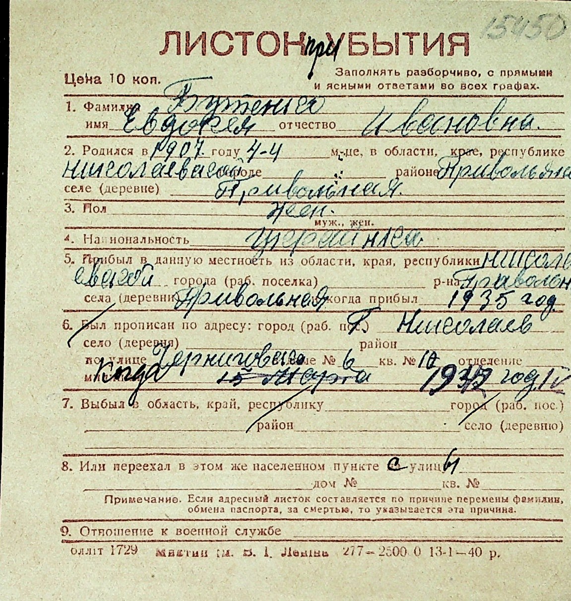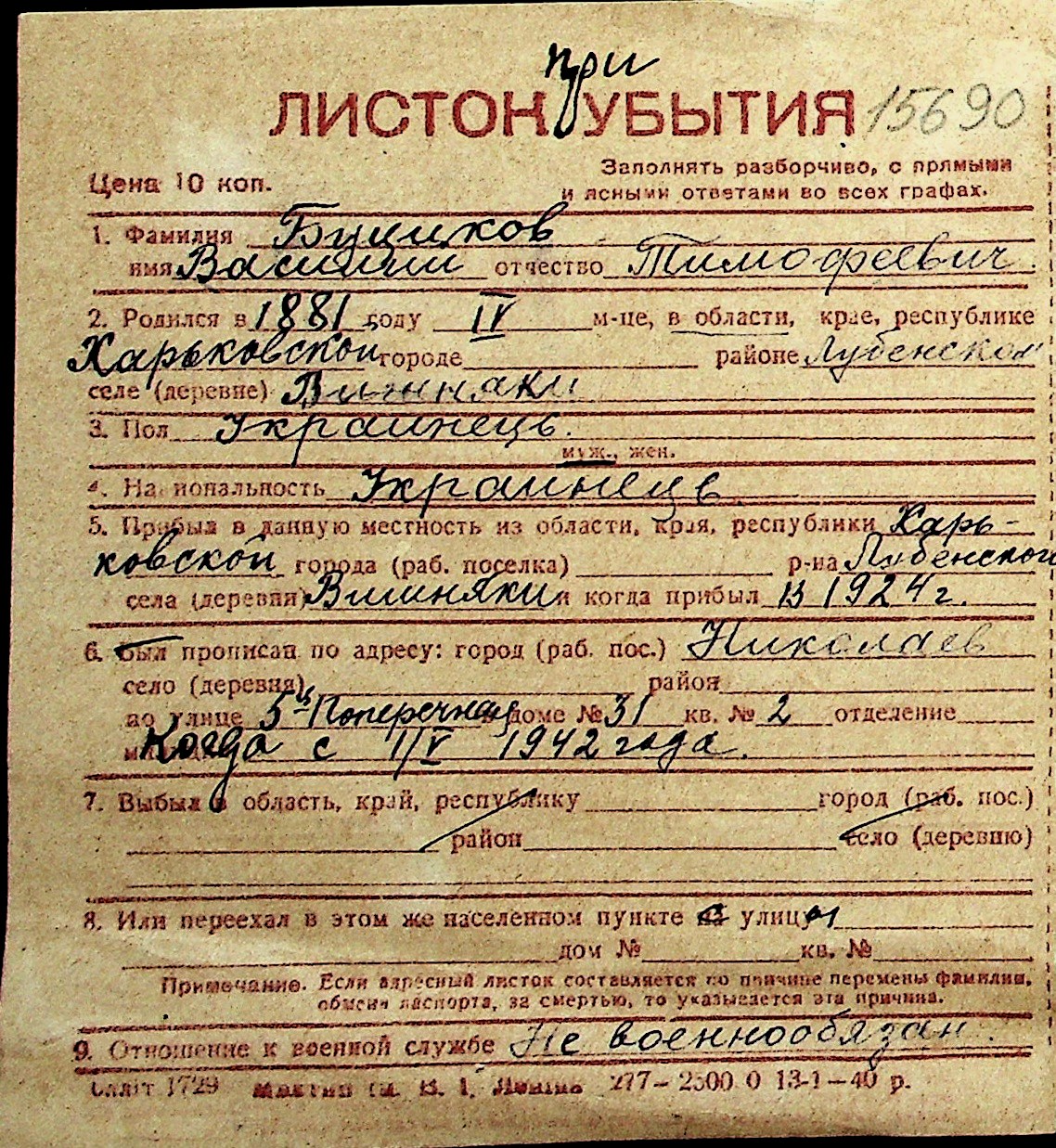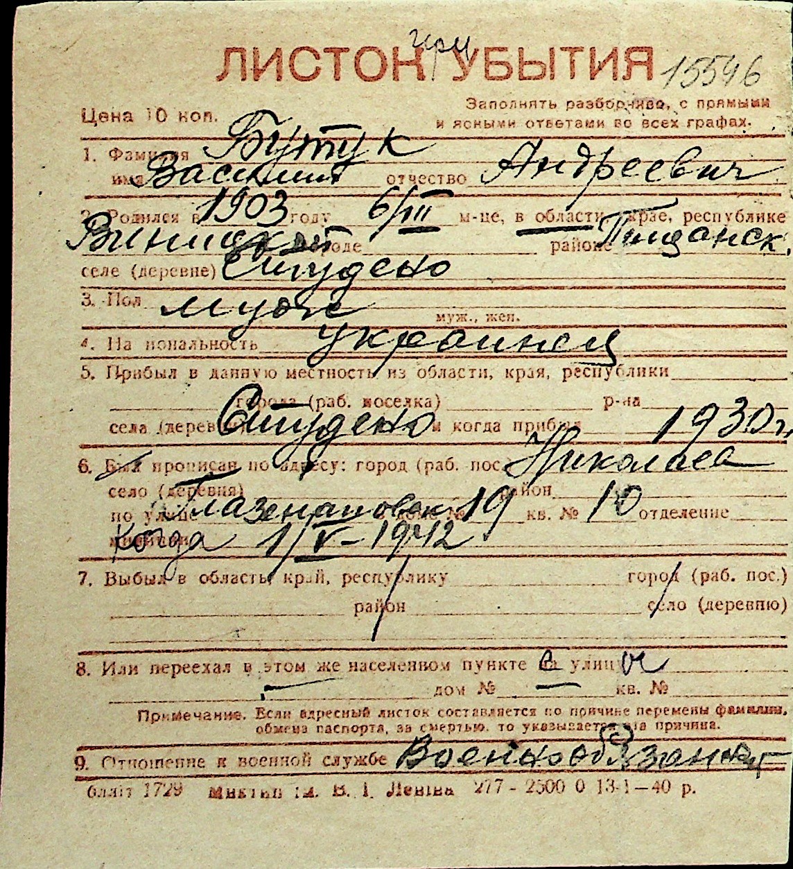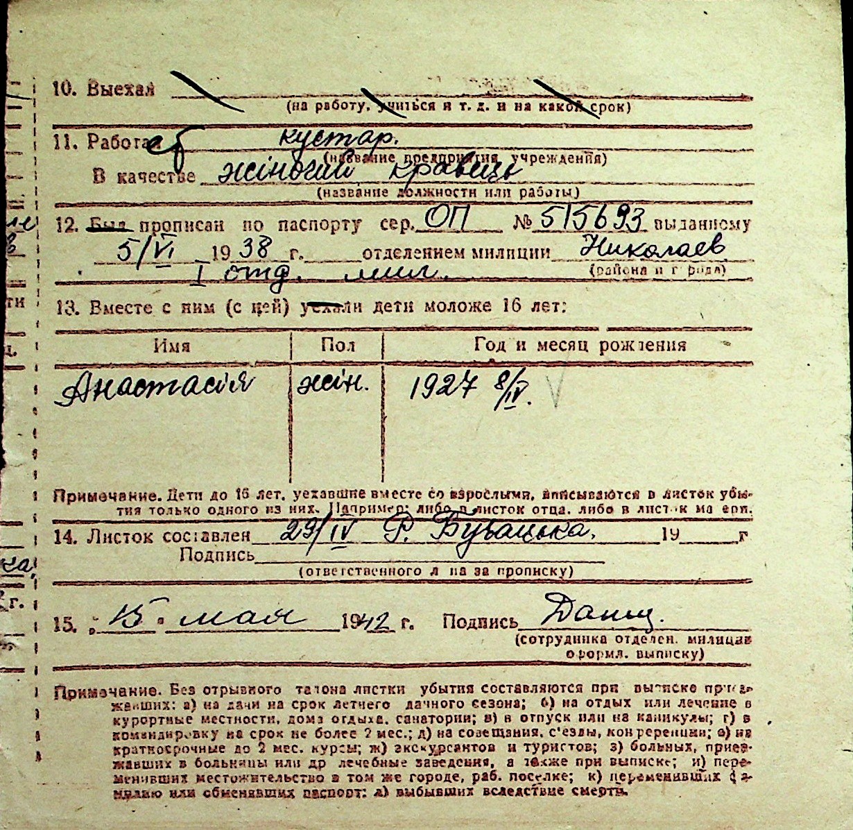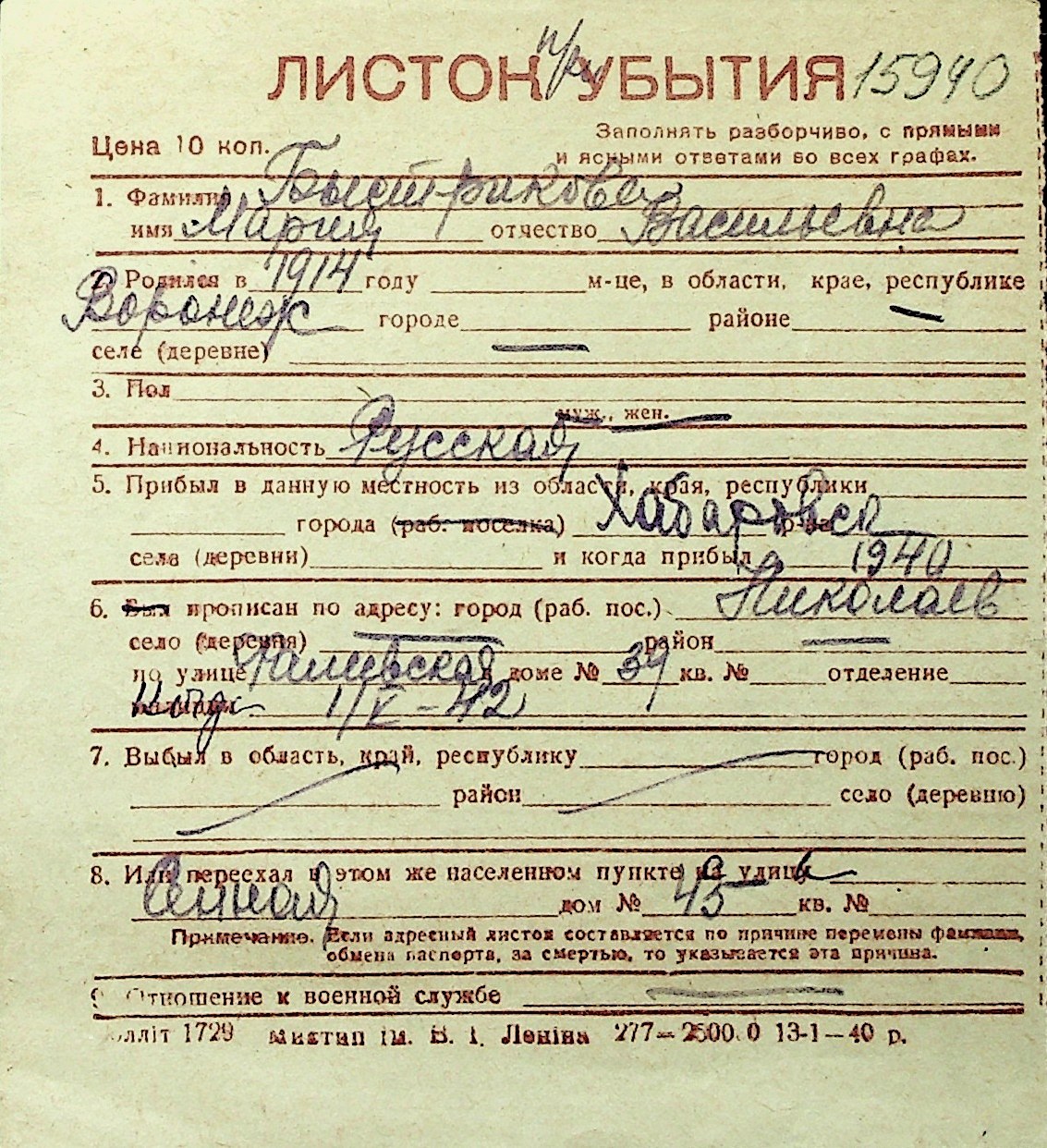 ◦ ◦ Перелік карток на осіб, які мешкали у м. Миколаїв у період окупації 1941–1944 років
