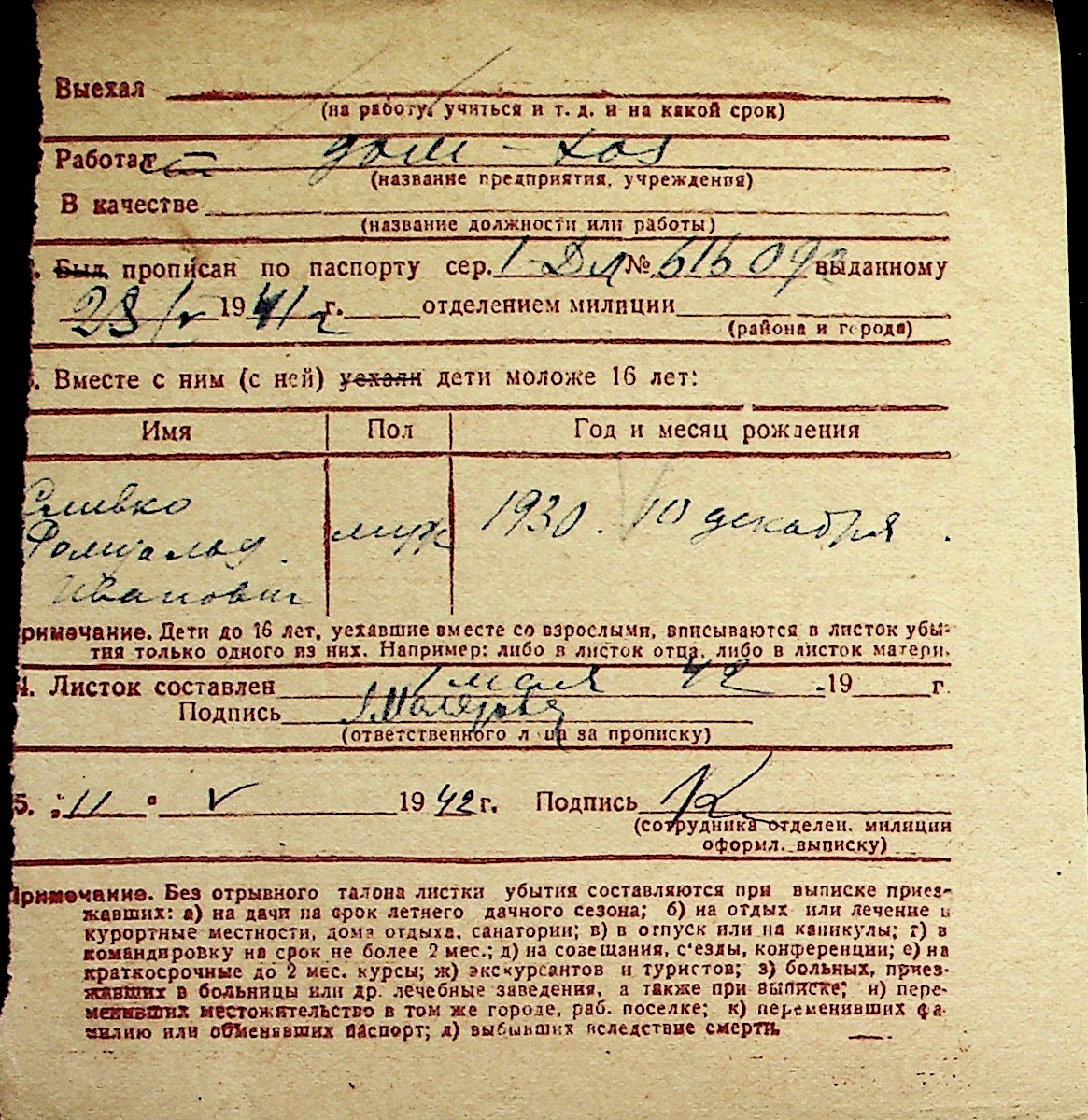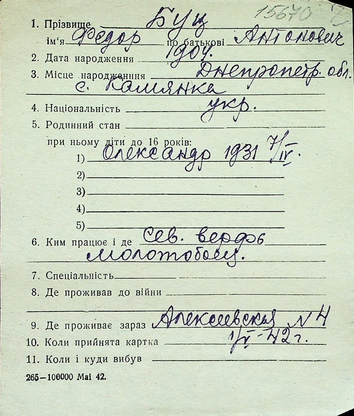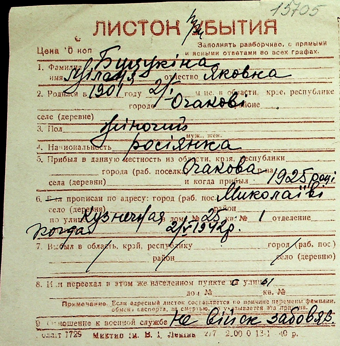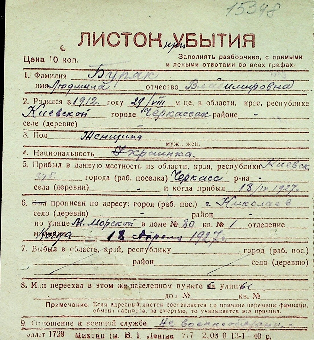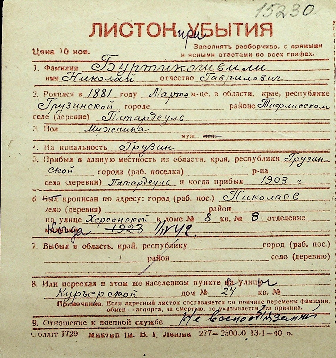 ◦ ◦ Перелік карток на осіб, які мешкали у м. Миколаїв у період окупації 1941–1944 років