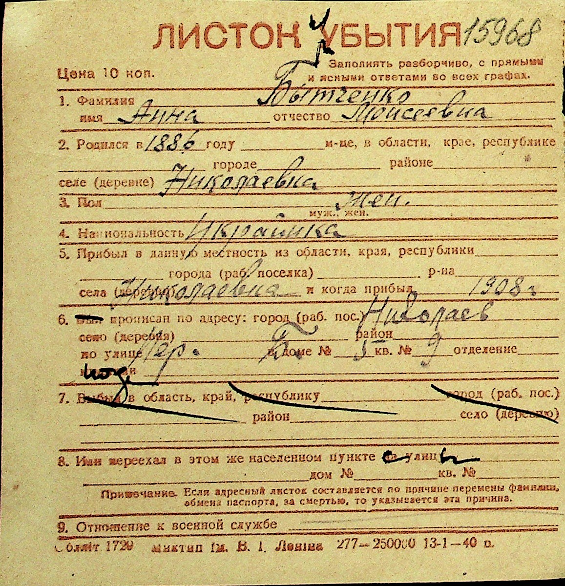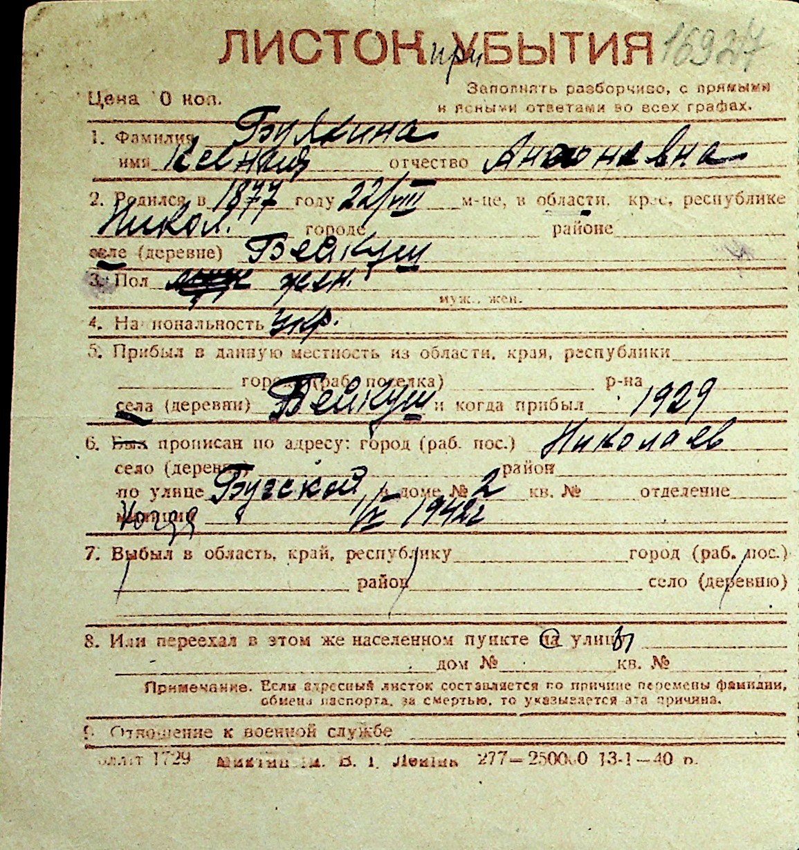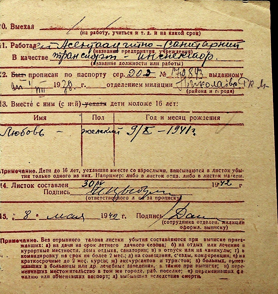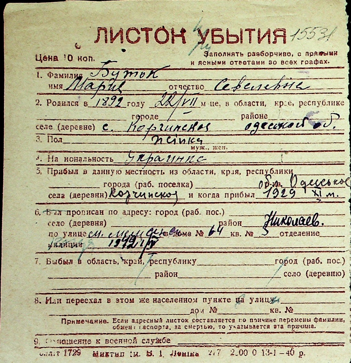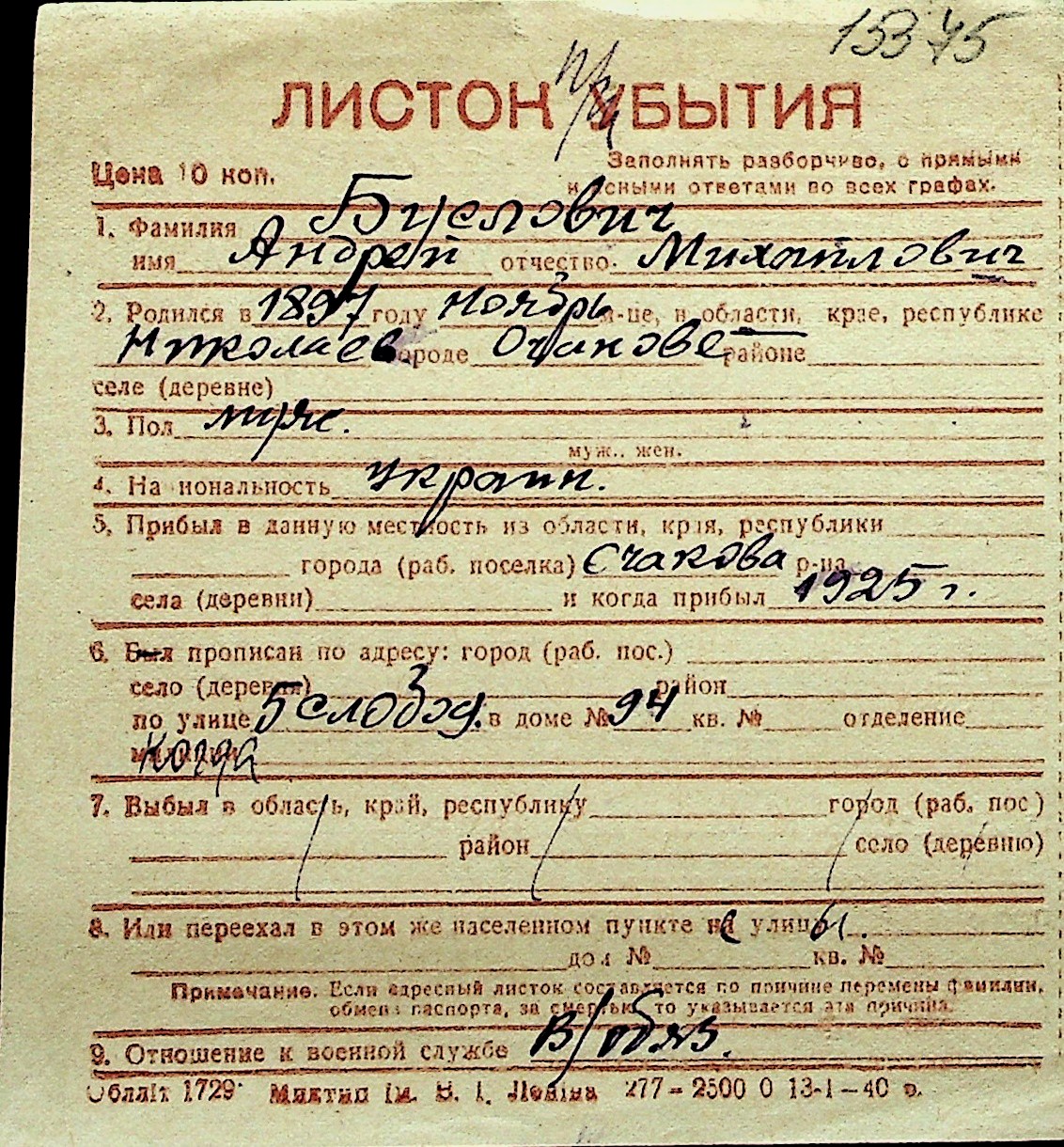 ◦ ◦ Перелік карток на осіб, які мешкали у м. Миколаїв у період окупації 1941–1944 років