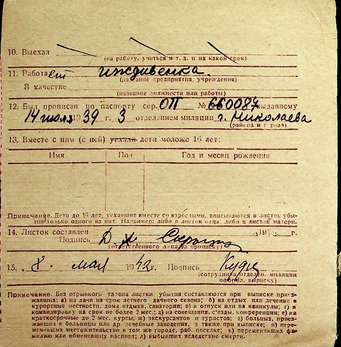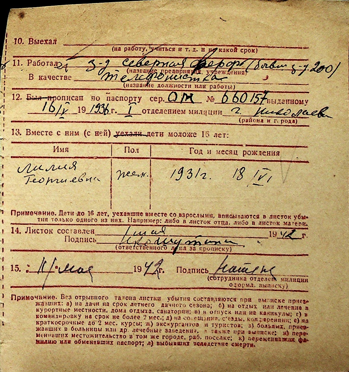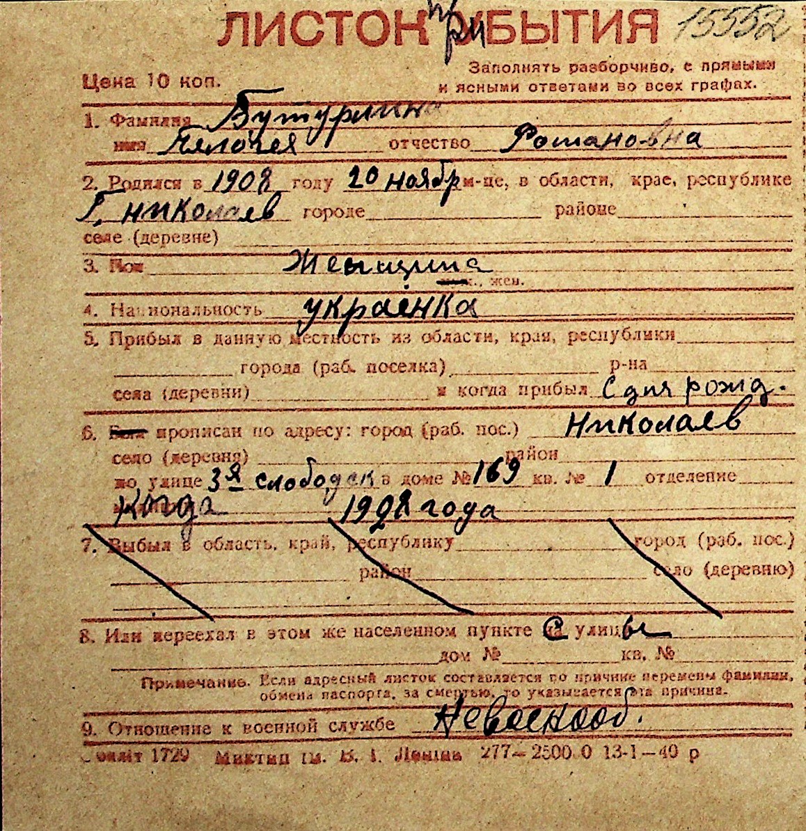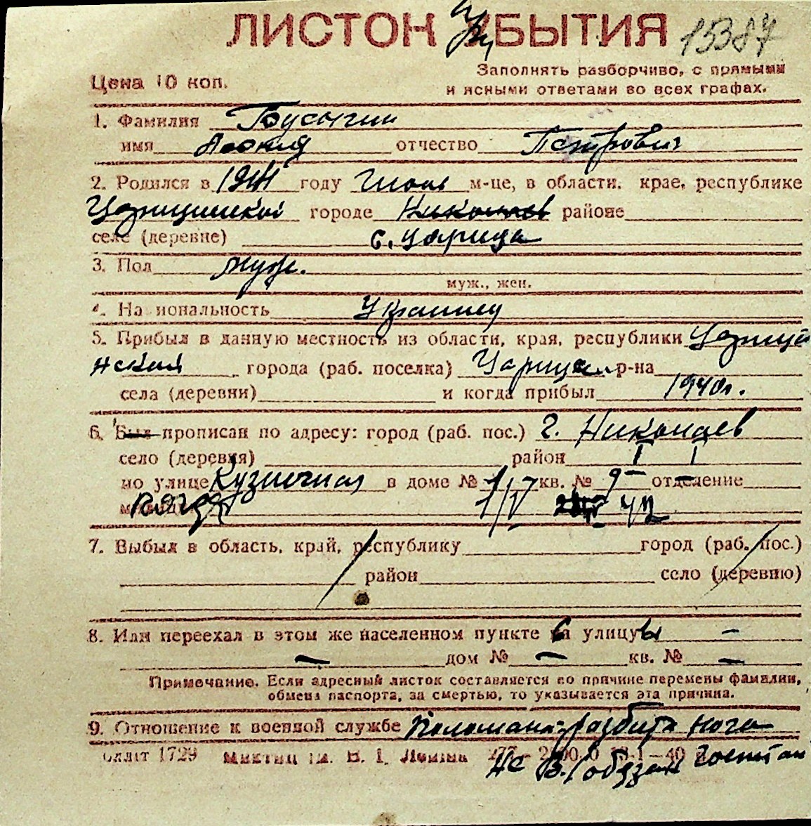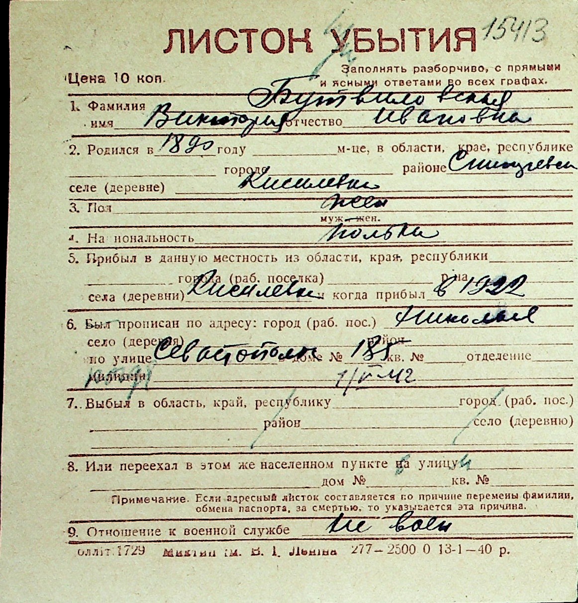 ◦ ◦ Перелік карток на осіб, які мешкали у м. Миколаїв у період окупації 1941–1944 років