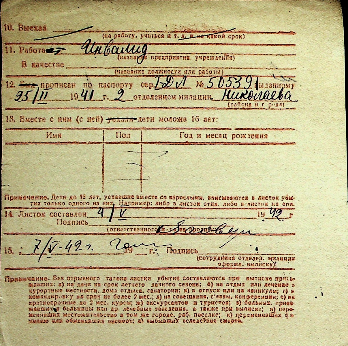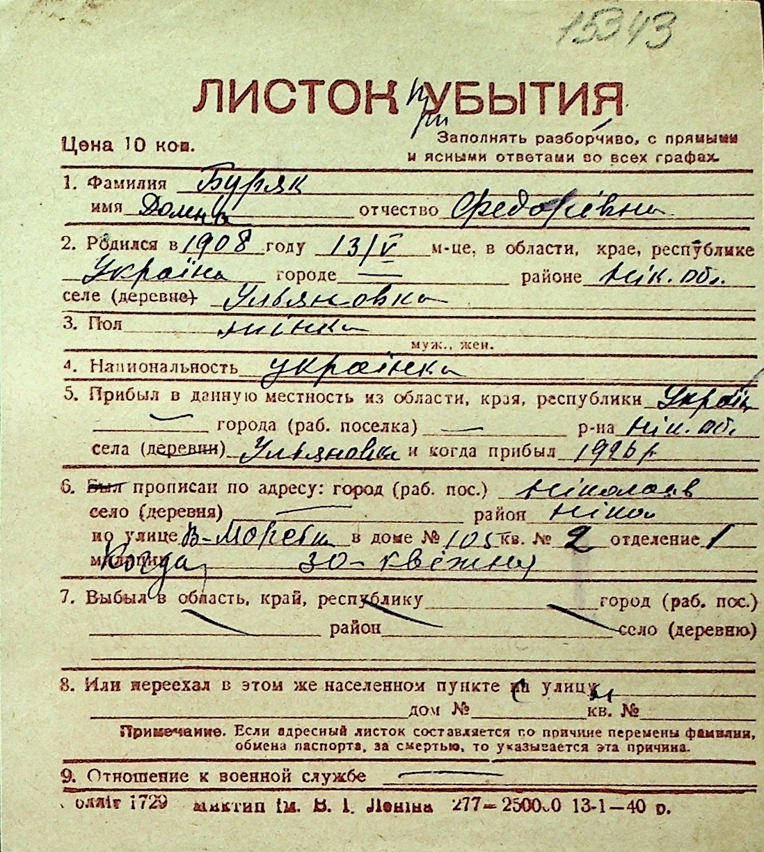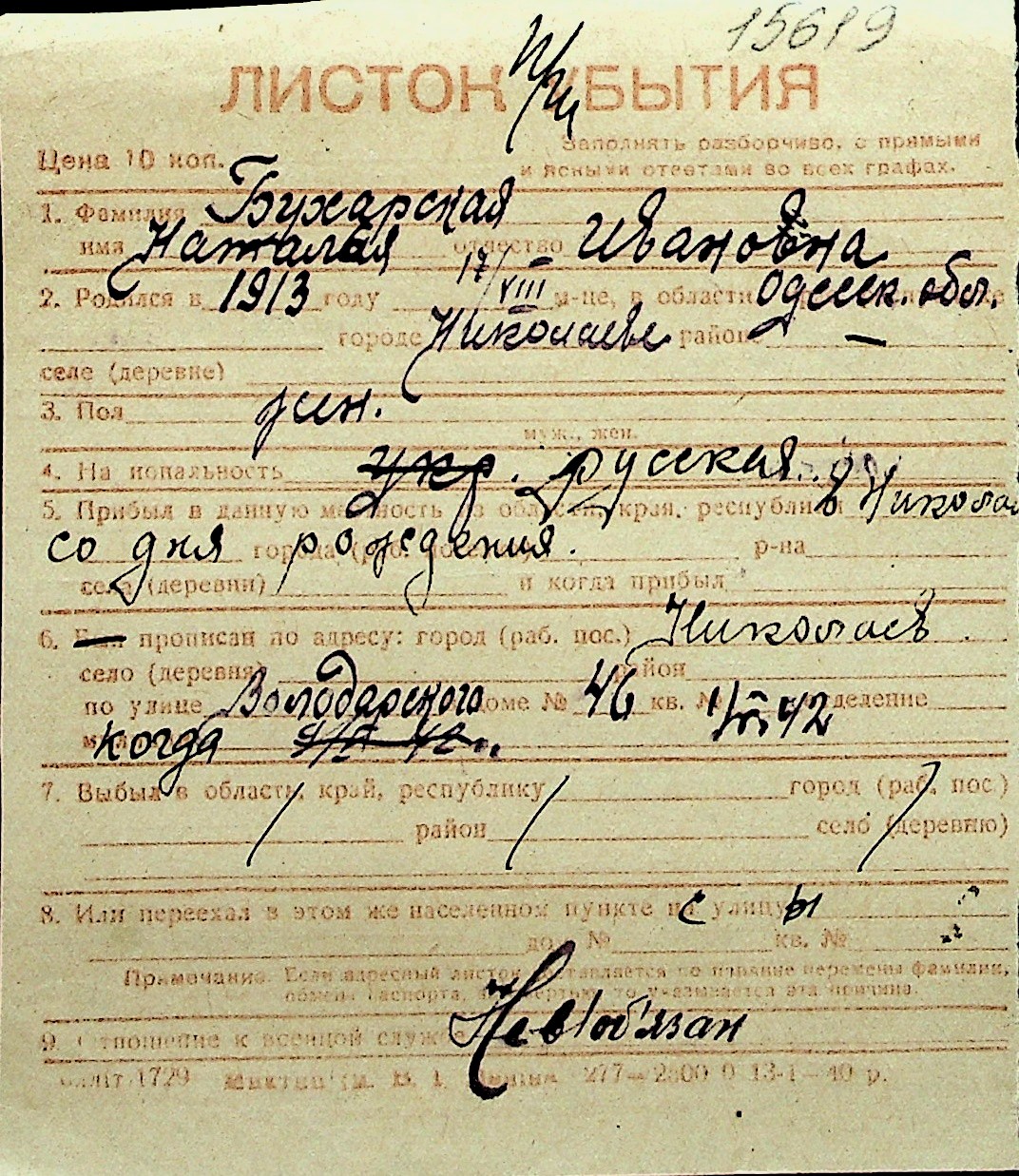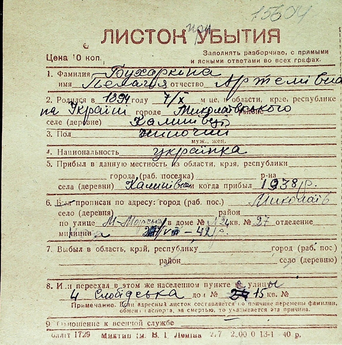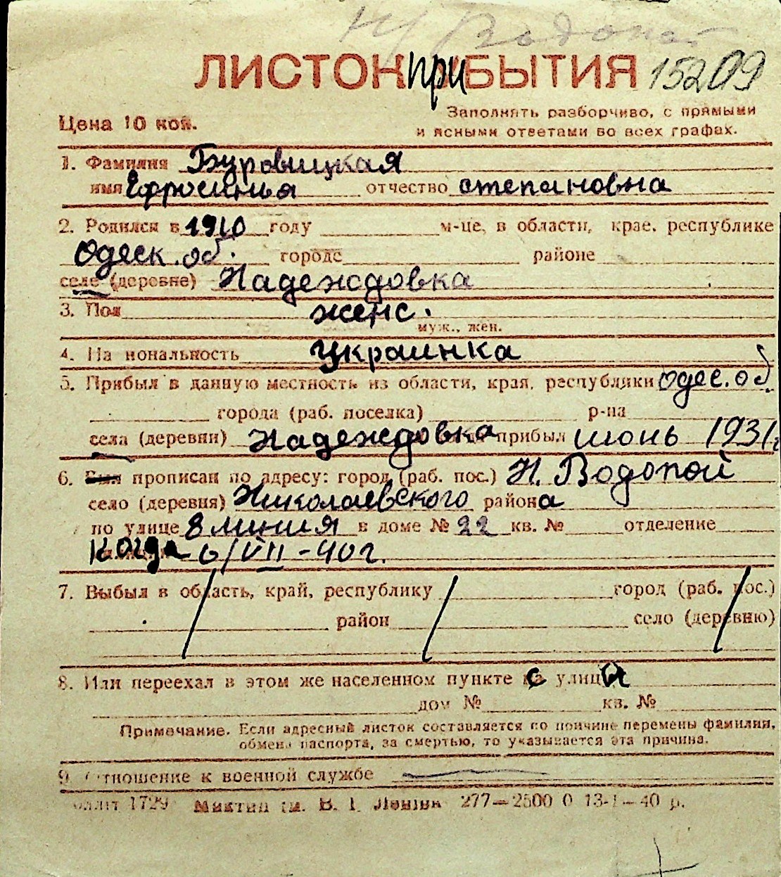 ◦ ◦ Перелік карток на осіб, які мешкали у м. Миколаїв у період окупації 1941–1944 років