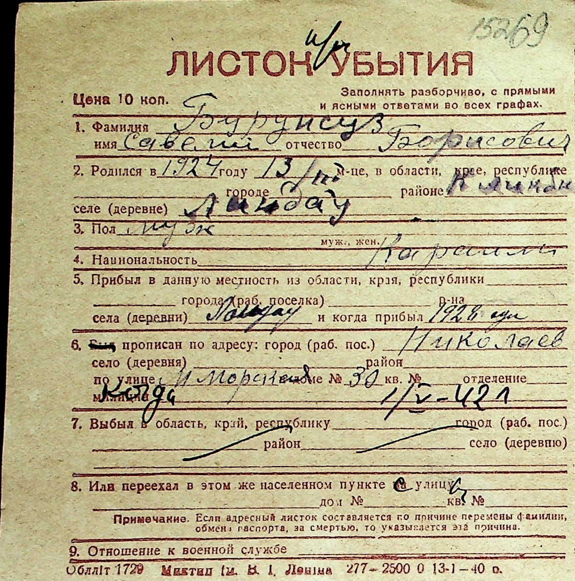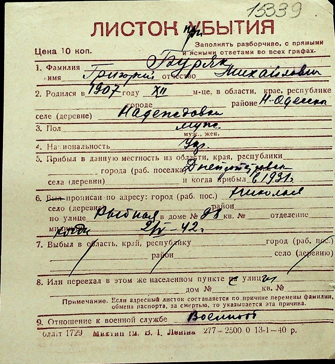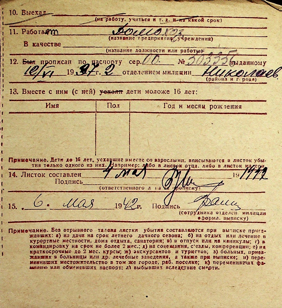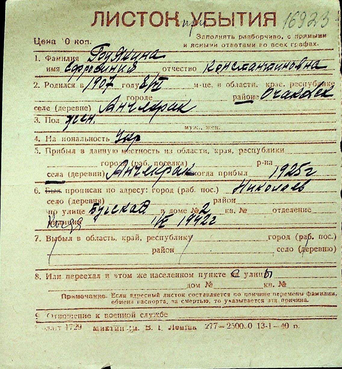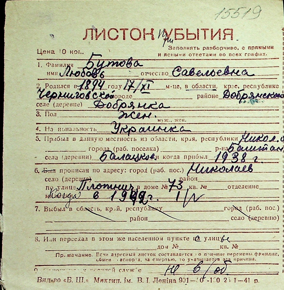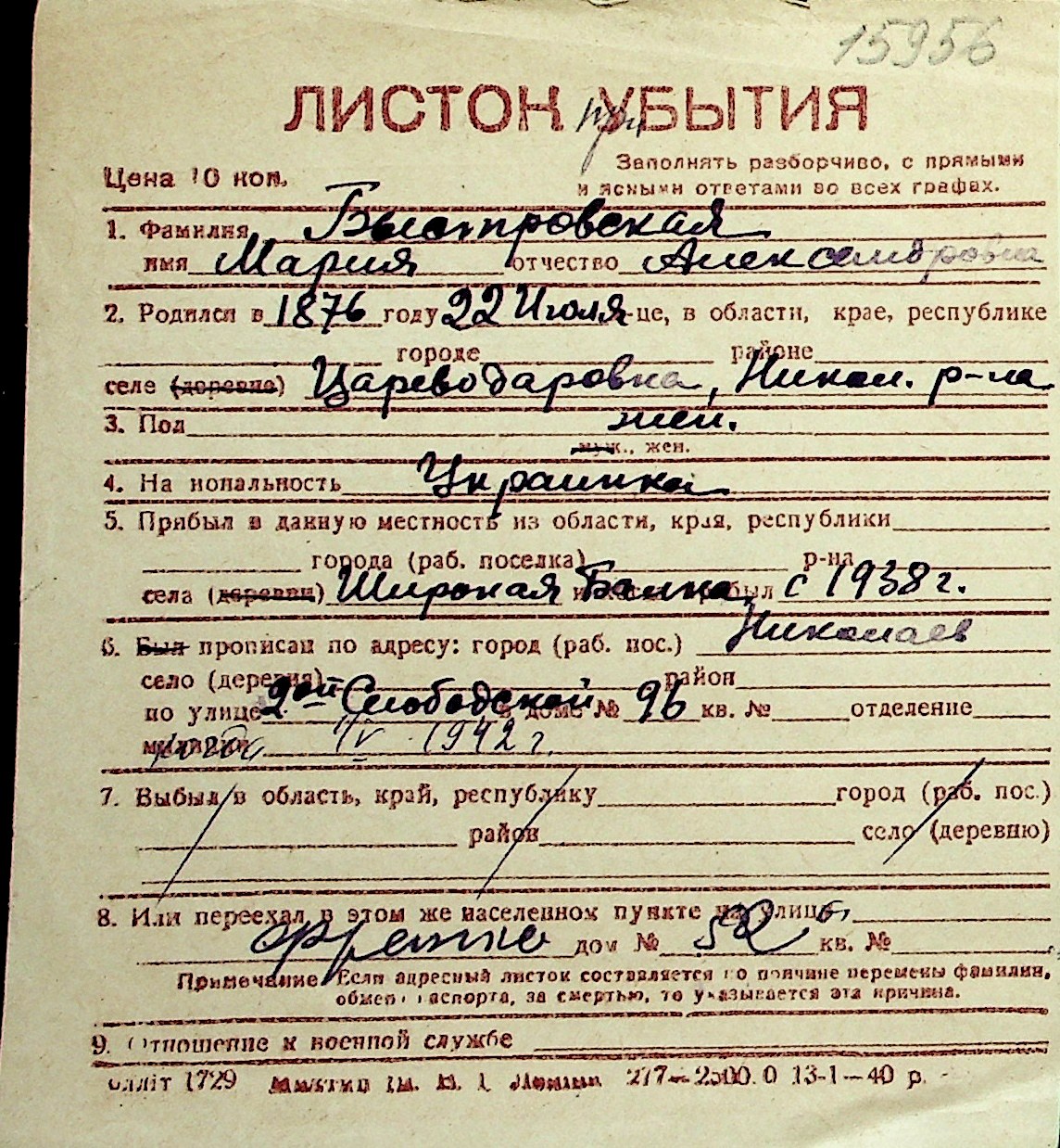◦ ◦ Перелік карток на осіб, які мешкали у м. Миколаїв у період окупації 1941–1944 років