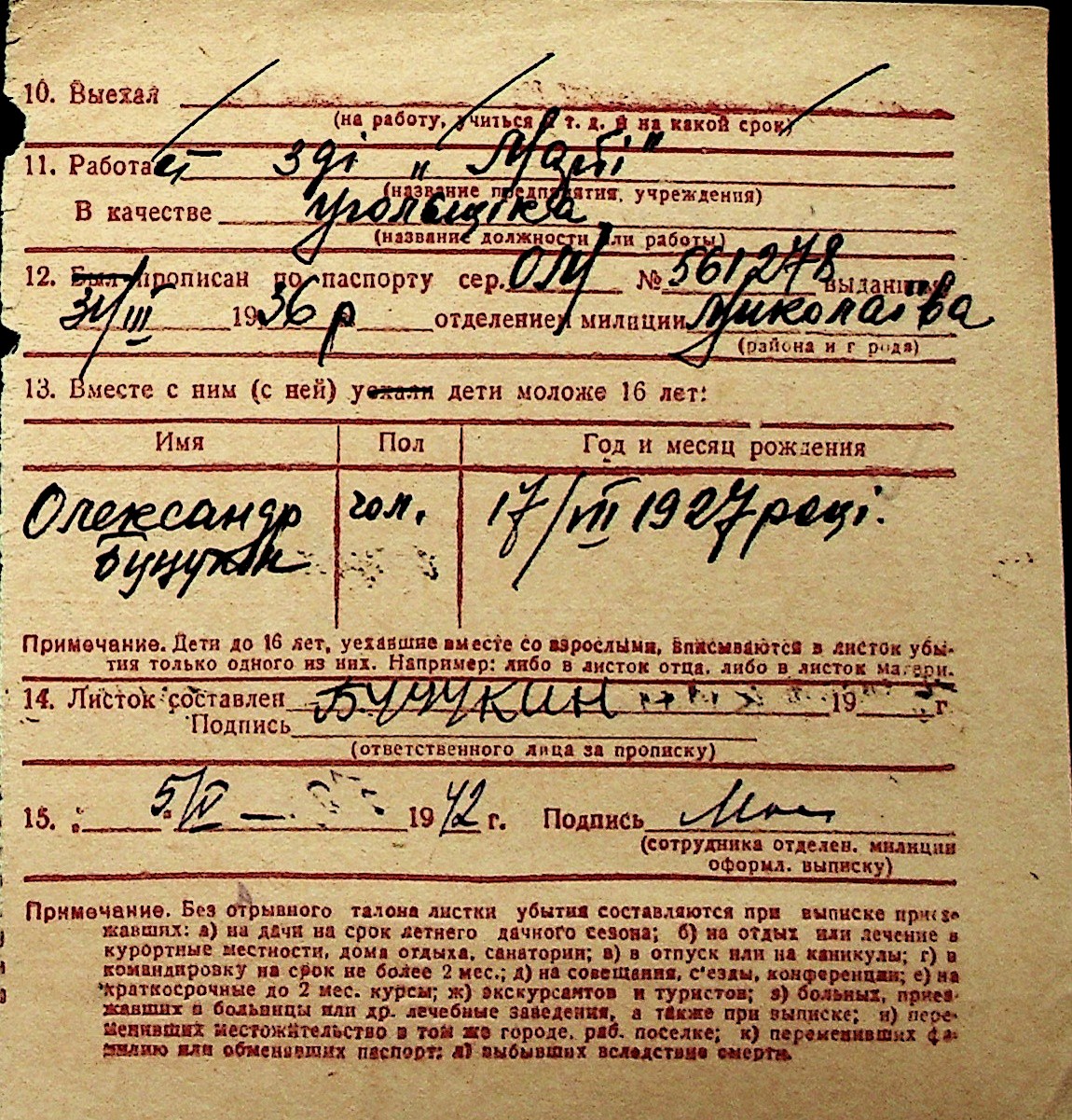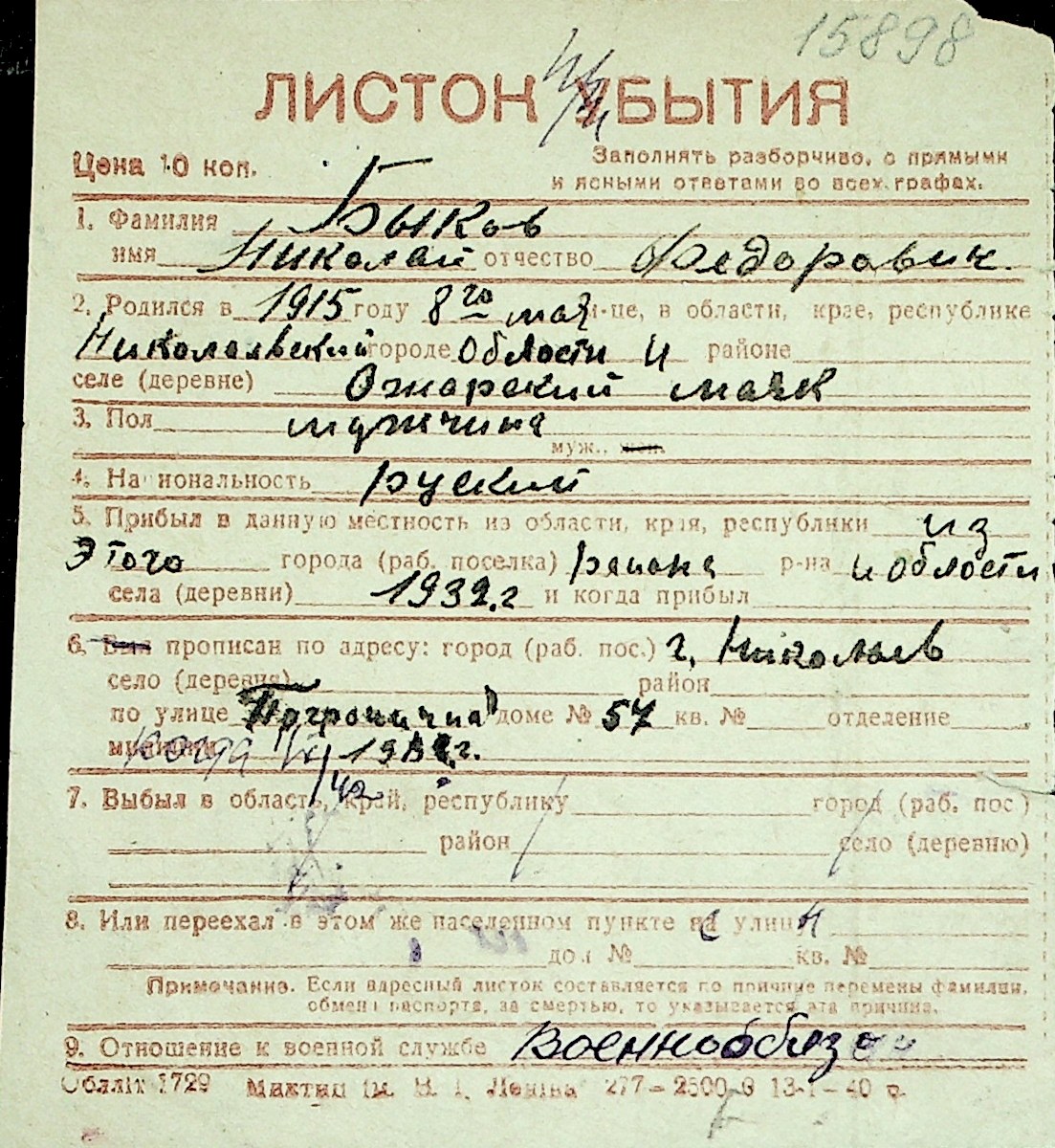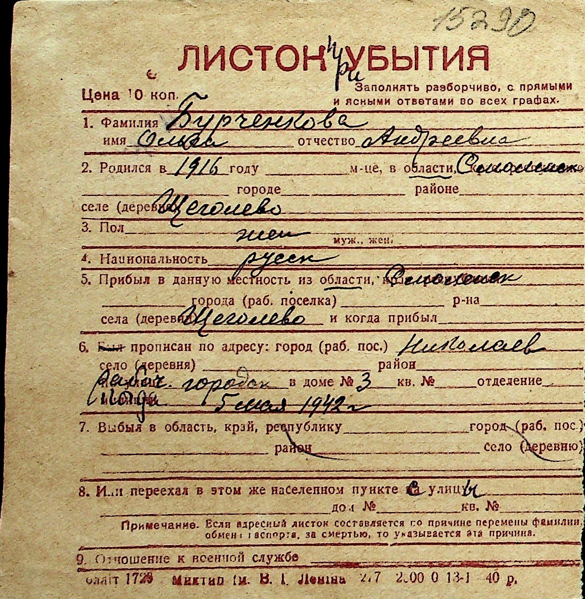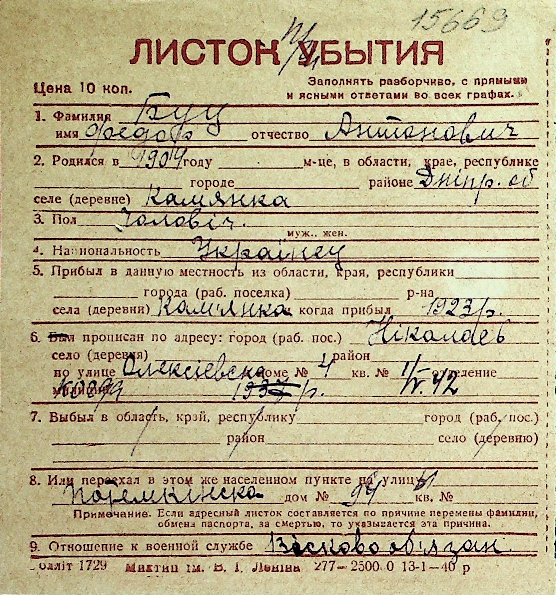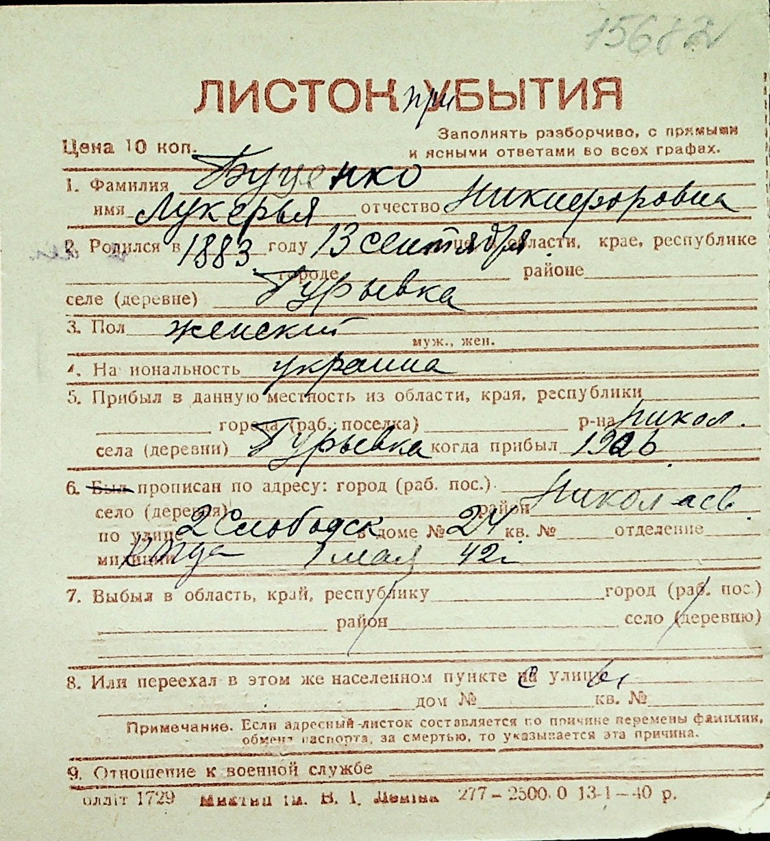 ◦ ◦ Перелік карток на осіб, які мешкали у м. Миколаїв у період окупації 1941–1944 років