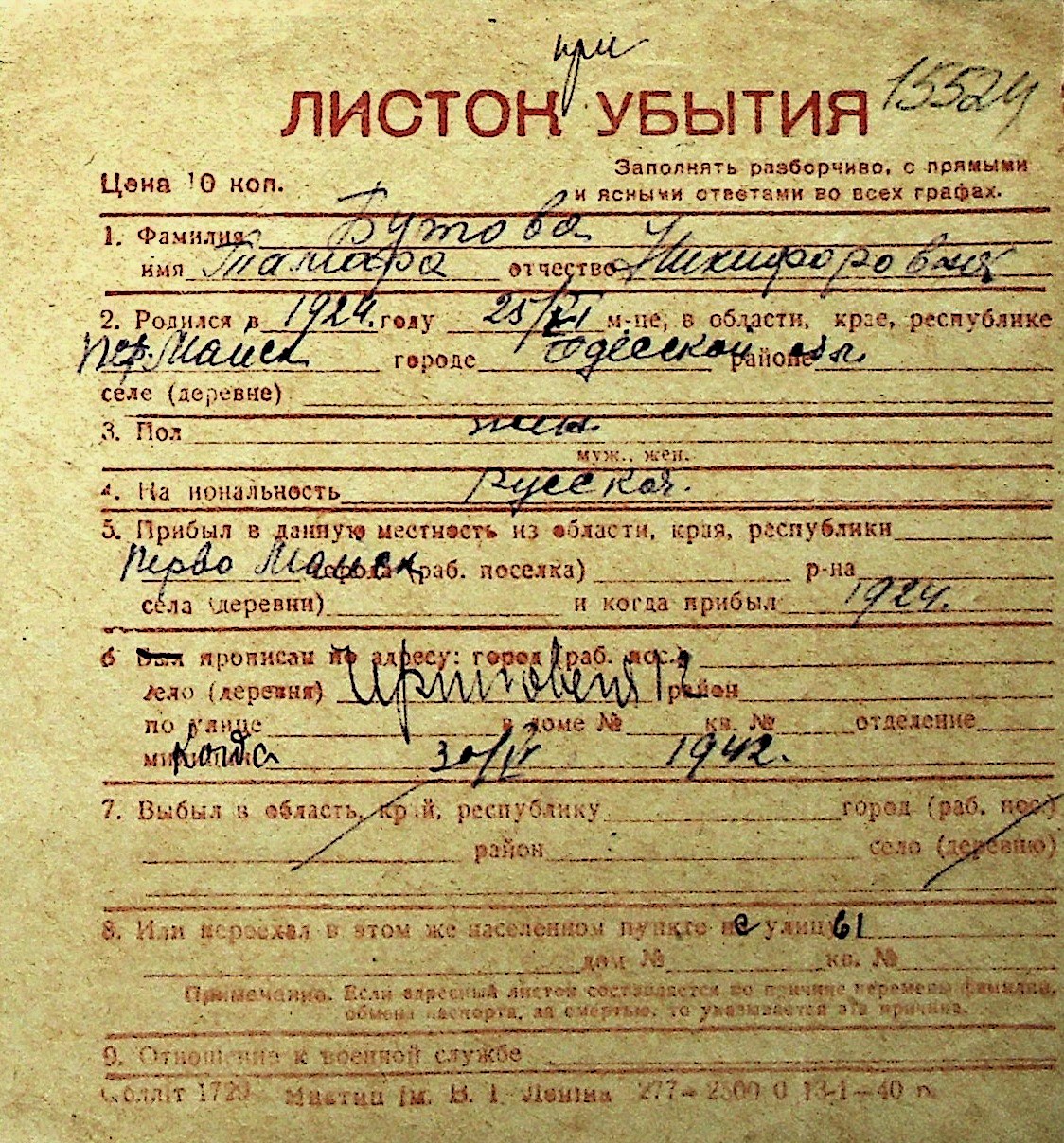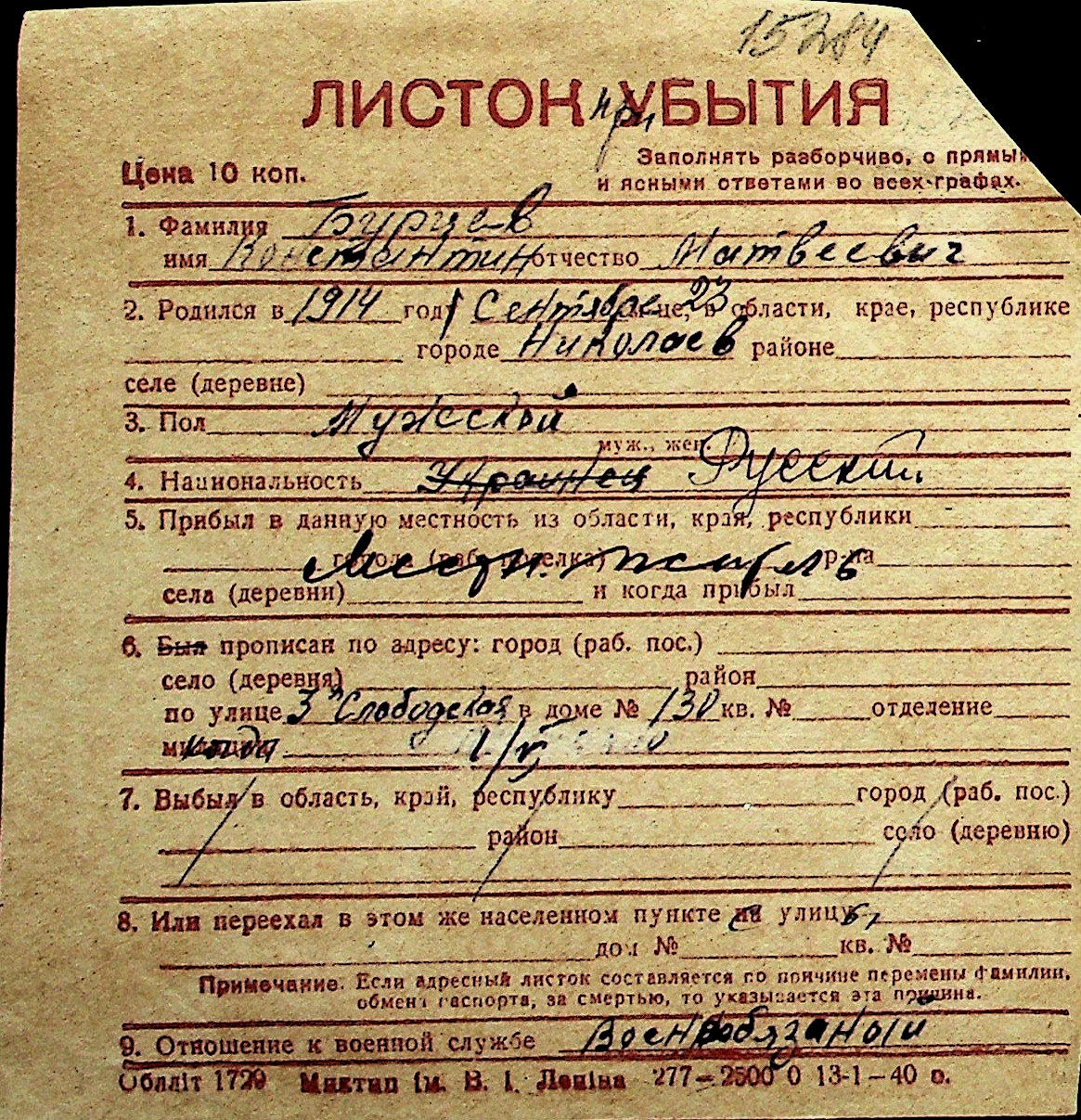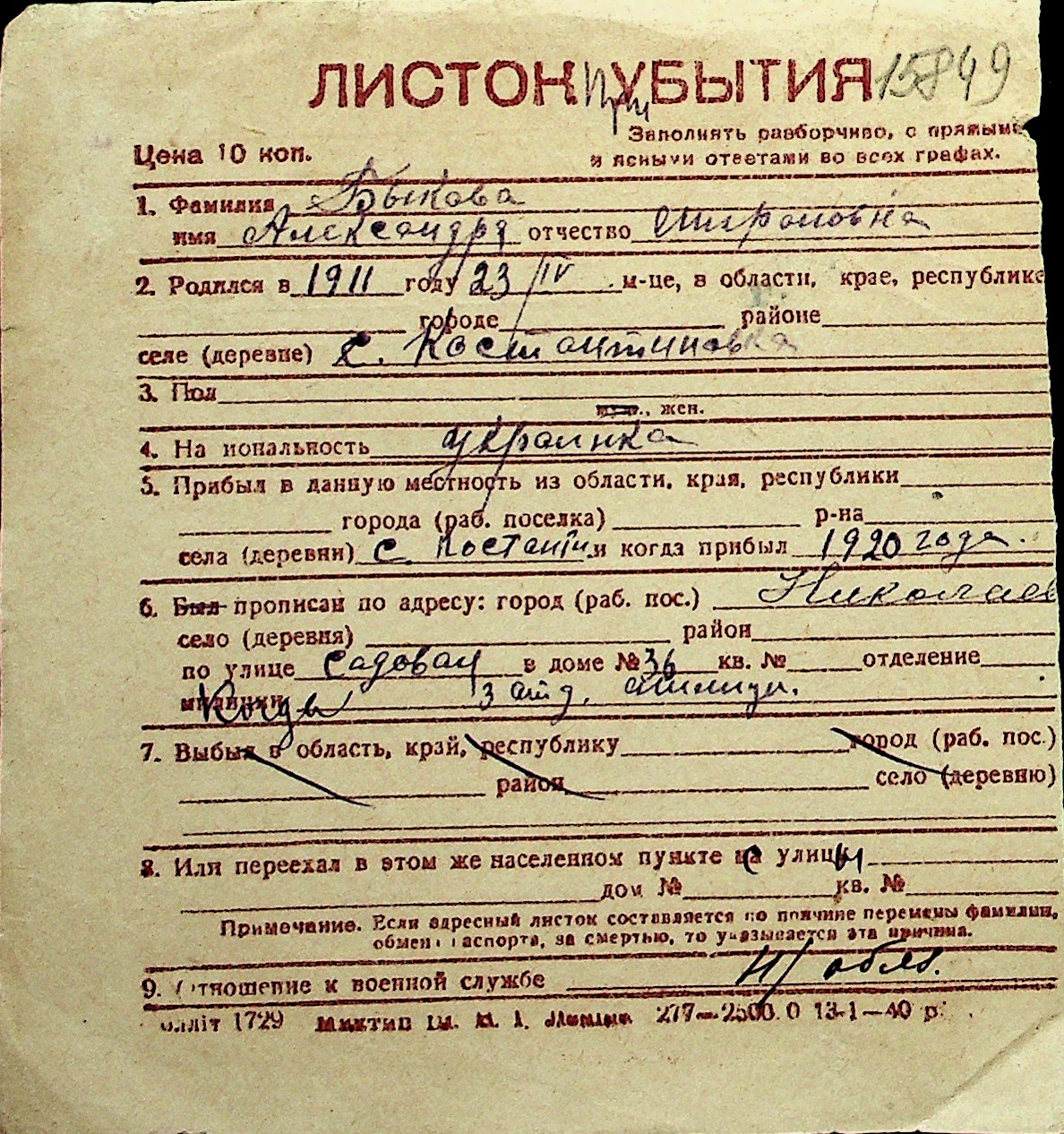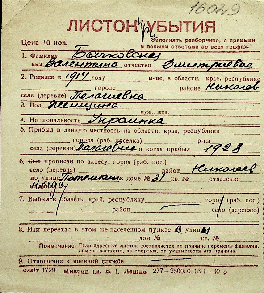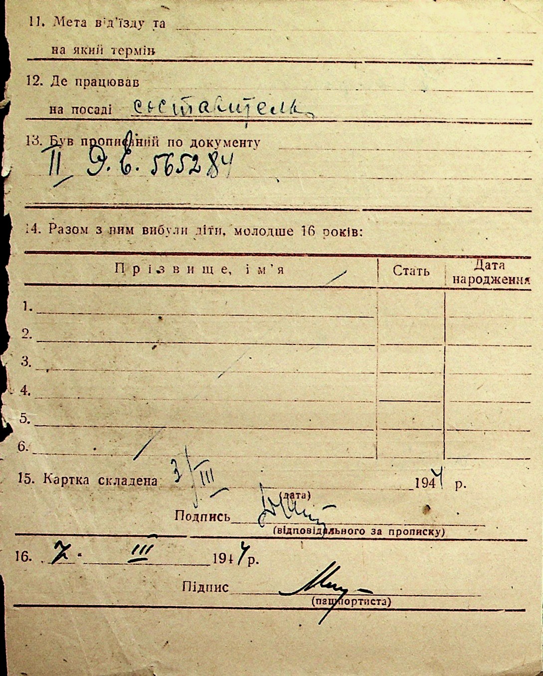 ◦ ◦ Перелік карток на осіб, які мешкали у м. Миколаїв у період окупації 1941–1944 років