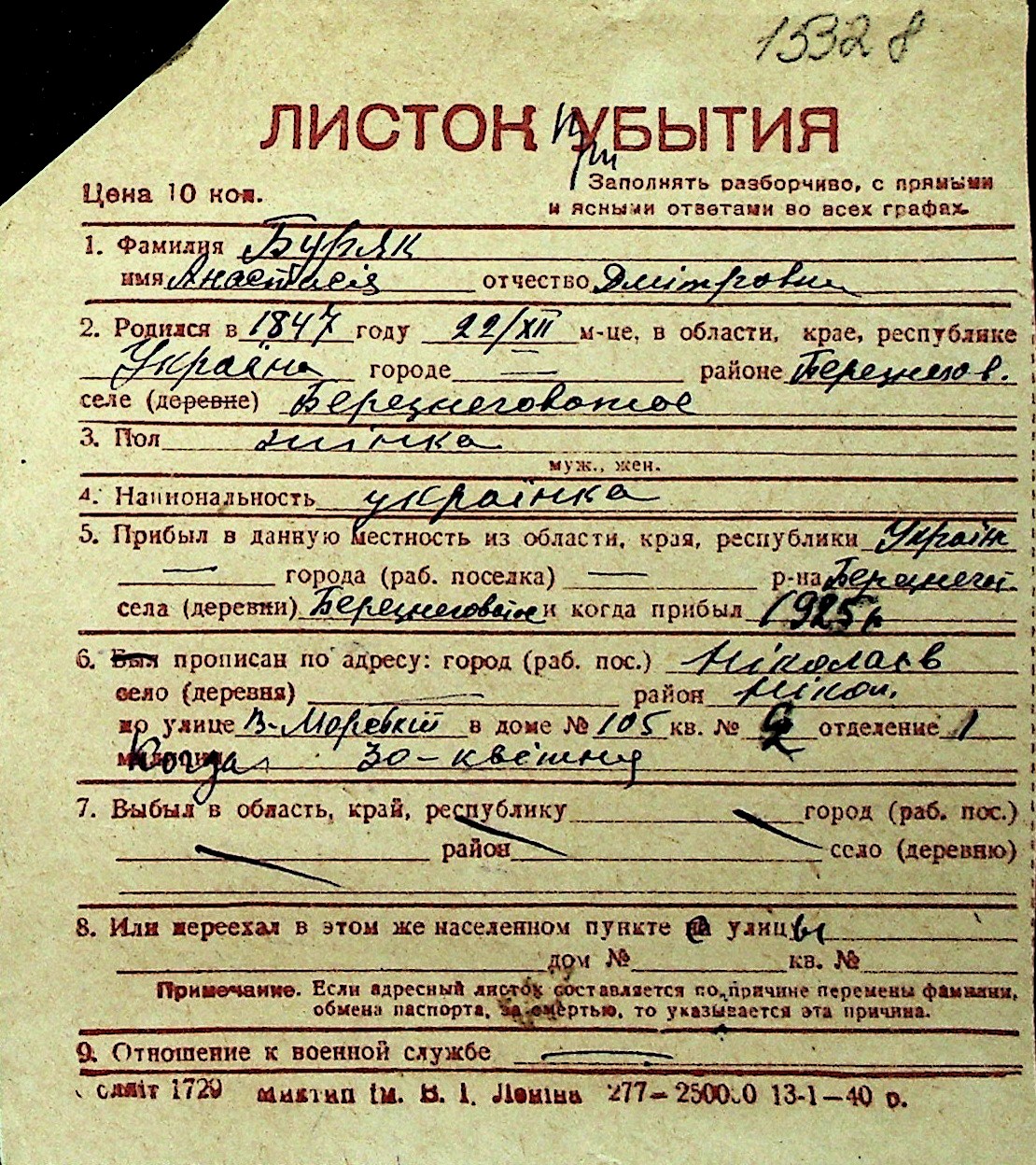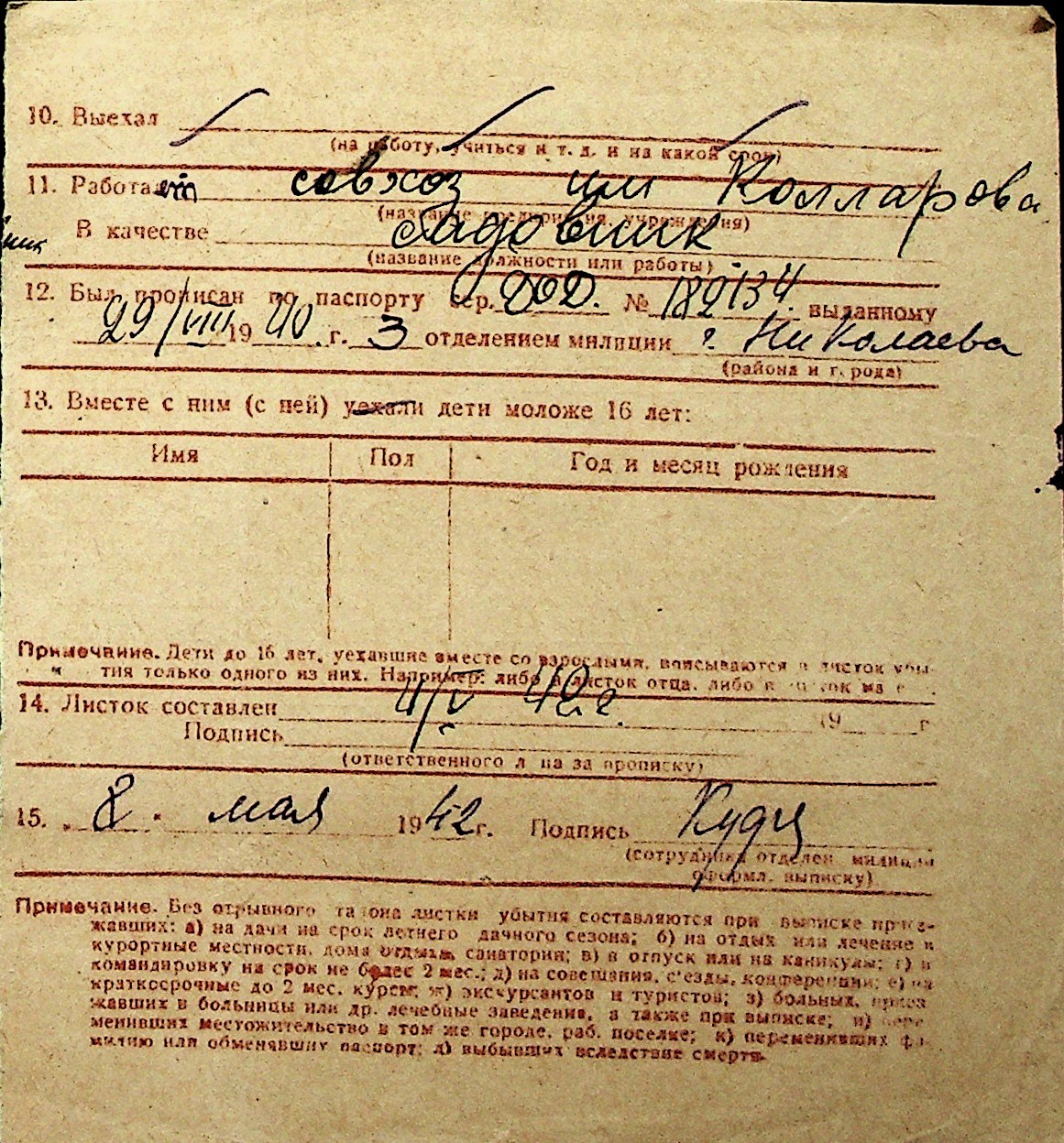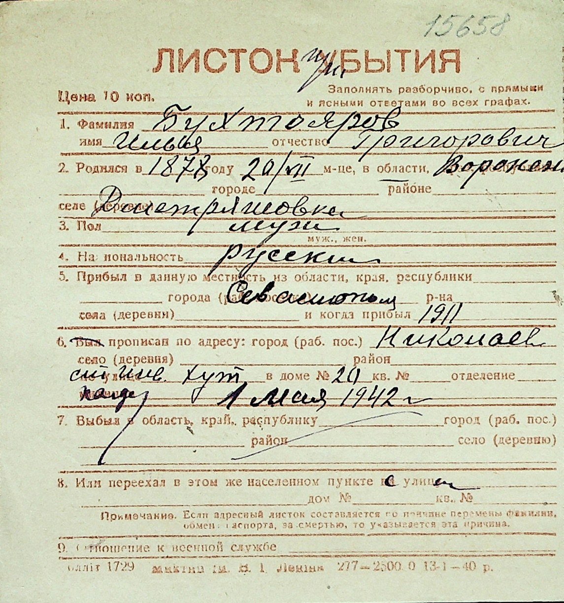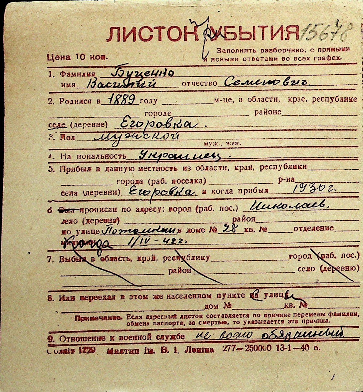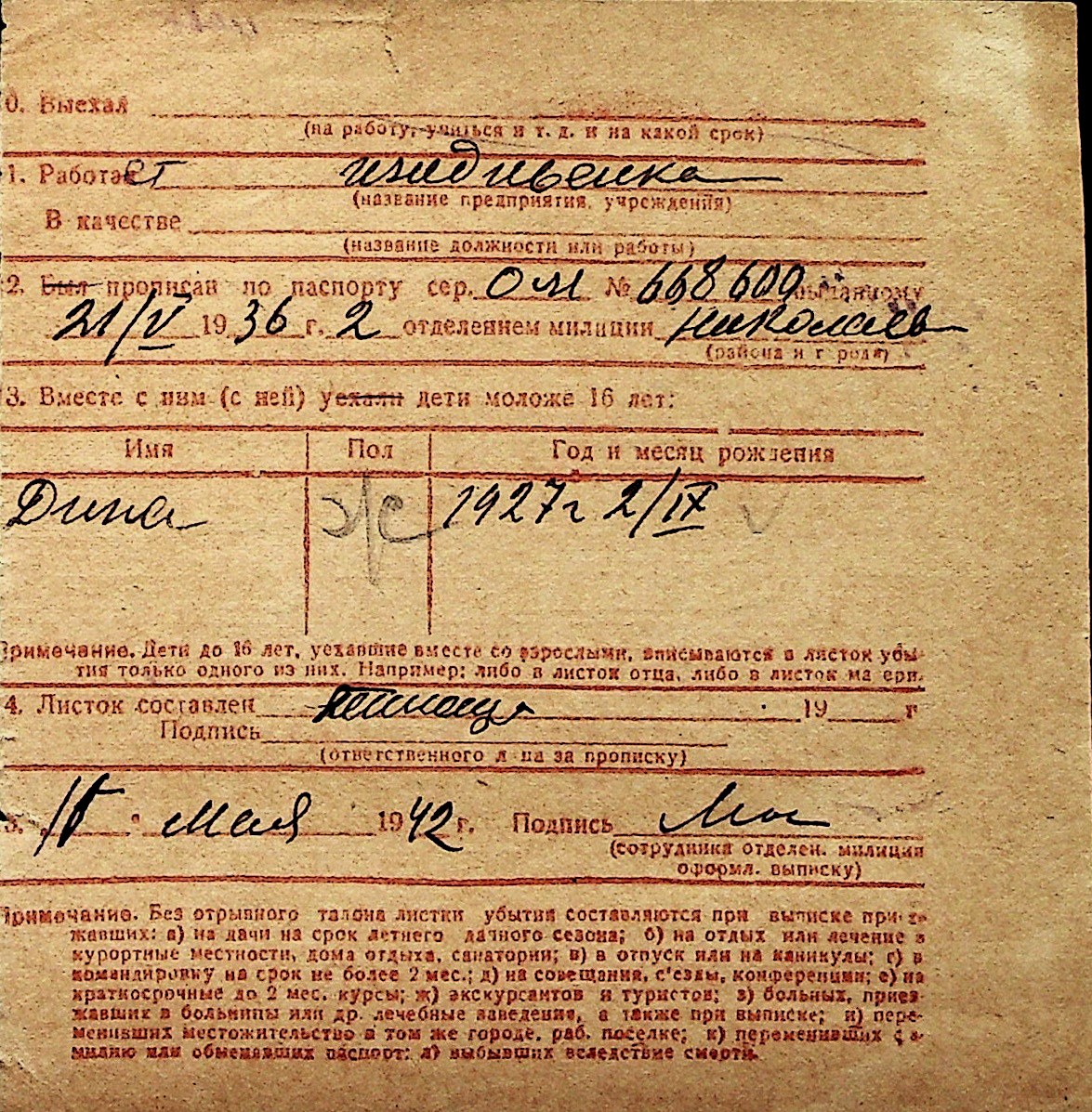 ◦ ◦ Перелік карток на осіб, які мешкали у м. Миколаїв у період окупації 1941–1944 років