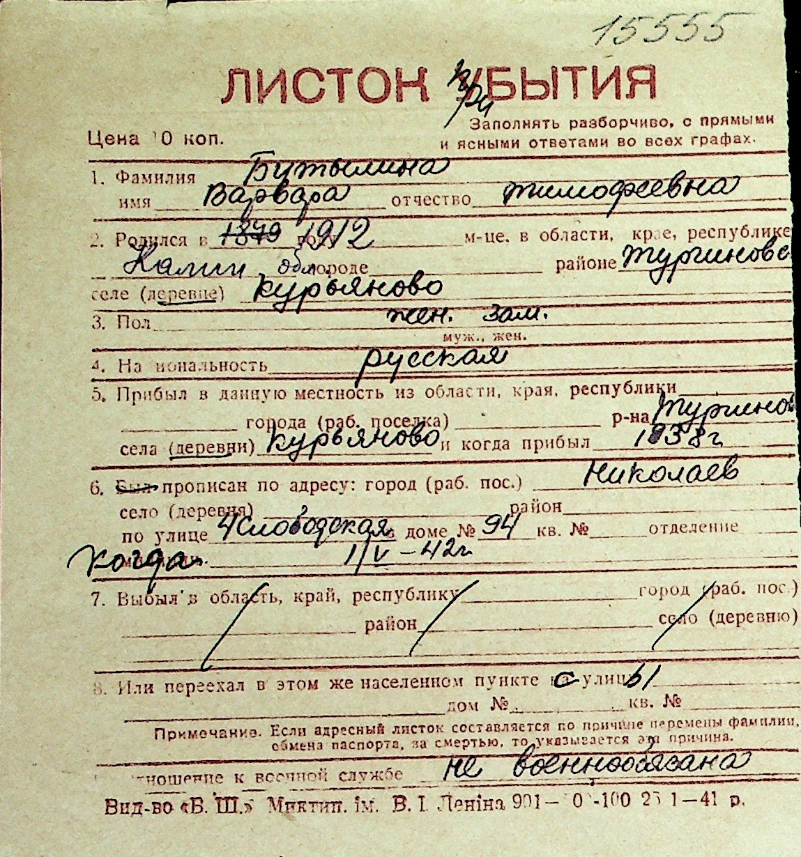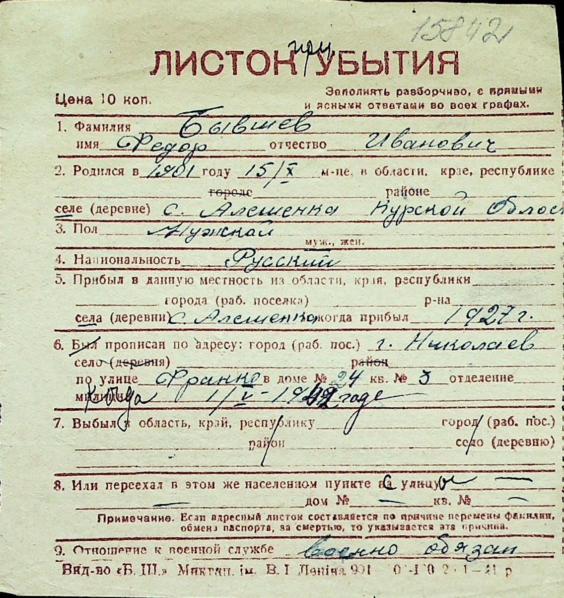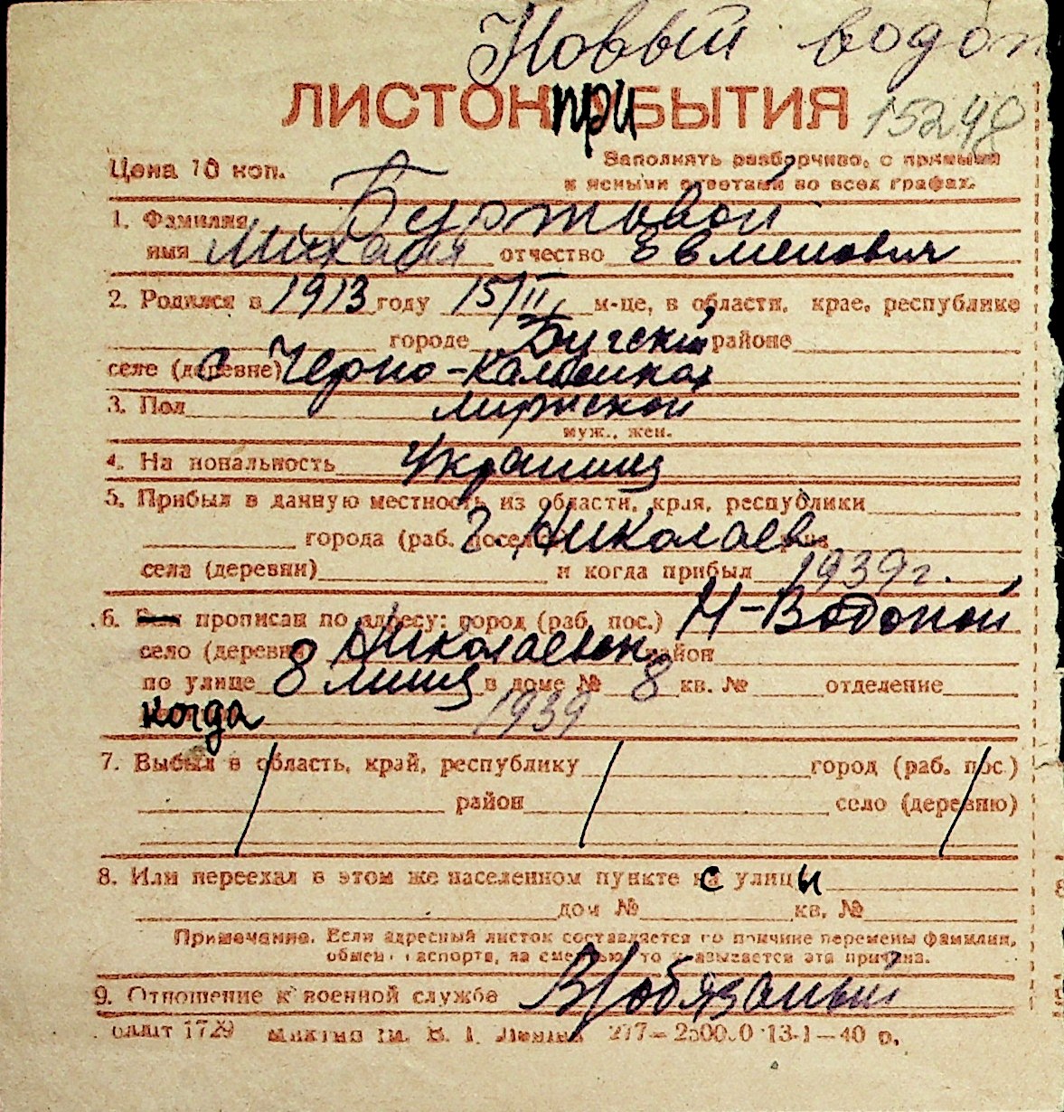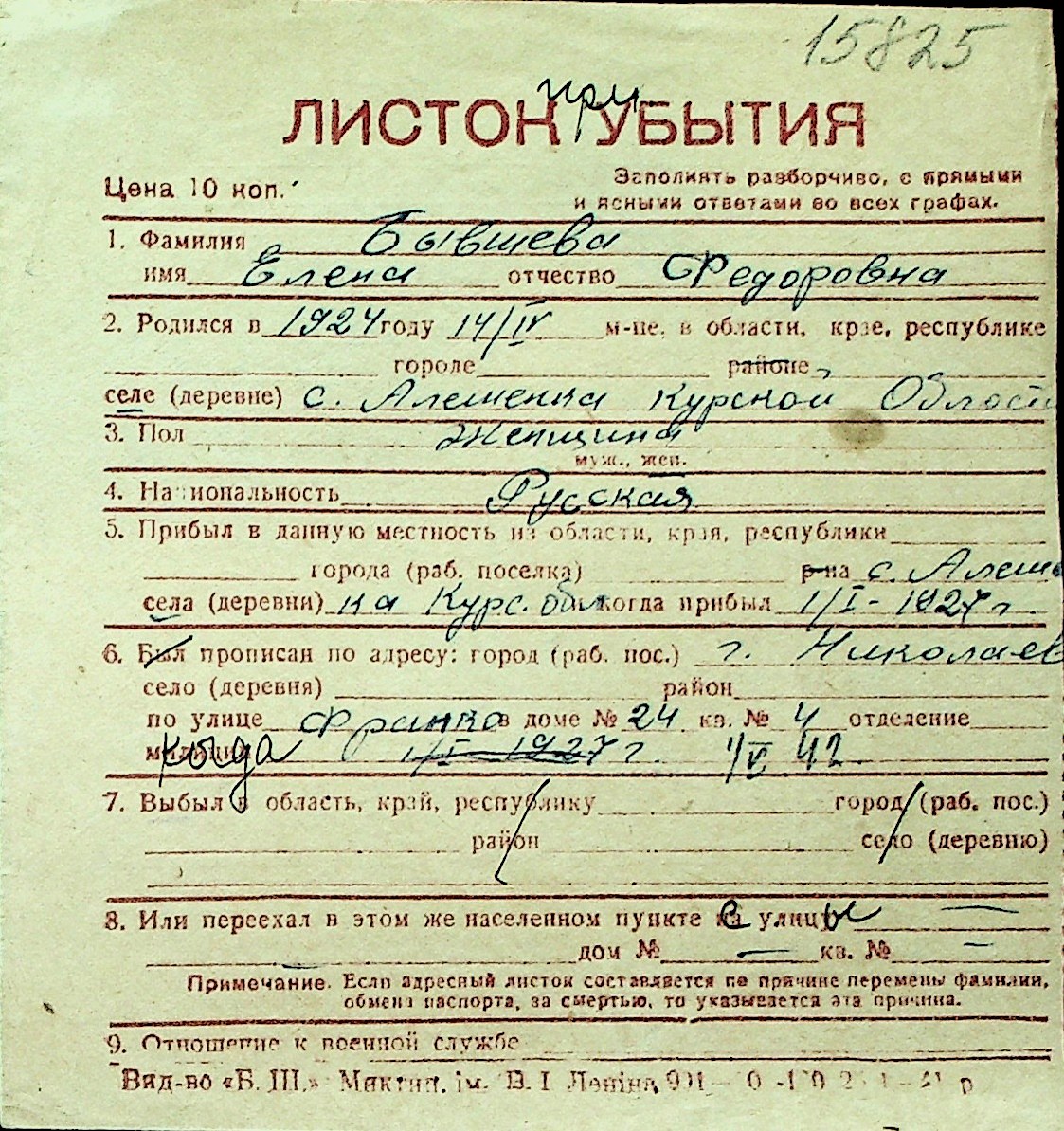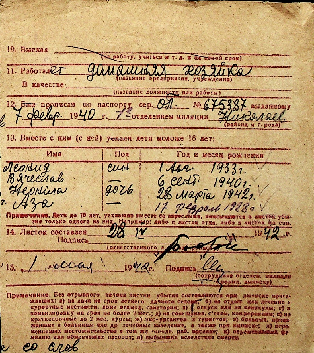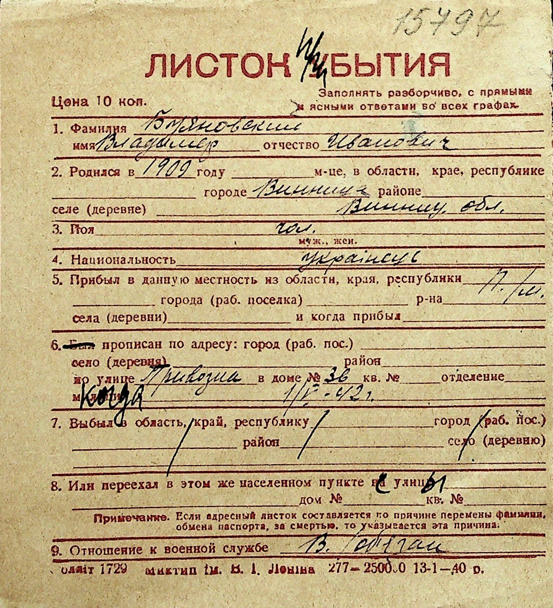 ◦ ◦ Перелік карток на осіб, які мешкали у м. Миколаїв у період окупації 1941–1944 років