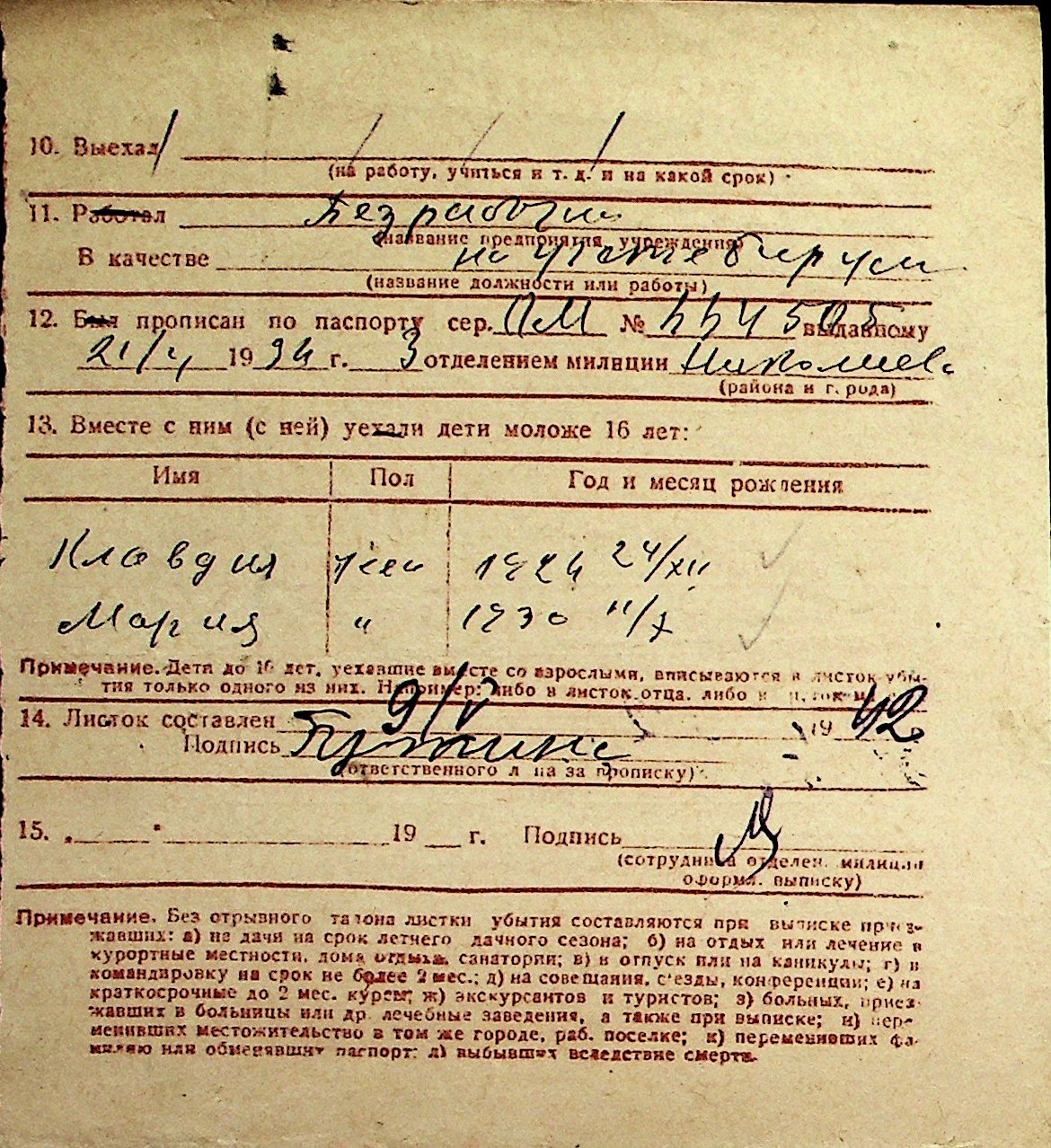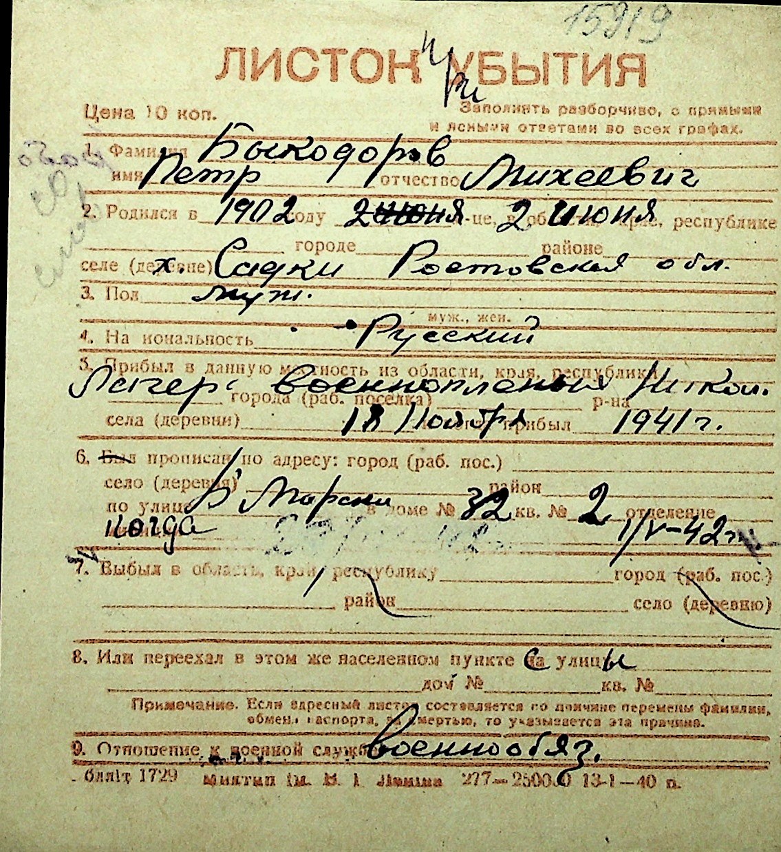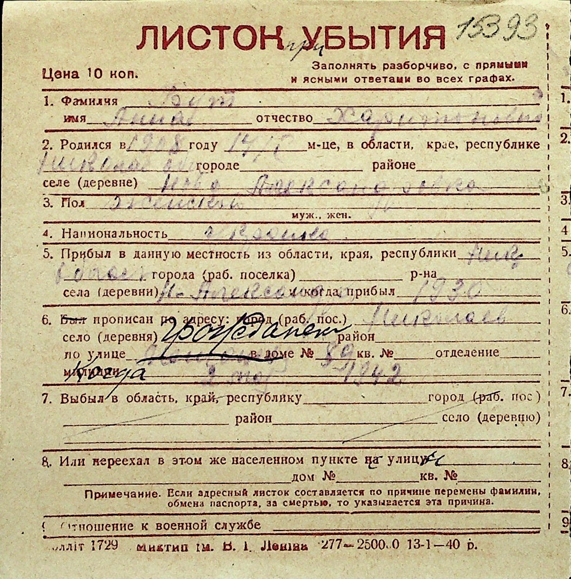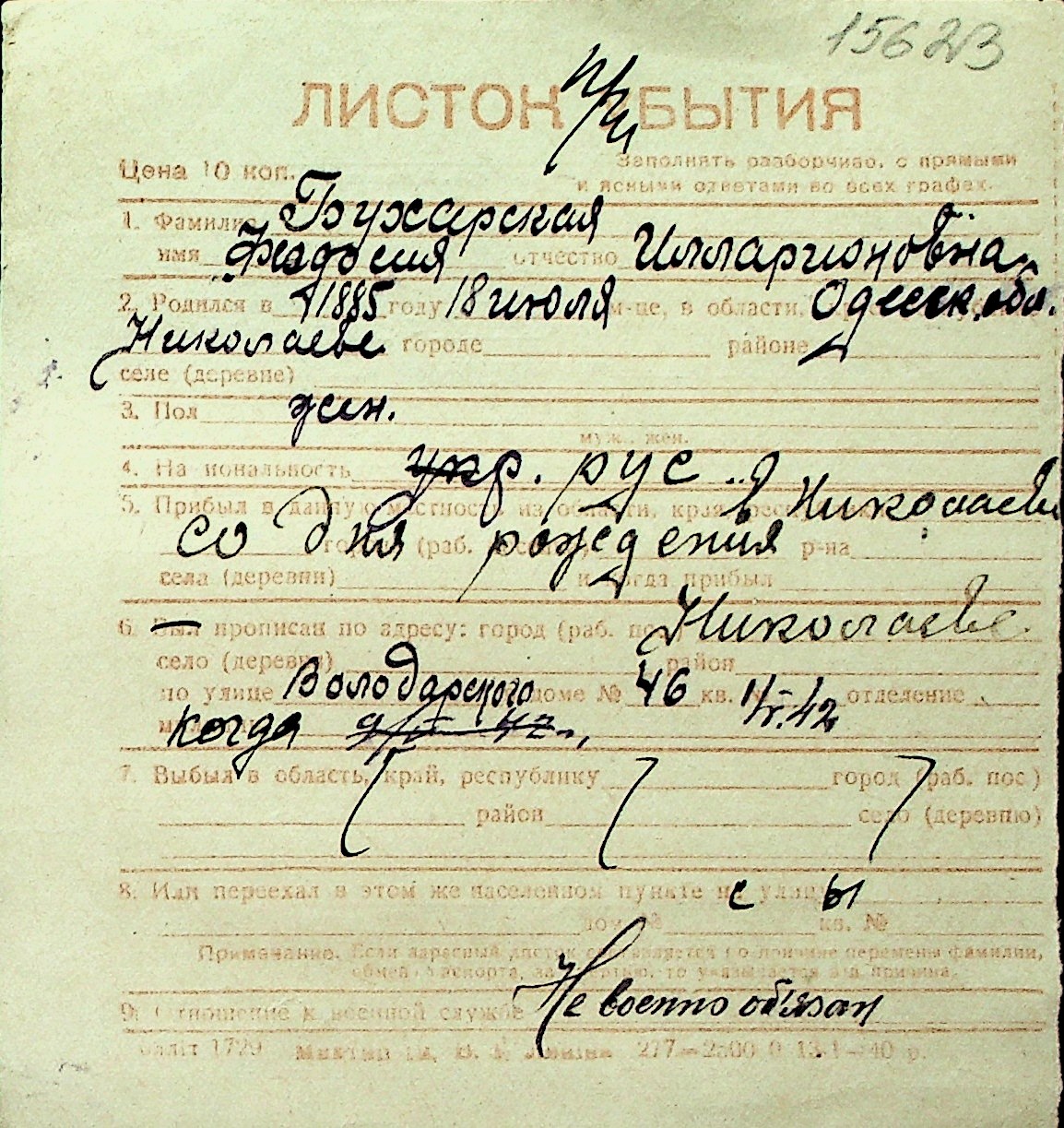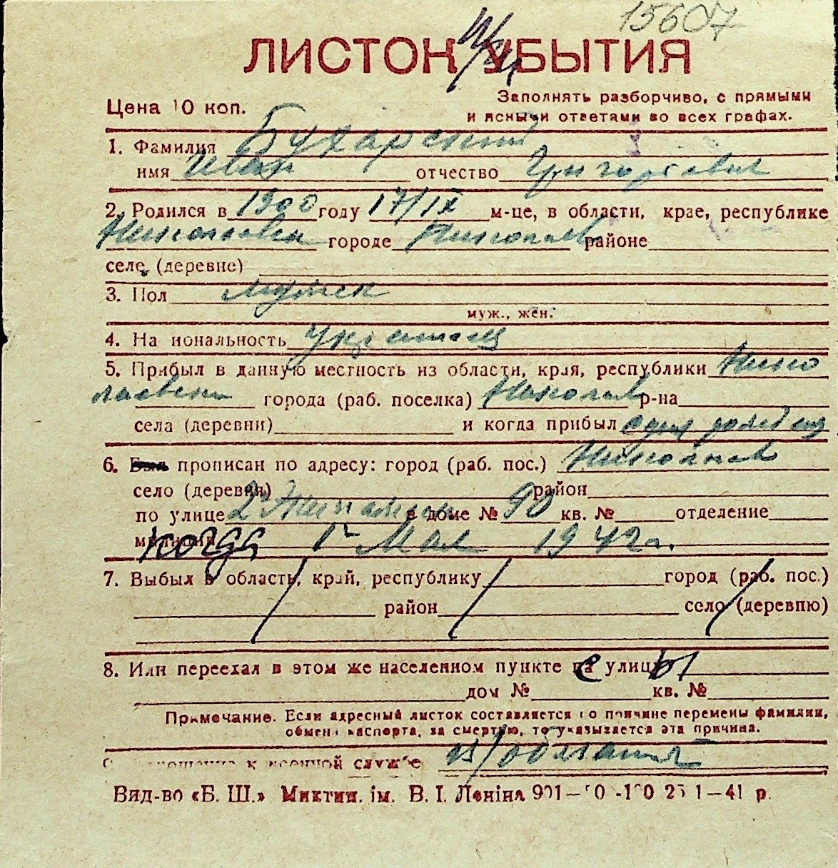 ◦ ◦ Перелік карток на осіб, які мешкали у м. Миколаїв у період окупації 1941–1944 років