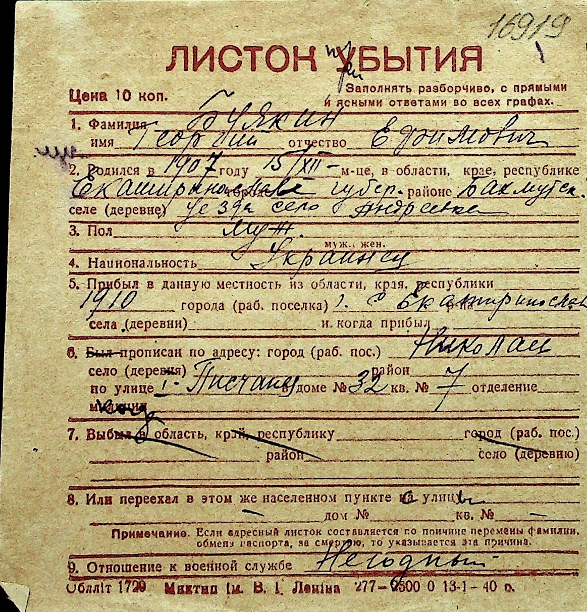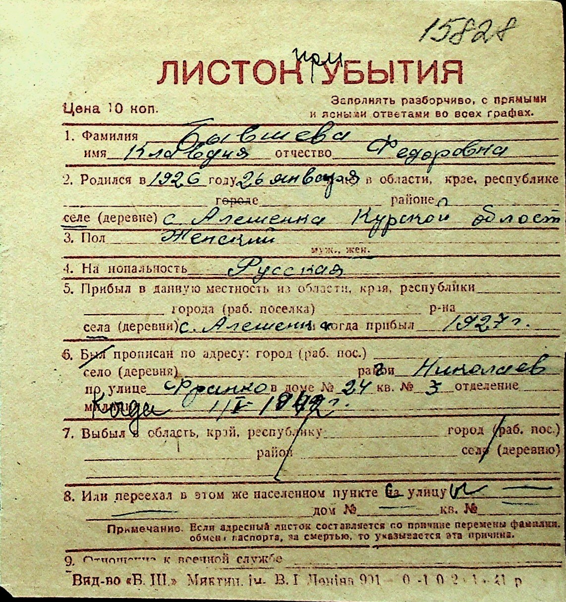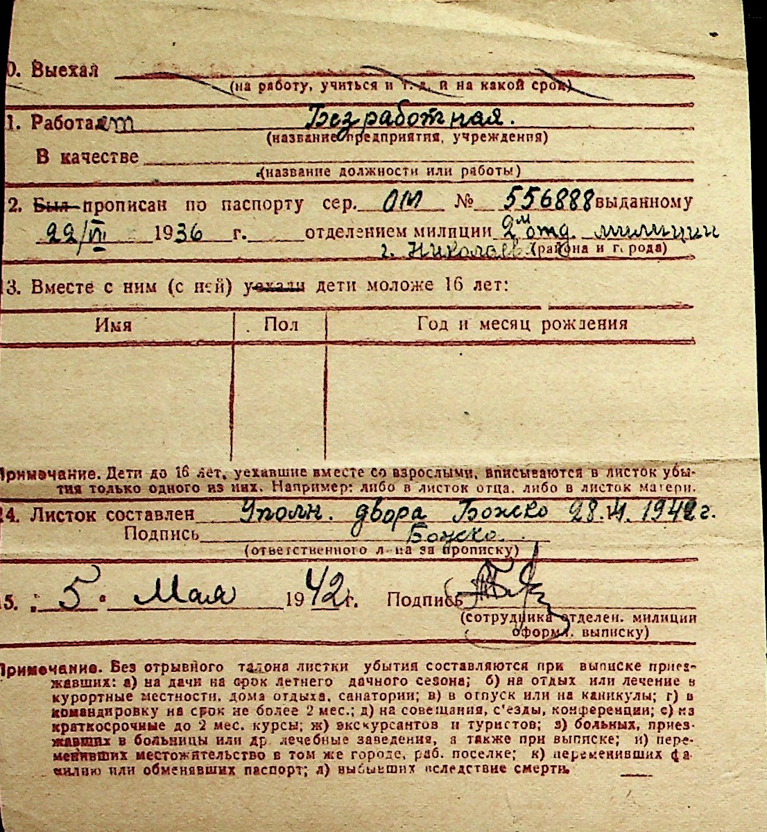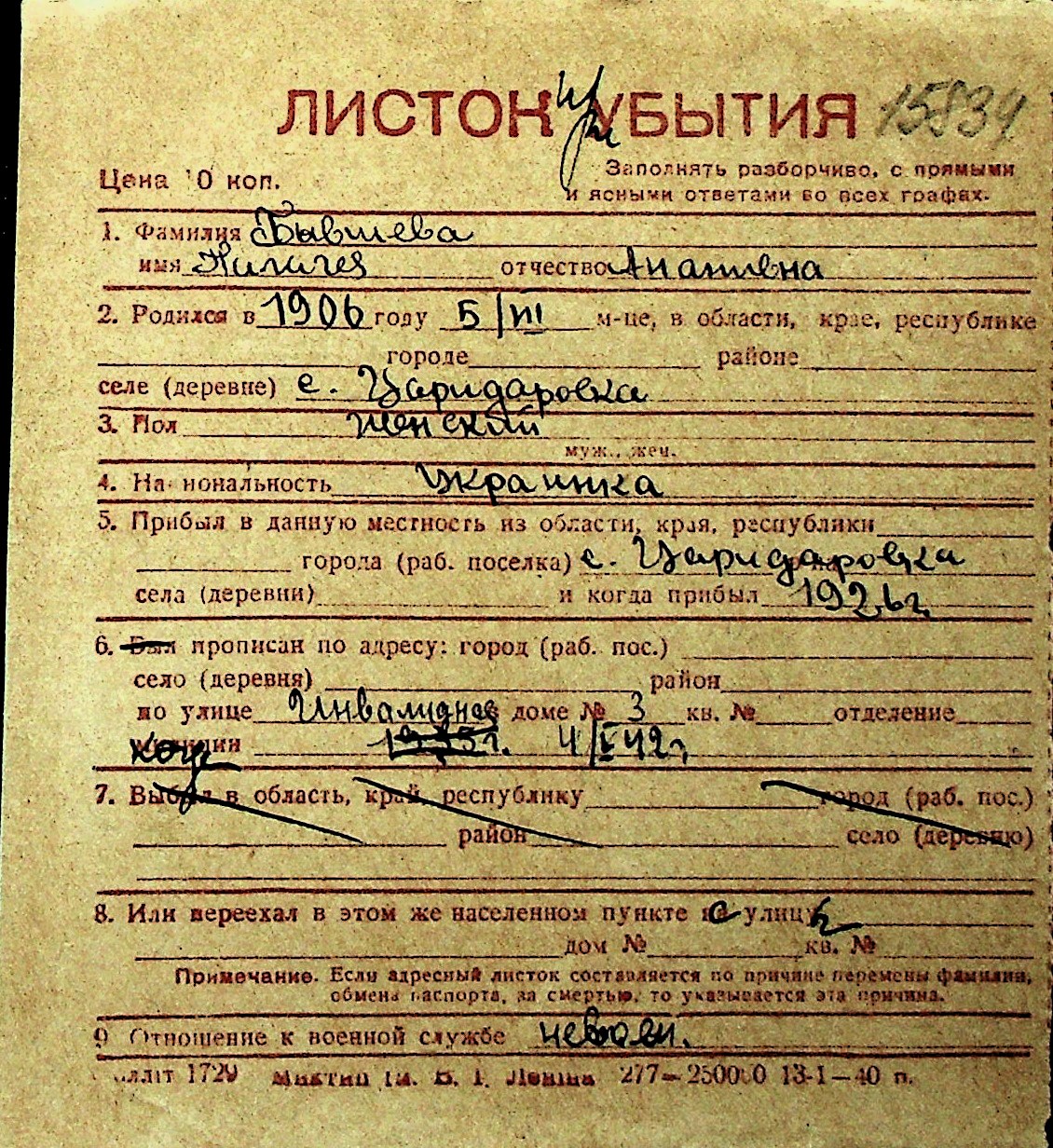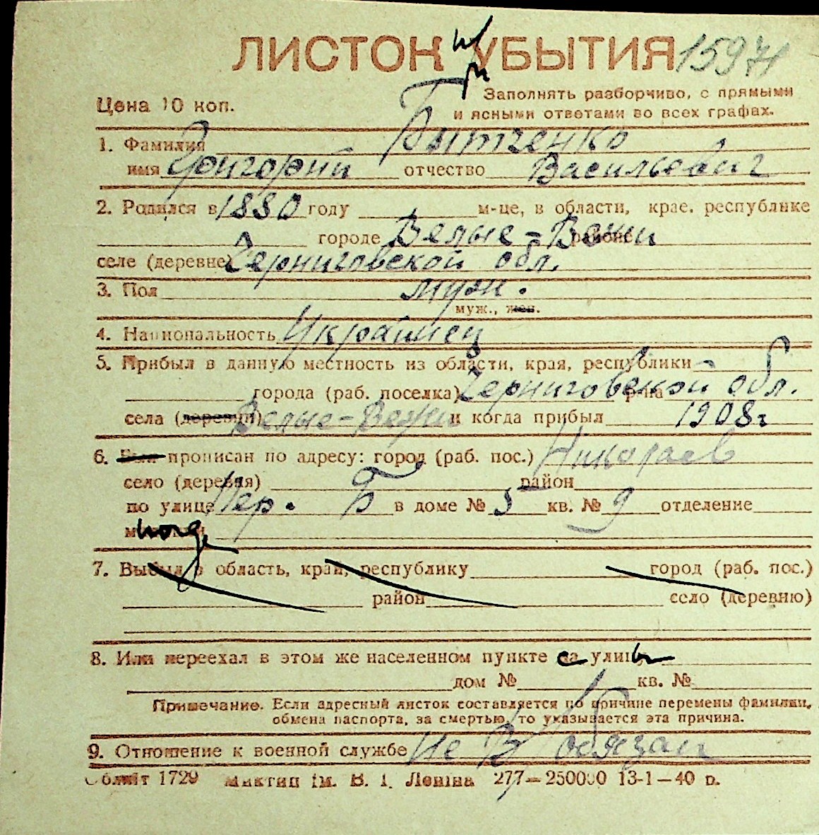 ◦ ◦ Перелік карток на осіб, які мешкали у м. Миколаїв у період окупації 1941–1944 років