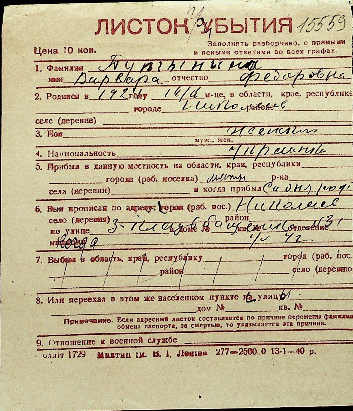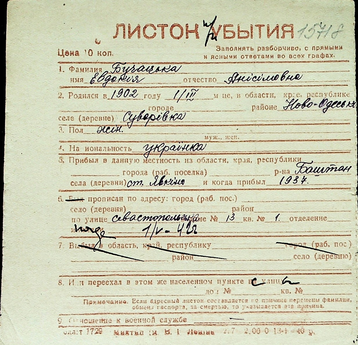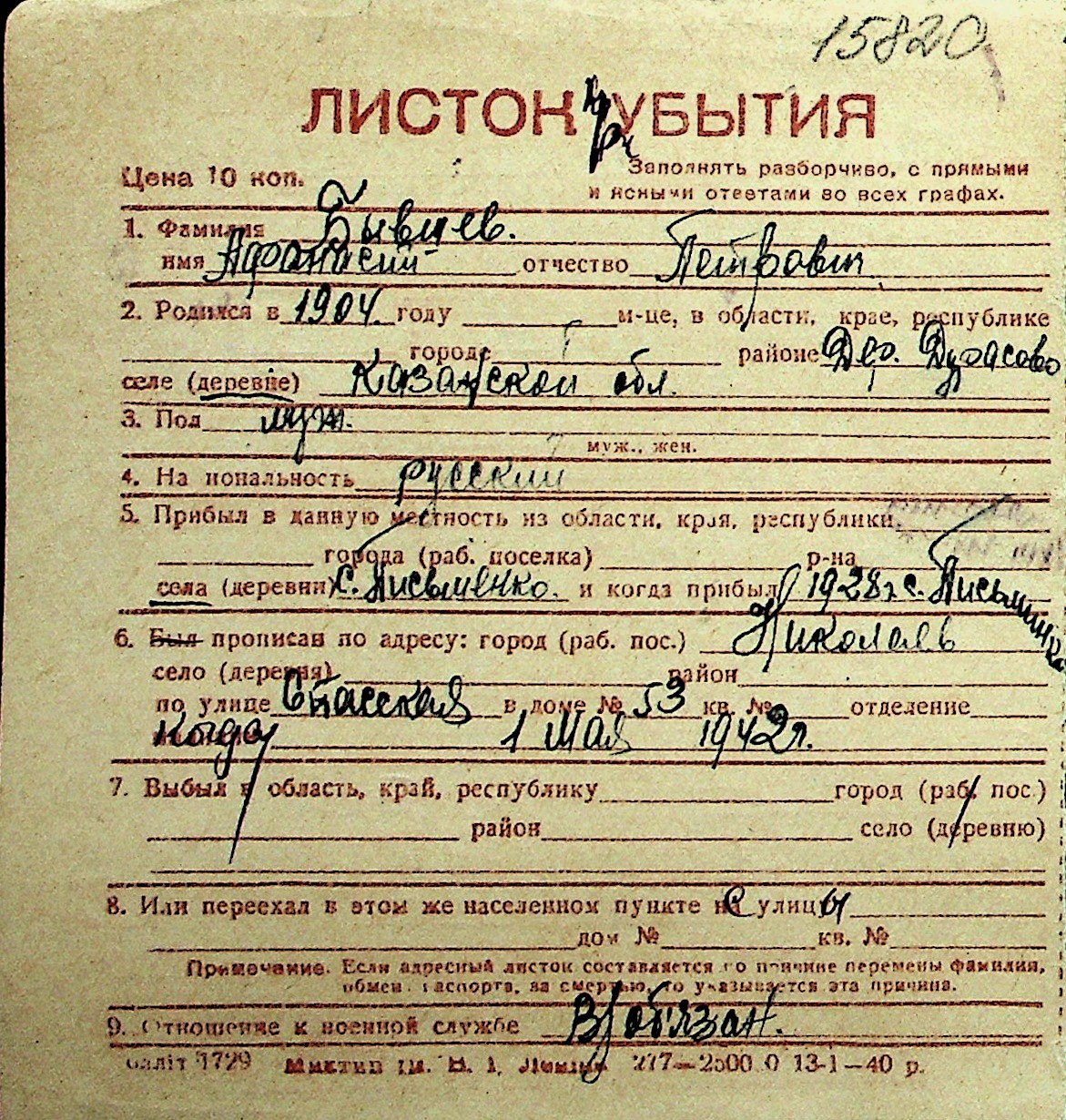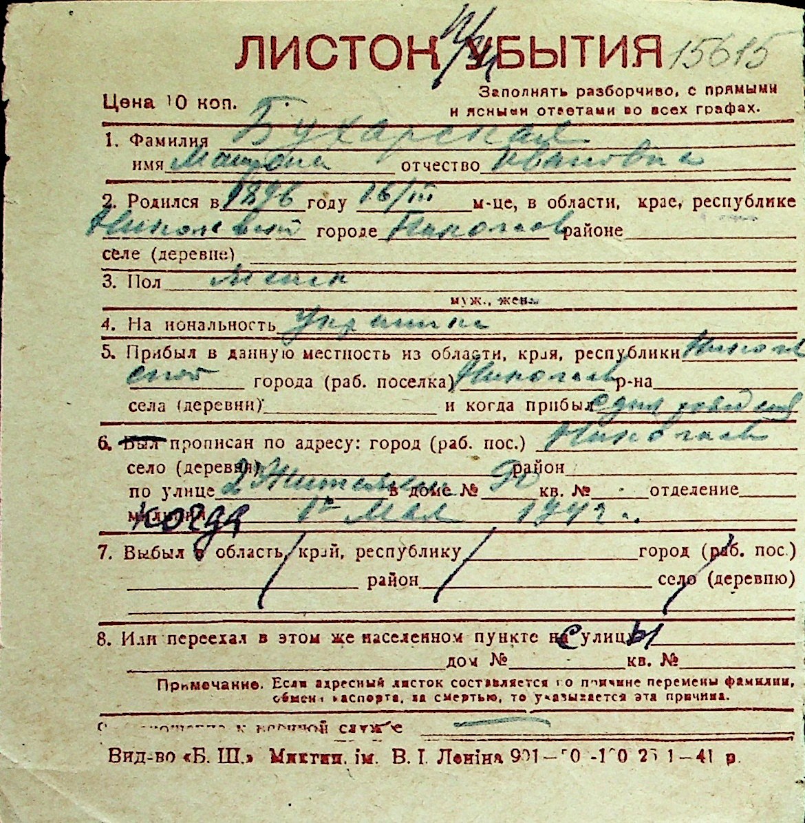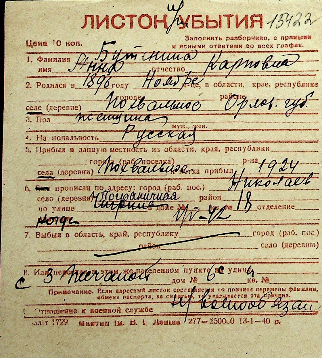 ◦ ◦ Перелік карток на осіб, які мешкали у м. Миколаїв у період окупації 1941–1944 років
