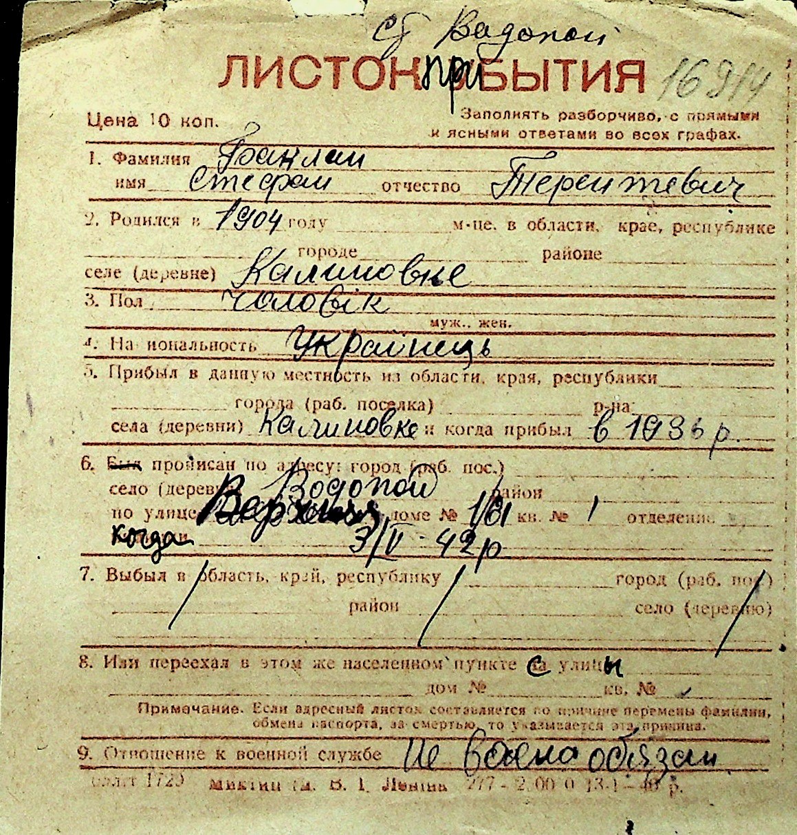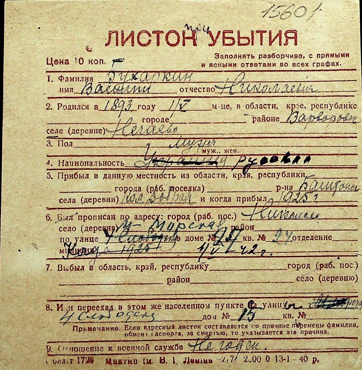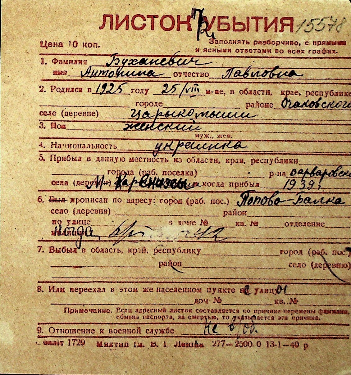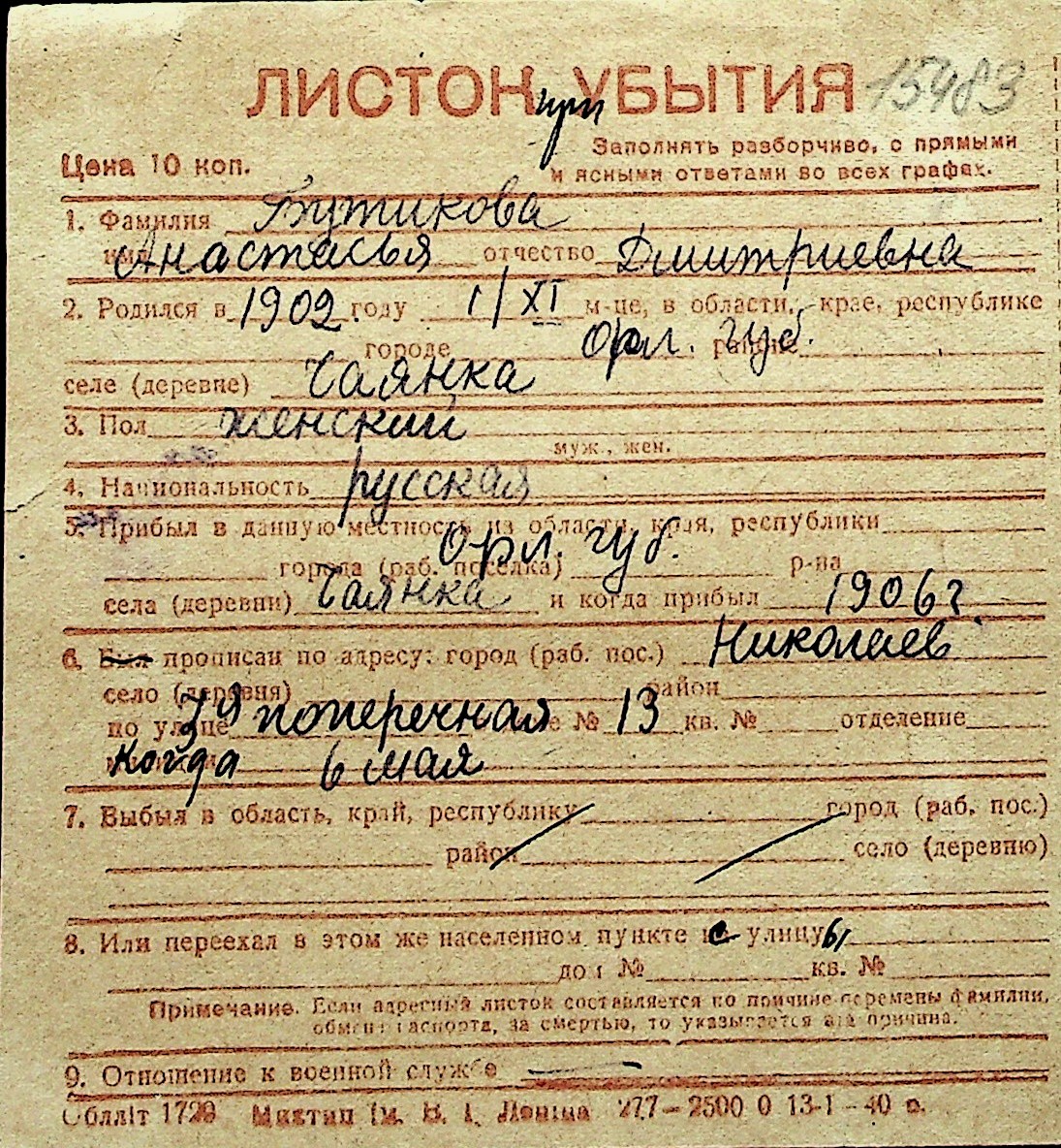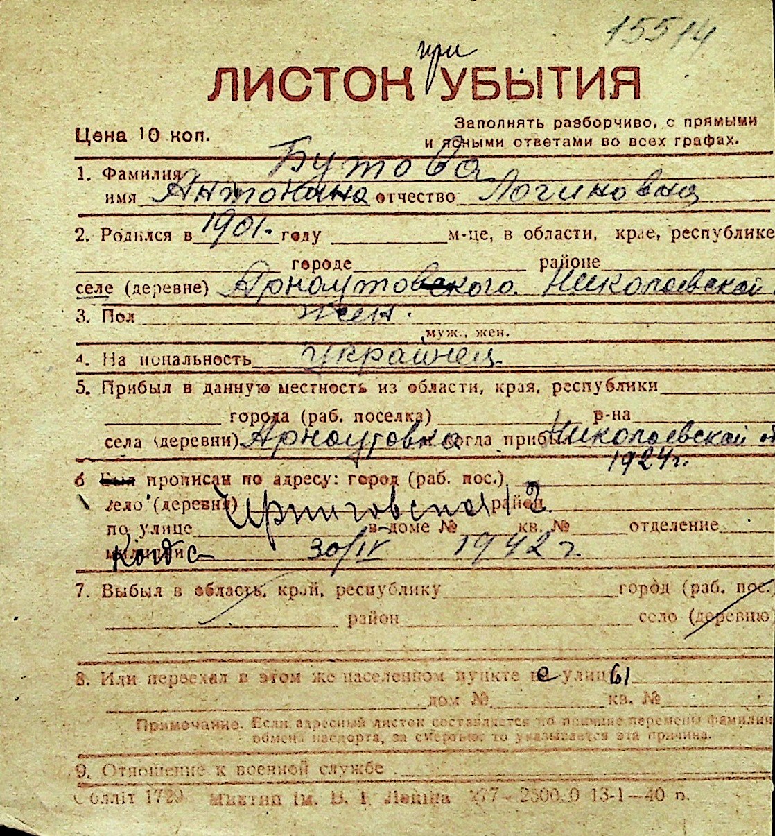 ◦ ◦ Перелік карток на осіб, які мешкали у м. Миколаїв у період окупації 1941–1944 років