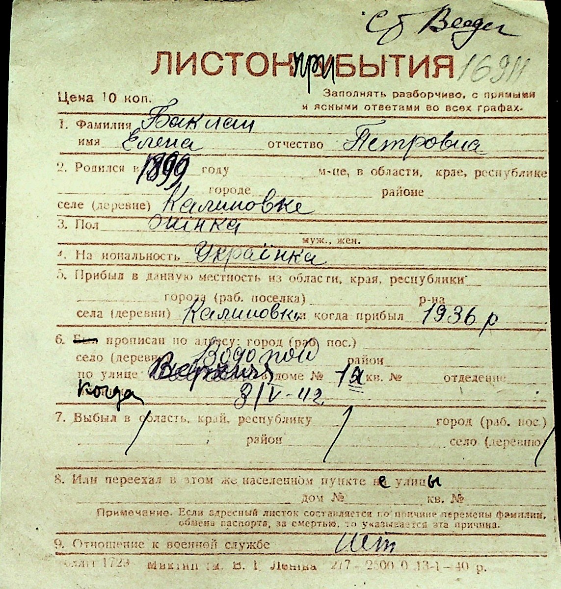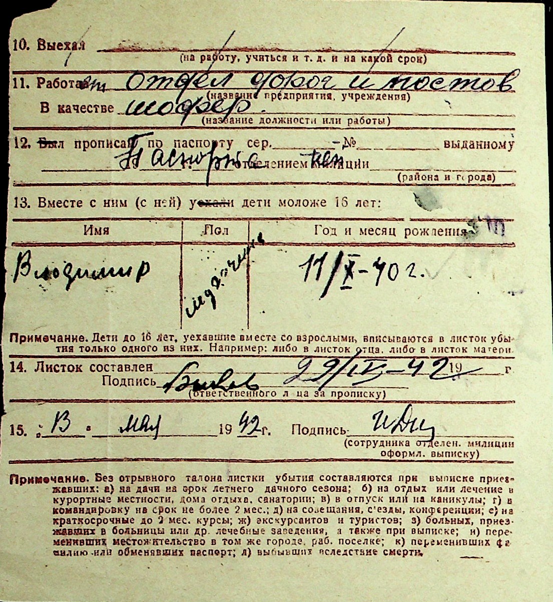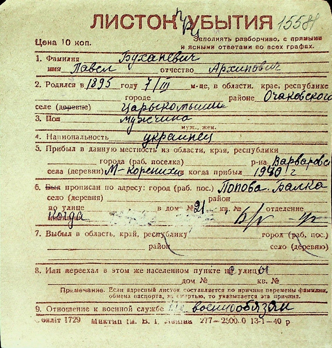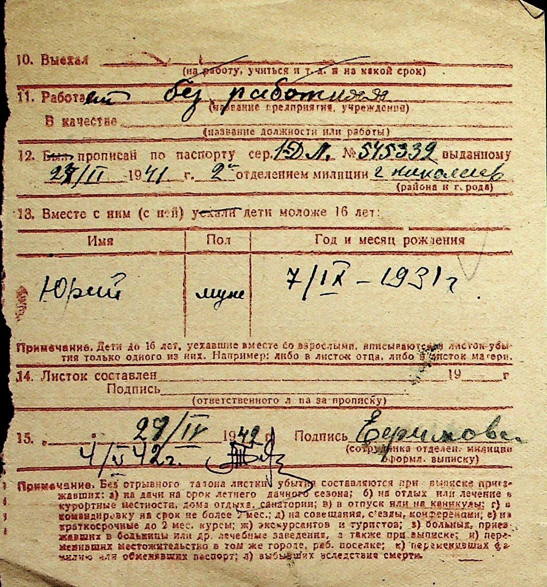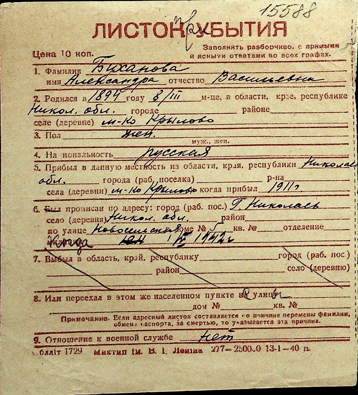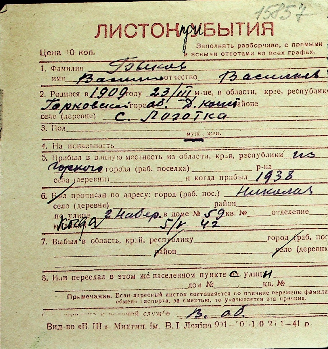 ◦ ◦ Перелік карток на осіб, які мешкали у м. Миколаїв у період окупації 1941–1944 років