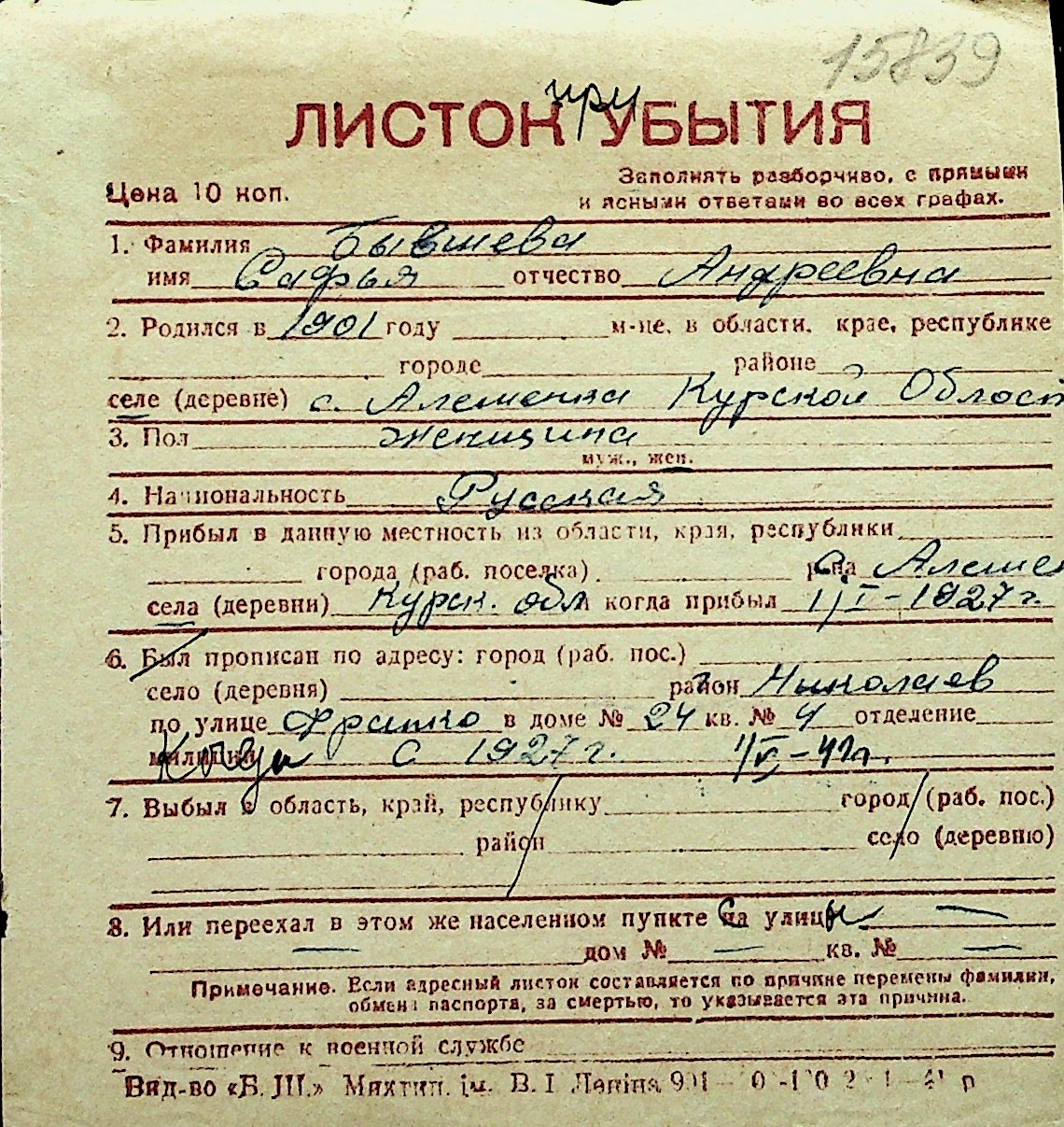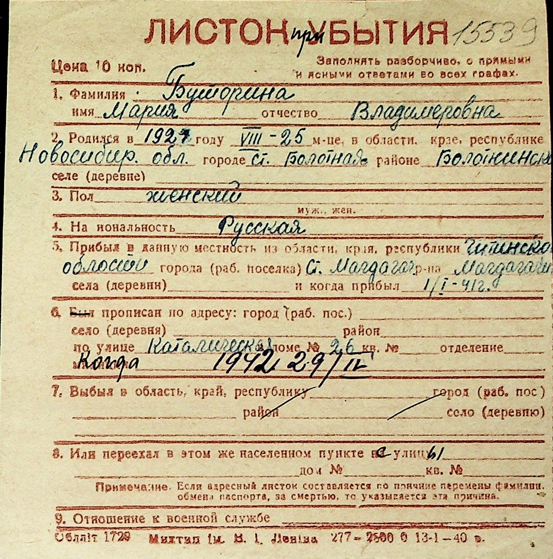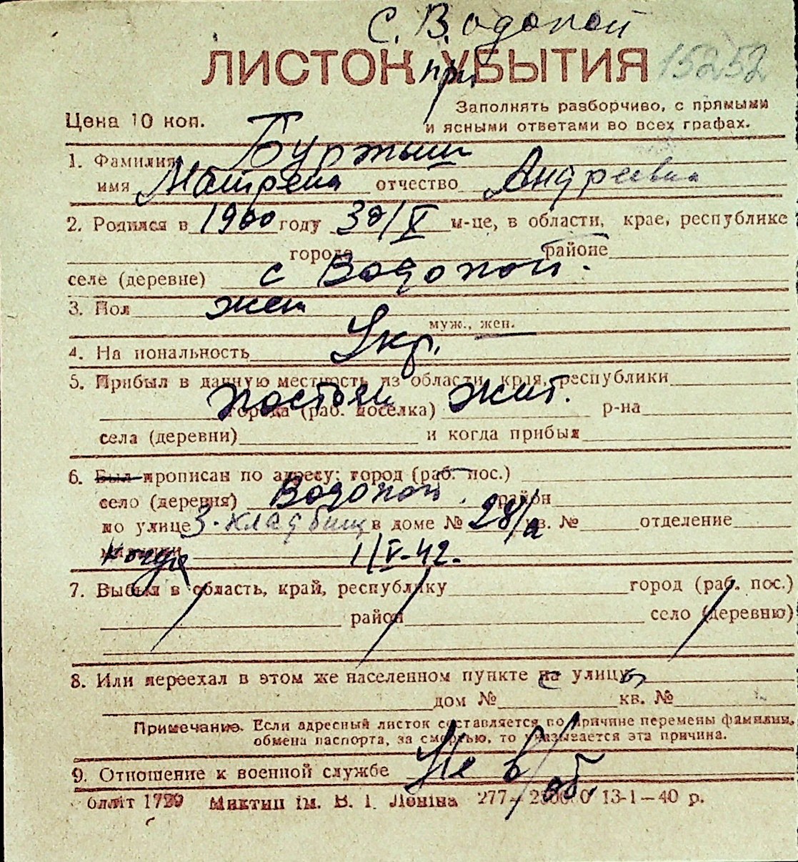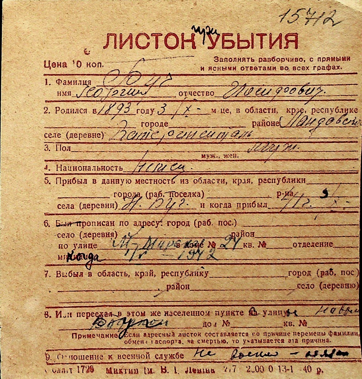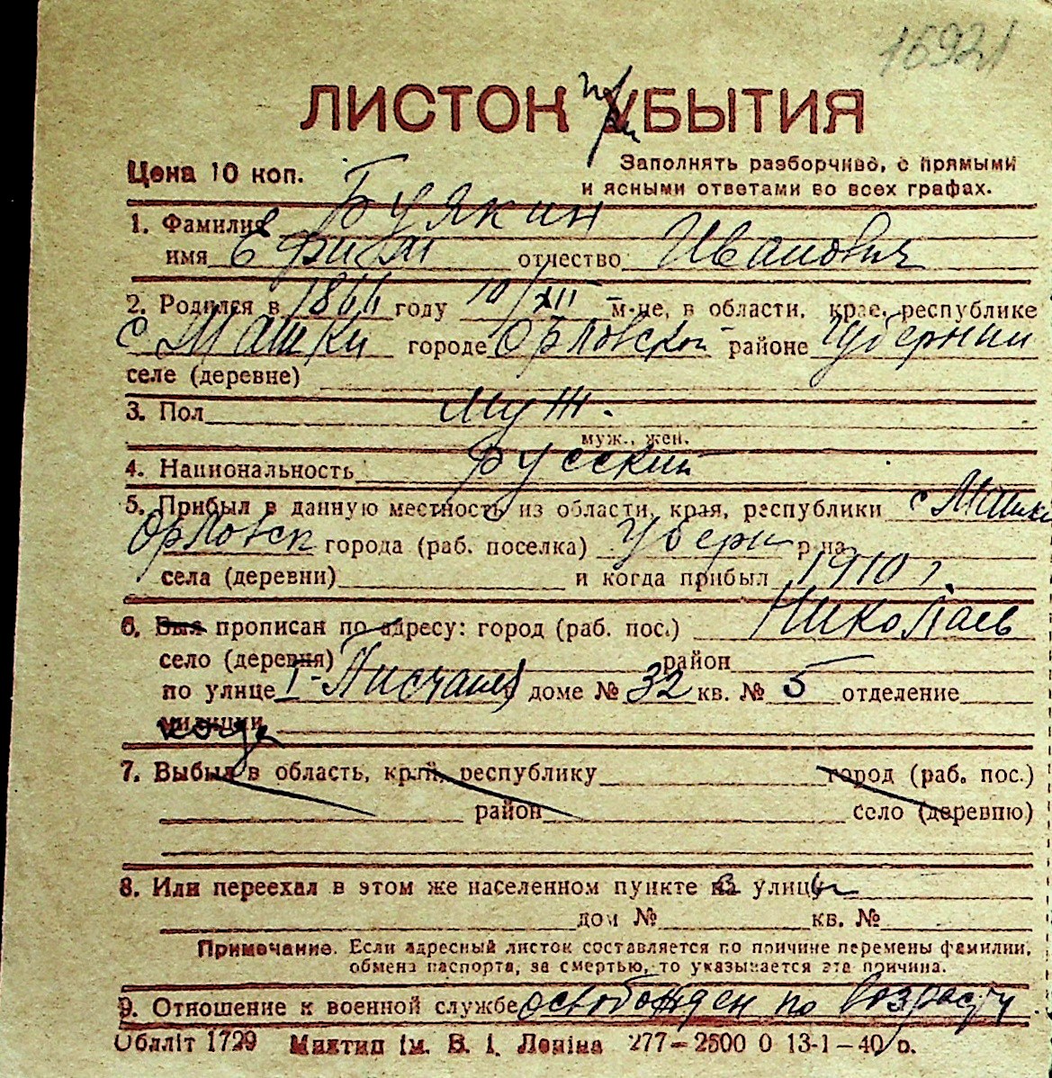 ◦ ◦ Перелік карток на осіб, які мешкали у м. Миколаїв у період окупації 1941–1944 років