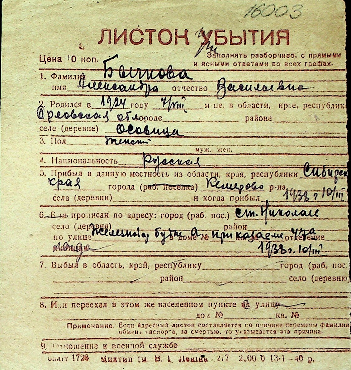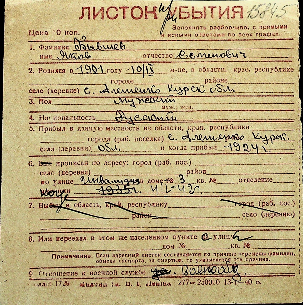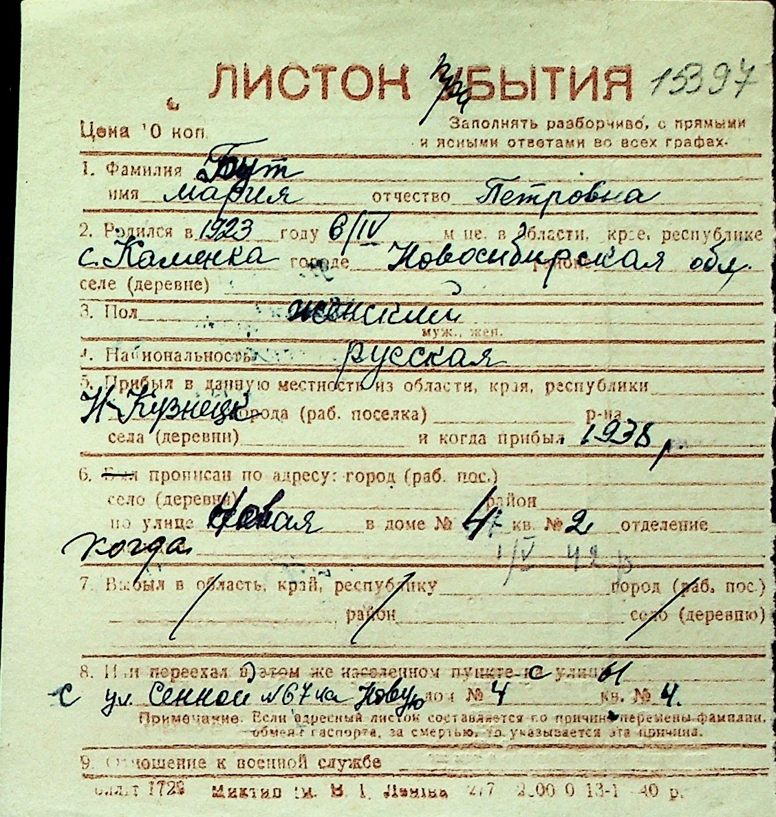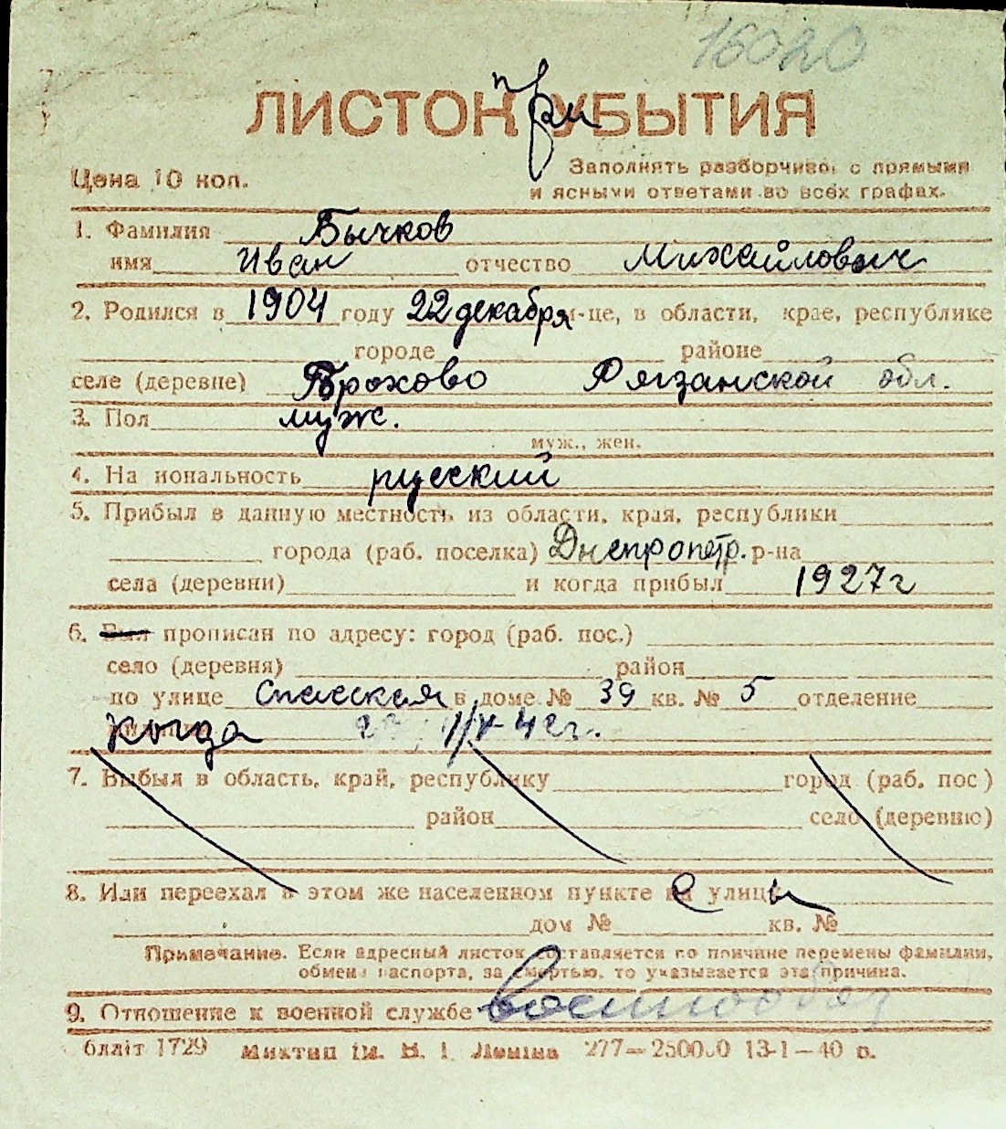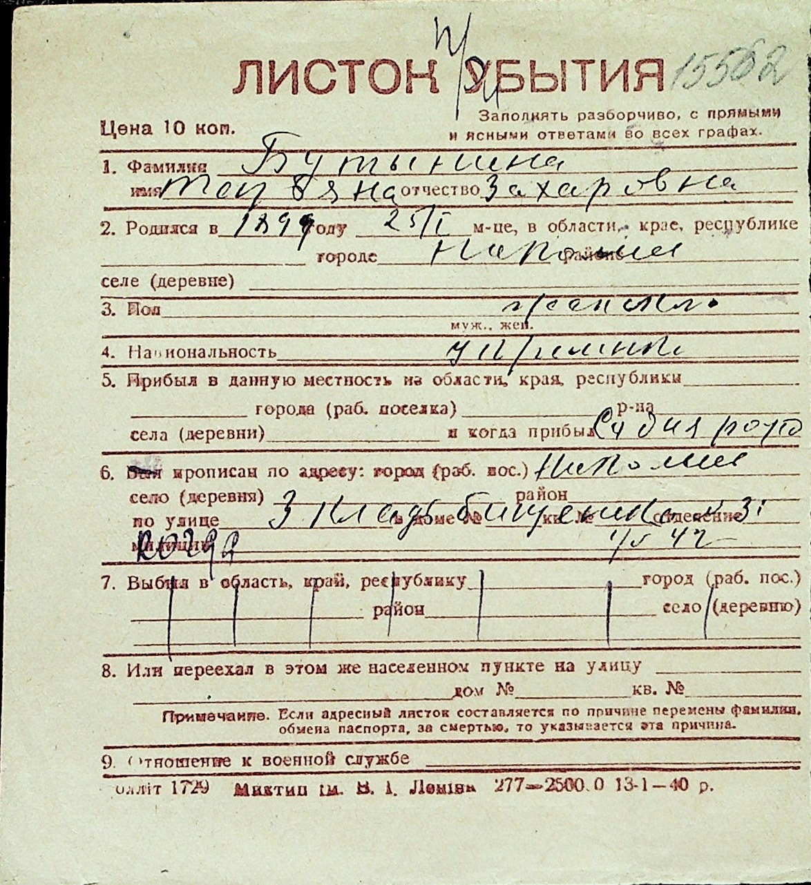 ◦ ◦ Перелік карток на осіб, які мешкали у м. Миколаїв у період окупації 1941–1944 років