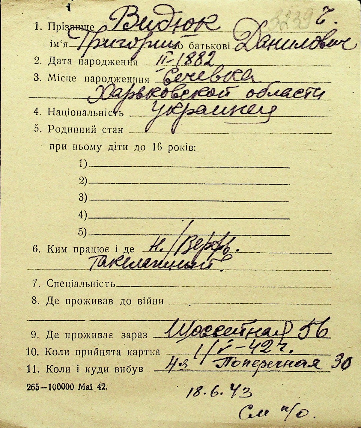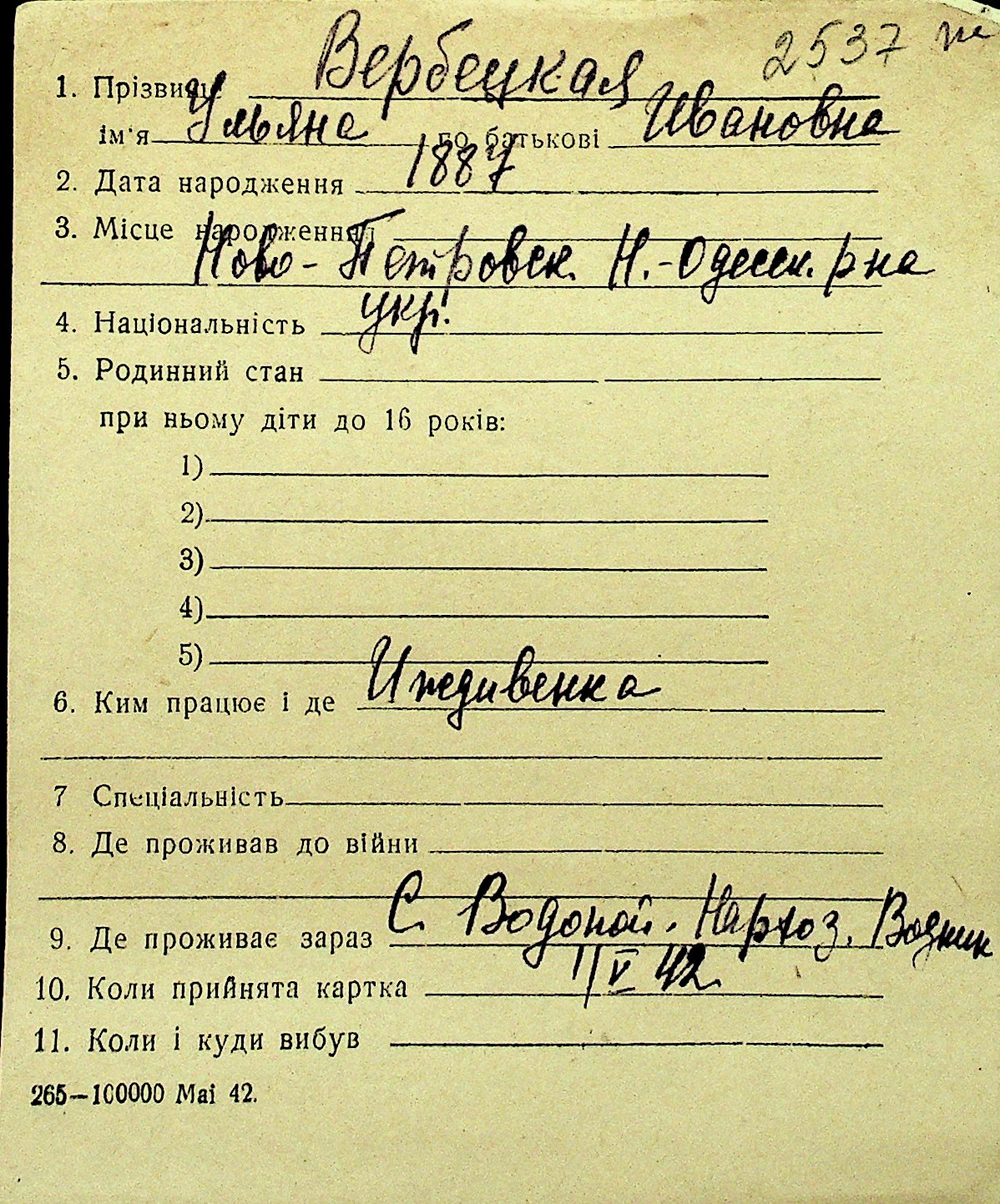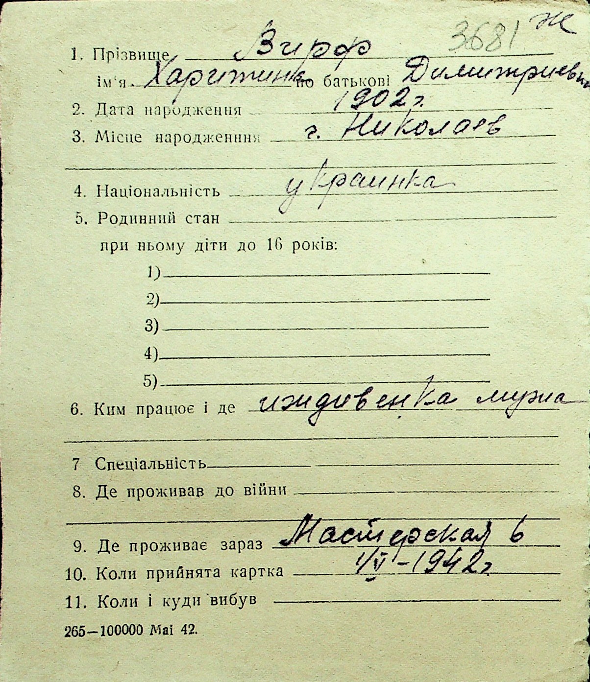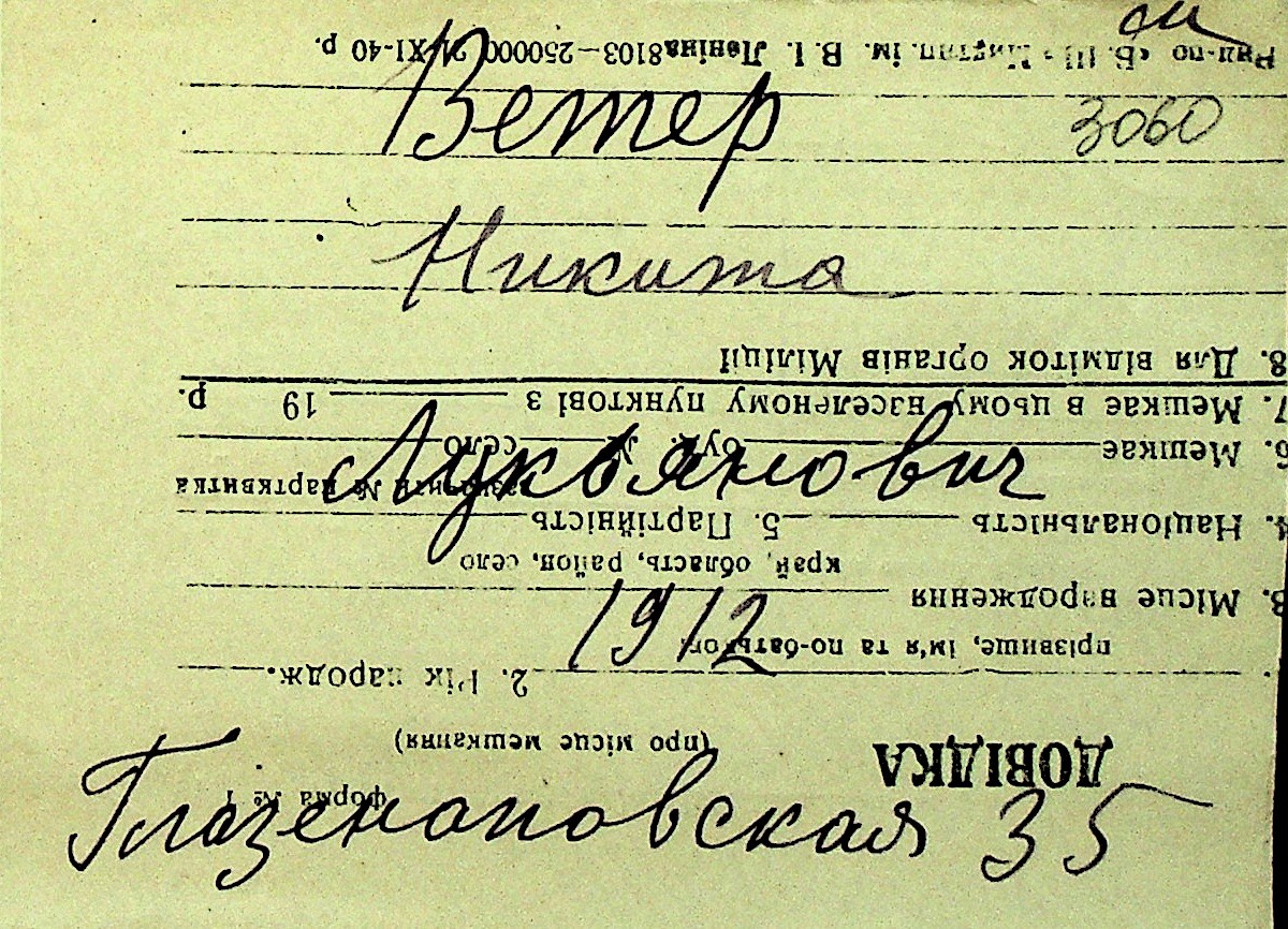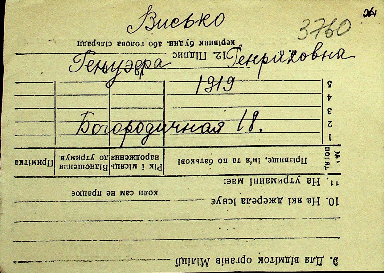 • • Перелік карток до фонду № Н-1016