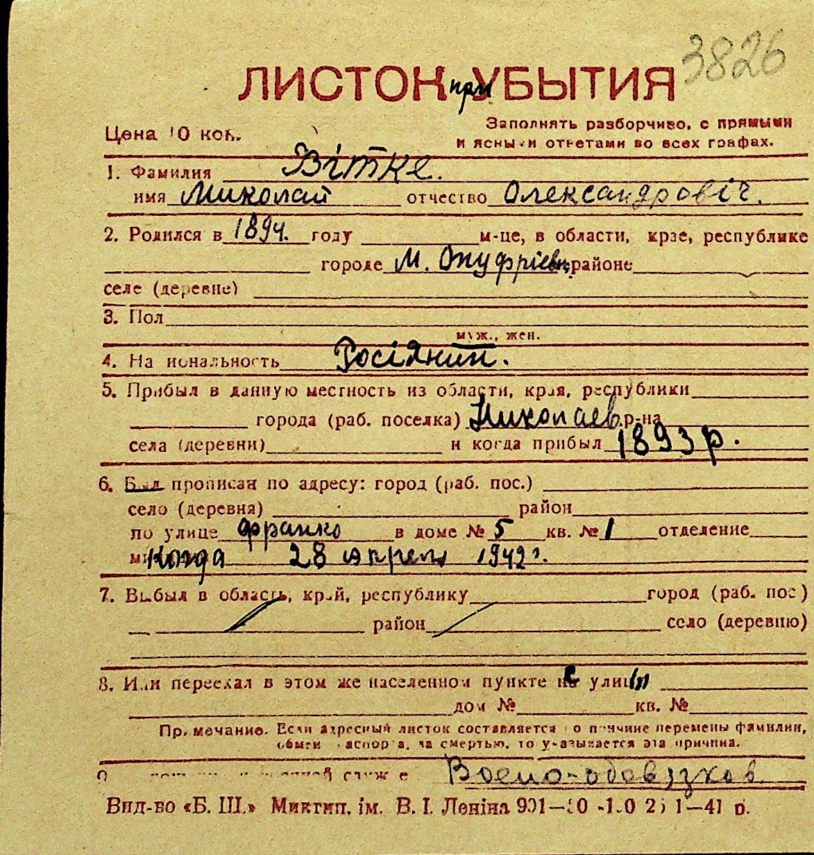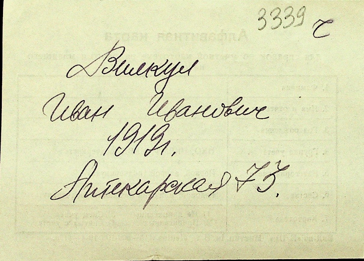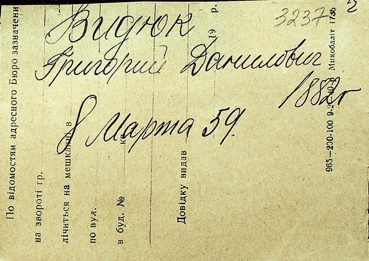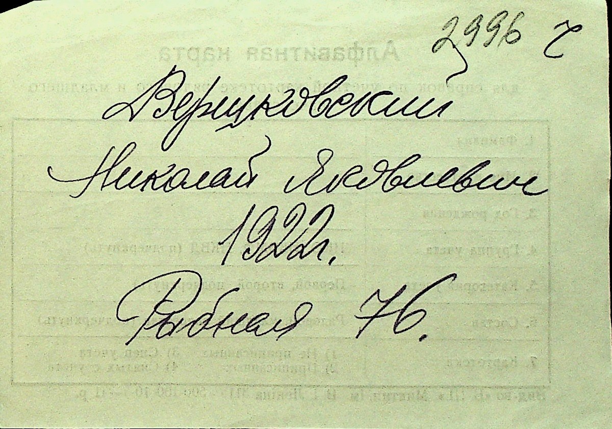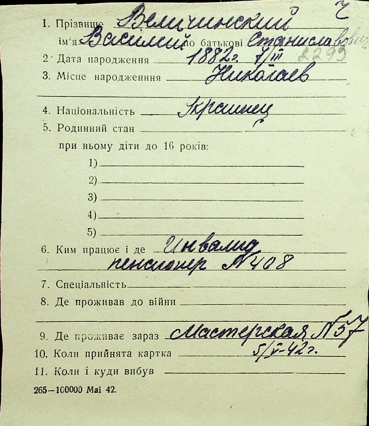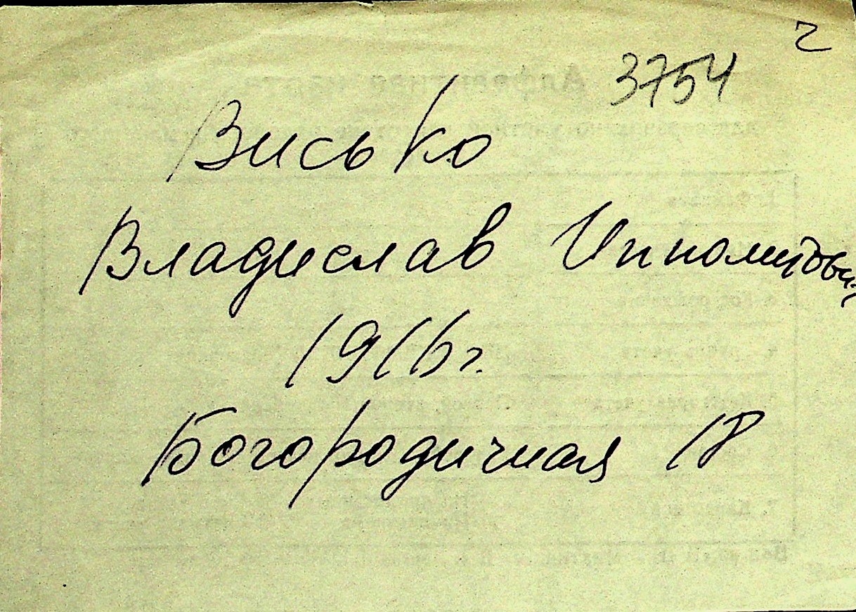 • • Перелік карток до фонду № Н-1016