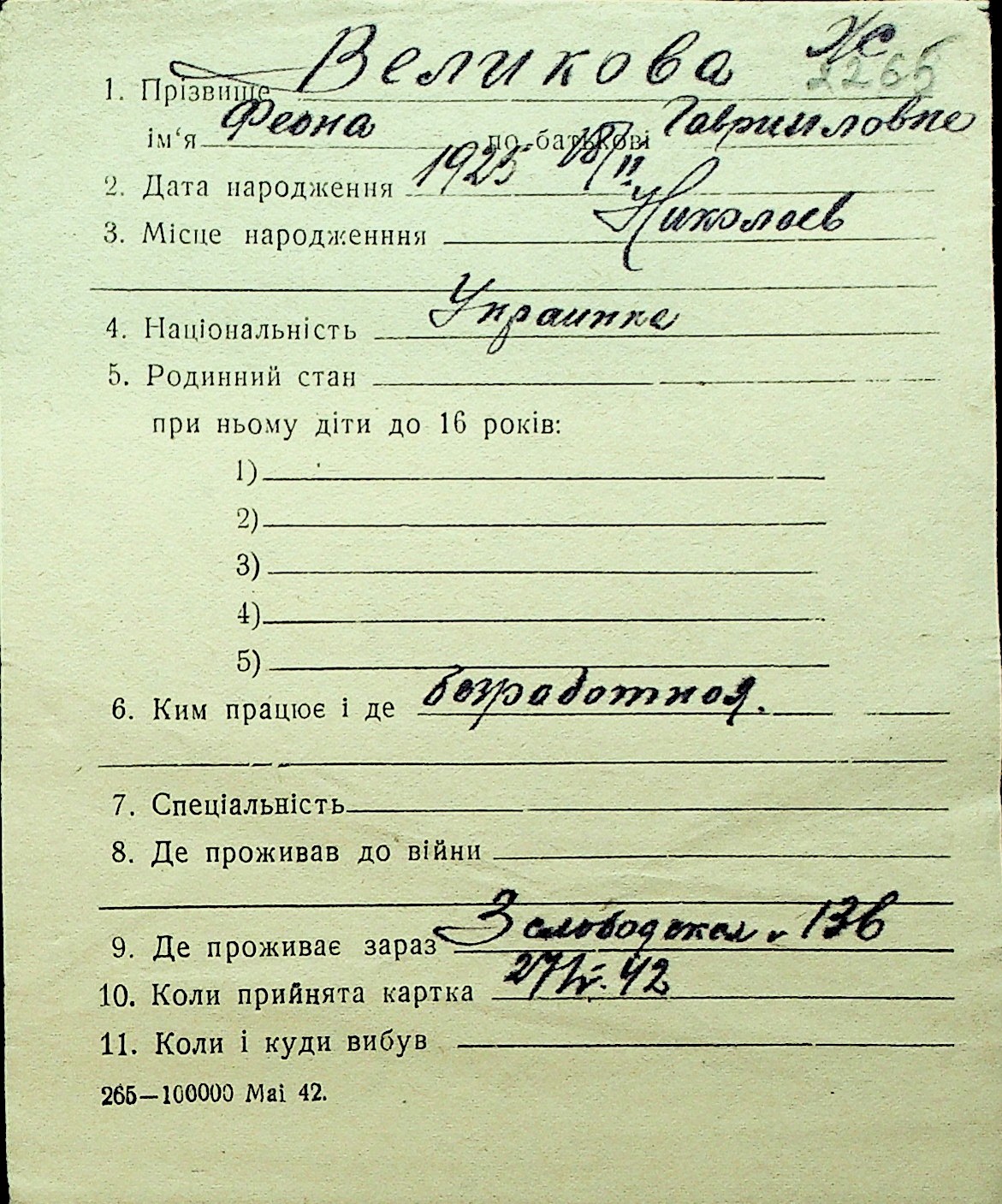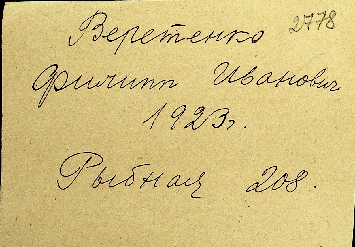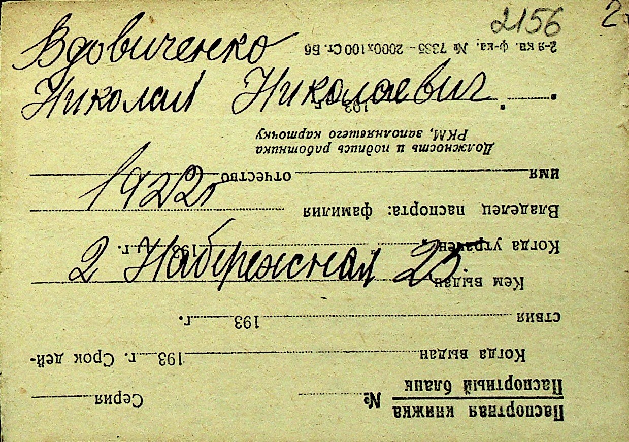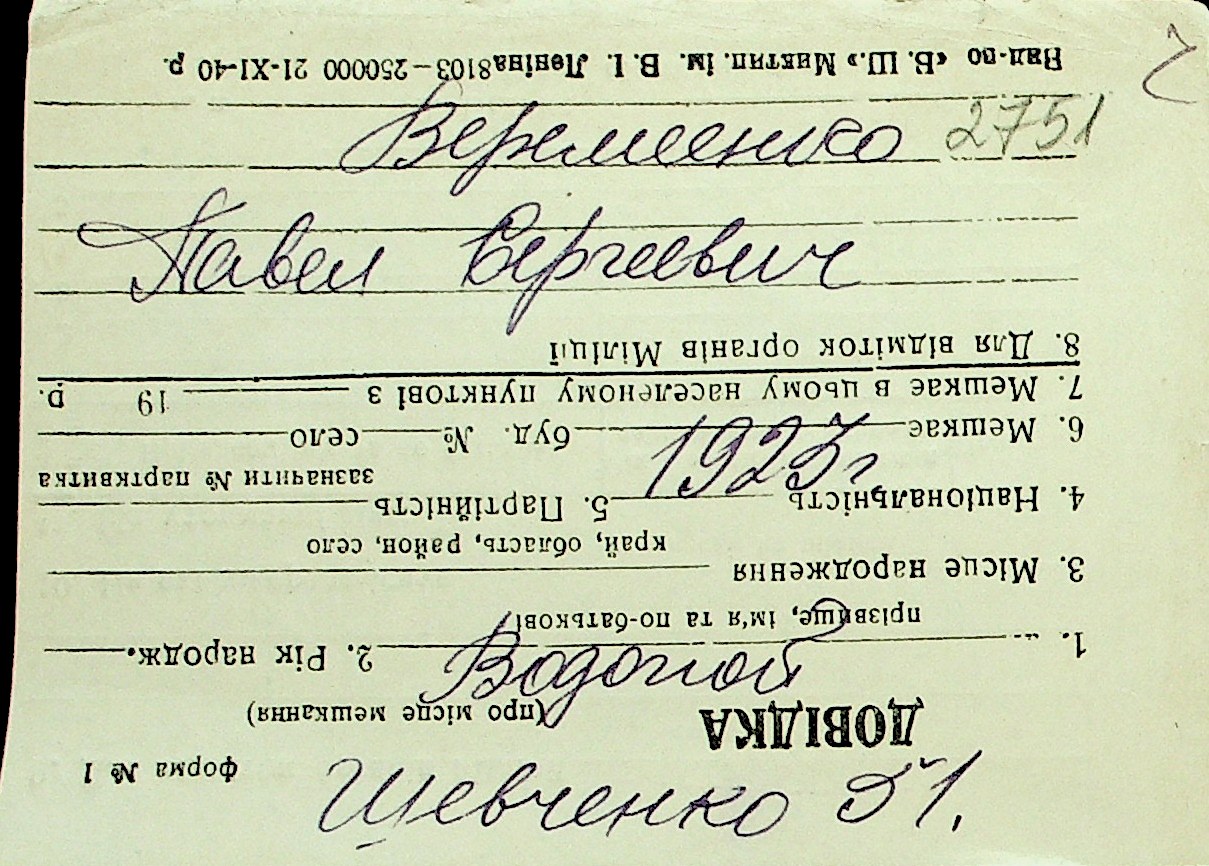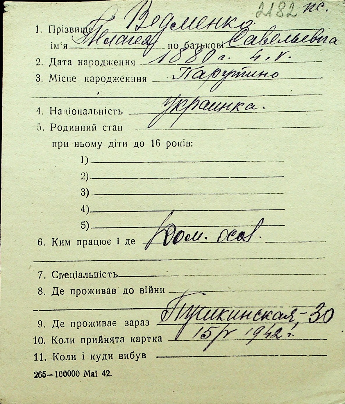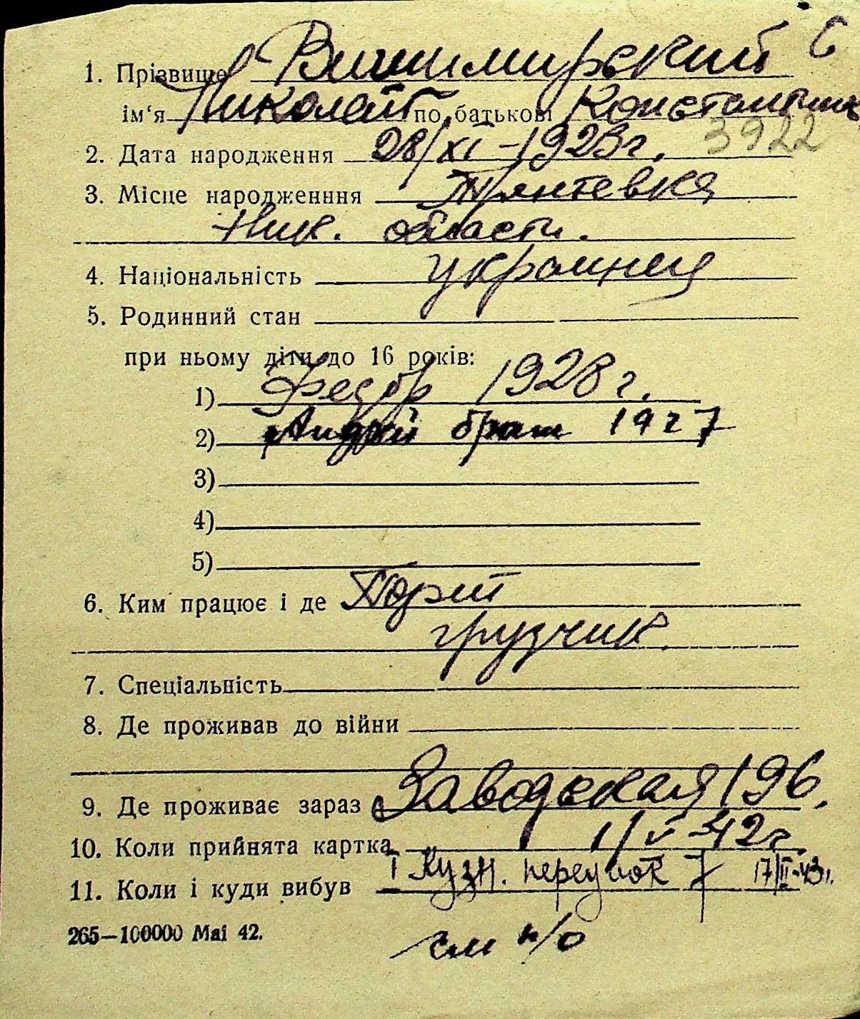 • • Перелік карток до фонду № Н-1016