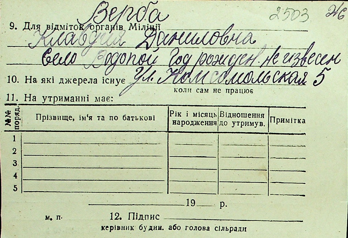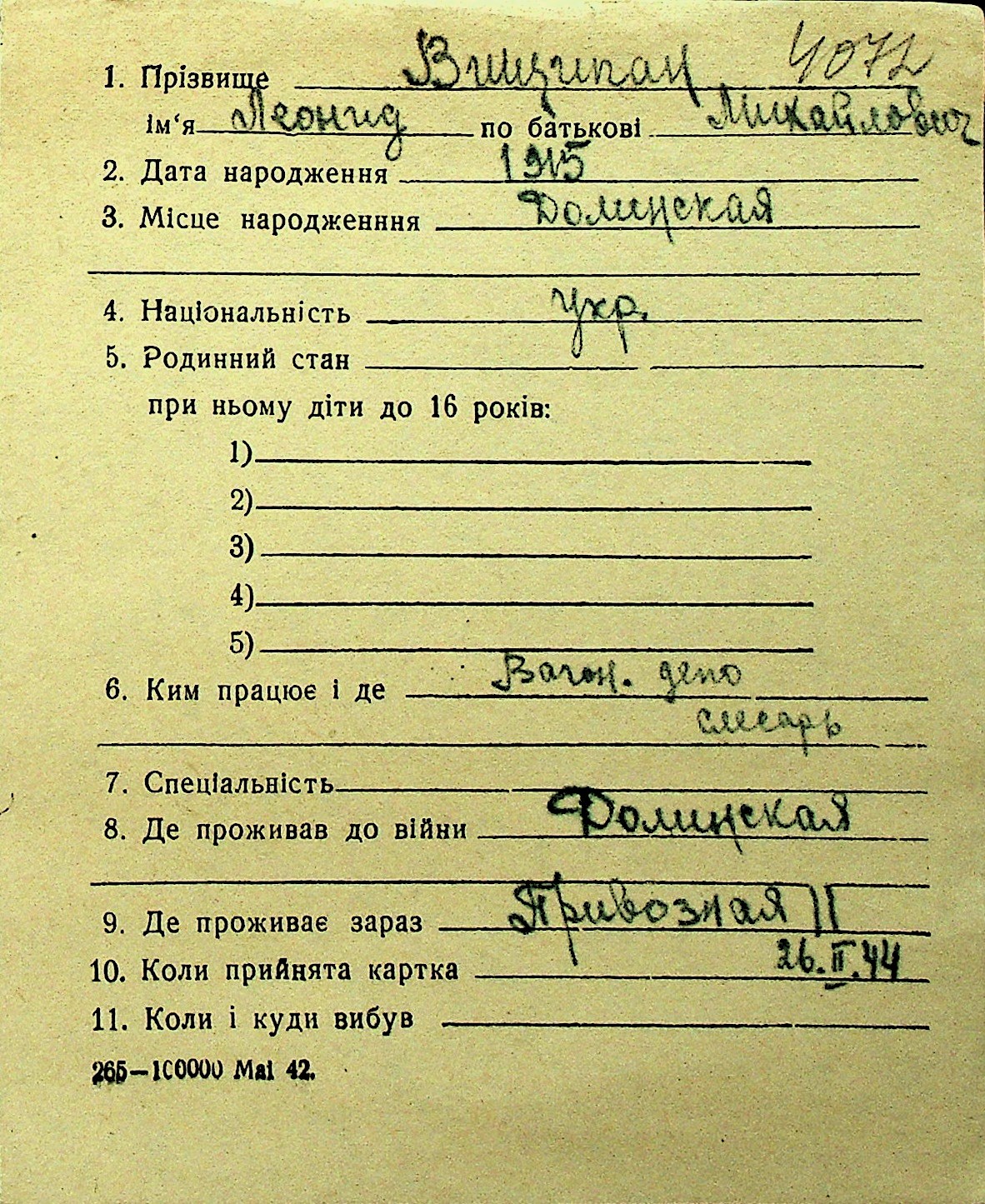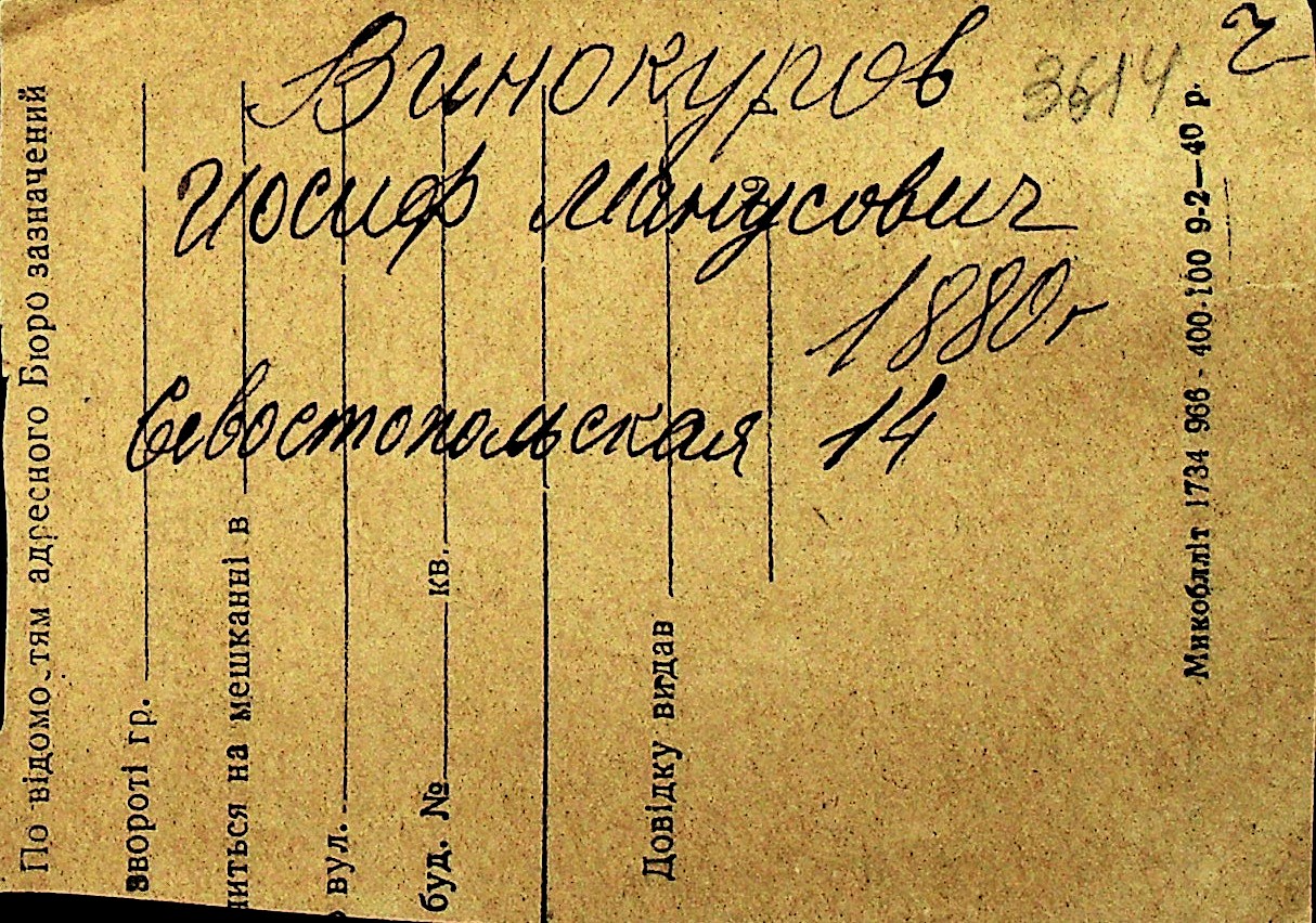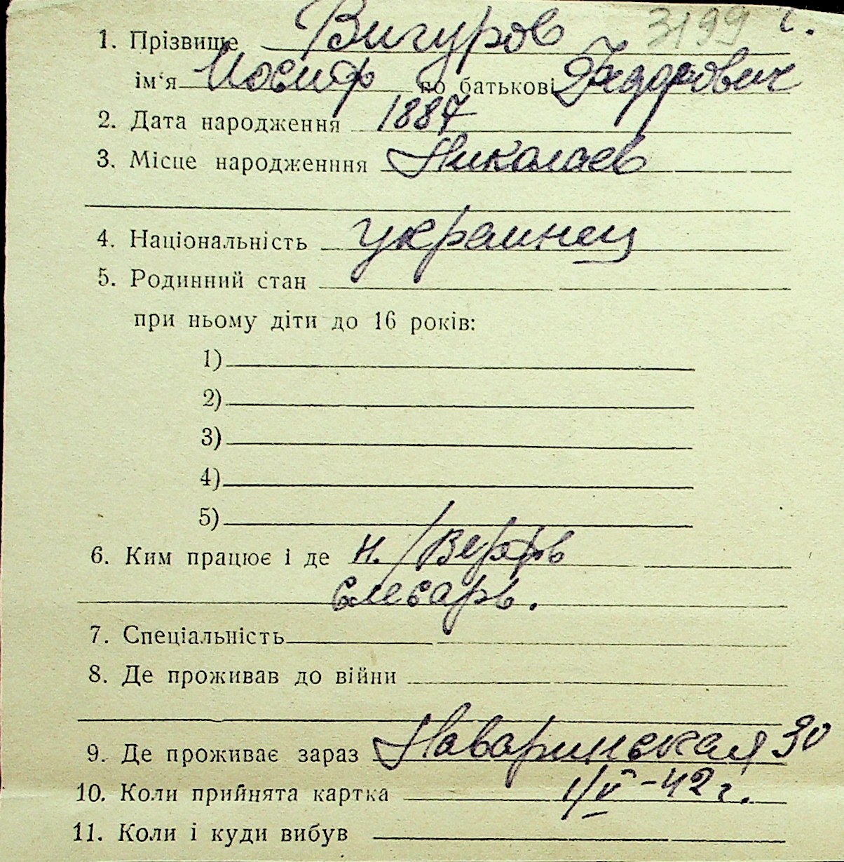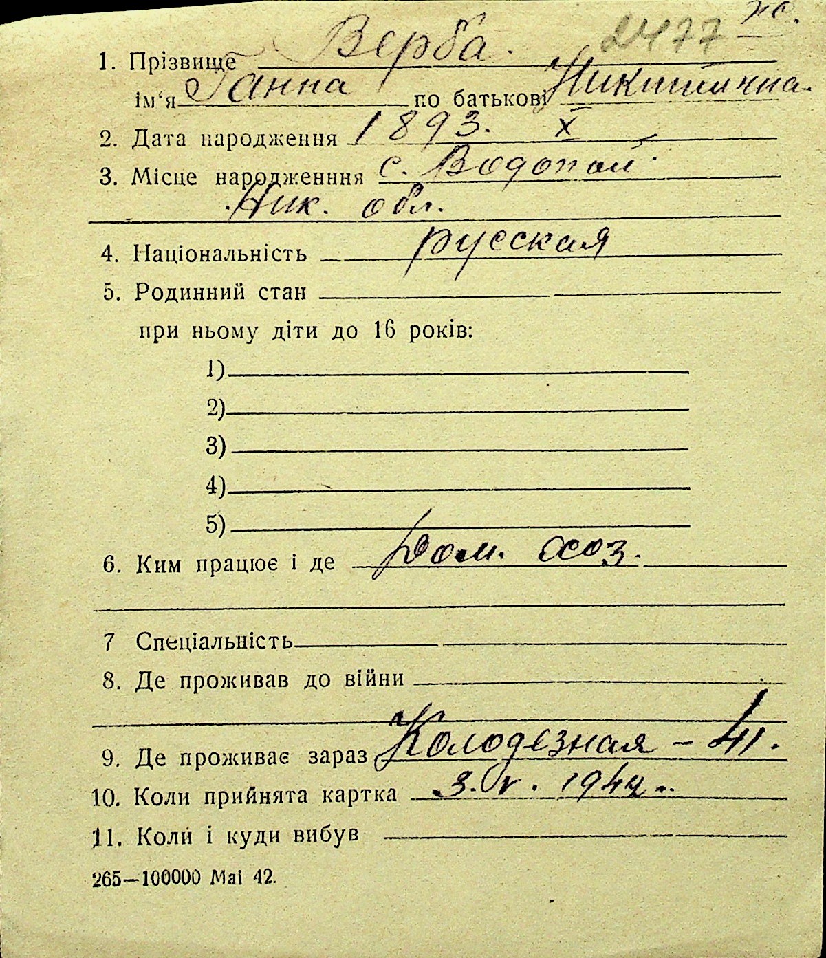 • • Перелік карток до фонду № Н-1016