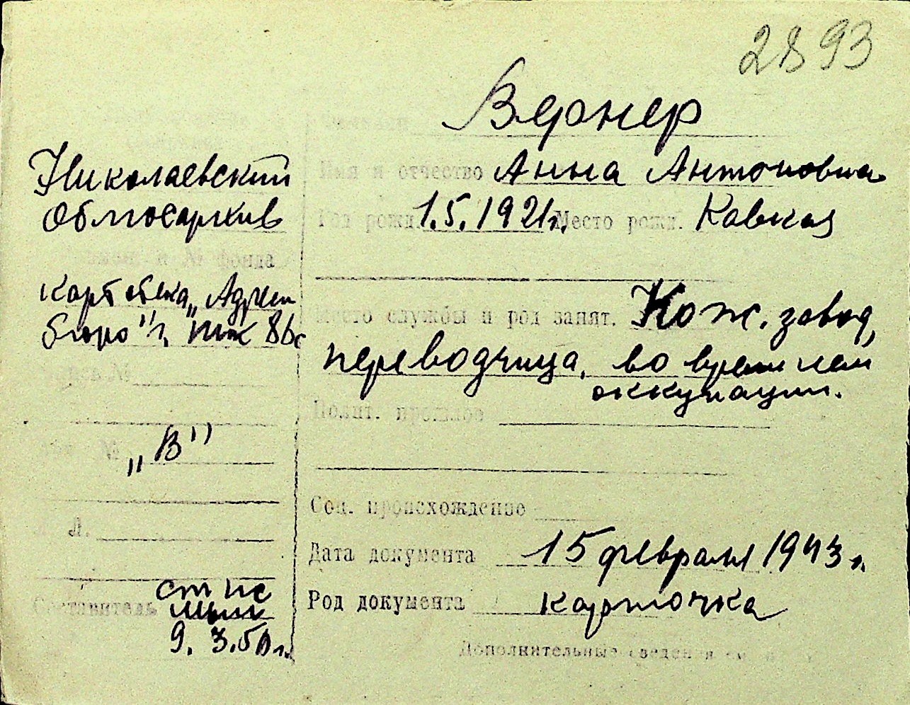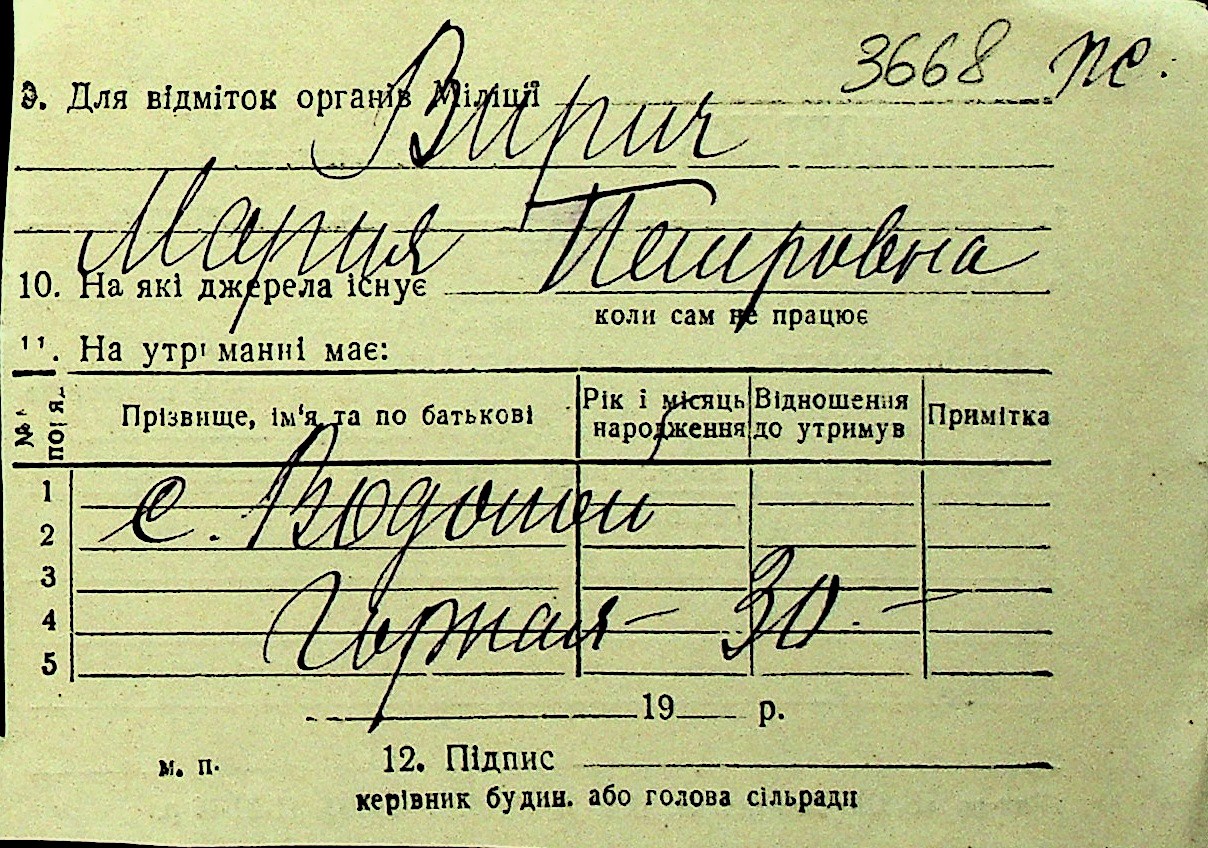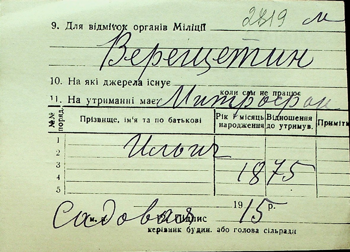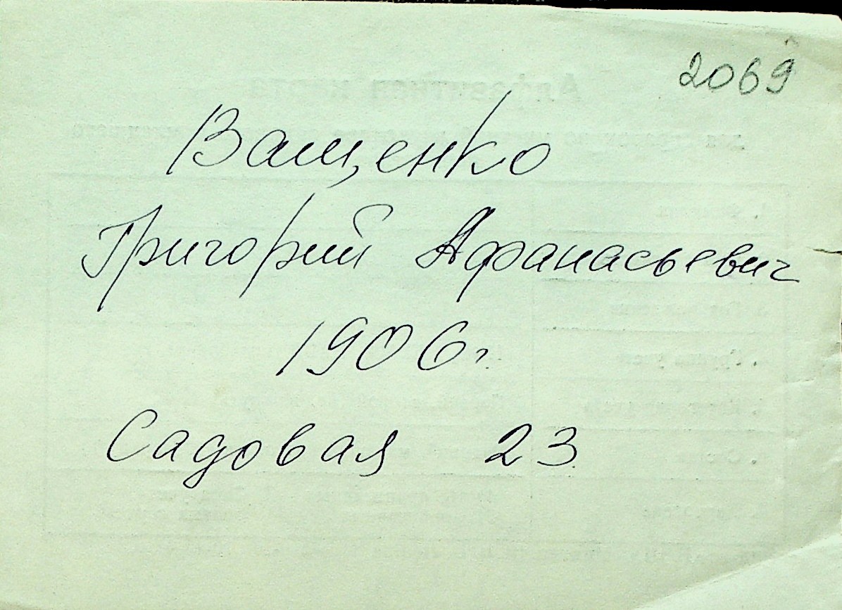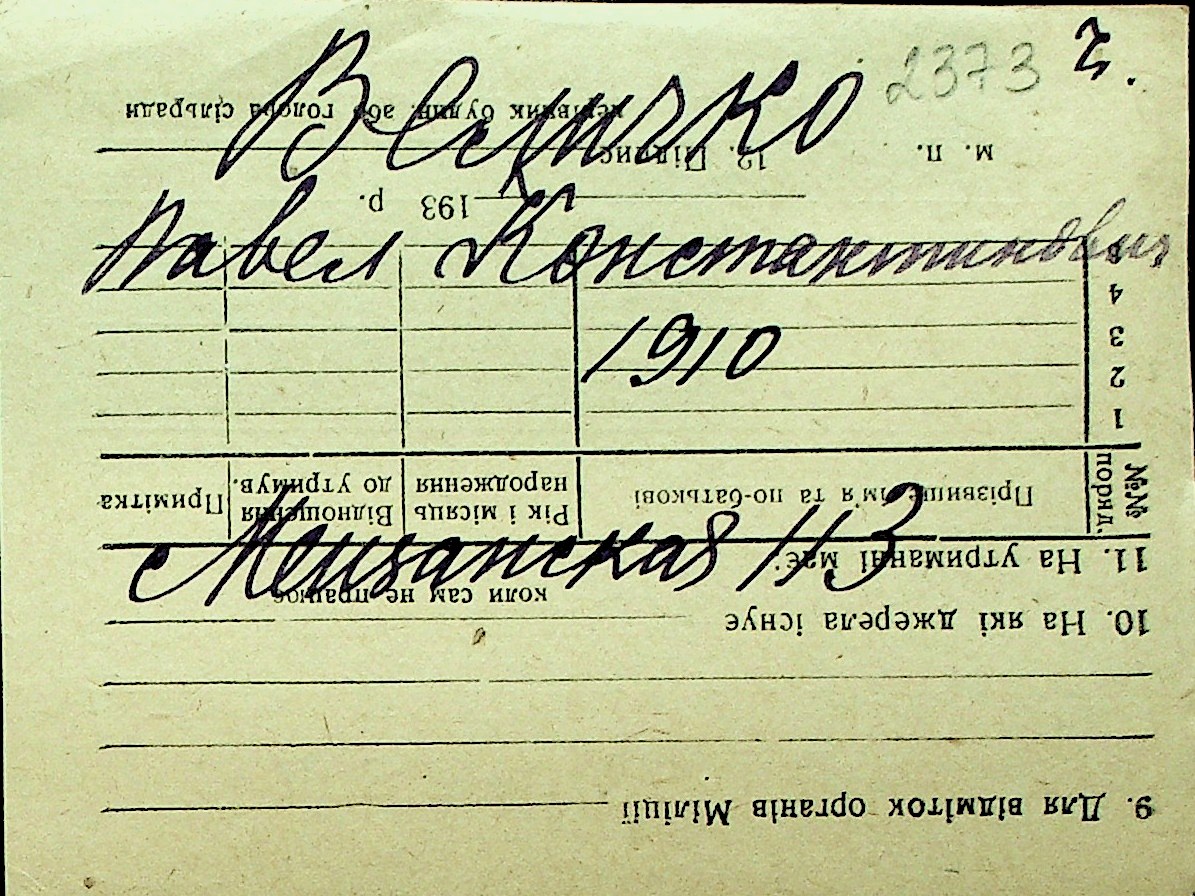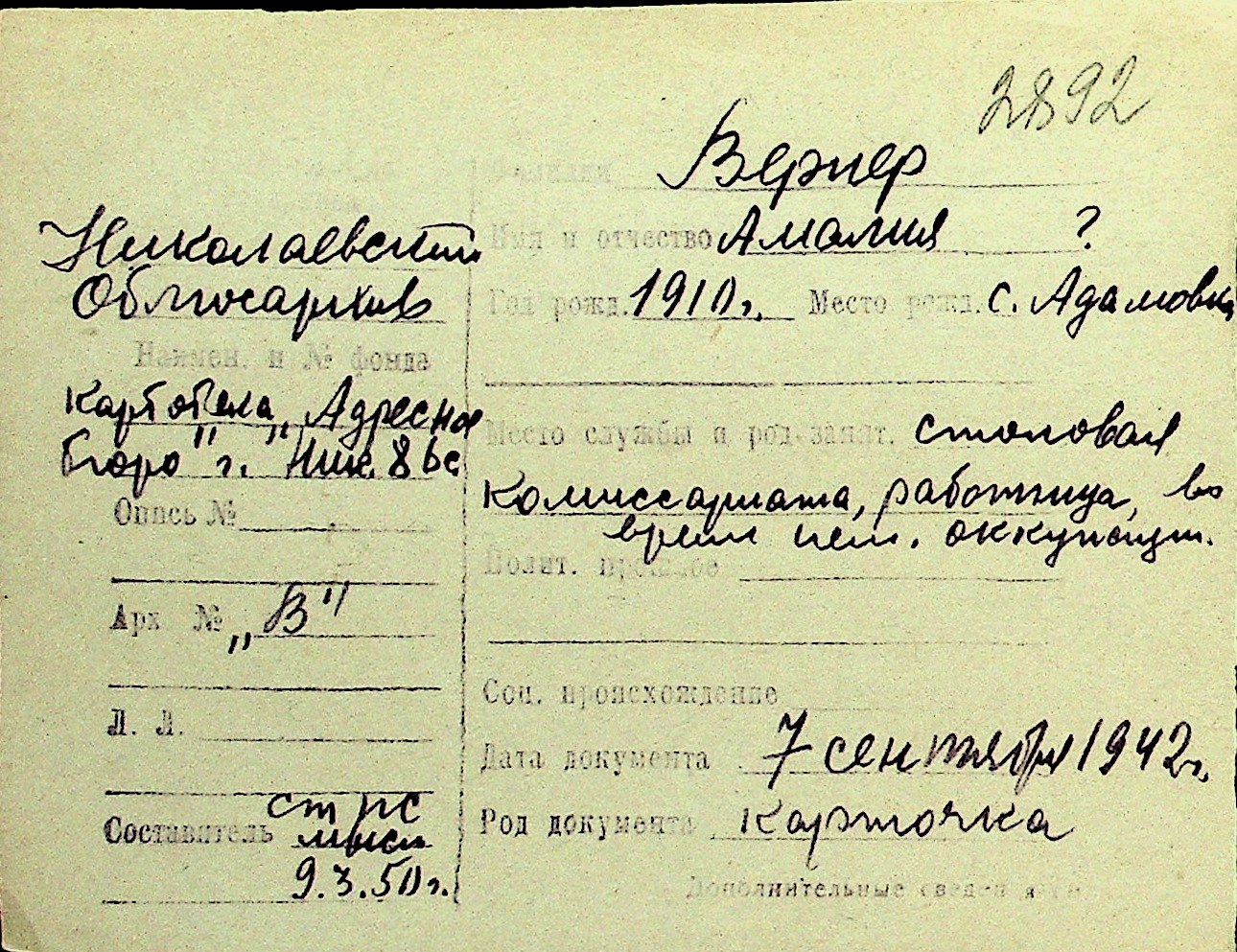 • • Перелік карток до фонду № Н-1016