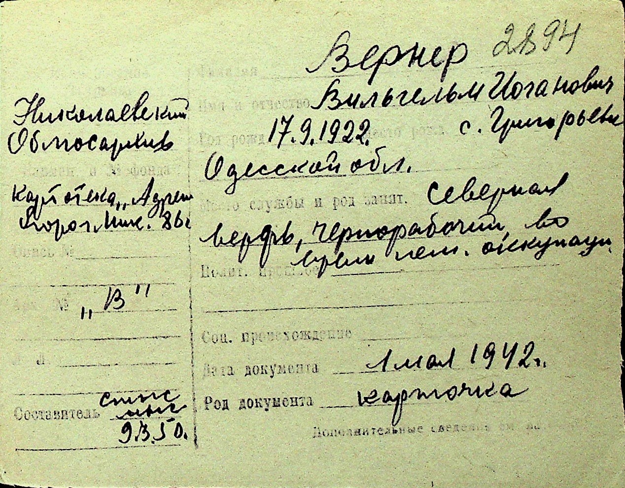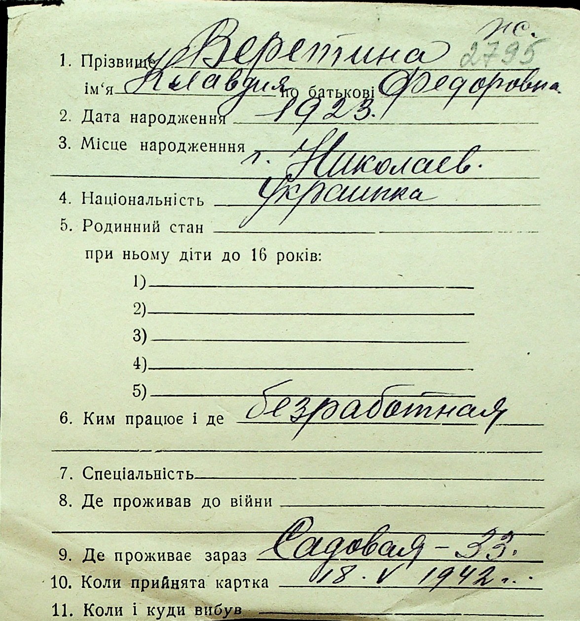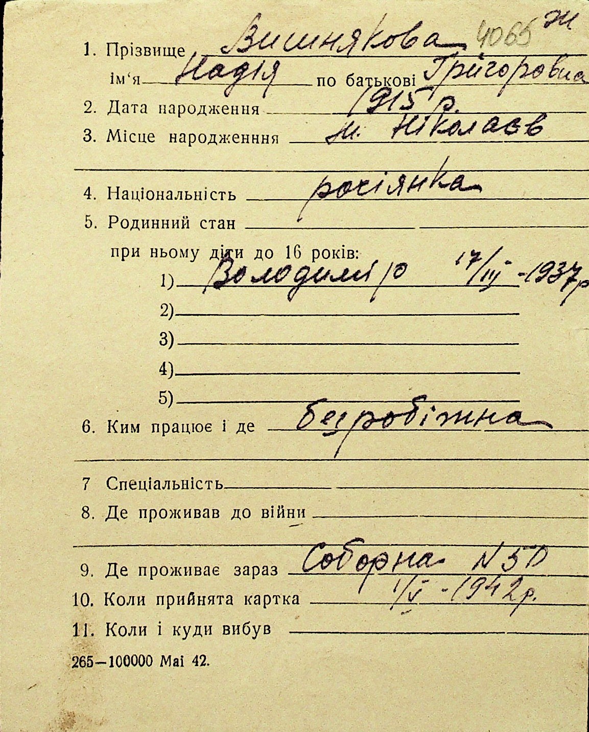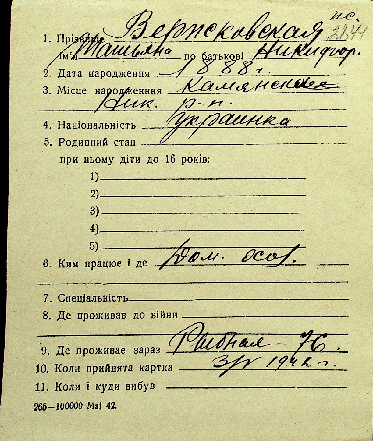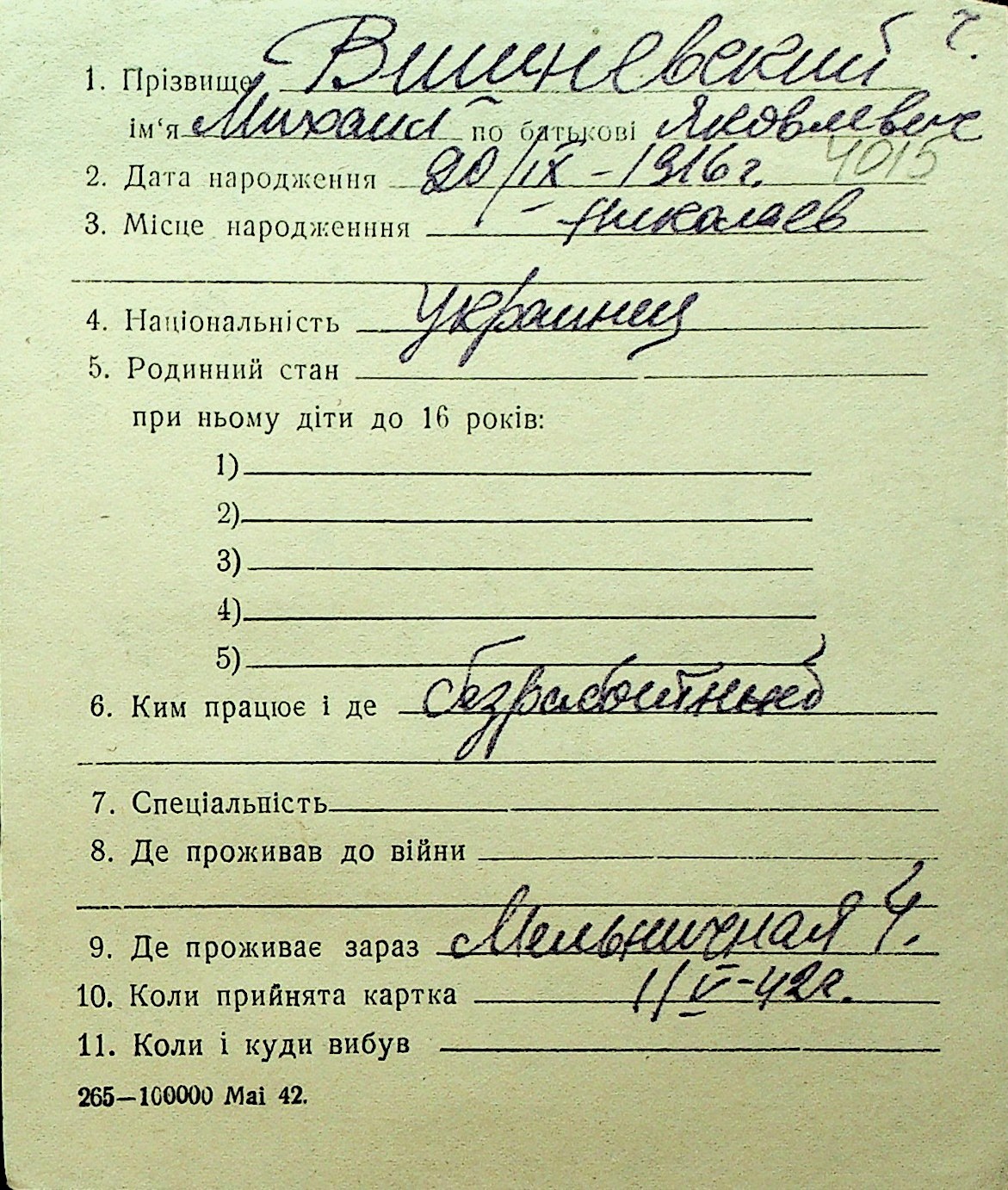 • • Перелік карток до фонду № Н-1016