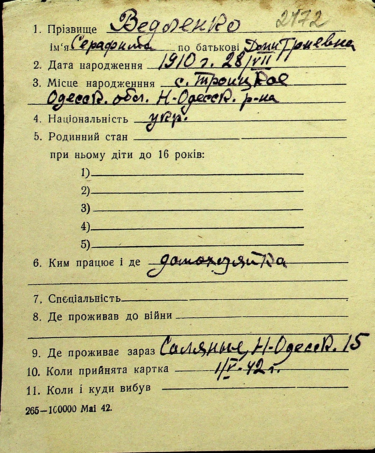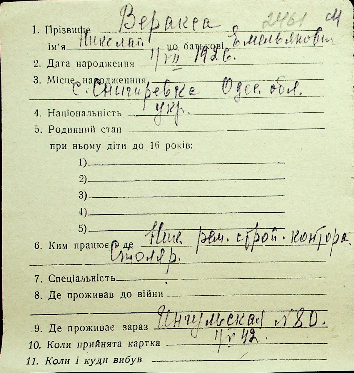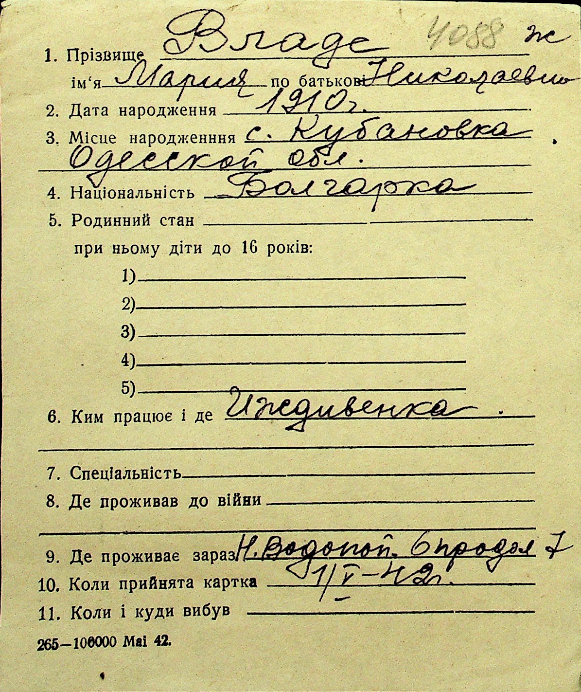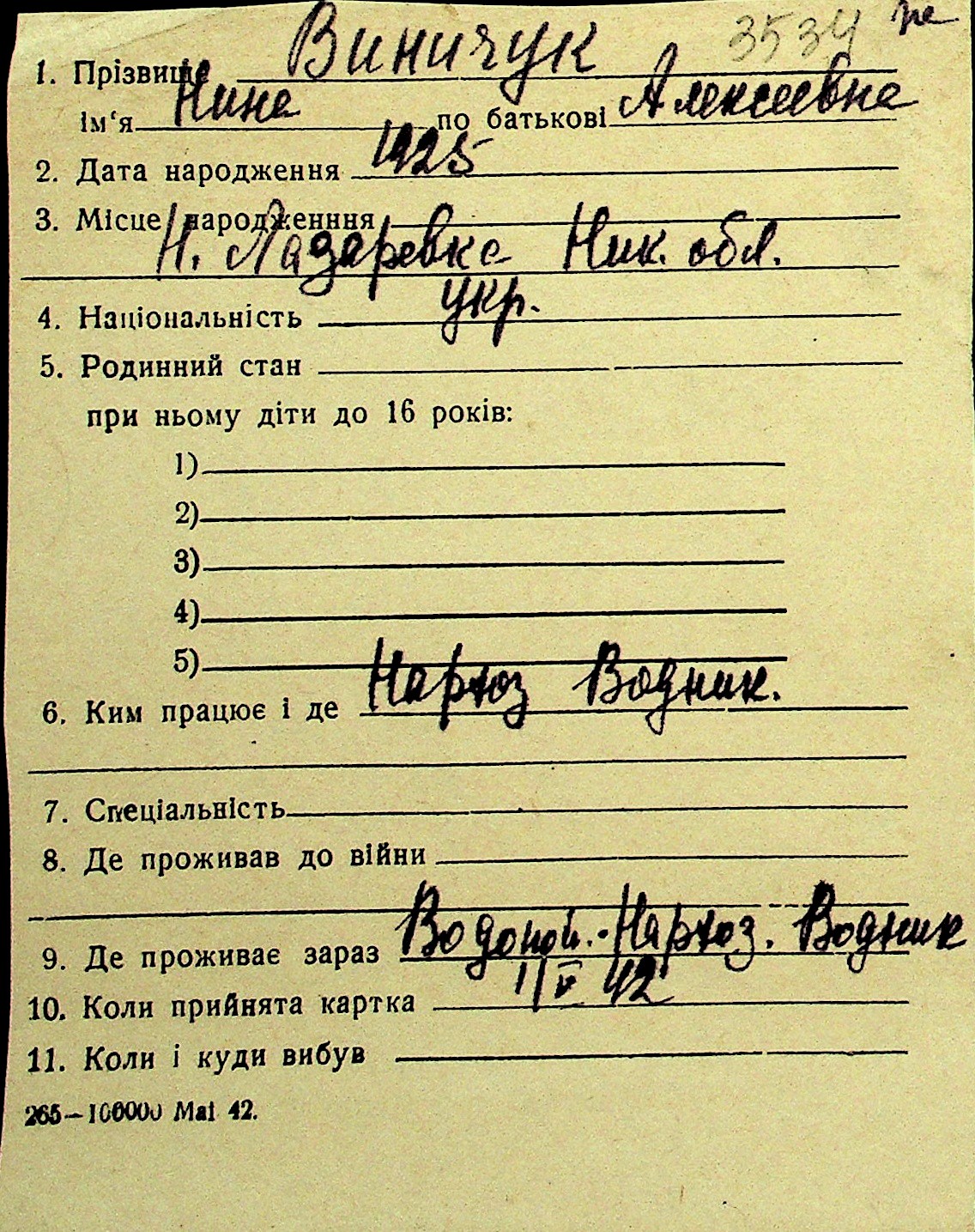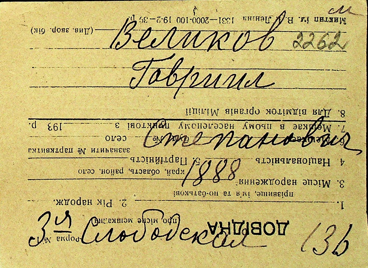 • • Перелік карток до фонду № Н-1016