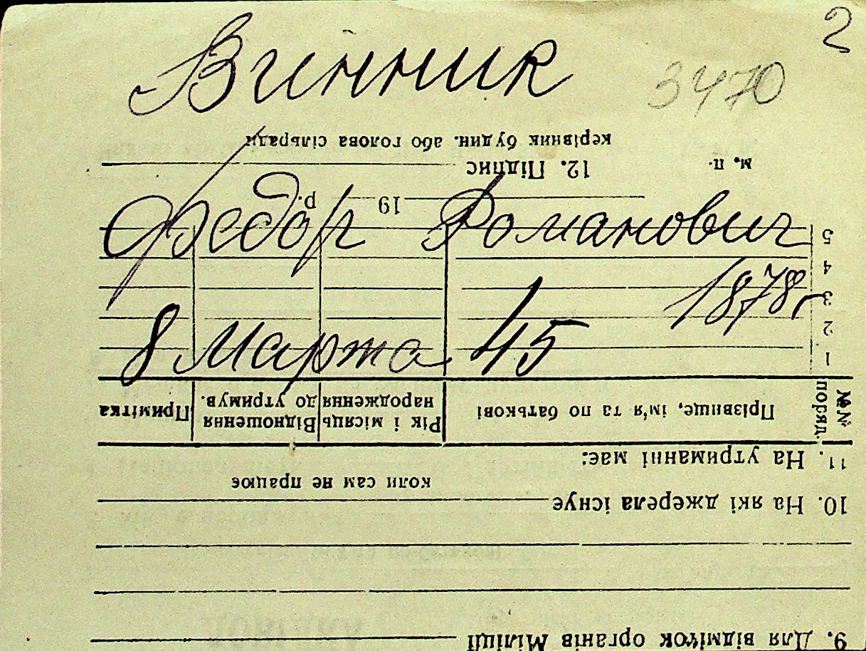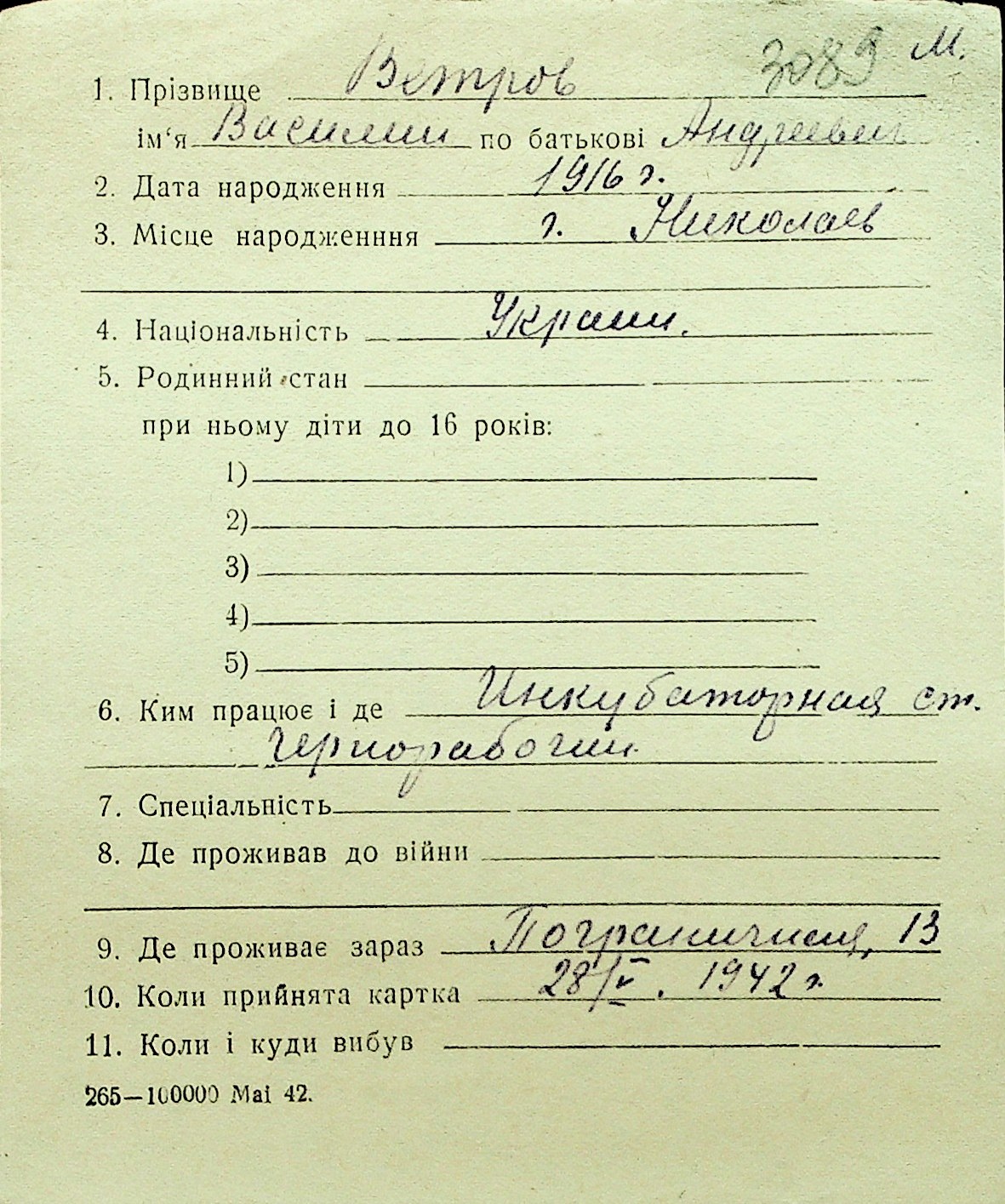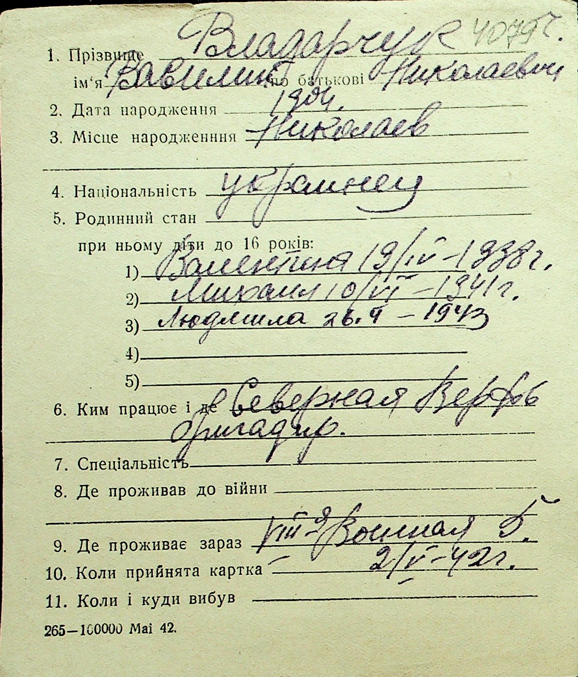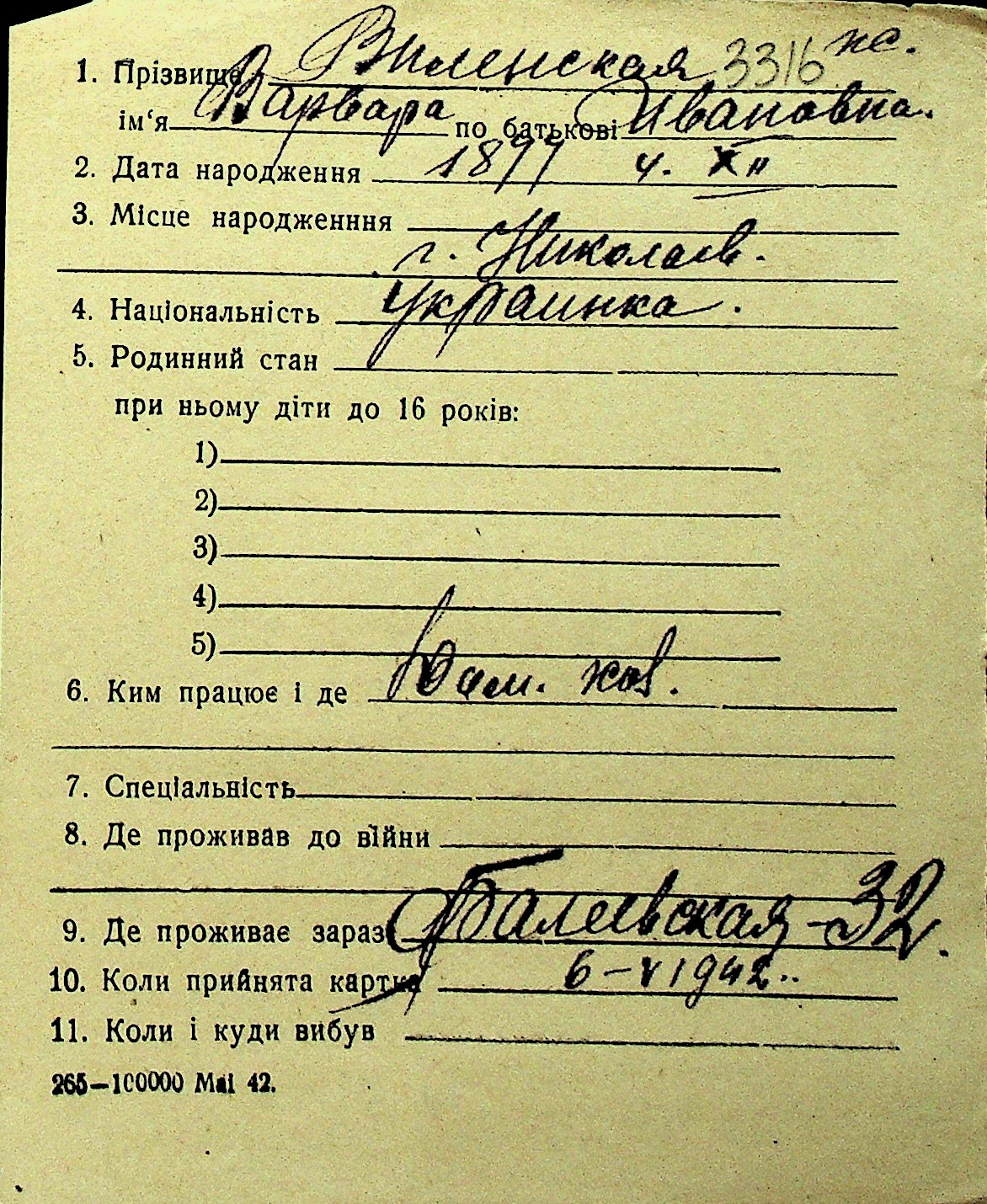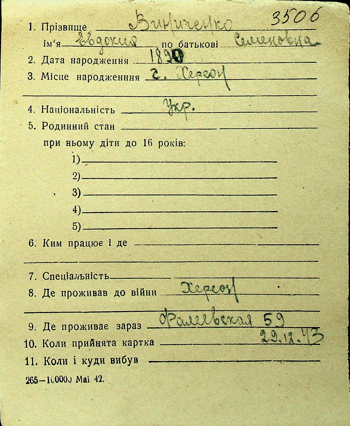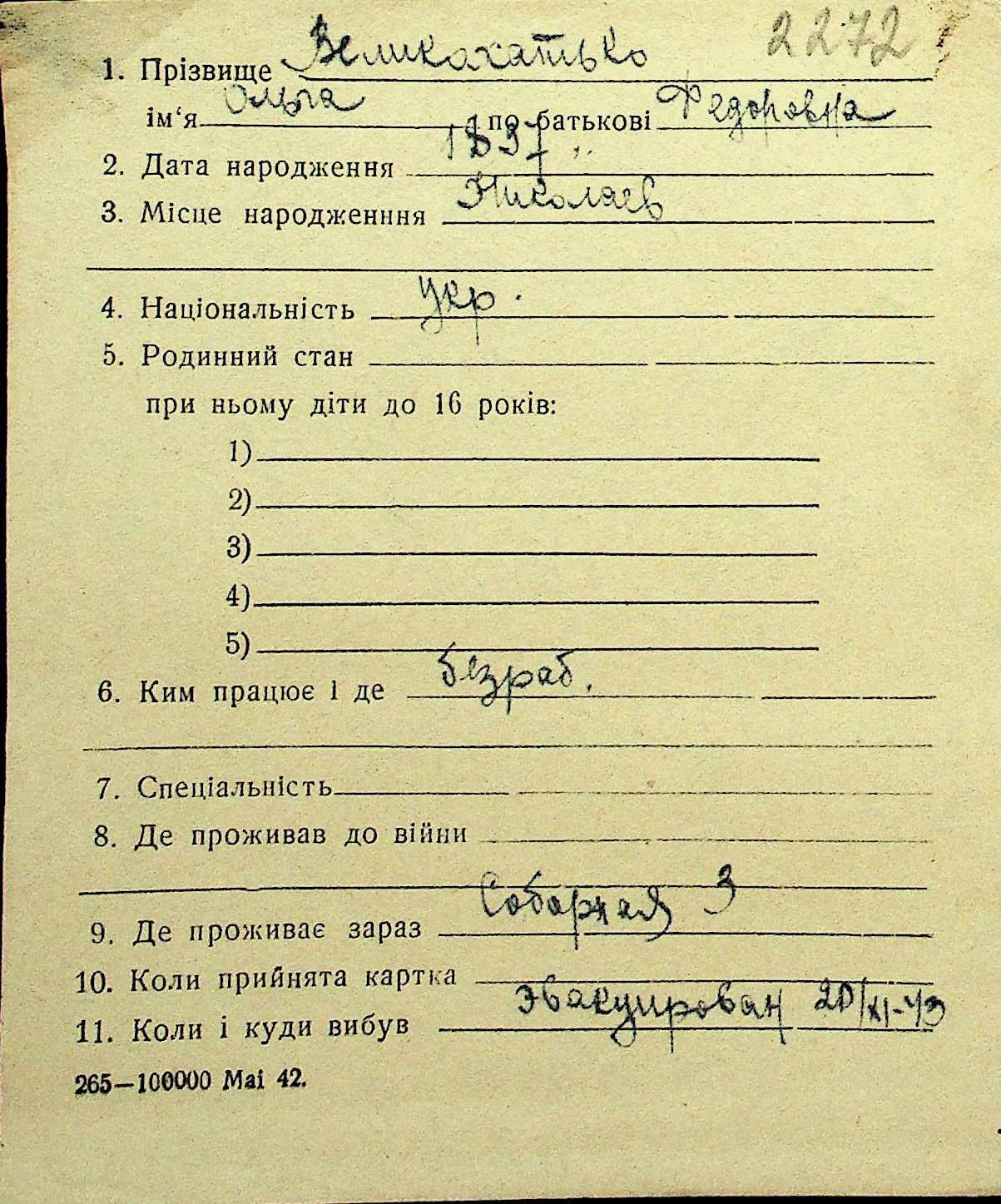 • • Перелік карток до фонду № Н-1016